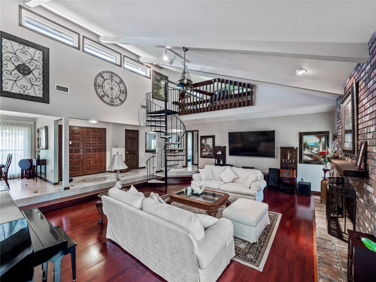 Experience timeless elegance and exceptional craftsmanship in this meticulously maintained estate-style pool home situated on over a third of an acre of lush, mature landscaping in the coveted heart of Longwood. As you enter through the grand double doors, you are greeted by a spacious great room adorned soaring cathedral ceilings, engineered wood flooring and a stunning wood-burning fireplace, creating a warm and inviting atmosphere. Designed with entertaining in mind, this home features a dedicated wet bar, perfect for hosting gatherings with friends and family. The interior boasts exotic travertine-inspired tile flooring that gracefully extends throughout most of the home, enhancing its luxurious appeal. NEWER ROOF (2022)!! The open design, split floor plan allows for both flow and privacy. The primary suite is a true sanctuary, showcasing vaulted ceilings, beautiful French doors leading to the outdoors, and a massive custom-built walk-in closet. Indulge in the lavish remodeled en suite, complete with dual vanities, top-mounted sinks, a large soaking tub, and an expansive stand-up shower. The gourmet, remodeled kitchen is a chef's delight, featuring 42-inch real wood cabinetry, granite countertops, stainless steel appliances, and ample pantry space. Experience superior indoor air quality with a UV light system and 4" thick pleated air filter integrated into the HVAC. Plus, all rooms have air returns!! WOW! The guest rooms are generously sized and equipped with ceiling fans/lights, with one boasting a custom walk-in closet. For added convenience, the laundry area is located indoors. Ascend the spiral staircase to discover a spacious loft area, perfect for a game room or home office, complete with its own pool table and private balcony. The possibilities are endless! Step into your private Florida sanctuary, complete with an expansive 600-square-foot deck embellished with custom pavers, overlooking you SCREENED POOL! This impressive deck is part of a generous 2,200-square-foot screened outdoor area, perfect for relaxing, entertaining, and enjoying the sunny Florida lifestyle. Located in the charming Vestavia community, comprised of just 24 homes, this residence offers the perfect blend of tranquility and convenience. Enjoy exclusive optional ACCESS TO LAKE BRANTELY and take advantage of the nearby bike path at the end of the cul-de-sac, leading to Wekiva elementary, parks, and so much more! Enjoy proximity to restaurants, shops, Wekiwa State Park, SR 434, I-4, and more. Plus, benefit from being zoned for A-rated Seminole County schools as well as distinguished private schools like Pace Brantley Prep. Don't miss the opportunity to own this majestic home. Schedule your private tour, TODAY! Experience the full video tour by clicking on this link! https://youtu.be/2ZXflKZjy0o
