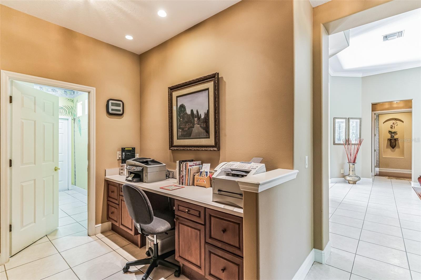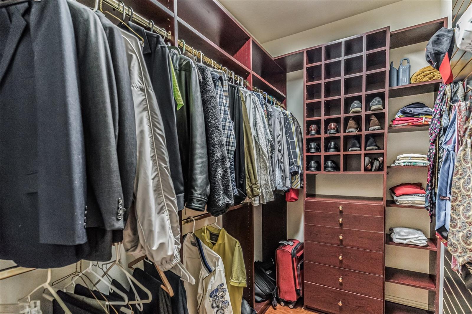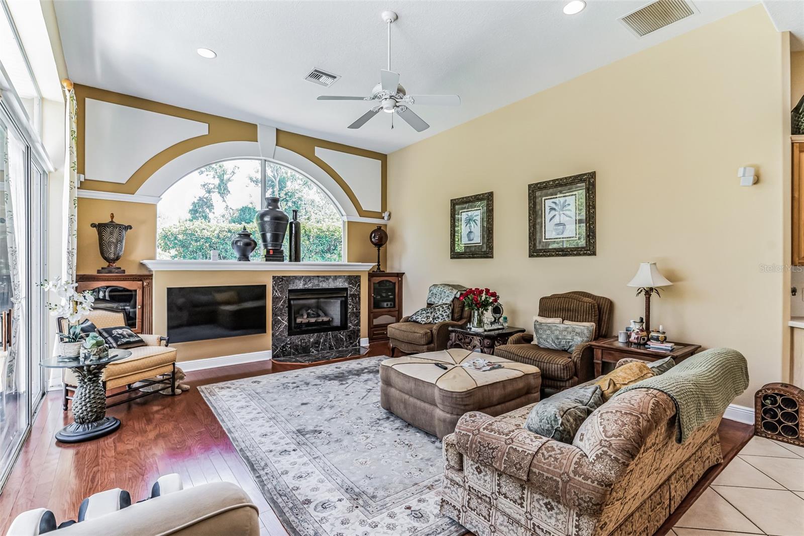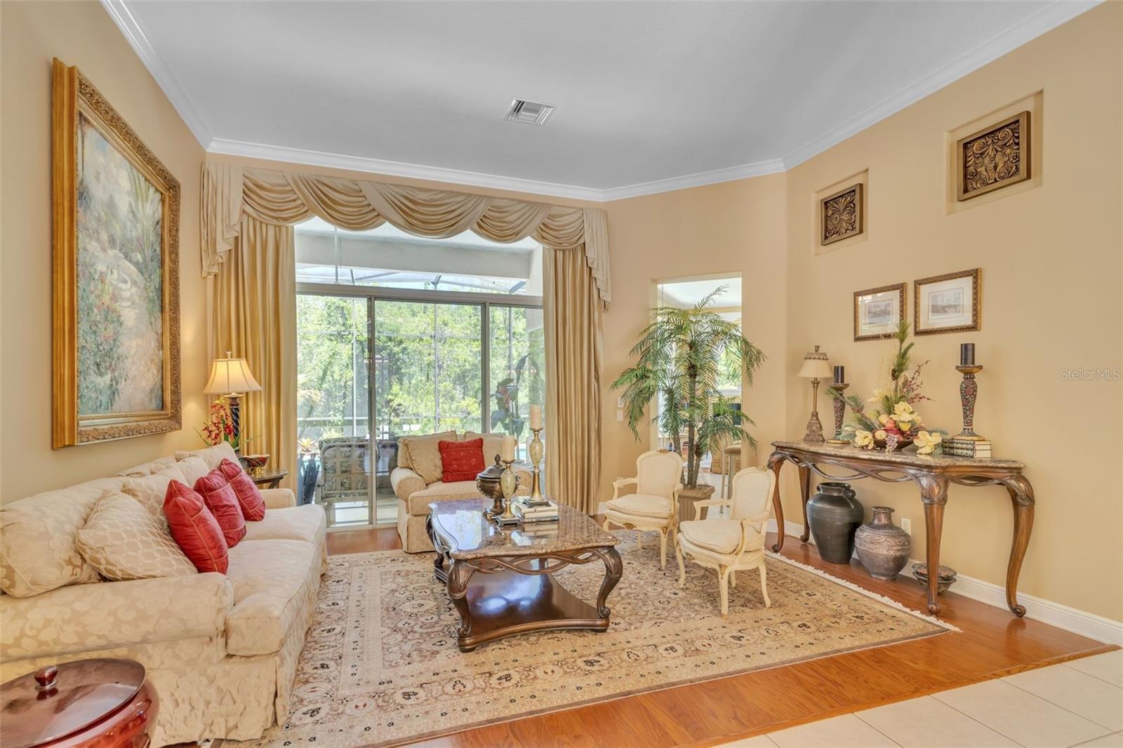 This gorgeous retreat is nestled in Alaqua Lakes amongst the Tom Fazio design 18 hole golf course and tennis community. The custom features of this designer home will envelope your senses and garner your attention as you enter. As you open the front door your eyes will be drawn to the inviting living room adorned with silk drapery at the sides of the massive sliding glass doors that gives you a view of the swimming pool and the magnificent forestry of trees at the back of the house, that emanate from the conservation of nature in its truest form. The current owners spared no expense on the custom finishes. Natural light flows throughout the home and the high 12 feet ceilings along with openness of the floor plan is ideal for entertaining. The floor plan has the Owners Primary Suite to the left as you enter the house, another suite and 3rd bedroom is to the right, and there are a total of 4 full bathrooms. The office/optional 4th bedroom with French doors located to the left as you enter the house, looks out onto the beautiful landscaped yard. The room has custom built-in shelving and arches, ideal for remote work. The windows in all common areas are tinted to let in natural light whilst blocking heat and glare and protecting furnishings from fading. The Owners Primary Suite to the left of the house is separated by its own hallway. The suite boast his and hers custom made built-in closet by closet maid. The bathroom has a Jacuzzi soaker tub for two, separate showers, His and Hers vanity. Her vanity is made with space for a make-up bench. The toilet has its own private room. The owner’s suite has access to the screened Lanai and pool. To the right side of the home the other suite is a vast expanse of space with its own bathroom that includes a double vanity, shower and bath combination and a custom built-in linen closet. The 3rd bedroom comes with a custom Walkin closet and has a dedicated bathroom with double vanity and shower and bath combination. The 4th full bathroom serves guests and can be accessed from the pool. The formal dining room is across from the formal living room which leads to the family room and kitchen with 45-inch cabinets. The family room has a vast custom-made picture window, with custom built entertainment cabinets and fireplace. The flooring in all primary rooms and bedroom is finished with gleaming Mohawk hardwood floors. The laundry room is decked out with custom cabinetry that includes a broom closet. The bright and airy laundry room leads to a 3-car garage and in the garage there is a pull down step that leads you to ample storage above the garage. The expansive lanai made for outdoor entertaining with it's own custom made built in stainless steel grill and stainless steel sink makes clean up a breeze. Shops and Restaurants for dining out are just a few minutes away. Easy access to I-4 going East will take you to Daytona Beach and Daytona Racetrack, and going West will take you to Disney World. All of this beauty is enclosed in a manned 24 hr. security gate. Bedroom Closet Type: Walk-in Closet (Primary Bedroom).