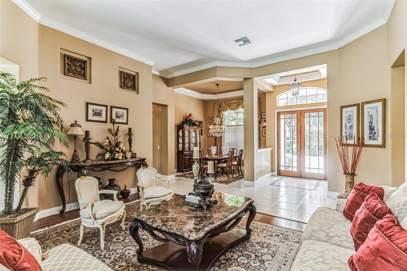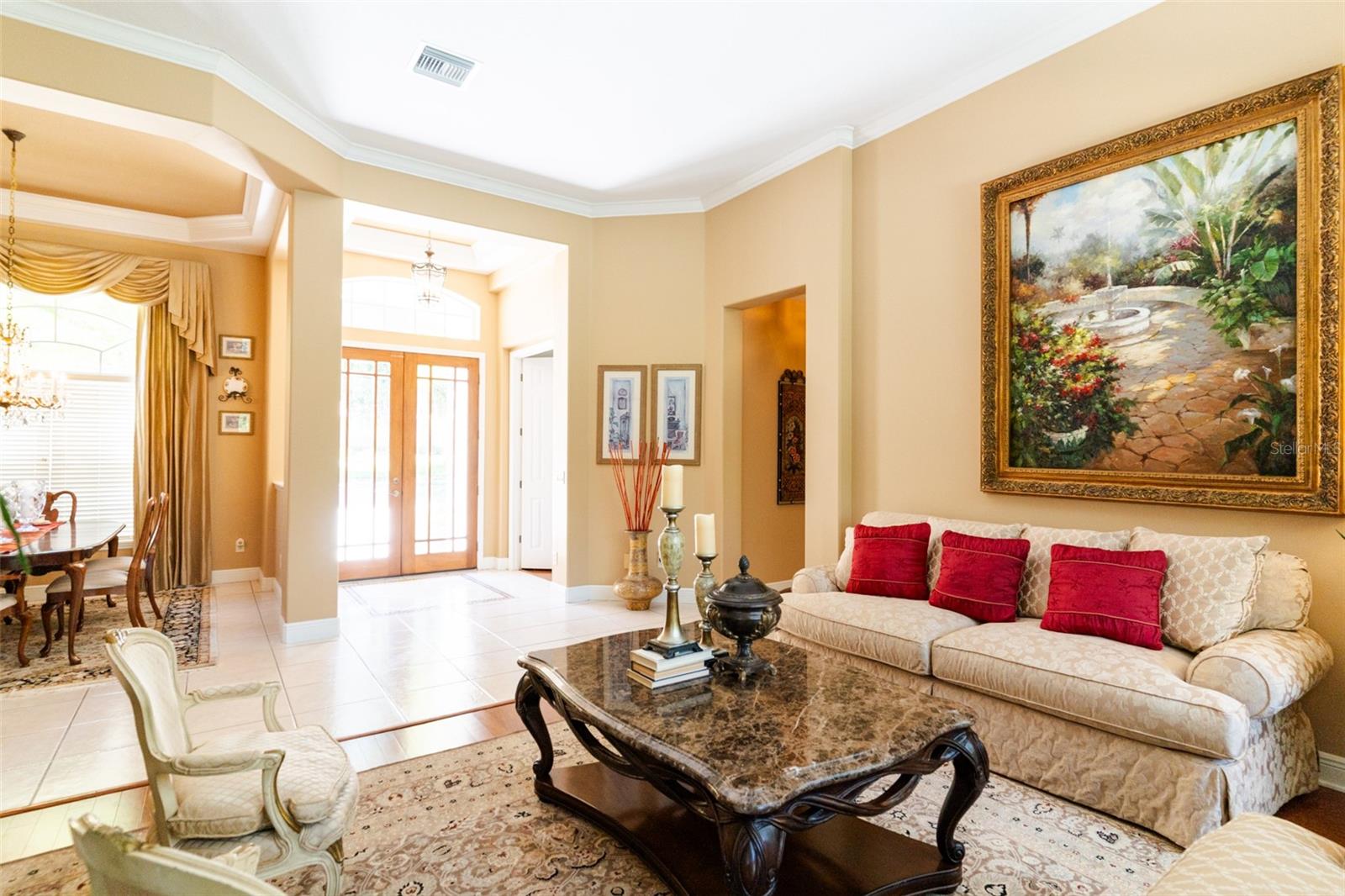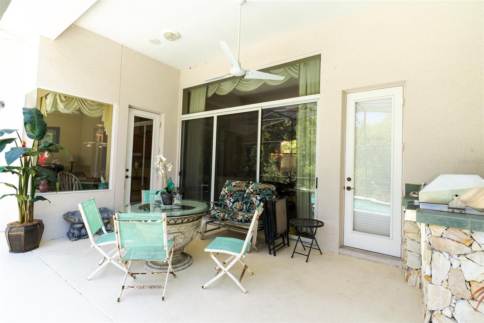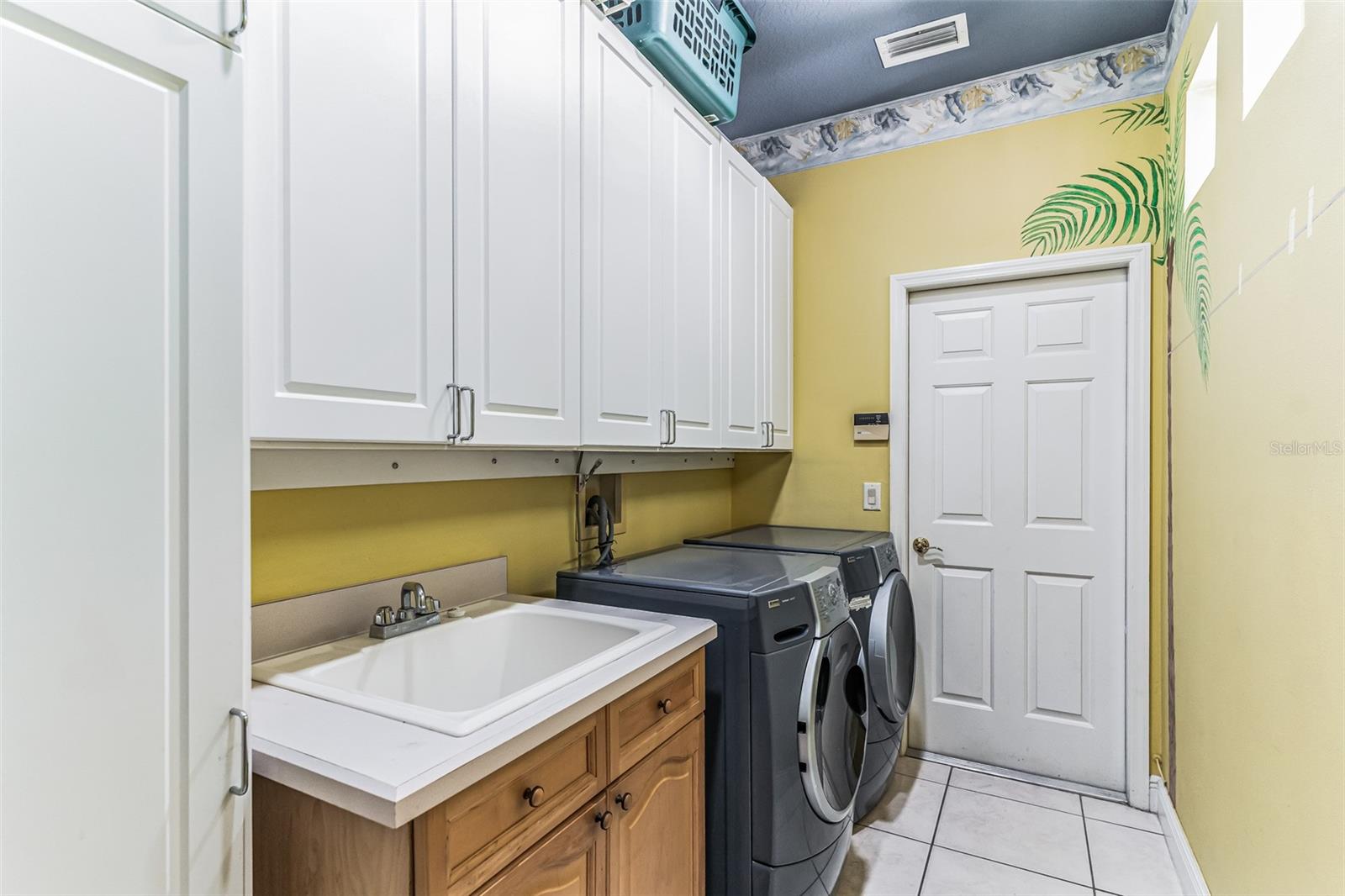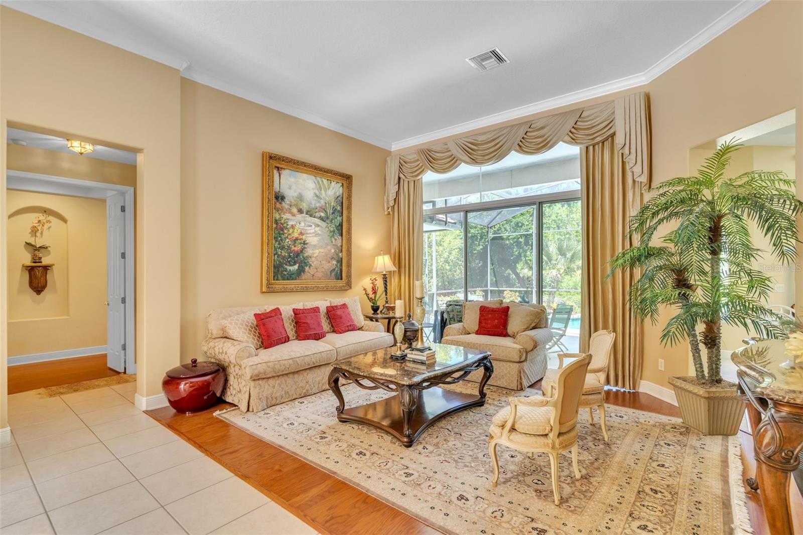 This gorgeous retreat is nestled in Alaqua Lakes amongst the Tom Fazio design 18 hole golf course and tennis community. The custom features of this designer home will envelope your senses and garner your attention as you enter. As you open the front door your eyes will be drawn to the inviting living room adorned with silk drapery at the sides of the massive sliding glass doors that gives you a view of the swimming pool and the magnificent forestry of trees at the back of the house, that emanate from the conservation of nature in its truest form. The current owners spared no expense on the custom finishes. Natural light flows throughout the home and the high 12 feet ceilings along with openness of the floor plan is ideal for entertaining. The floor plan has the Owners Primary Suite to the left as you enter the house, another suite and 3rd bedroom is to the right, and there are a total of 4 full bathrooms. The office/optional 4th bedroom with French doors located to the left as you enter the house, looks out onto the beautiful landscaped yard. The room has custom built-in shelving and arches, ideal for remote work. The windows in all common areas are tinted to let in natural light whilst blocking heat and glare and protecting furnishings from fading. The Owners Primary Suite to the left of the house is separated by its own hallway. The suite boast his and hers custom made built-in closet by closet maid. The bathroom has a Jacuzzi soaker tub for two, separate showers, His and Hers vanity. Her vanity is made with space for a make-up bench. The toilet has its own private room. The owner’s suite has access to the screened Lanai and pool. To the right side of the home the other suite is a vast expanse of space with its own bathroom that includes a double vanity, shower and bath combination and a custom built-in linen closet. The 3rd bedroom comes with a custom Walkin closet and has a dedicated bathroom with double vanity and shower and bath combination. The 4th full bathroom serves guests and can be accessed from the pool. The formal dining room is across from the formal living room which leads to the family room and kitchen with 45-inch cabinets. The family room has a vast custom-made picture window, with custom built entertainment cabinets and fireplace. The flooring in all primary rooms and bedroom is finished with gleaming Mohawk hardwood floors. The laundry room is decked out with custom cabinetry that includes a broom closet. The bright and airy laundry room leads to a 3-car garage and in the garage there is a pull down step that leads you to ample storage above the garage. The expansive lanai made for outdoor entertaining with it's own custom made built in stainless steel grill and stainless steel sink makes clean up a breeze. Shops and Restaurants for dining out are just a few minutes away. Easy access to I-4 going East will take you to Daytona Beach and Daytona Racetrack, and going West will take you to Disney World. All of this beauty is enclosed in a manned 24 hr. security gate. Bedroom Closet Type: Walk-in Closet (Primary Bedroom).