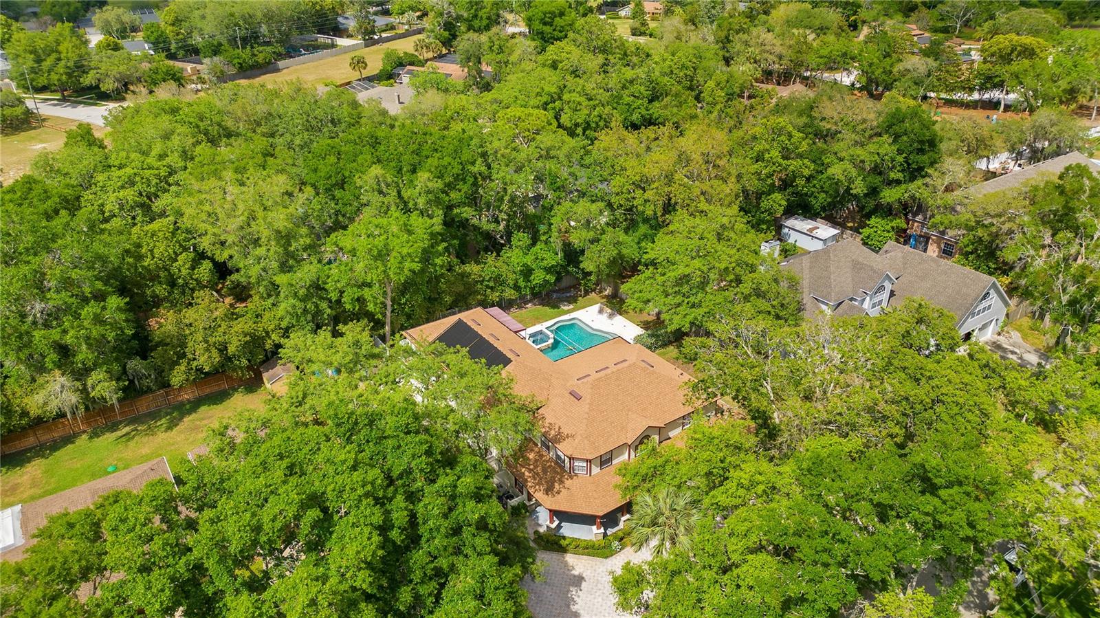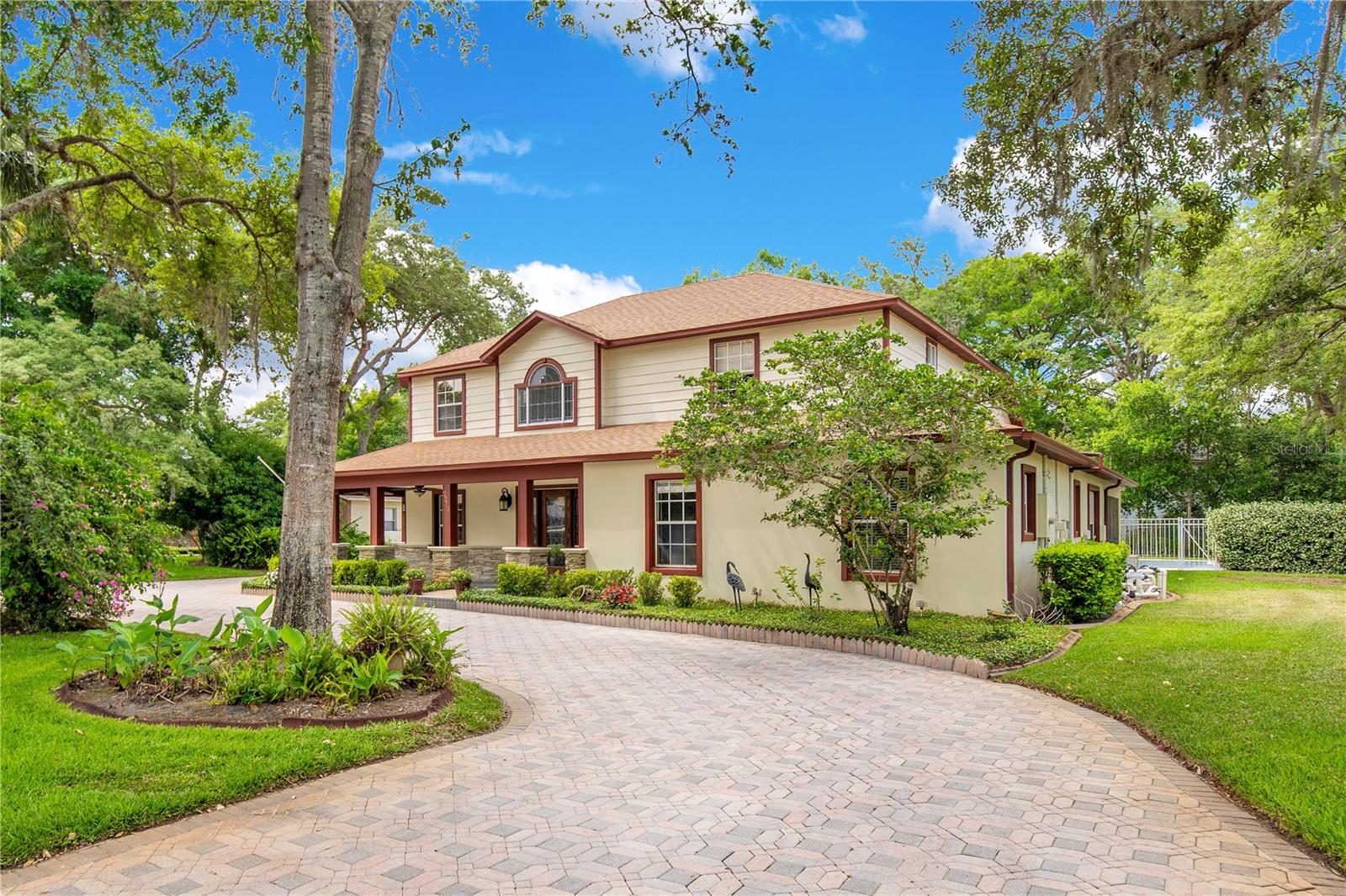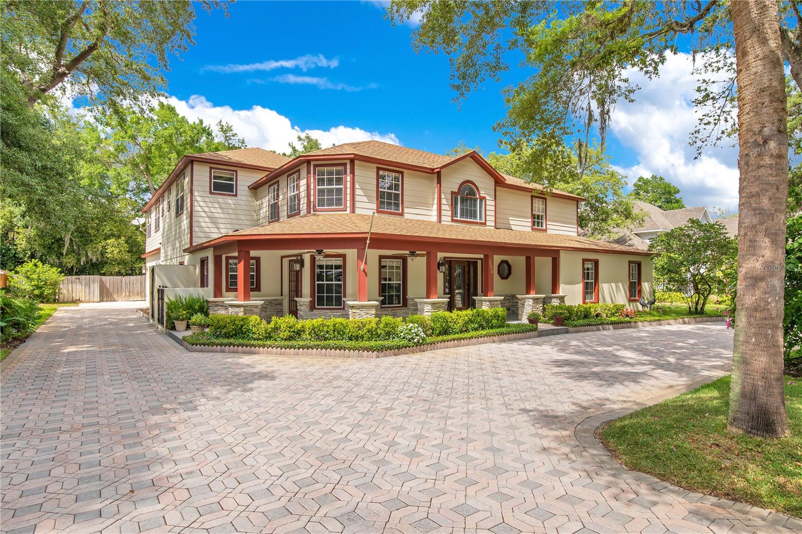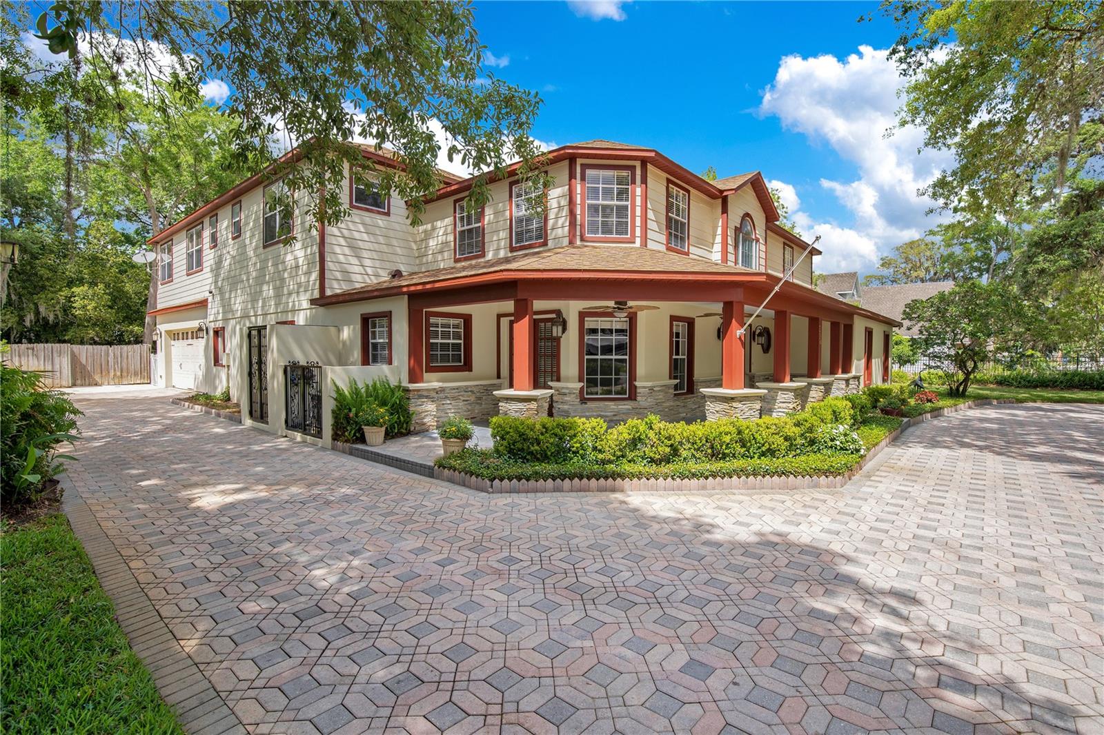 Step into luxury living with this stunning custom-built home offering exclusive Lake Brantley access through the optional HOA. Boasting top-rated schools in the area, this 6-bedroom residence is a haven for family life and entertaining alike. Enter through the grand foyer, illuminated by a dazzling crystal chandelier and travertine flooring, setting the tone for timeless elegance throughout. Natural light floods the home, accentuating its warmth and inviting ambiance. Entertain in style in the formal dining room or relax in the spacious living room featuring vaulted ceilings and access to the lanai. The L-shaped eat-in kitchen is a chef's delight, equipped with custom solid wood cabinets, stainless steel appliances, and granite countertops. The first-floor master suite is a sanctuary of luxury, complete with crown molding, new carpet, and a unique built-in saltwater aquarium. The master bathroom offers a spa-like retreat with granite counters, beautiful tiles, and dual walk-in closets. Three generously sized bedrooms on the main level include a versatile home gym. Upstairs, discover a private bedroom with en suite bathroom, an office/study, and a third-floor retreat with a theater room, sixth bedroom, and game room with wet bar. Step outside to your own backyard oasis featuring a solar-heated, custom saltwater pool, travertine deck, fire pit, and covered patio. Additional highlights include a circular driveway, oversized garage with built-in workbench, central vacuum system, and ample storage options. This remarkable property is free from deed restrictions, allowing for RV or boat parking. Conveniently located in Longwood, enjoy easy access to local amenities and a vibrant community outdoor lifestyle. Experience luxury living at its finest - schedule your viewing today! Updates include brand new paint throughout the entire interior, a 2012 remodel, newer roof (2020) & HVAC system (2022). Security cameras, pre-wiring for a generator, and smart home capabilities add modern convenience. Act now to make this exquisite home yours! *Buyer incentive of $5,000 towards lender credits if Seller's Preferred Lender is used.*