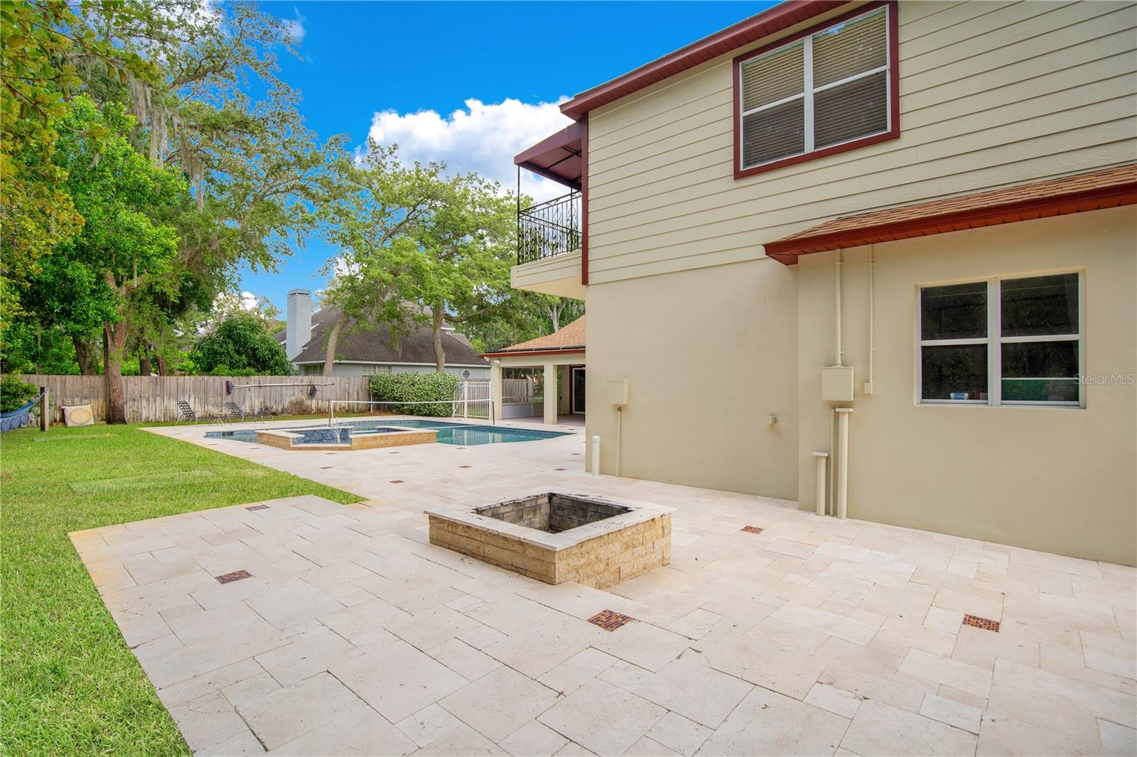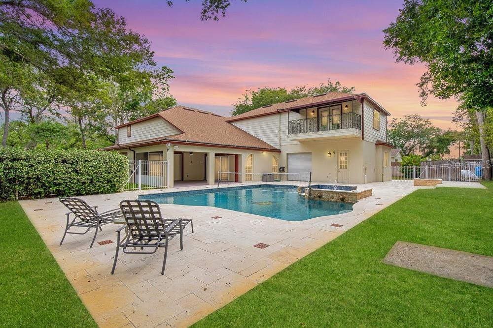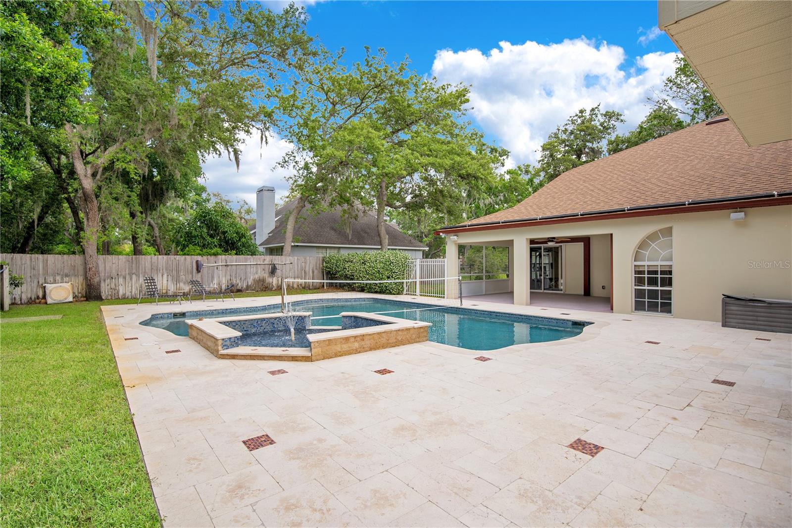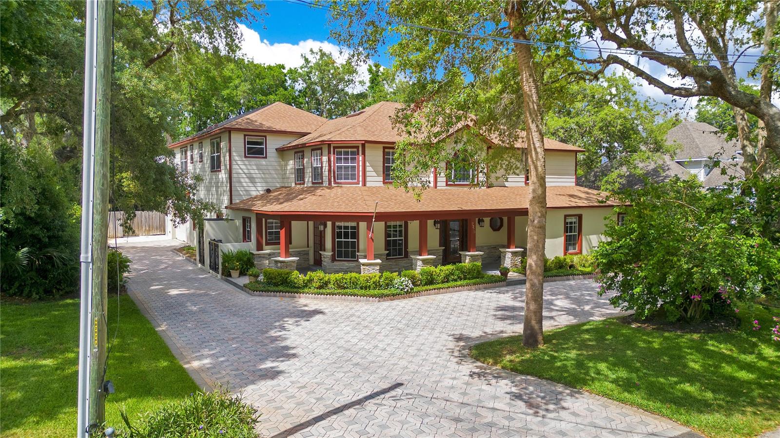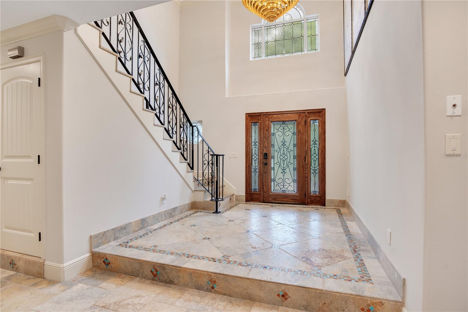Step into luxury living with this stunning custom-built home offering exclusive Lake Brantley access through the optional HOA. Boasting top-rated schools in the area, this 6-bedroom residence is a haven for family life and entertaining alike. Enter through the grand foyer, illuminated by a dazzling crystal chandelier and travertine flooring, setting the tone for timeless elegance throughout. Natural light floods the home, accentuating its warmth and inviting ambiance. Entertain in style in the formal dining room or relax in the spacious living room featuring vaulted ceilings and access to the lanai. The L-shaped eat-in kitchen is a chef's delight, equipped with custom solid wood cabinets, stainless steel appliances, and granite countertops. The first-floor master suite is a sanctuary of luxury, complete with crown molding, new carpet, and a unique built-in saltwater aquarium. The master bathroom offers a spa-like retreat with granite counters, beautiful tiles, and dual walk-in closets. Three generously sized bedrooms on the main level include a versatile home gym. Upstairs, discover a private bedroom with en suite bathroom, an office/study, and a third-floor retreat with a theater room, sixth bedroom, and game room with wet bar. Step outside to your own backyard oasis featuring a solar-heated, custom saltwater pool, travertine deck, fire pit, and covered patio. Additional highlights include a circular driveway, oversized garage with built-in workbench, central vacuum system, and ample storage options. This remarkable property is free from deed restrictions, allowing for RV or boat parking. Conveniently located in Longwood, enjoy easy access to local amenities and a vibrant community outdoor lifestyle. Experience luxury living at its finest - schedule your viewing today! Updates include brand new paint throughout the entire interior, a 2012 remodel, newer roof (2020) & HVAC system (2022). Security cameras, pre-wiring for a generator, and smart home capabilities add modern convenience. Act now to make this exquisite home yours! *Buyer incentive of $5,000 towards lender credits if Seller's Preferred Lender is used.*