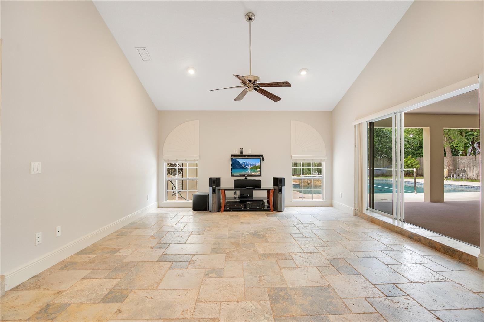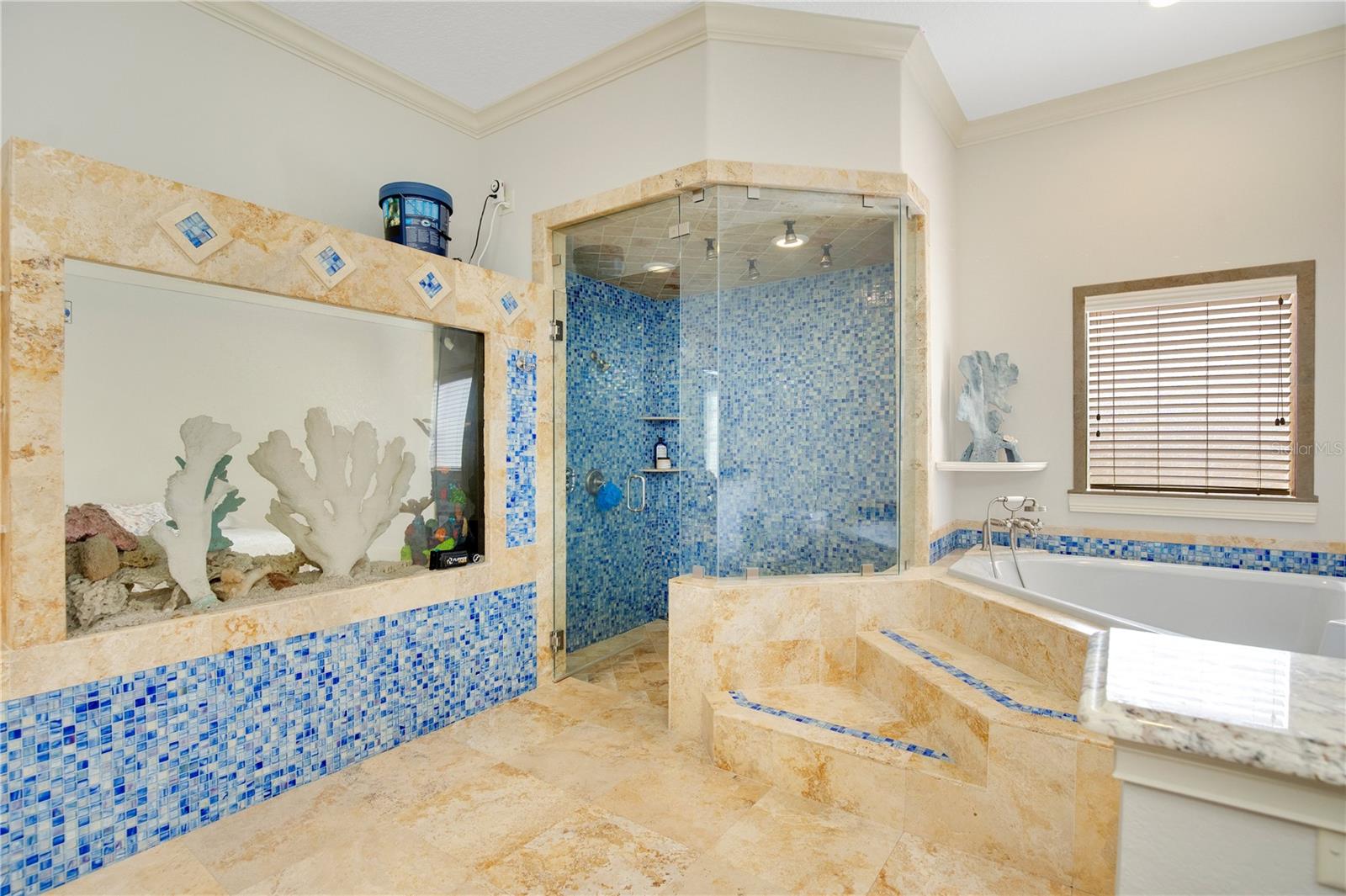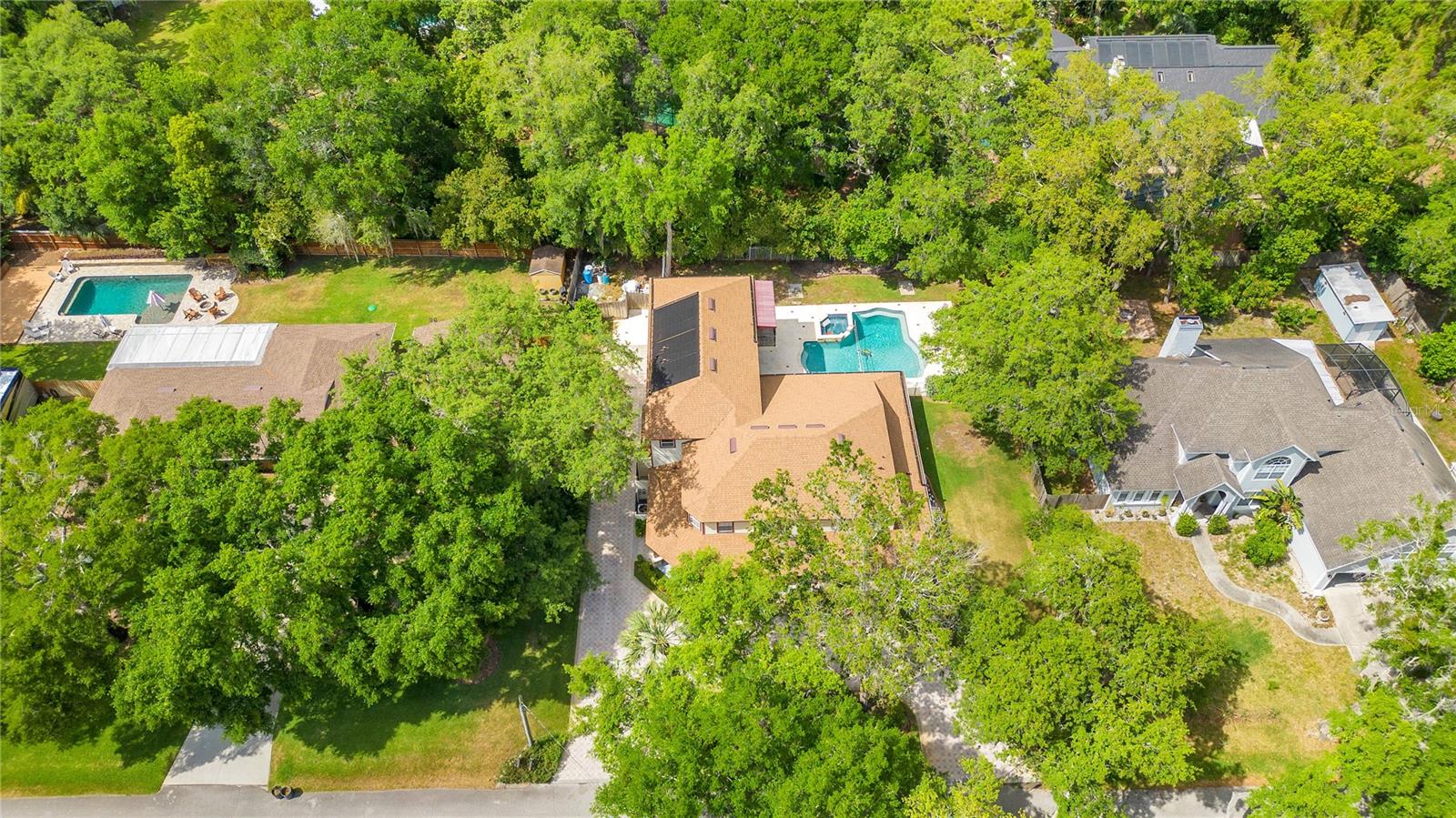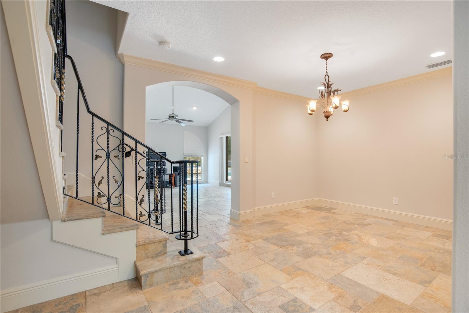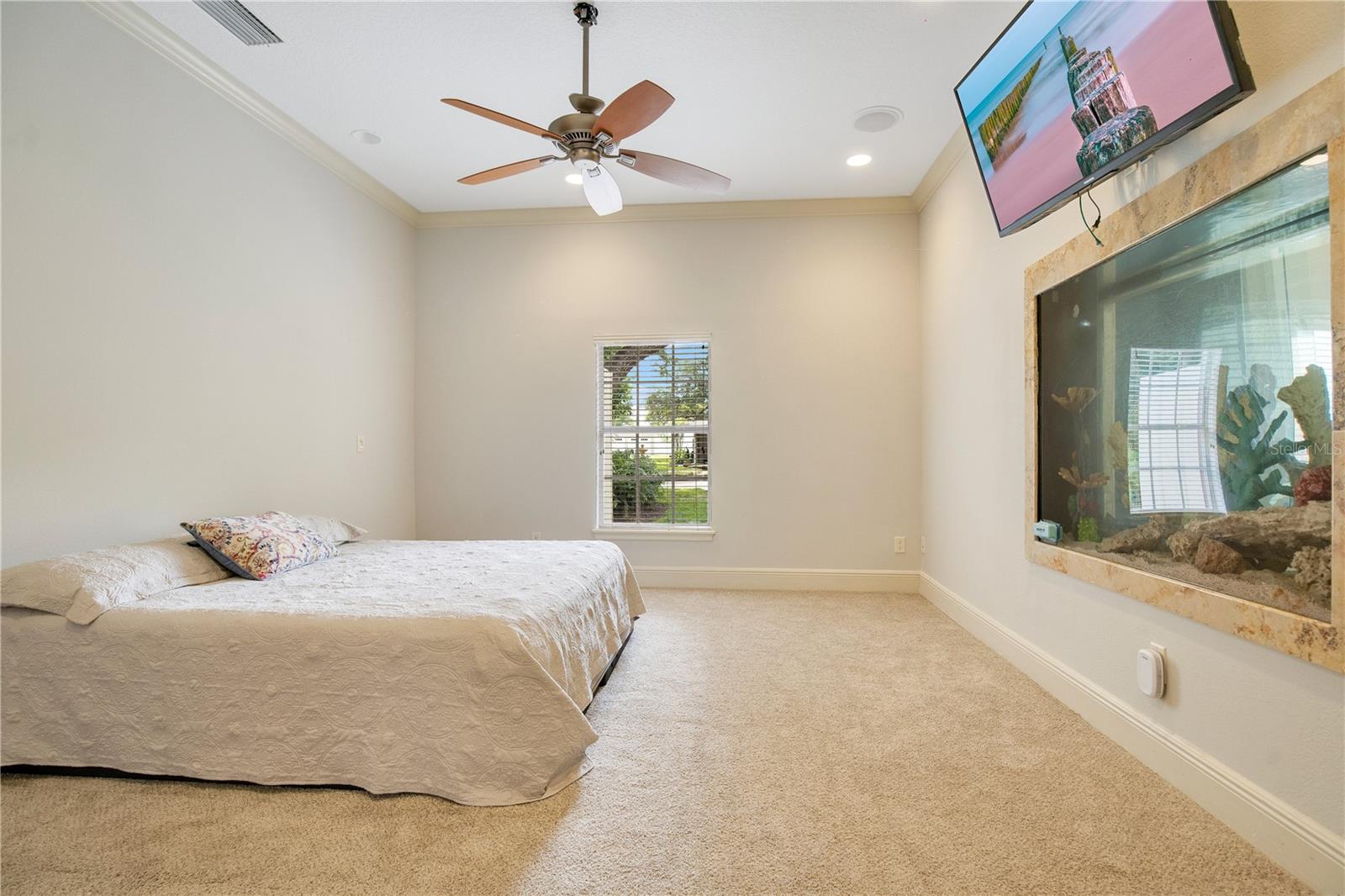 Step into luxury living with this stunning custom-built home offering exclusive Lake Brantley access through the optional HOA. Boasting top-rated schools in the area, this 6-bedroom residence is a haven for family life and entertaining alike. Enter through the grand foyer, illuminated by a dazzling crystal chandelier and travertine flooring, setting the tone for timeless elegance throughout. Natural light floods the home, accentuating its warmth and inviting ambiance. Entertain in style in the formal dining room or relax in the spacious living room featuring vaulted ceilings and access to the lanai. The L-shaped eat-in kitchen is a chef's delight, equipped with custom solid wood cabinets, stainless steel appliances, and granite countertops. The first-floor master suite is a sanctuary of luxury, complete with crown molding, new carpet, and a unique built-in saltwater aquarium. The master bathroom offers a spa-like retreat with granite counters, beautiful tiles, and dual walk-in closets. Three generously sized bedrooms on the main level include a versatile home gym. Upstairs, discover a private bedroom with en suite bathroom, an office/study, and a third-floor retreat with a theater room, sixth bedroom, and game room with wet bar. Step outside to your own backyard oasis featuring a solar-heated, custom saltwater pool, travertine deck, fire pit, and covered patio. Additional highlights include a circular driveway, oversized garage with built-in workbench, central vacuum system, and ample storage options. This remarkable property is free from deed restrictions, allowing for RV or boat parking. Conveniently located in Longwood, enjoy easy access to local amenities and a vibrant community outdoor lifestyle. Experience luxury living at its finest - schedule your viewing today! Updates include brand new paint throughout the entire interior, a 2012 remodel, newer roof (2020) & HVAC system (2022). Security cameras, pre-wiring for a generator, and smart home capabilities add modern convenience. Act now to make this exquisite home yours! *Buyer incentive of $5,000 towards lender credits if Seller's Preferred Lender is used.*