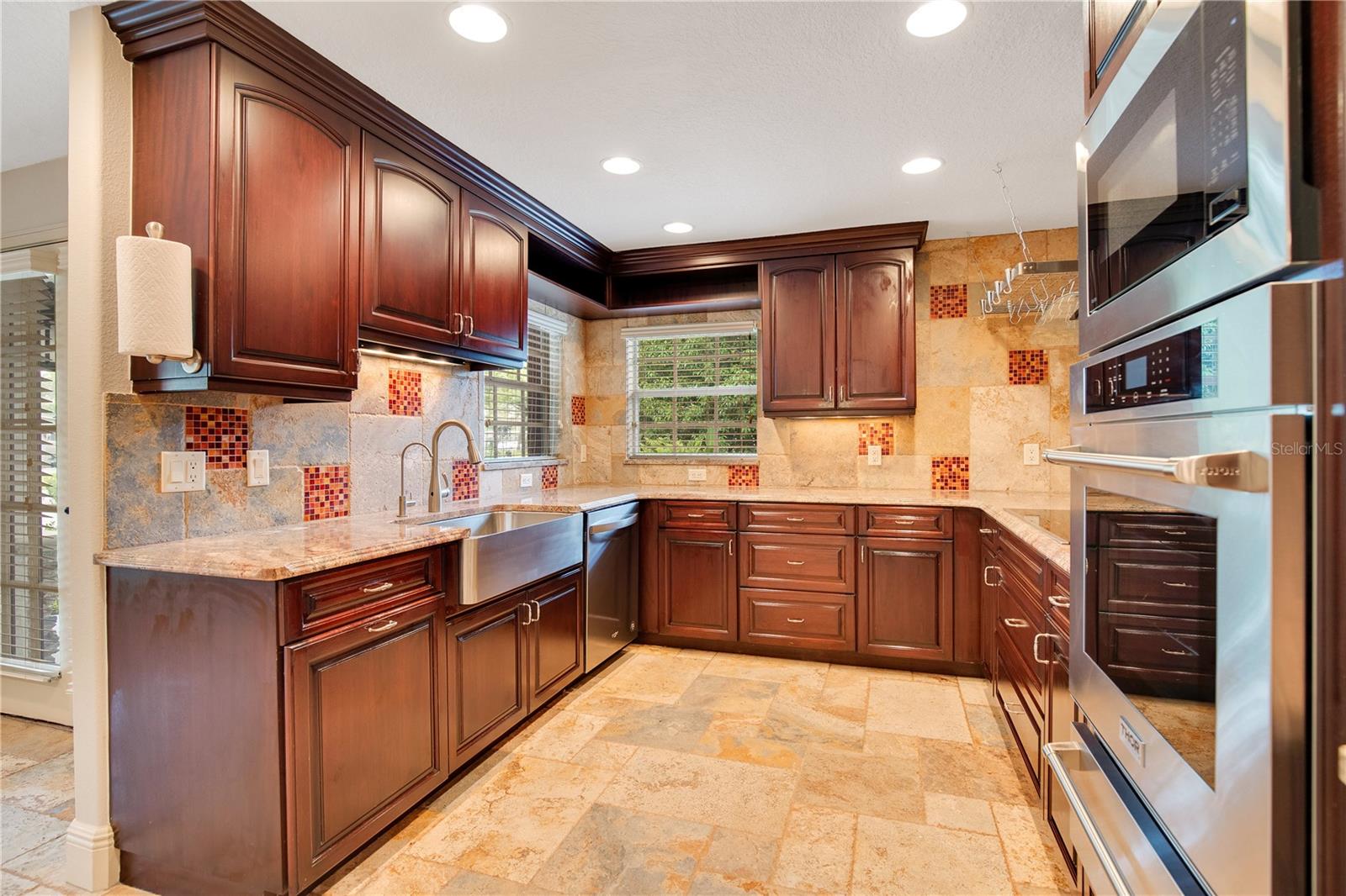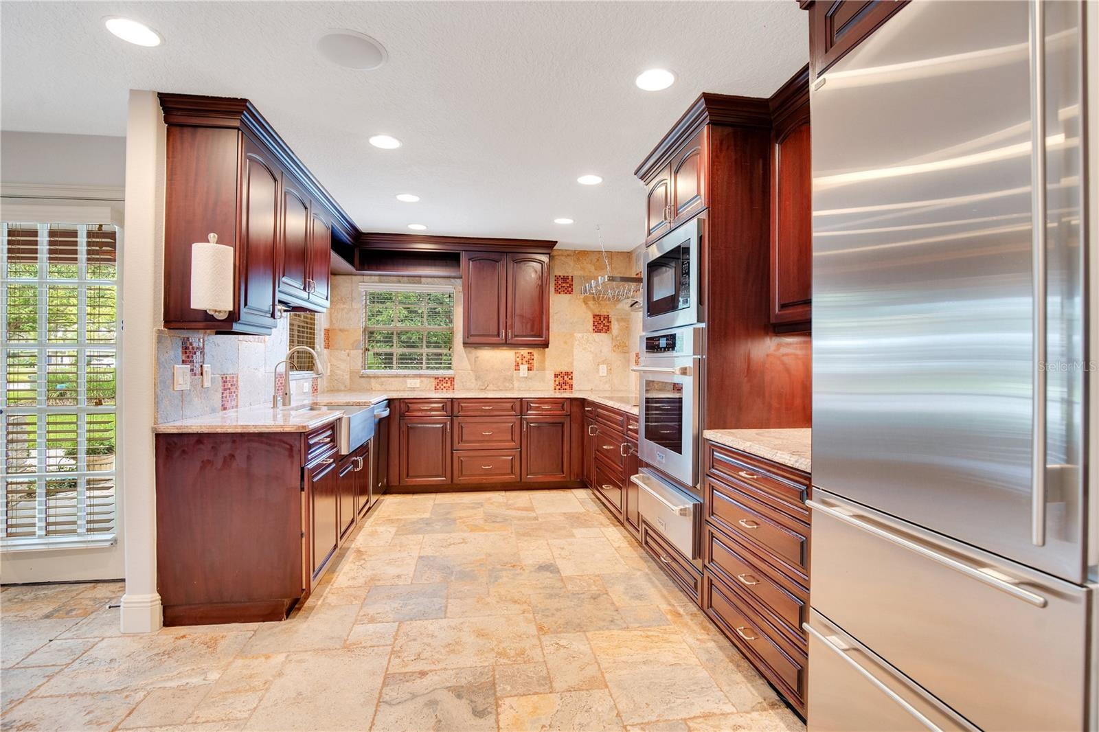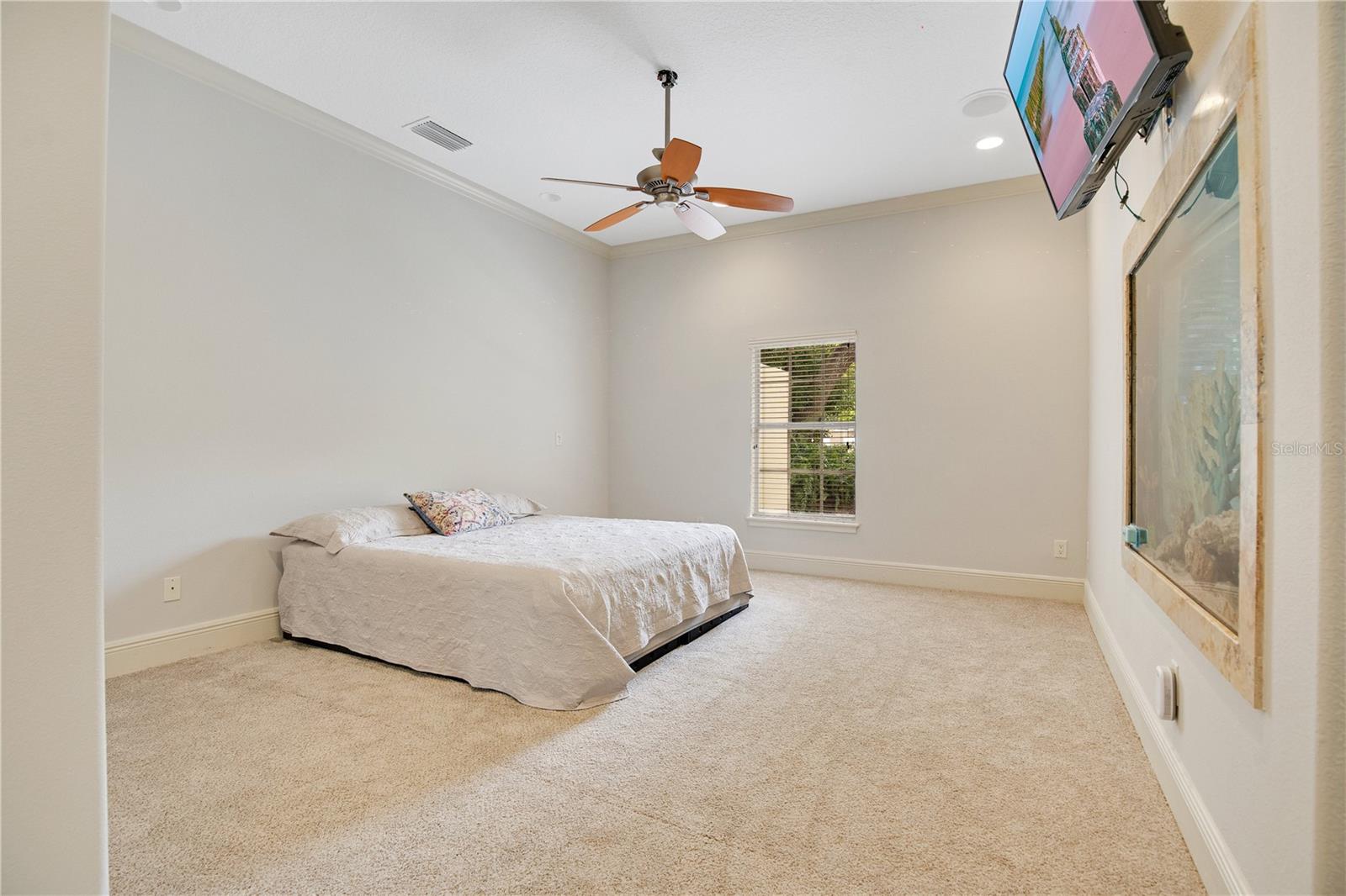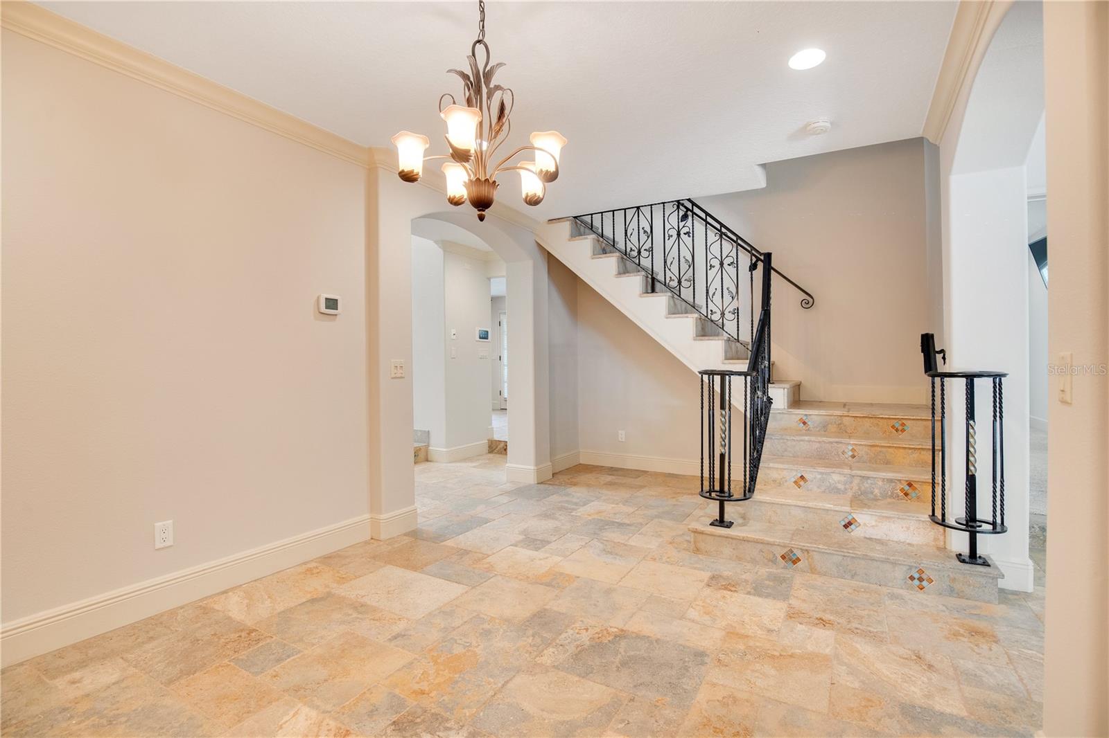 Step into luxury living with this stunning custom-built home offering exclusive Lake Brantley access through the optional HOA. Boasting top-rated schools in the area, this 6-bedroom residence is a haven for family life and entertaining alike. Enter through the grand foyer, illuminated by a dazzling crystal chandelier and travertine flooring, setting the tone for timeless elegance throughout. Natural light floods the home, accentuating its warmth and inviting ambiance. Entertain in style in the formal dining room or relax in the spacious living room featuring vaulted ceilings and access to the lanai. The L-shaped eat-in kitchen is a chef's delight, equipped with custom solid wood cabinets, stainless steel appliances, and granite countertops. The first-floor master suite is a sanctuary of luxury, complete with crown molding, new carpet, and a unique built-in saltwater aquarium. The master bathroom offers a spa-like retreat with granite counters, beautiful tiles, and dual walk-in closets. Three generously sized bedrooms on the main level include a versatile home gym. Upstairs, discover a private bedroom with en suite bathroom, an office/study, and a third-floor retreat with a theater room, sixth bedroom, and game room with wet bar. Step outside to your own backyard oasis featuring a solar-heated, custom saltwater pool, travertine deck, fire pit, and covered patio. Additional highlights include a circular driveway, oversized garage with built-in workbench, central vacuum system, and ample storage options. This remarkable property is free from deed restrictions, allowing for RV or boat parking. Conveniently located in Longwood, enjoy easy access to local amenities and a vibrant community outdoor lifestyle. Experience luxury living at its finest - schedule your viewing today! Updates include brand new paint throughout the entire interior, a 2012 remodel, newer roof (2020) & HVAC system (2022). Security cameras, pre-wiring for a generator, and smart home capabilities add modern convenience. Act now to make this exquisite home yours! *Buyer incentive of $5,000 towards lender credits if Seller's Preferred Lender is used.*
