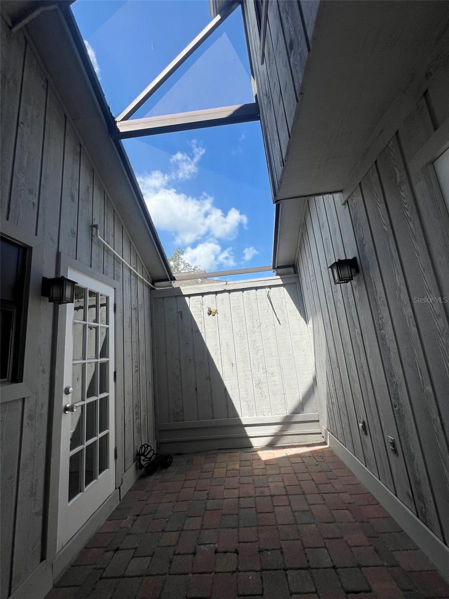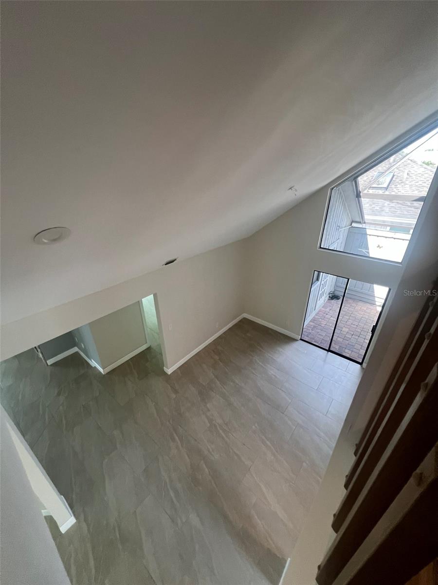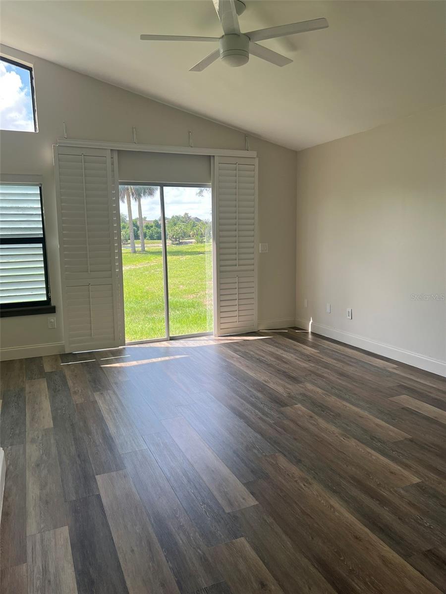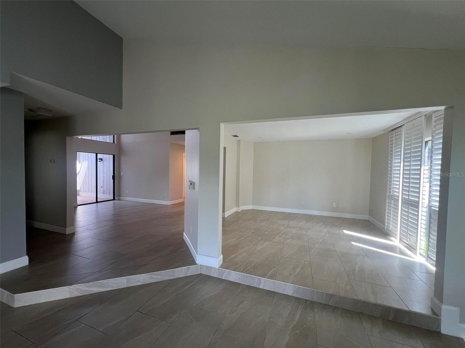 This 3 bedroom two two-story home in the heart of Longwood is luxury and serenity. Drive through the tree canopy-lined streets of Sabal to a beautifully landscaped culdesac where this 2 story home awaits. The home sits on a former golf course that is now a conservation area so you will never have rear neighbors. As you enter the home, the vaulted ceilings, large windows, and private courtyard create the perfect lighting. The large Porcelain wood-grained tiles give the home an open natural feeling. To the right of the foyer is a formal dining room with sliding glass doors that lead you to the private screened-in courtyard. This is the perfect space for a private garden or an outdoor kitchen with easy access to your dining room. Across from the dining room is the formal living space that can be used as a home office, game room/bonus room, or easily enclose the walls to make a fourth bedroom. The formal living room is complete with white shutter window treatments. Take a step down from the formal living room into the family room with vaulted ceilings, a wood-burning fireplace, and sliding glass doors that lead you to the screened-in lanai. Enjoy your morning coffee with beautiful views of the water feature and open land. Head through the living room into the spacious kitchen with Quartz countertops, white cabinets, and a large eat-in area that overlooks the water views. French doors from the kitchen give you access to the lanai. The primary bedroom is on the first floor with Luxury vinyl flooring and sliding shutter window treatments to allow you to take in the water views each morning. The en suite has double sinks and an oversized walk-in shower with frameless shower doors giving the bathroom an open feel. Step right into the private courtyard from the Primary bathroom to start your day in the sunlight completely private. The laundry room is inside the home with added storage cabinets. The garage is through the laundry room and comes complete with storage and plumbing for a sink. There is a half bath on the first floor for your guests. Bedrooms 2 and 3 are upstairs with a full bathroom in between and a lofted bonus space perfect for a home office. Both bedrooms have Luxury Vinyl flooring that is water-resistant. The Sabal Point Association is responsible for maintaining the grass in the front of the home making lawn maintenance a breeze maintaining only the sides and rear landscaping. This home had a new roof installed in 2020 along with a solar powered roof fan. One of the AC units was replaced in 2024 .
