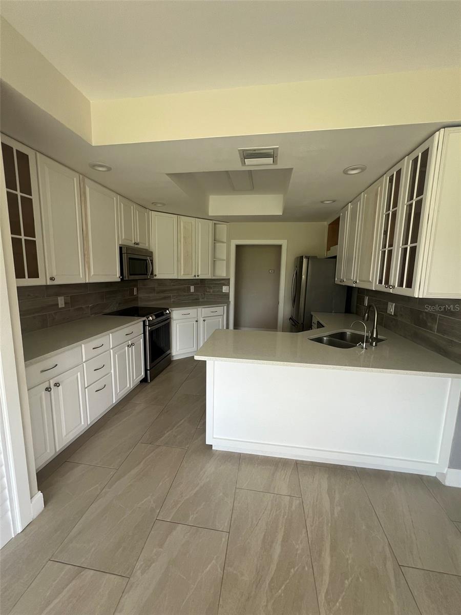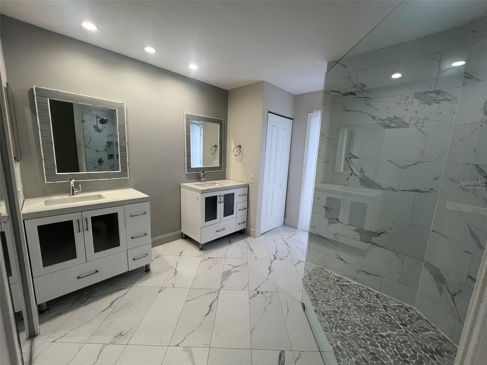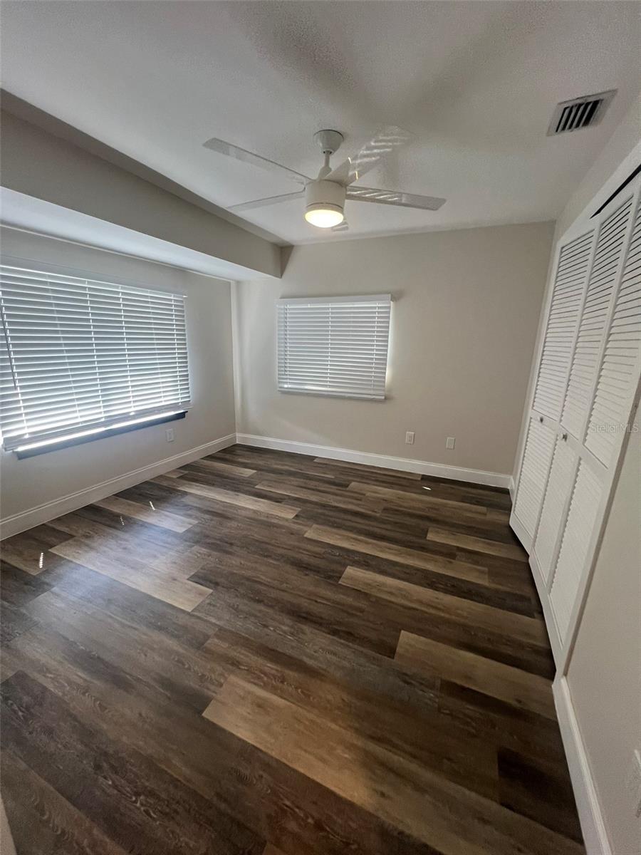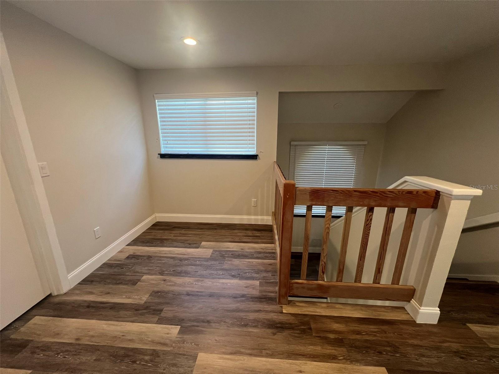 This 3 bedroom two two-story home in the heart of Longwood is luxury and serenity. Drive through the tree canopy-lined streets of Sabal to a beautifully landscaped culdesac where this 2 story home awaits. The home sits on a former golf course that is now a conservation area so you will never have rear neighbors. As you enter the home, the vaulted ceilings, large windows, and private courtyard create the perfect lighting. The large Porcelain wood-grained tiles give the home an open natural feeling. To the right of the foyer is a formal dining room with sliding glass doors that lead you to the private screened-in courtyard. This is the perfect space for a private garden or an outdoor kitchen with easy access to your dining room. Across from the dining room is the formal living space that can be used as a home office, game room/bonus room, or easily enclose the walls to make a fourth bedroom. The formal living room is complete with white shutter window treatments. Take a step down from the formal living room into the family room with vaulted ceilings, a wood-burning fireplace, and sliding glass doors that lead you to the screened-in lanai. Enjoy your morning coffee with beautiful views of the water feature and open land. Head through the living room into the spacious kitchen with Quartz countertops, white cabinets, and a large eat-in area that overlooks the water views. French doors from the kitchen give you access to the lanai. The primary bedroom is on the first floor with Luxury vinyl flooring and sliding shutter window treatments to allow you to take in the water views each morning. The en suite has double sinks and an oversized walk-in shower with frameless shower doors giving the bathroom an open feel. Step right into the private courtyard from the Primary bathroom to start your day in the sunlight completely private. The laundry room is inside the home with added storage cabinets. The garage is through the laundry room and comes complete with storage and plumbing for a sink. There is a half bath on the first floor for your guests. Bedrooms 2 and 3 are upstairs with a full bathroom in between and a lofted bonus space perfect for a home office. Both bedrooms have Luxury Vinyl flooring that is water-resistant. The Sabal Point Association is responsible for maintaining the grass in the front of the home making lawn maintenance a breeze maintaining only the sides and rear landscaping. This home had a new roof installed in 2020 along with a solar powered roof fan. One of the AC units was replaced in 2024 .