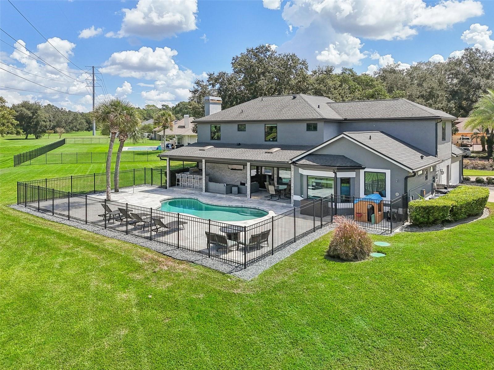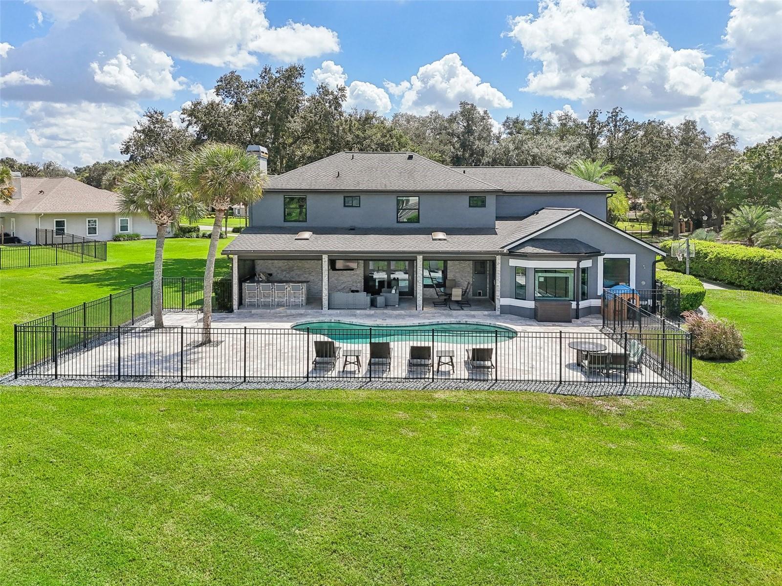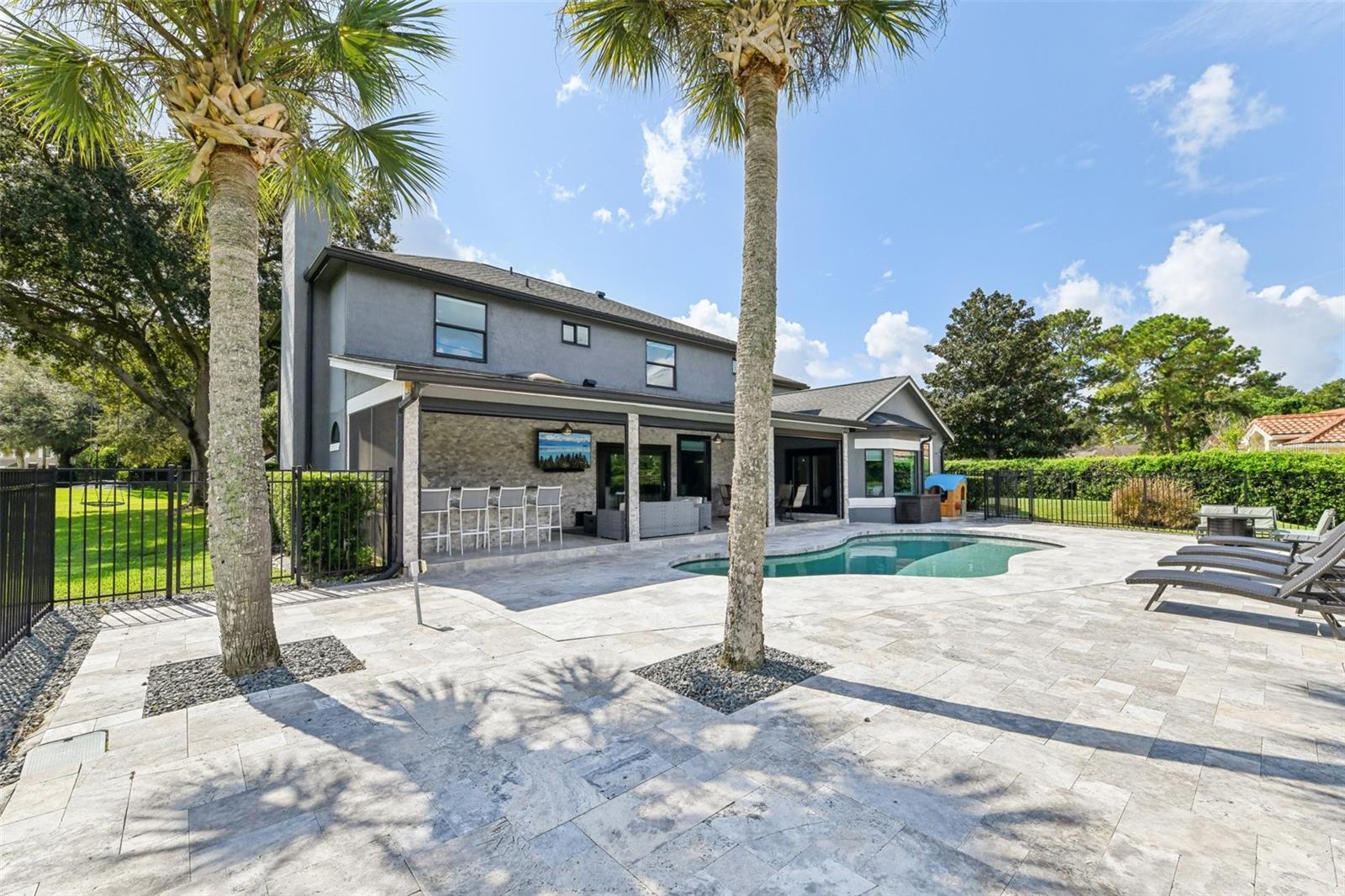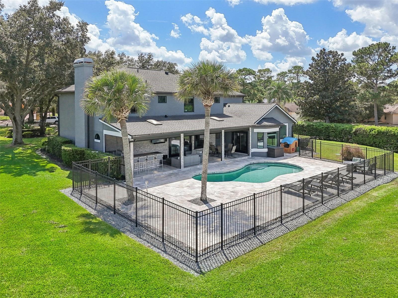 Welcome to this magnificent 6 bedroom estate located in the exclusive Whispering Winds community, nestled along the Markham Woods Corridor. Offering over 1.66 acres of land, this expansive property is perfect for those who love to entertain, both indoors and outdoors, while also enjoying privacy, tranquility and nature. The home’s sprawling layout, stunning upgrades, pond view, and ideal location make it a dream come true. As you approach the home, you are greeted by a circular driveway, 3-car side entry garage, and a grand entrance. The exterior of the home has been beautifully enhanced with a new front door and all new windows, including two sliding glass doors, updated in 2023. The security of the home is also top-notch, featuring eight exterior cameras and a fire alarm system that can be remotely monitored for peace of mind. Step inside to find luxury vinyl plank flooring on the main level, installed in 2020, along with crown molding adorning the spacious living areas. The first floor offers a masterful layout with the primary suite conveniently located downstairs. The suite features sliding doors out the the beautiful open air fenced pool and covered lanai with travertine pavers. The ensuite bathroom includes a large 10x12 walk in closet The heart of the home is the open-concept kitchen and living area. The kitchen, completely renovated in 2022, is a chef’s dream, boasting all new appliances, including a double oven, an expansive island with seating, quartzite countertops, and an abundance of cabinetry. In the living room you can enjoy the cozy ambiance of a wood-burning fireplace with built-ins for storage and decorating. Off the living room is an office, perfect for remote work or study. Downstairs you will also find a large dining space and a renovated half bath, completed in 2022. Upstairs, you’ll find five additional bedrooms, one of which is currently being used as a media room. The thoughtful design includes a newly renovated Jack-and-Jill bathroom shared between bedrooms three and four, while another newly renovated bathroom serves the media room and other bedrooms. The outdoor space is an entertainer’s paradise with an open-air pool area, renovated in 2020, features travertine pavers, an extended patio, and a summer kitchen with custom stonework on the columns and wall. A remote roll-down screen ensures comfort year-round, while the pond view and expansive backyard provides a serene backdrop. The property also boasts an invisible fence for pets, giving them the freedom to roam safely. This home also includes a water softener and filtration system, and several key upgrades such as a new roof in 2020, two new A/C units installed in 2019, a new drain field in 2015, and a septic pump replaced in 2023. The main electrical panel has also been updated, ensuring worry-free living for years to come. Located just minutes from Wekiva Springs, Seminole Wekiva Trail, and an array of shopping, dining, and entertainment options, this home offers the perfect blend of luxury, convenience, and serenity. It also provides easy access to I-4, Downtown Lake Mary, Heathrow, and Longwood, making commuting a breeze. If you’re looking for an estate that offers space, style, and an unbeatable location in one of Orlando’s premier school zones, this home in Whispering Winds is not to be missed.
