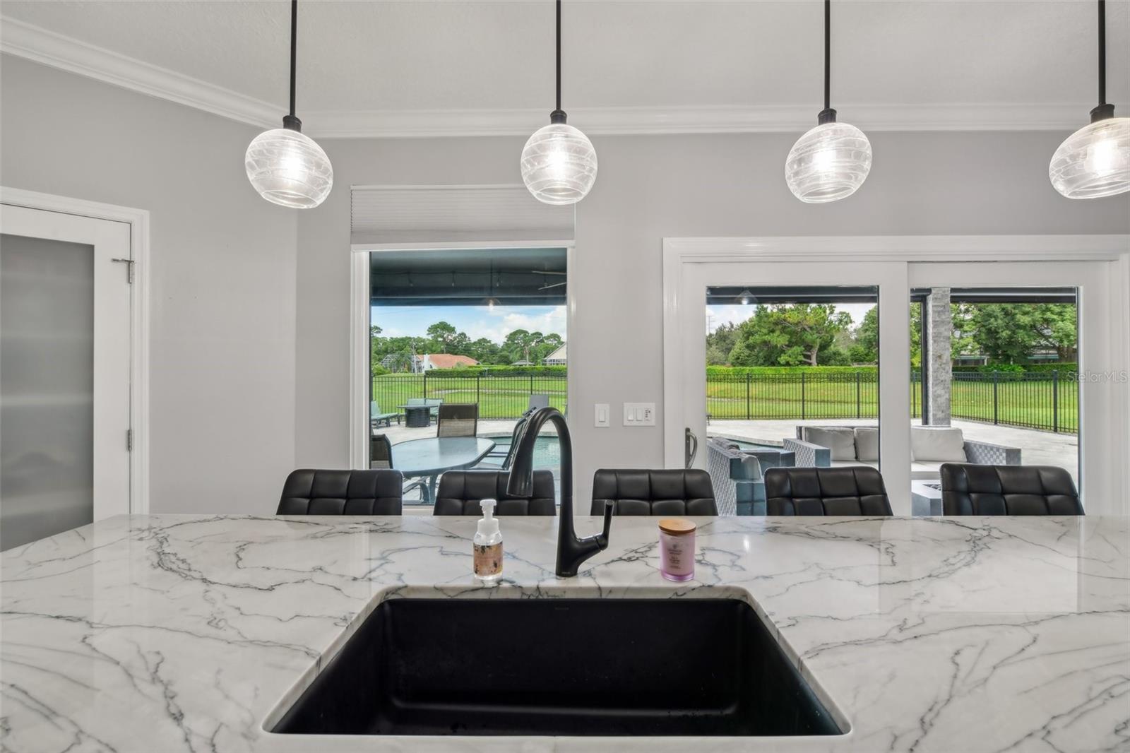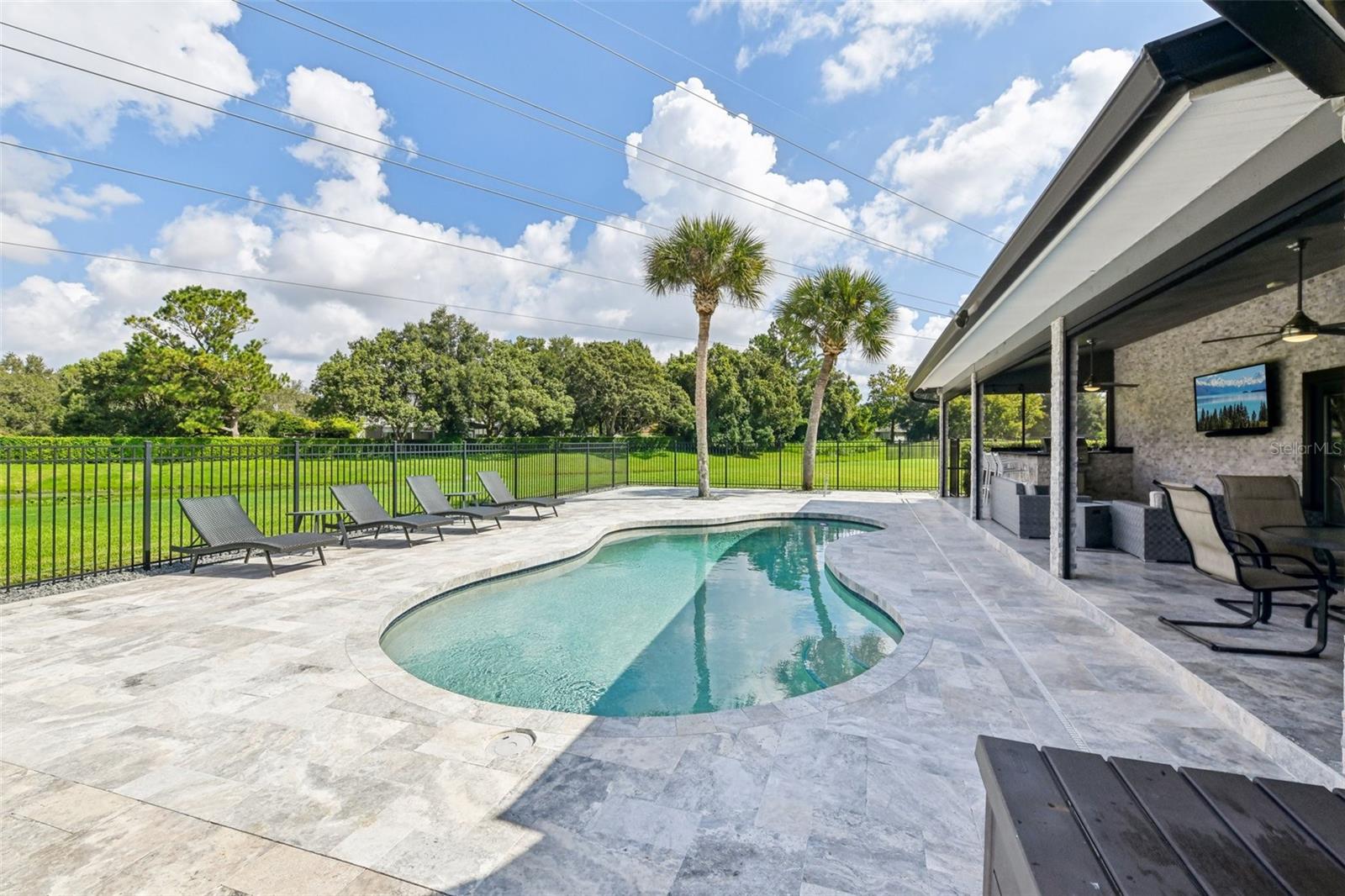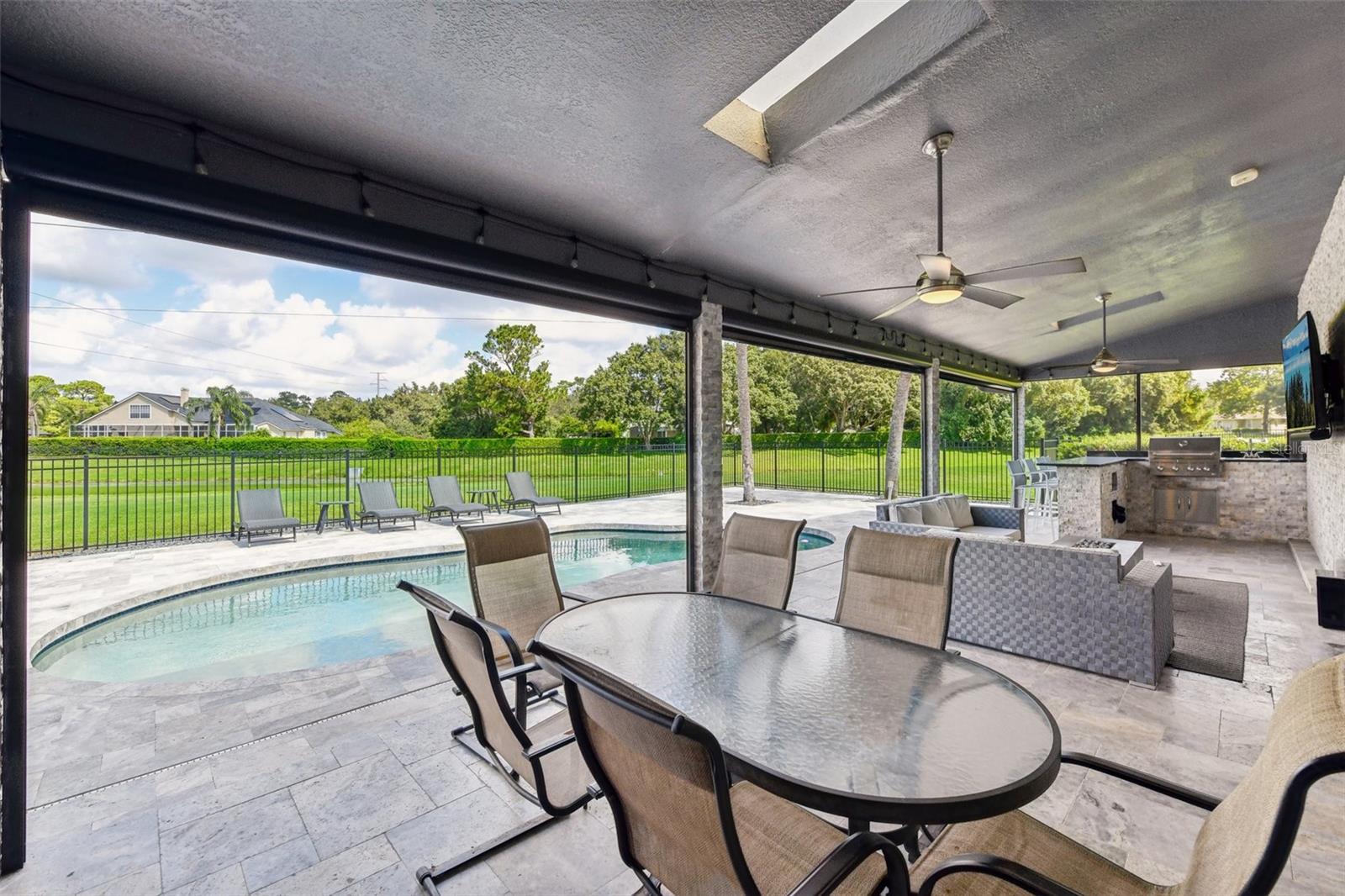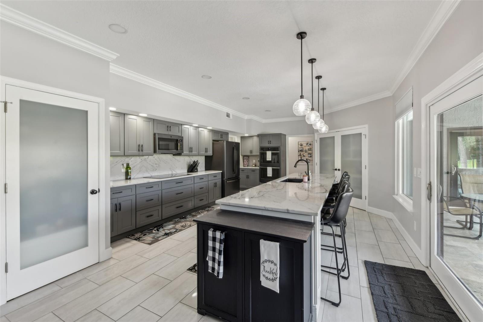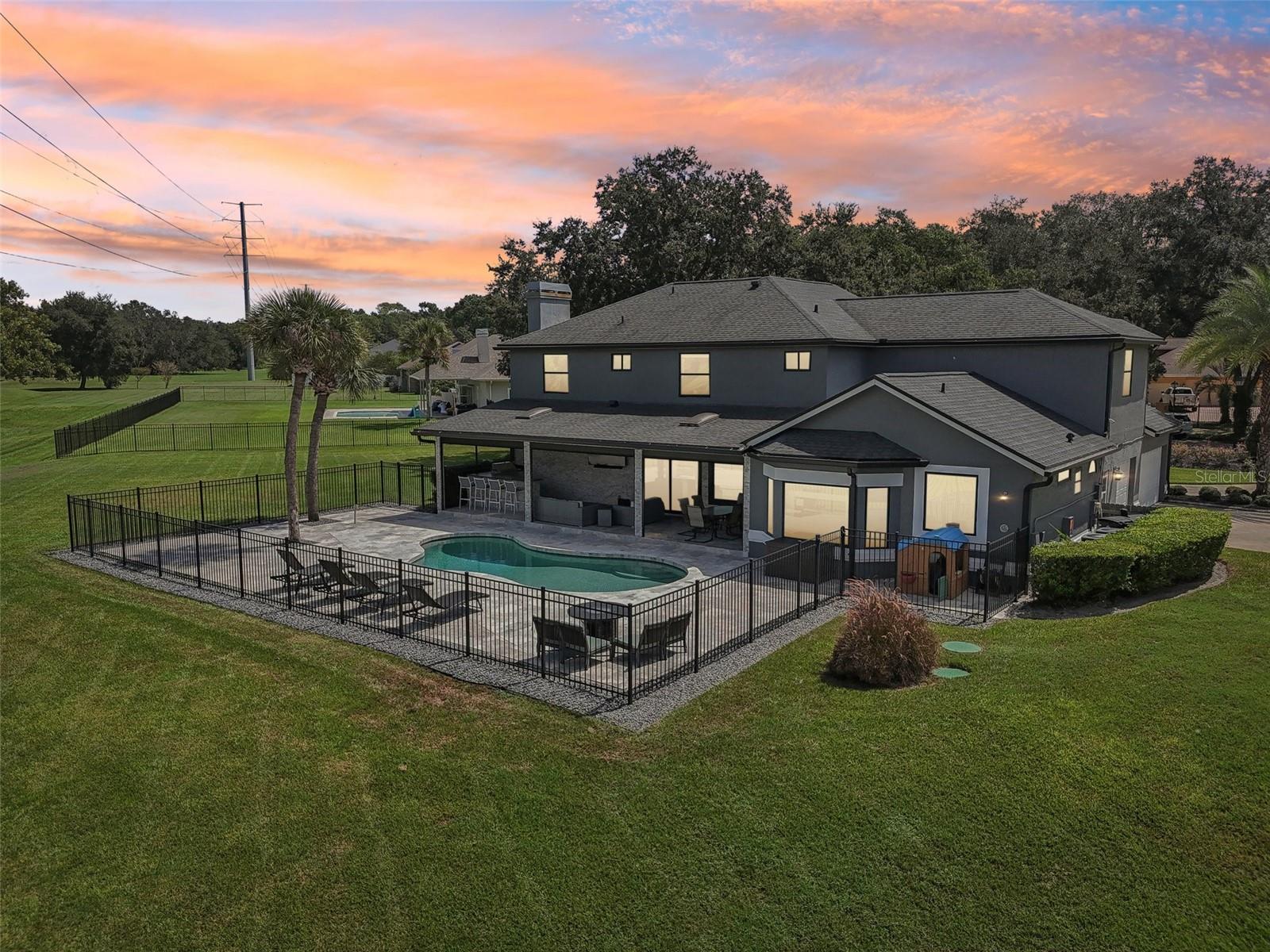 Welcome to this magnificent 6 bedroom estate located in the exclusive Whispering Winds community, nestled along the Markham Woods Corridor. Offering over 1.66 acres of land, this expansive property is perfect for those who love to entertain, both indoors and outdoors, while also enjoying privacy, tranquility and nature. The home’s sprawling layout, stunning upgrades, pond view, and ideal location make it a dream come true. As you approach the home, you are greeted by a circular driveway, 3-car side entry garage, and a grand entrance. The exterior of the home has been beautifully enhanced with a new front door and all new windows, including two sliding glass doors, updated in 2023. The security of the home is also top-notch, featuring eight exterior cameras and a fire alarm system that can be remotely monitored for peace of mind. Step inside to find luxury vinyl plank flooring on the main level, installed in 2020, along with crown molding adorning the spacious living areas. The first floor offers a masterful layout with the primary suite conveniently located downstairs. The suite features sliding doors out the the beautiful open air fenced pool and covered lanai with travertine pavers. The ensuite bathroom includes a large 10x12 walk in closet The heart of the home is the open-concept kitchen and living area. The kitchen, completely renovated in 2022, is a chef’s dream, boasting all new appliances, including a double oven, an expansive island with seating, quartzite countertops, and an abundance of cabinetry. In the living room you can enjoy the cozy ambiance of a wood-burning fireplace with built-ins for storage and decorating. Off the living room is an office, perfect for remote work or study. Downstairs you will also find a large dining space and a renovated half bath, completed in 2022. Upstairs, you’ll find five additional bedrooms, one of which is currently being used as a media room. The thoughtful design includes a newly renovated Jack-and-Jill bathroom shared between bedrooms three and four, while another newly renovated bathroom serves the media room and other bedrooms. The outdoor space is an entertainer’s paradise with an open-air pool area, renovated in 2020, features travertine pavers, an extended patio, and a summer kitchen with custom stonework on the columns and wall. A remote roll-down screen ensures comfort year-round, while the pond view and expansive backyard provides a serene backdrop. The property also boasts an invisible fence for pets, giving them the freedom to roam safely. This home also includes a water softener and filtration system, and several key upgrades such as a new roof in 2020, two new A/C units installed in 2019, a new drain field in 2015, and a septic pump replaced in 2023. The main electrical panel has also been updated, ensuring worry-free living for years to come. Located just minutes from Wekiva Springs, Seminole Wekiva Trail, and an array of shopping, dining, and entertainment options, this home offers the perfect blend of luxury, convenience, and serenity. It also provides easy access to I-4, Downtown Lake Mary, Heathrow, and Longwood, making commuting a breeze. If you’re looking for an estate that offers space, style, and an unbeatable location in one of Orlando’s premier school zones, this home in Whispering Winds is not to be missed.