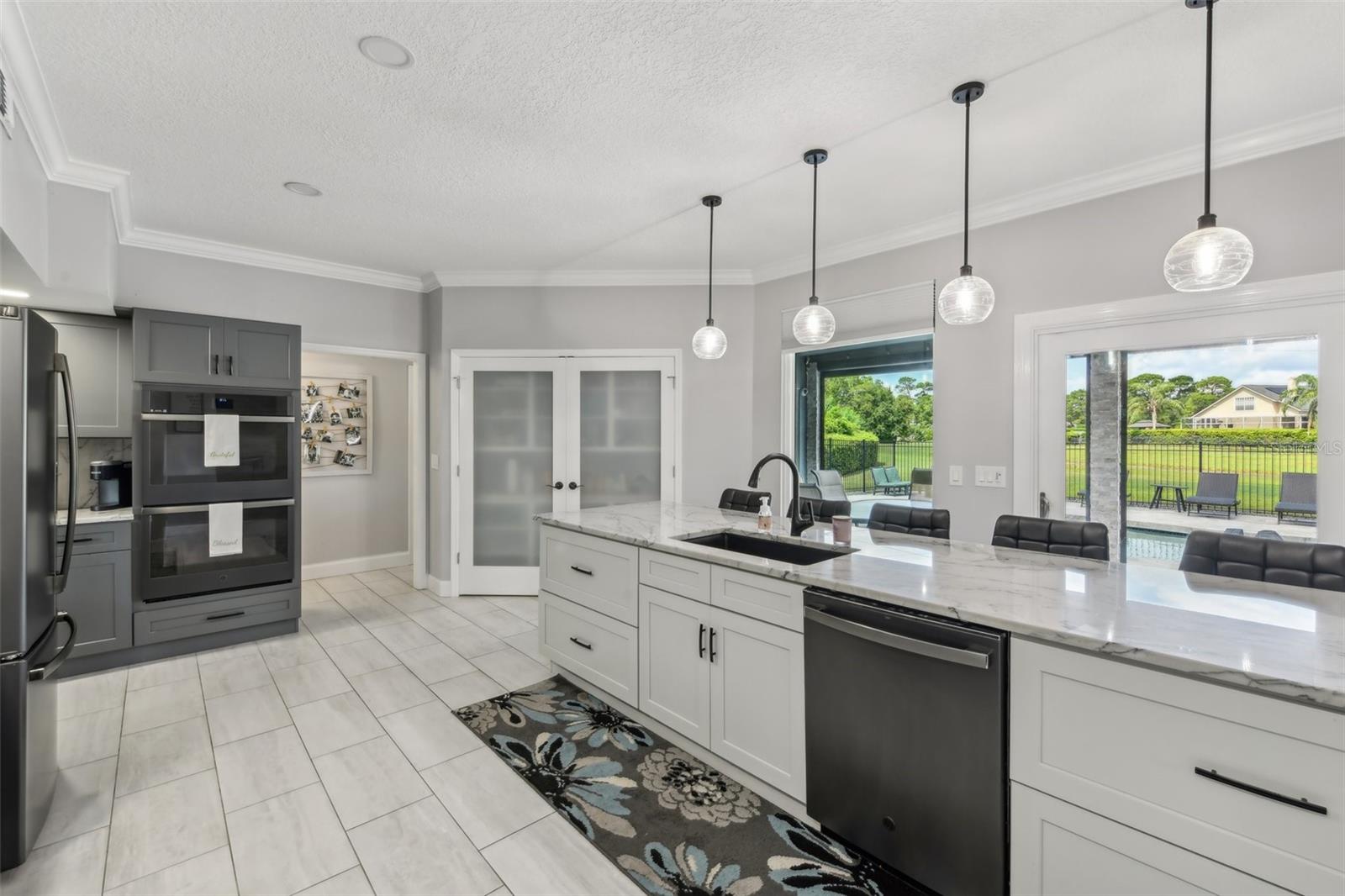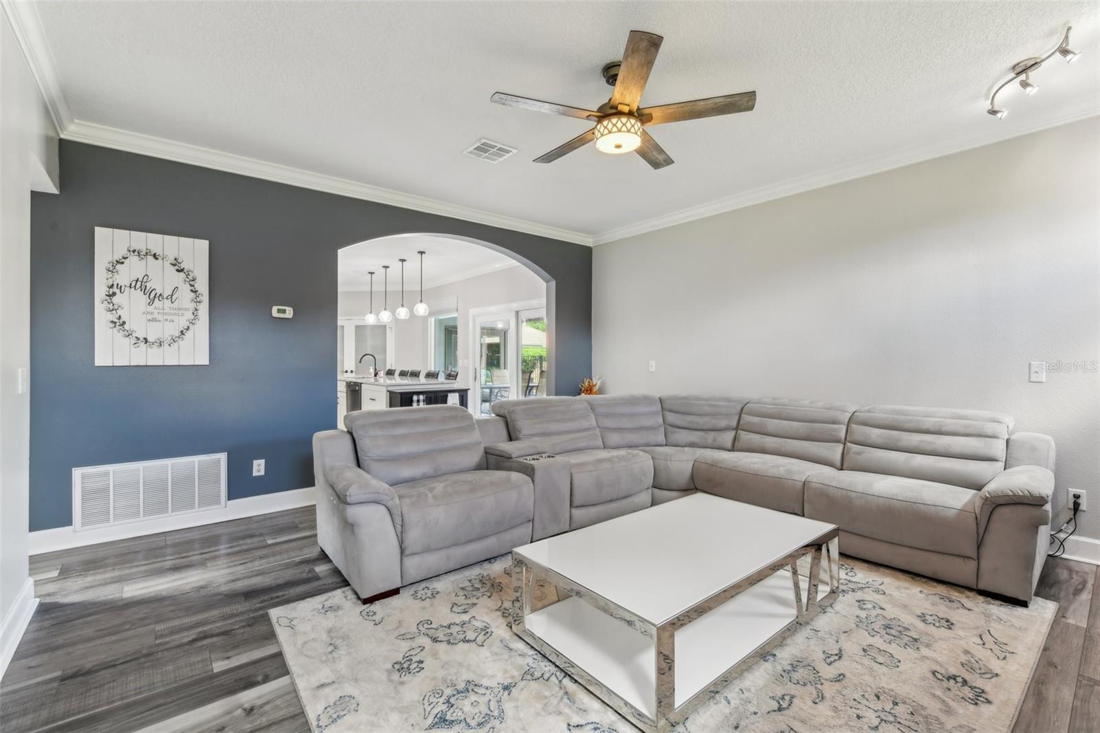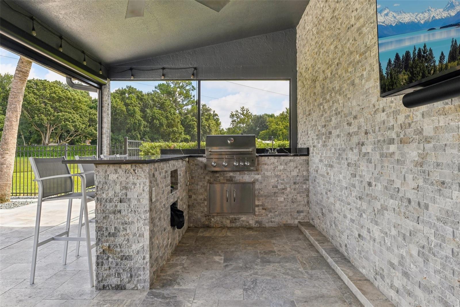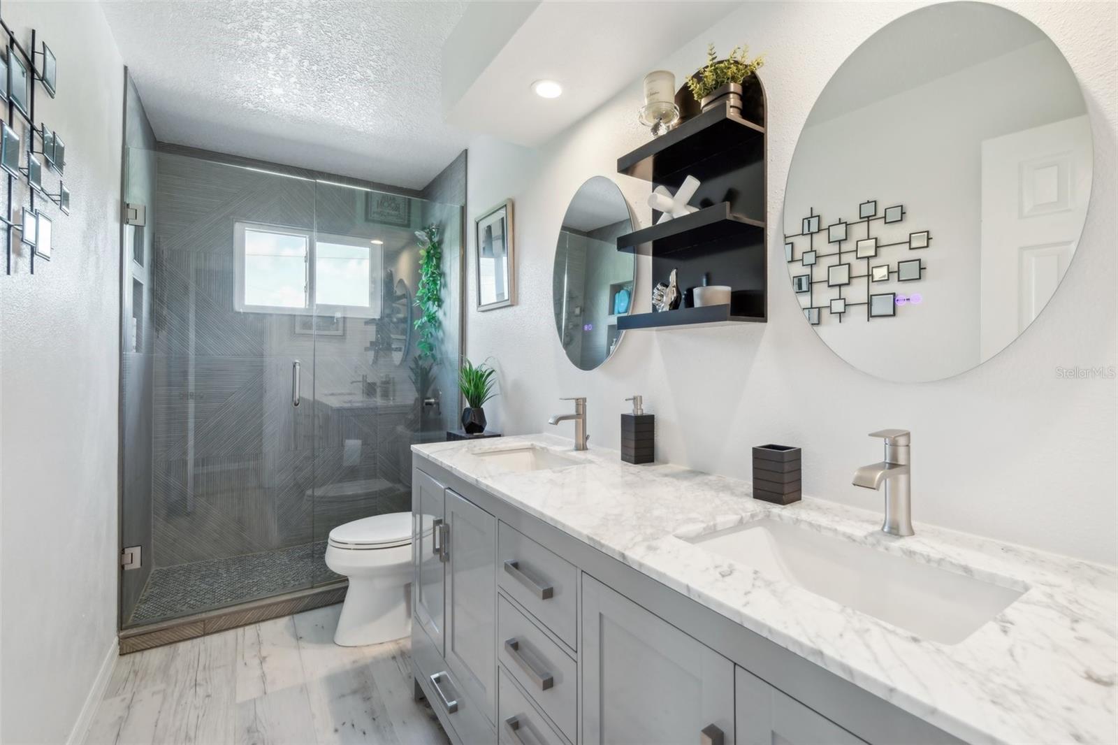 Welcome to this magnificent 6 bedroom estate located in the exclusive Whispering Winds community, nestled along the Markham Woods Corridor. Offering over 1.66 acres of land, this expansive property is perfect for those who love to entertain, both indoors and outdoors, while also enjoying privacy, tranquility and nature. The home’s sprawling layout, stunning upgrades, pond view, and ideal location make it a dream come true. As you approach the home, you are greeted by a circular driveway, 3-car side entry garage, and a grand entrance. The exterior of the home has been beautifully enhanced with a new front door and all new windows, including two sliding glass doors, updated in 2023. The security of the home is also top-notch, featuring eight exterior cameras and a fire alarm system that can be remotely monitored for peace of mind. Step inside to find luxury vinyl plank flooring on the main level, installed in 2020, along with crown molding adorning the spacious living areas. The first floor offers a masterful layout with the primary suite conveniently located downstairs. The suite features sliding doors out the the beautiful open air fenced pool and covered lanai with travertine pavers. The ensuite bathroom includes a large 10x12 walk in closet The heart of the home is the open-concept kitchen and living area. The kitchen, completely renovated in 2022, is a chef’s dream, boasting all new appliances, including a double oven, an expansive island with seating, quartzite countertops, and an abundance of cabinetry. In the living room you can enjoy the cozy ambiance of a wood-burning fireplace with built-ins for storage and decorating. Off the living room is an office, perfect for remote work or study. Downstairs you will also find a large dining space and a renovated half bath, completed in 2022. Upstairs, you’ll find five additional bedrooms, one of which is currently being used as a media room. The thoughtful design includes a newly renovated Jack-and-Jill bathroom shared between bedrooms three and four, while another newly renovated bathroom serves the media room and other bedrooms. The outdoor space is an entertainer’s paradise with an open-air pool area, renovated in 2020, features travertine pavers, an extended patio, and a summer kitchen with custom stonework on the columns and wall. A remote roll-down screen ensures comfort year-round, while the pond view and expansive backyard provides a serene backdrop. The property also boasts an invisible fence for pets, giving them the freedom to roam safely. This home also includes a water softener and filtration system, and several key upgrades such as a new roof in 2020, two new A/C units installed in 2019, a new drain field in 2015, and a septic pump replaced in 2023. The main electrical panel has also been updated, ensuring worry-free living for years to come. Located just minutes from Wekiva Springs, Seminole Wekiva Trail, and an array of shopping, dining, and entertainment options, this home offers the perfect blend of luxury, convenience, and serenity. It also provides easy access to I-4, Downtown Lake Mary, Heathrow, and Longwood, making commuting a breeze. If you’re looking for an estate that offers space, style, and an unbeatable location in one of Orlando’s premier school zones, this home in Whispering Winds is not to be missed.
