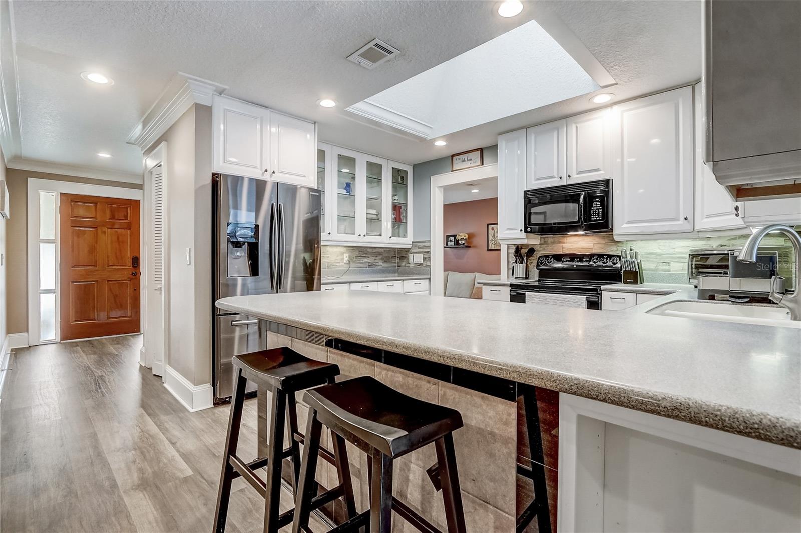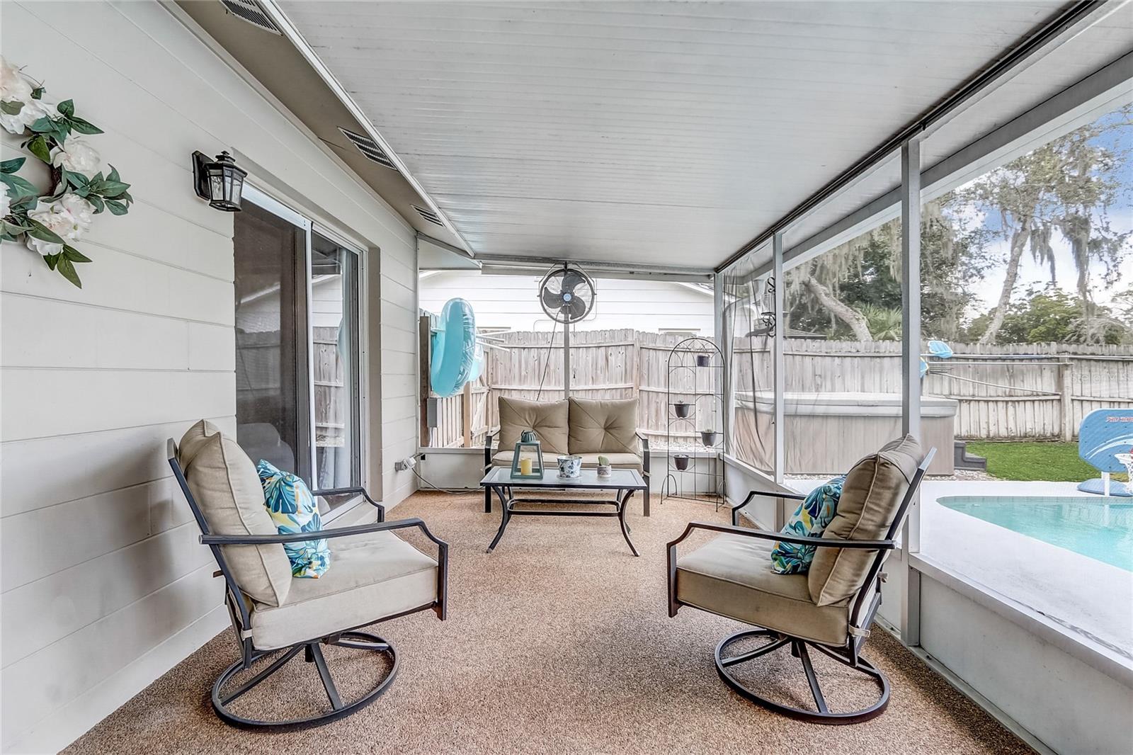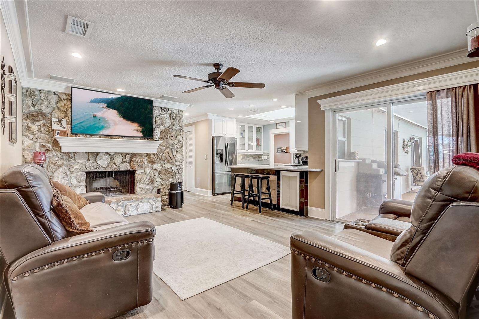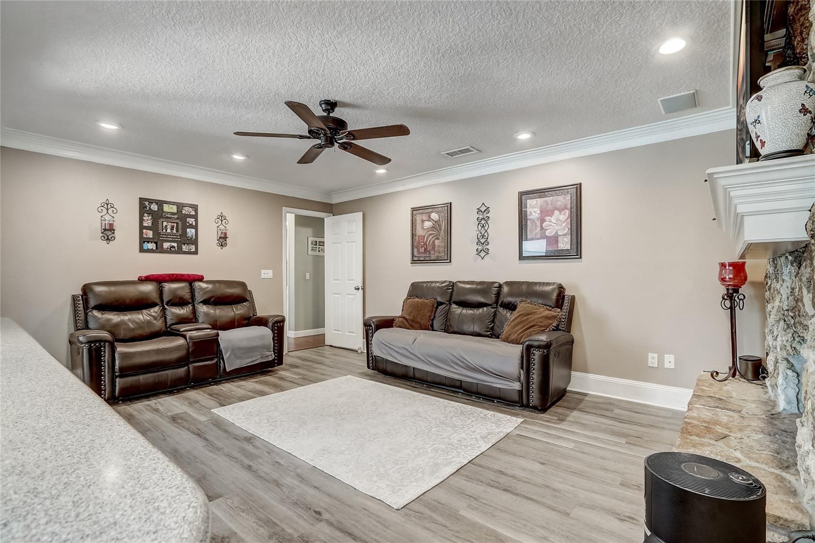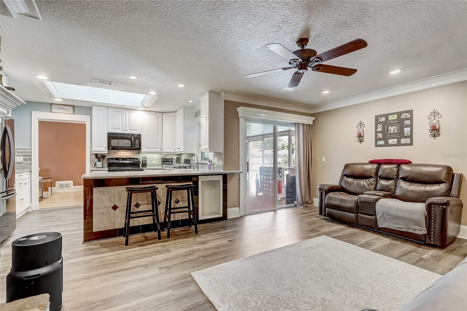 Welcome to this charming 4-bedroom, 2-bath home in the picturesque and well-established WEKIVA HUNT CLUB neighborhood, located within the highly sought-after LAKE BRANTLEY top rated school district. As you enter, you'll be greeted by a spacious formal living room connecting to the dining area that sets the tone for the rest of the home. The remodeled kitchen is a chef’s dream, featuring Corian countertops, a skylight that fills the space with natural light, and a striking wall of glass-door cabinets perfect for showcasing your finest pieces. This culinary haven flows effortlessly into the family room, where a magnificent stone fireplace with a custom mantel creates a cozy and inviting atmosphere—the true heart of the home. The home has been thoughtfully updated to ensure both comfort and energy efficiency. In 2022, the attic received new insulation, and all ducts were resealed. The foyer, living room, and kitchen were refreshed with brand-new floors in 2023, adding a modern touch. The backyard pool, the centerpiece of outdoor living, was upgraded in 2024 with a state-of-the-art saltwater system, providing low-maintenance enjoyment for years to come. Outside, the large screened lanai provides the perfect spot for relaxing or entertaining, while the open pool invites endless family fun. The fenced yard ensures privacy and provides a safe space for pets or play. Energy efficiency is a key feature, with most windows double-paned, a radiant barrier in the attic, and additional insulation throughout. Embrace the spirited community of Wekiva, with easy access to shopping and dining in any direction. There is an abundance of recreational amenities nearby including parks, basketball and tennis courts, nature trails, and the nearby Wekiva Springs River, providing a refreshing escape on warm summer days. Just moments away, Wekiva Island promises year-round festivities and kayaking adventures, setting the stage for cherished memories to unfold. Your memories begins here—welcome home!