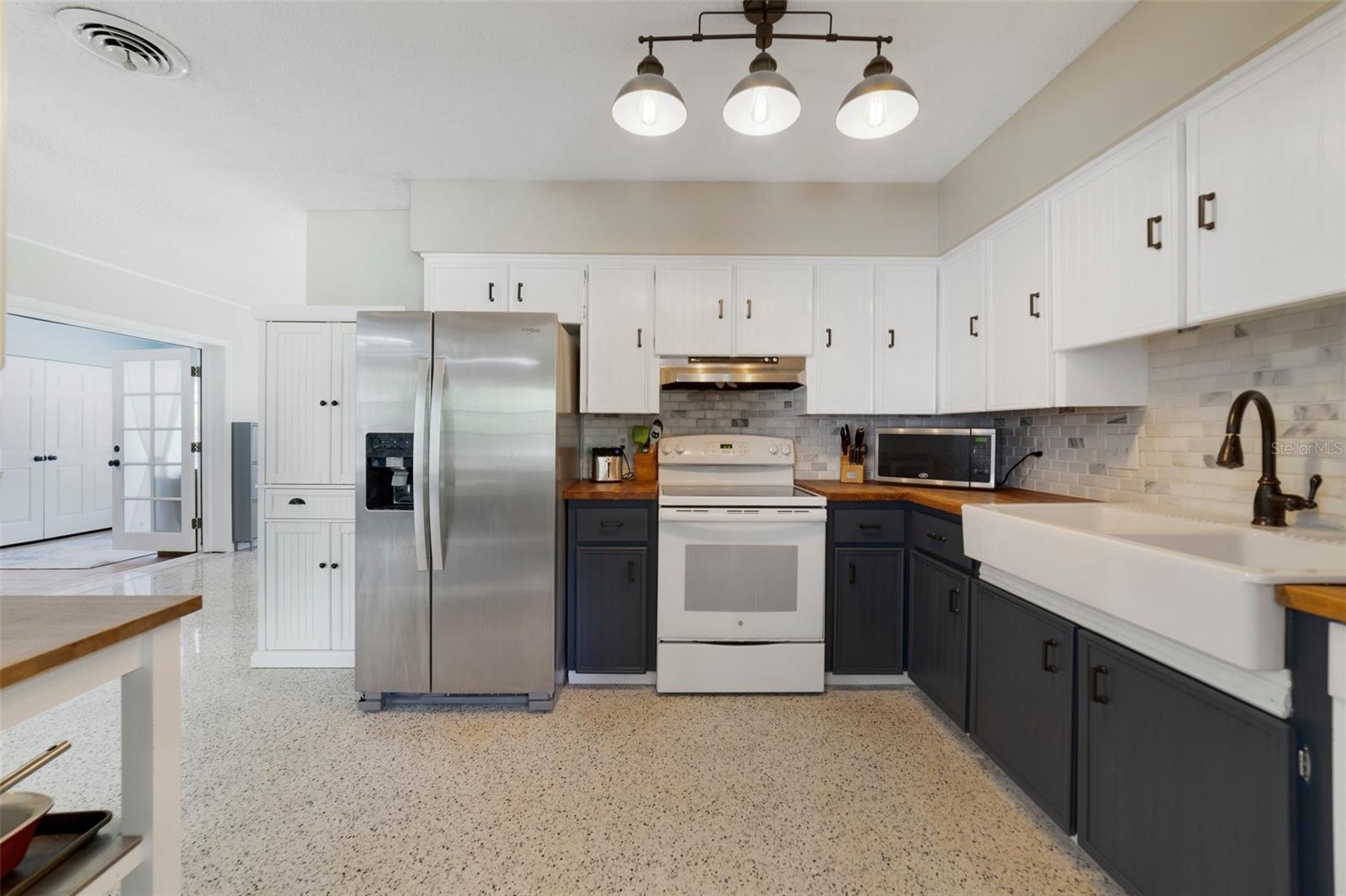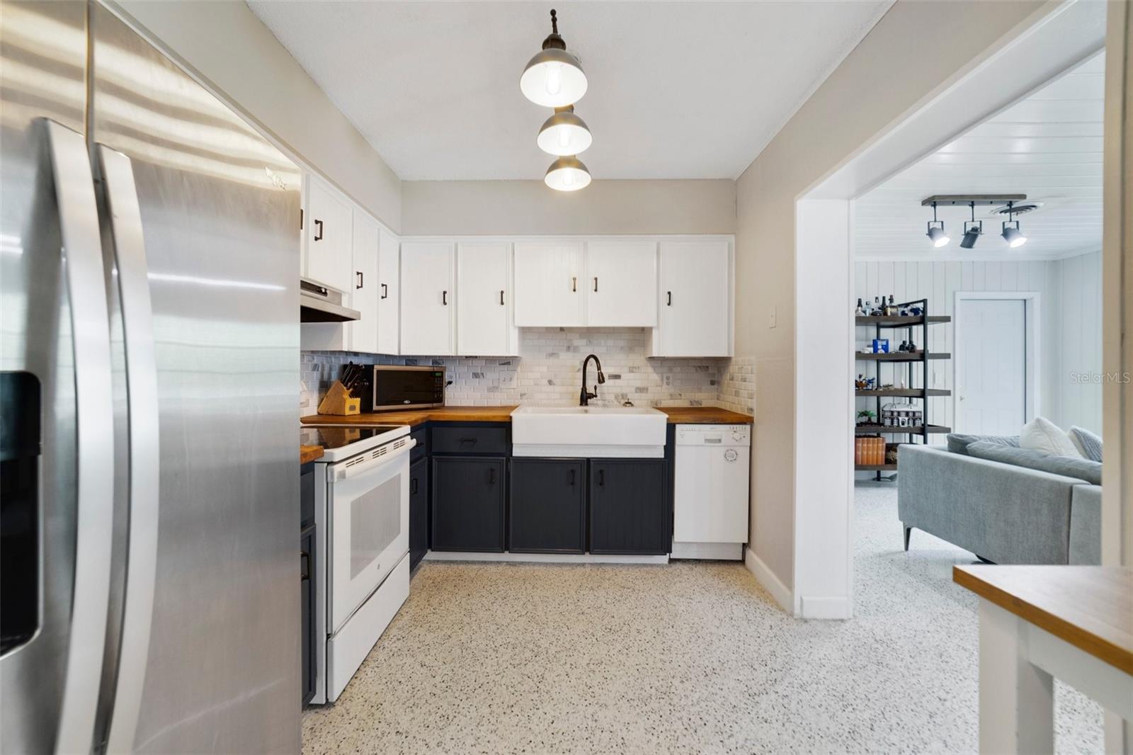Sanlando Springs in the heart of Longwood welcomes you home! This 4-bedroom, 2.5-bath floor plan has a NEW ROOF (2023), UPDATED ELECTRICAL, A/C & PLUMBING, FRESH PAINT (2024) and so much more! As you step through the NEW FRONT DOOR (2024) and start your tour take note of the many updates; RENOVATED PRIMARY & HALF BATH, NEW BASEBOARDS, NEW REFRIGERATOR, CEILING FANS INSTALLED 2023, NEW LIGHT FIXTURES, KITCHEN UPDATES and the TERRAZZO FLOORS WERE RESTORED (JUNE 2024). There are spacious living and dining areas on either side of the kitchen, large picture windows for great natural light and the unique features throughout add a ton of character alongside the modern charm. The home chef will appreciate the TWO-TONE CABINETRY, FARMHOUSE SINK and TILED BACKSPLASH with butcher block countertops to complete the farmhouse feel. There are three guest bedrooms for flexible options on how you use your space as well as a light and bright primary bedroom with French door access to the backyard on one side and a large window overlooking the front porch on the other. The generous .32 ACRE LOT is fenced and the patio and fire pit gives you a head start on creating the backyard of your dreams. 2 large sheds provide bonus storage including 1 Shed with electricity! NO HOA and a great central location makes this an ideal first home or investment property - you are just minutes from the Altamonte Mall, Cranes Roost Park, Florida Hospital and I-4. Local golf course areas no longer in use are being repurposed into public parks, walking trails, boardwalks and pavilions and you have easy access to the SunRail station and Historic Downtown Longwood. This lovely home is ready for a new owner, is that you? Call today to schedule your showing!