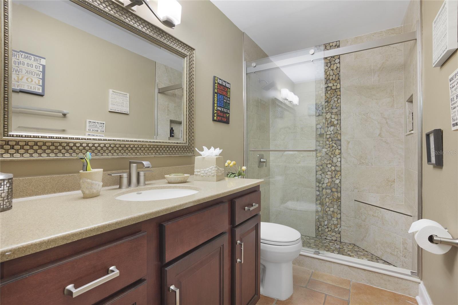 Great Price Improvement! Welcome to your own personal paradise in the highly sought-after GUARD GATED community of The Springs! Lushly landscaped, corner lot, this 4 bedroom 2.5 baths townhome has been lovingly and meticulously maintained with upgrades throughout, with over 2600 sq. ft. of living space. Enter the home through a private courtyard to a beautiful Mediterranean feel oasis, with pristine French terracotta tile floors, coordinating kitchen counter tops and solid maple cabinetry. All new Samsung kitchen appliances, refrigerator, stove, oven, and microwave in 2024 enhance this chef's kitchen with a breakfast bar that adjoins the family room with vaulted ceiling. The living-dining area features a brick wood burning fire place and sliding glass doors looking out into a large serene private paved and landscaped courtyard. Upstairs are the bedrooms and the full baths. Sit and enjoy the landing over looking your down stairs family room and a small private garden. The large, light and airy primary bedroom leads into the ensuite, with custom tile shower and glass enclosure opposite walk-in closet. There are three large bedrooms and a beautiful bath on the other side of the home allowing for maximum privacy. These great sized bedrooms can serve as a home office, library, or nursery (for whatever your needs may be!) The homes interior has been recently painted. The outside of this home has been freshly sealed and painted. A brand new roof was put on in 2024. New hot water heater. All new interior doors and exterior sliding glass doors replaced. New upstairs A/C in 2023. The garage has been painted, and new indoor-outdoor carpeting put in for a clean finished look. This lush and private wooded community is centered around a park setting with its natural pristine spring and many other resort like amenities. Enjoy The Springs sandy beach, with picnic tables and barbeque areas, the community pool, clubhouse, playground, basketball court, walking trails and horse stables all without having to leave your own neighborhood! Beautiful and peaceful, come experience this amazing oasis of a neighborhood! Close to I-4 for easy access to downtown Orlando, Lake Mary, Sanford, Mount Dora ,Hospitals, International Airport, beaches and amusement parks. Don't miss out on making your dreams come true with this home!