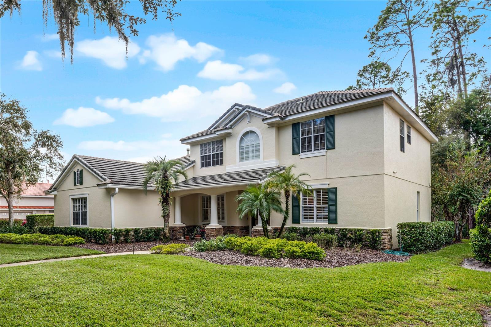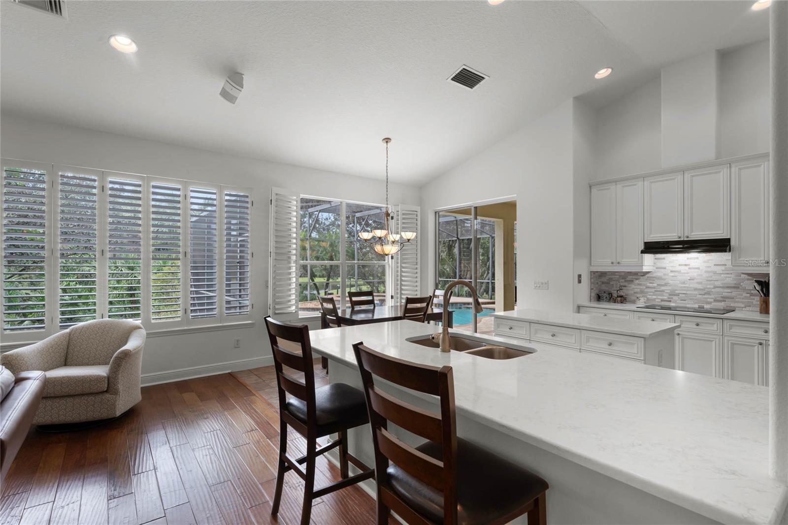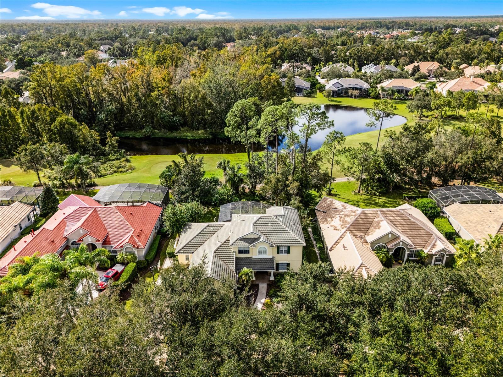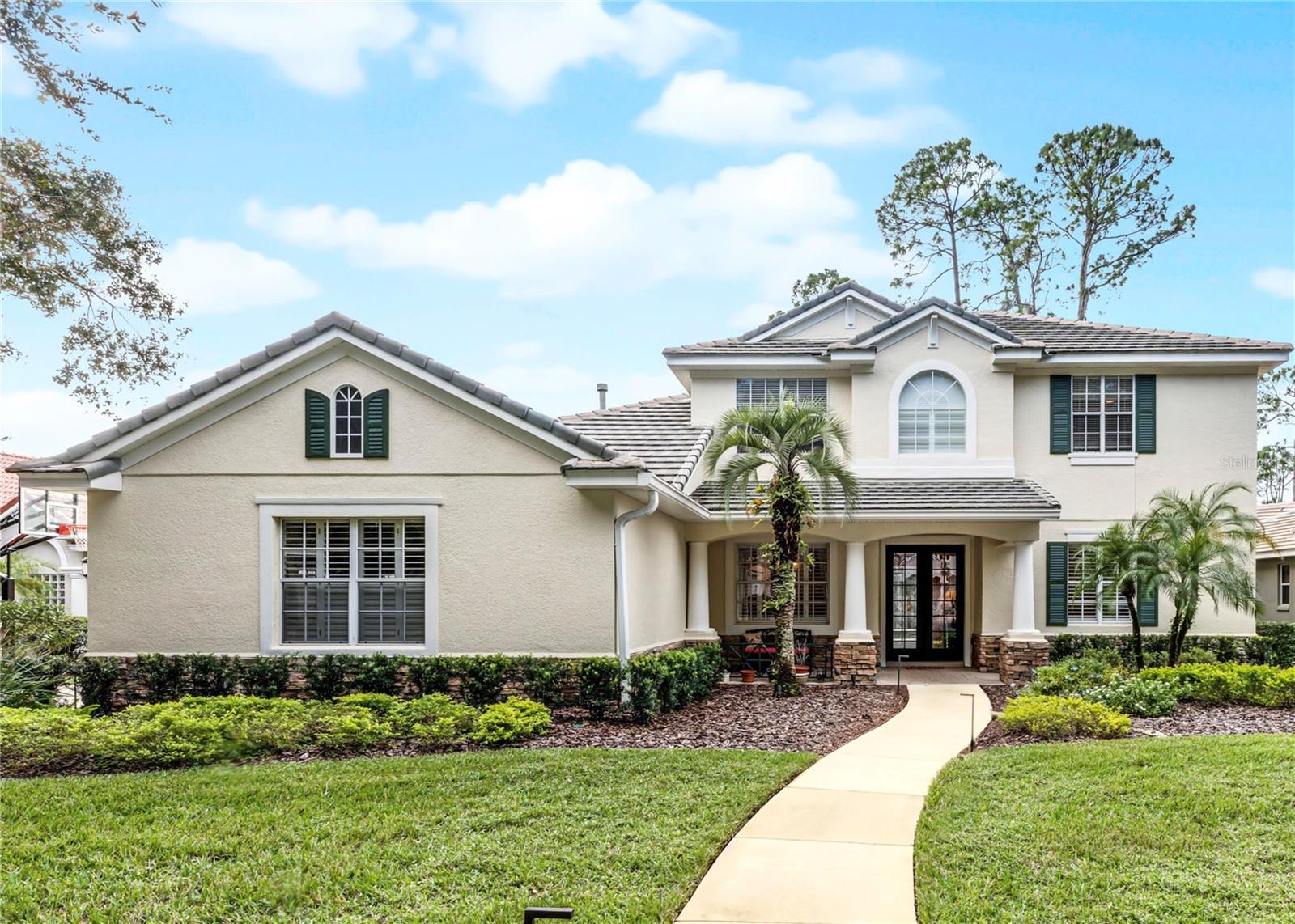 One or more photo(s) has been virtually staged. Experience luxury living in this stunning 4 bedroom, 4 bathroom home on the 16th hole of the prestigious Tom Fazio designed golf course in Alaqua Lakes. With breathtaking pond and golf course views, this residence offers a perfect blend of elegance, comfort, and privacy, enhanced by no rear neighbors and mature landscaping. Step inside to discover high vaulted ceilings, pond views, and a spacious first-floor primary suite. The open-concept kitchen is a chef's dream, featuring quartz countertops, a kitchen island, and stainless steel appliances, all framed by an inviting view of the family room and your private saltwater pool. Relax on the screened-in lanai with a dedicated dining area, or cozy up by the gas fireplace indoors. This home also includes upgraded engineered hardwood and tile flooring throughout, recessed lighting, and two HVAC systems. With a spacious 3 car garage, large laundry room, Jack-and-Jill double vanity, and his-and-her closets in the primary suite, this home caters to every modern convenience. Nestled in the heart of Alaqua Lakes, residents enjoy access to top-tier amenities, including a junior Olympic pool, tennis courts, playground, clubhouse, and 24-hour guarded gates. Minutes from downtown Orlando, Wekiva Springs, and the best of Central Florida, this is not just a home, it's a lifestyle. Homes in this exclusive community rarely hit the market, making this a unique opportunity to own a piece of paradise.