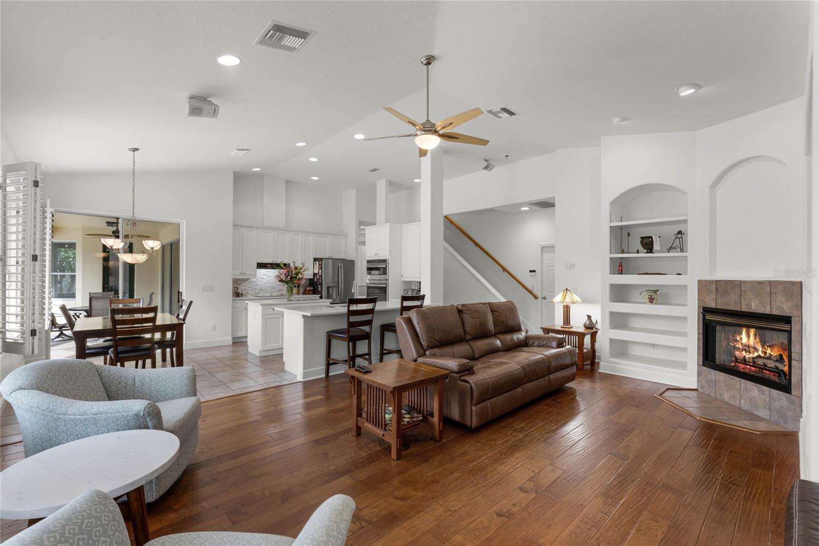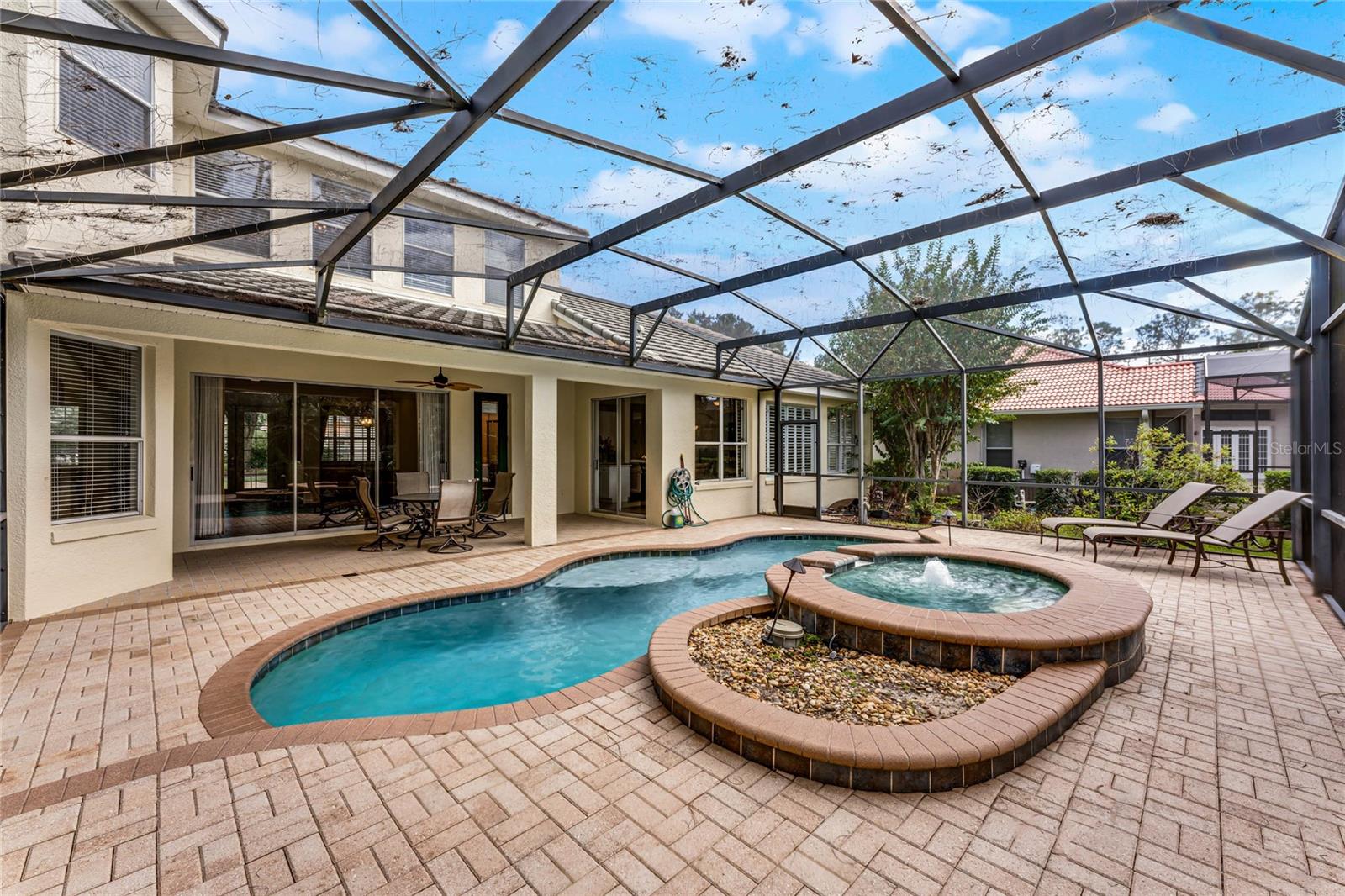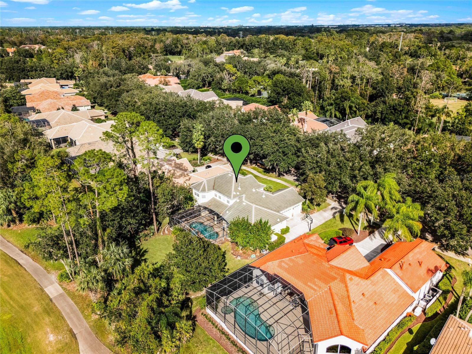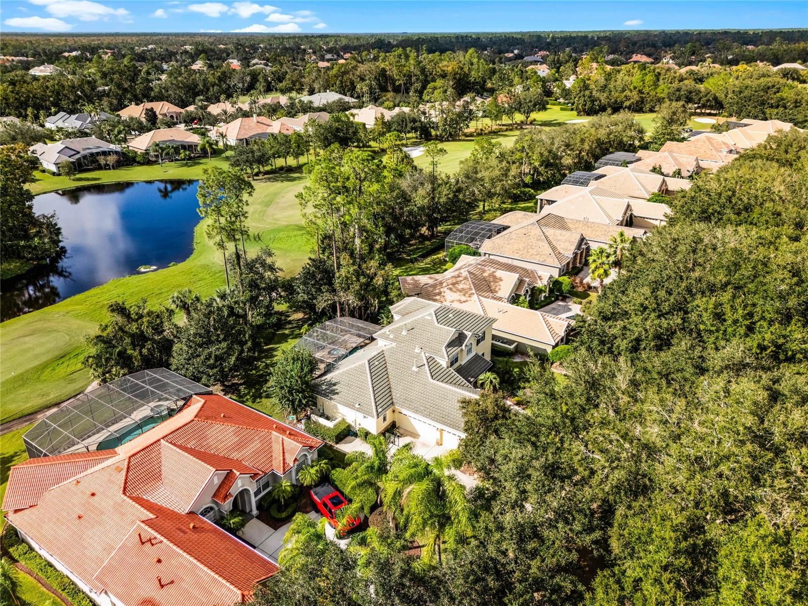 One or more photo(s) has been virtually staged. Experience luxury living in this stunning 4 bedroom, 4 bathroom home on the 16th hole of the prestigious Tom Fazio designed golf course in Alaqua Lakes. With breathtaking pond and golf course views, this residence offers a perfect blend of elegance, comfort, and privacy, enhanced by no rear neighbors and mature landscaping. Step inside to discover high vaulted ceilings, pond views, and a spacious first-floor primary suite. The open-concept kitchen is a chef's dream, featuring quartz countertops, a kitchen island, and stainless steel appliances, all framed by an inviting view of the family room and your private saltwater pool. Relax on the screened-in lanai with a dedicated dining area, or cozy up by the gas fireplace indoors. This home also includes upgraded engineered hardwood and tile flooring throughout, recessed lighting, and two HVAC systems. With a spacious 3 car garage, large laundry room, Jack-and-Jill double vanity, and his-and-her closets in the primary suite, this home caters to every modern convenience. Nestled in the heart of Alaqua Lakes, residents enjoy access to top-tier amenities, including a junior Olympic pool, tennis courts, playground, clubhouse, and 24-hour guarded gates. Minutes from downtown Orlando, Wekiva Springs, and the best of Central Florida, this is not just a home, it's a lifestyle. Homes in this exclusive community rarely hit the market, making this a unique opportunity to own a piece of paradise.