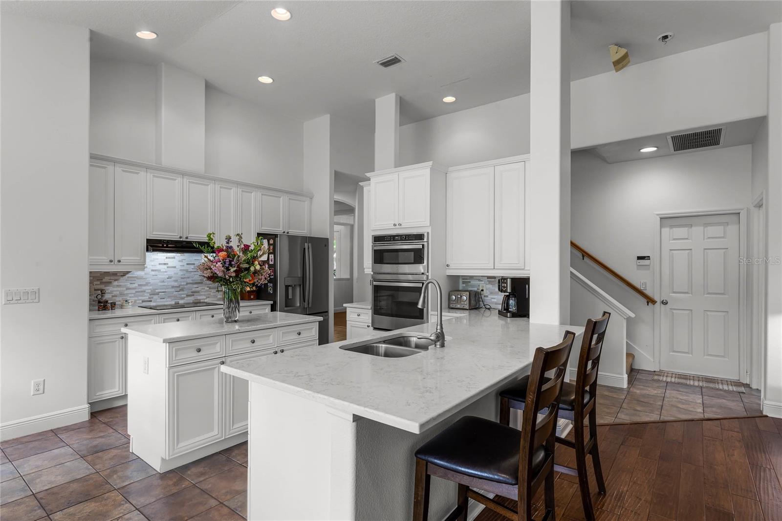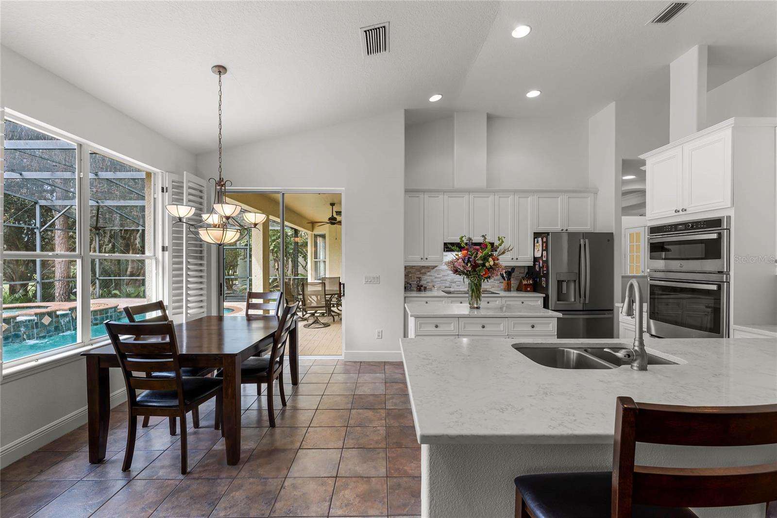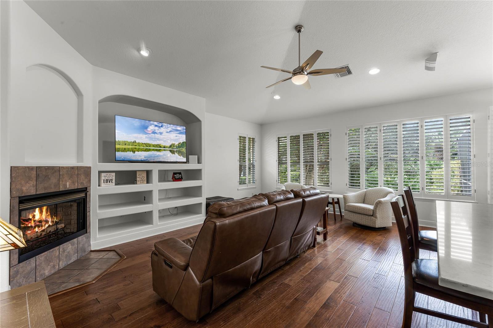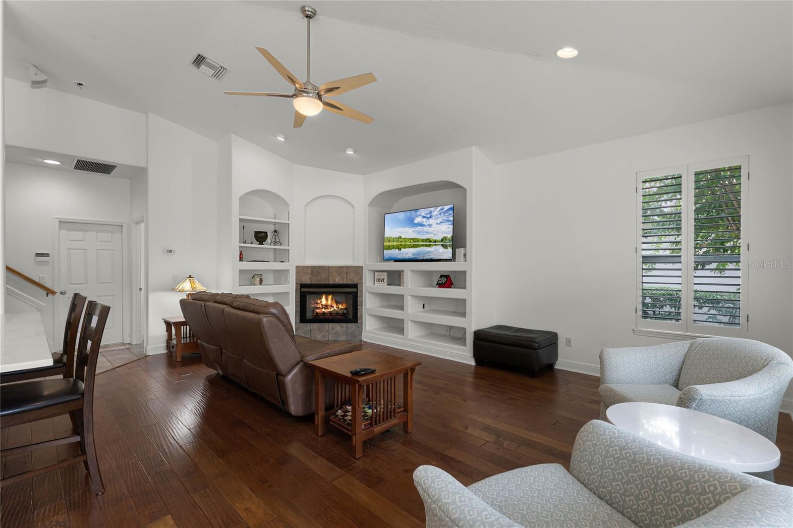 One or more photo(s) has been virtually staged. Experience luxury living in this stunning 4 bedroom, 4 bathroom home on the 16th hole of the prestigious Tom Fazio designed golf course in Alaqua Lakes. With breathtaking pond and golf course views, this residence offers a perfect blend of elegance, comfort, and privacy, enhanced by no rear neighbors and mature landscaping. Step inside to discover high vaulted ceilings, pond views, and a spacious first-floor primary suite. The open-concept kitchen is a chef's dream, featuring quartz countertops, a kitchen island, and stainless steel appliances, all framed by an inviting view of the family room and your private saltwater pool. Relax on the screened-in lanai with a dedicated dining area, or cozy up by the gas fireplace indoors. This home also includes upgraded engineered hardwood and tile flooring throughout, recessed lighting, and two HVAC systems. With a spacious 3 car garage, large laundry room, Jack-and-Jill double vanity, and his-and-her closets in the primary suite, this home caters to every modern convenience. Nestled in the heart of Alaqua Lakes, residents enjoy access to top-tier amenities, including a junior Olympic pool, tennis courts, playground, clubhouse, and 24-hour guarded gates. Minutes from downtown Orlando, Wekiva Springs, and the best of Central Florida, this is not just a home, it's a lifestyle. Homes in this exclusive community rarely hit the market, making this a unique opportunity to own a piece of paradise.
