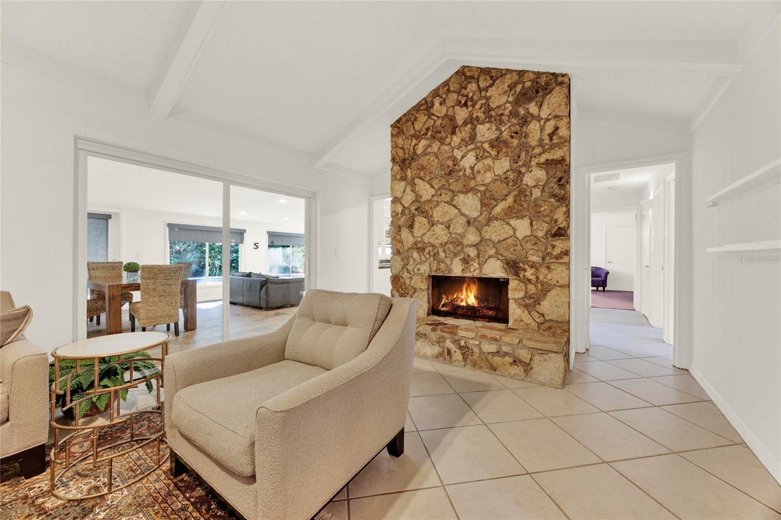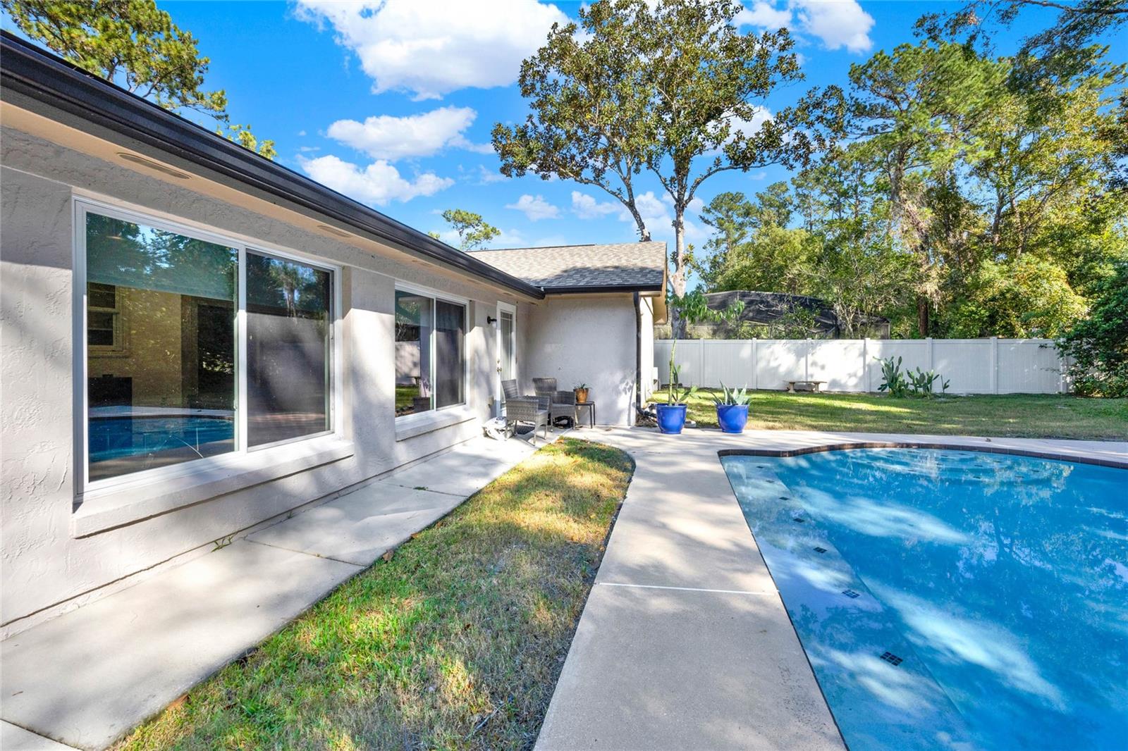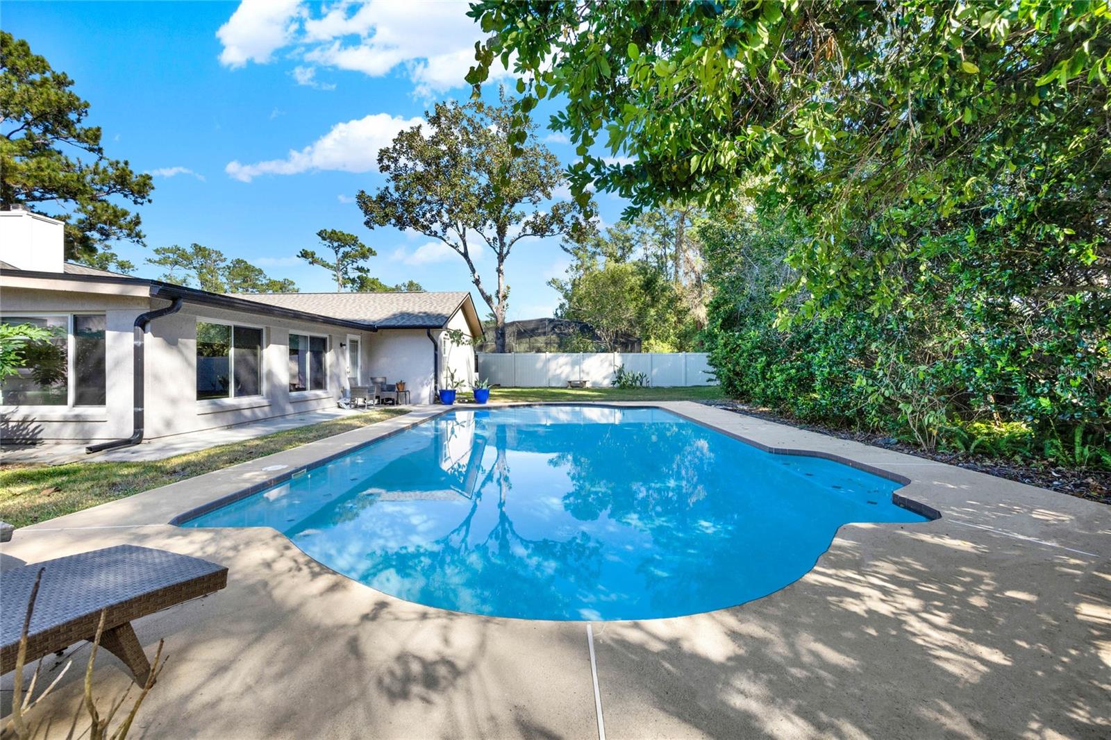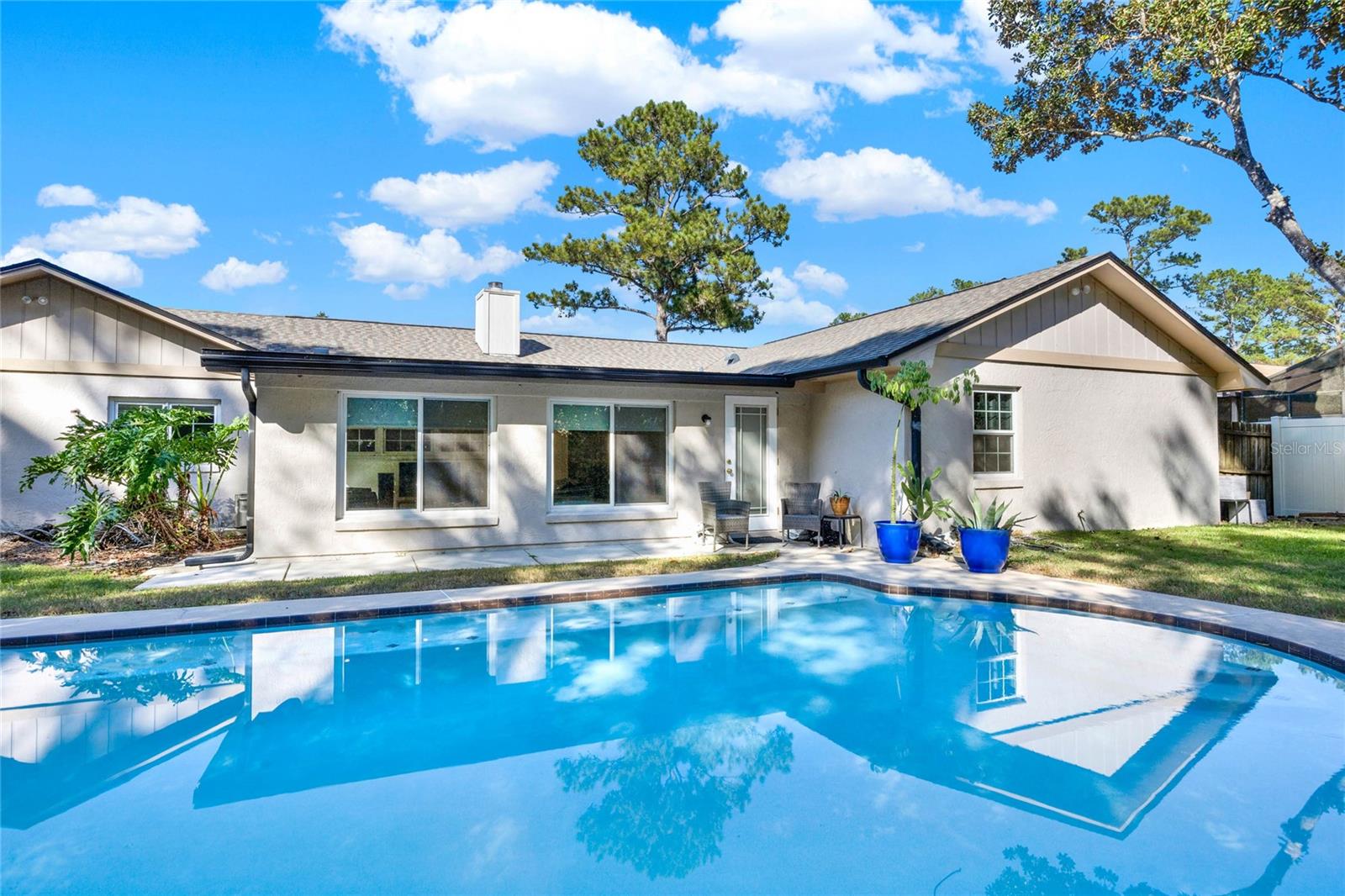 Don't miss seeing this lovely home in gorgeous Sweetwater Oaks! As you tour, take note of the large rooms throughout the house! This four-bedroom, two-bath, split floor plan features spacious rooms offering flexibility to use the space to suit your needs! As you enter, a large Dining Room is to your right, and an even larger Living Room is to your left. The Dining Room can accommodate a sizable table, and there is plenty of wall space for furniture. The Living Room would also make a great office/flex space. The cozy Family Room has SOARING VAULTED CEILINGS, WOOD BEAMS, and a STONE FIREPLACE. The Kitchen offers gleaming stainless steel appliances, abundant cabinet space, and room for a table. The primary suite has ample room for a king-size bed with room to spare. The second bath was beautifully remodeled and is located conveniently near the additional 3 bedrooms. A big, Sun Room gives you yet another wonderful living space and leads out to your backyard oasis! Venture outside to enjoy the HUGE OVERSIZED LAP POOL, which is great for exercise and water games. With its tree-lined streets and sidewalks, Sweetwater Oaks offers exclusive private amenities and top-rated schools. Enjoy the private beach on the shores of Lake Brantley, tennis, pickleball, and basketball courts, 2 playgrounds, 2 covered pavilions, a volleyball court, a fishing dock, a soccer field, a baseball field, a boat ramp, access to the Wekiva River by canoe, kayak or paddle board, and a community center that is available to rent for parties and special occasions. The BIG Ticket Items have been done for you! ROOF WAS REPLACED IN 2022, the A/C IN 2024, the POOL RESURFACED in 2022, the windows were replaced with PELLA WINDOWS throughout the home, a new rear fence was just installed, and a new garage door is on order to be installed in July!!!
