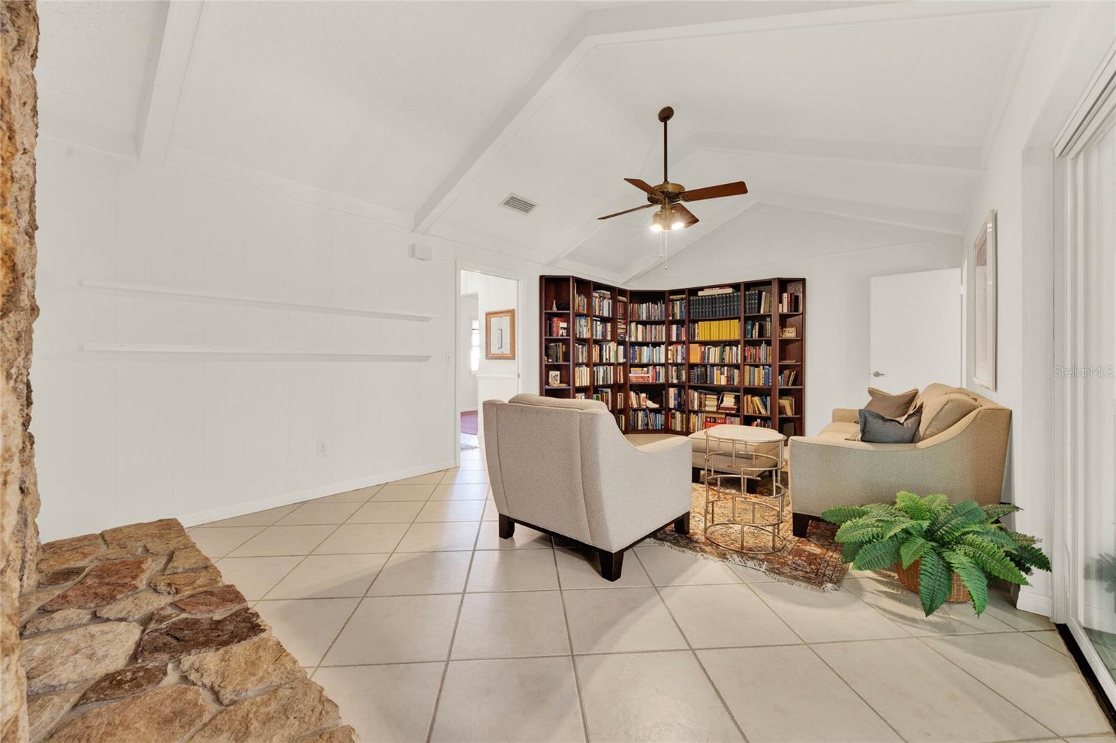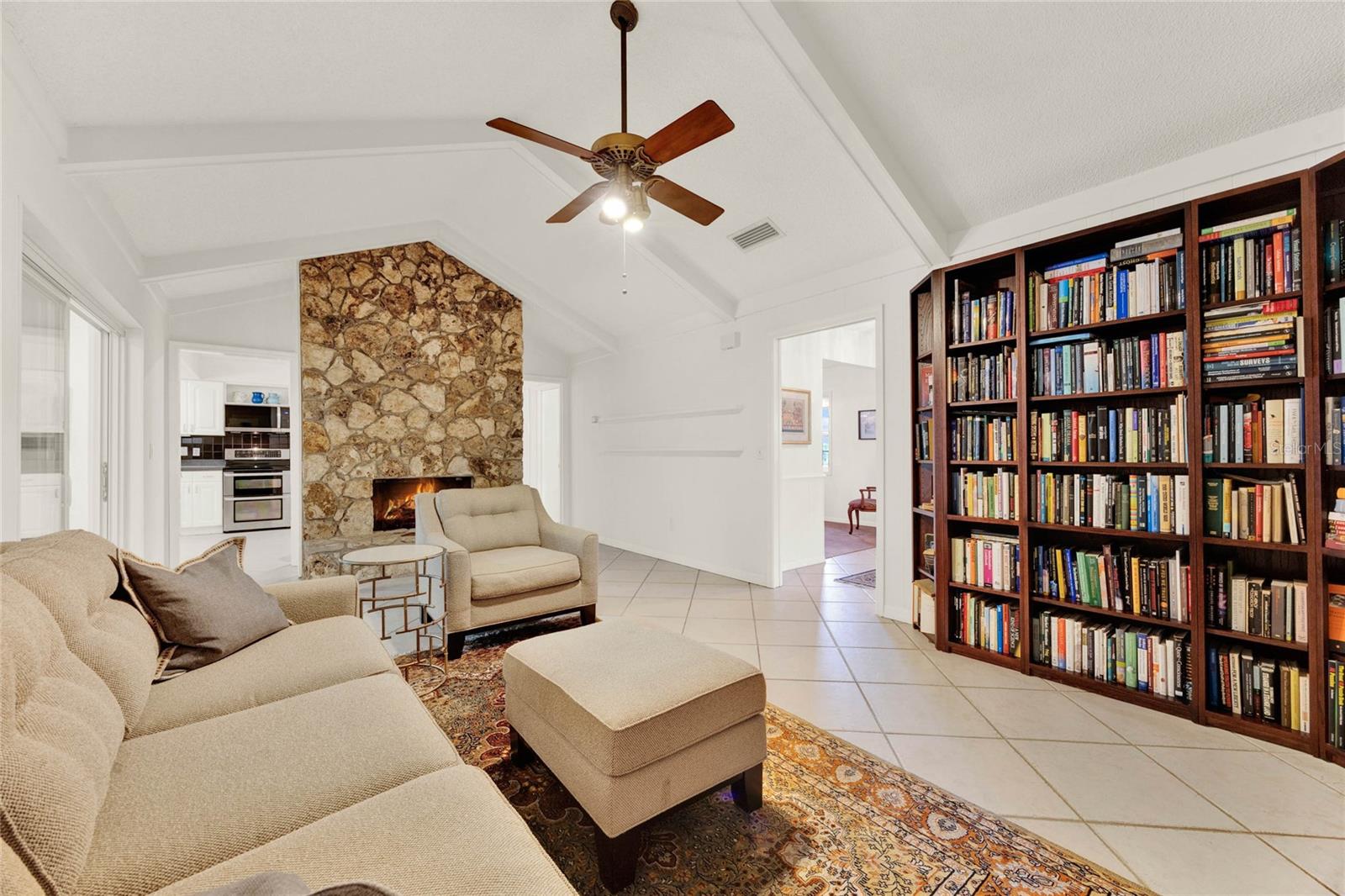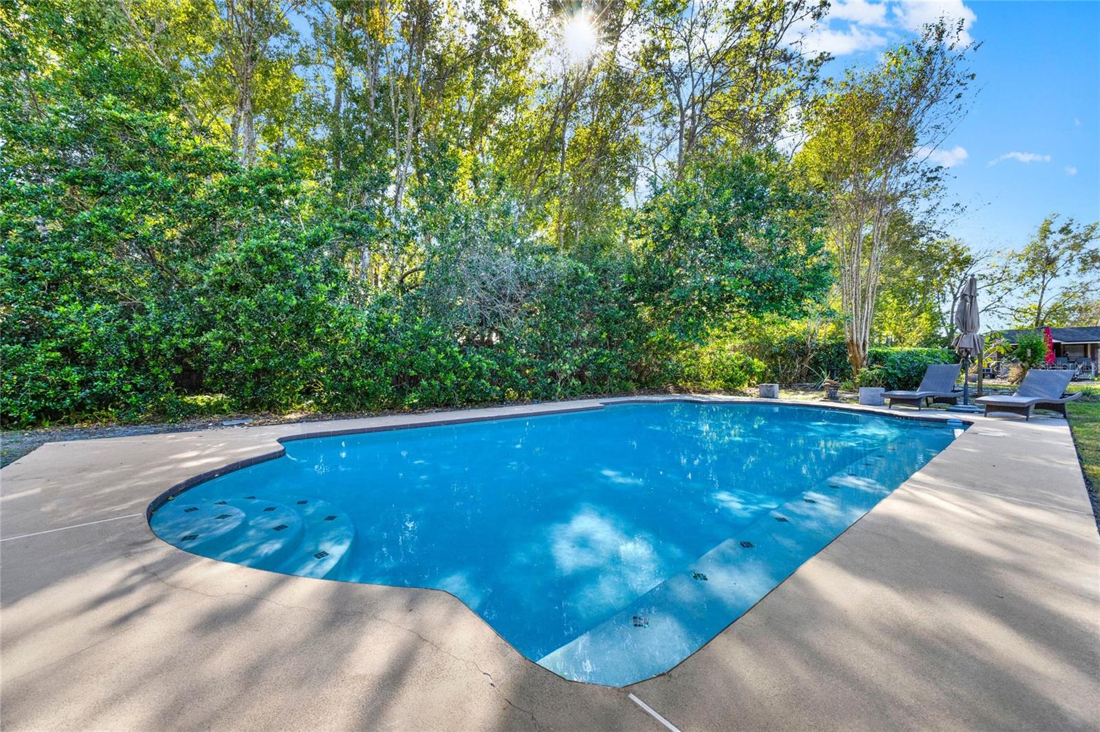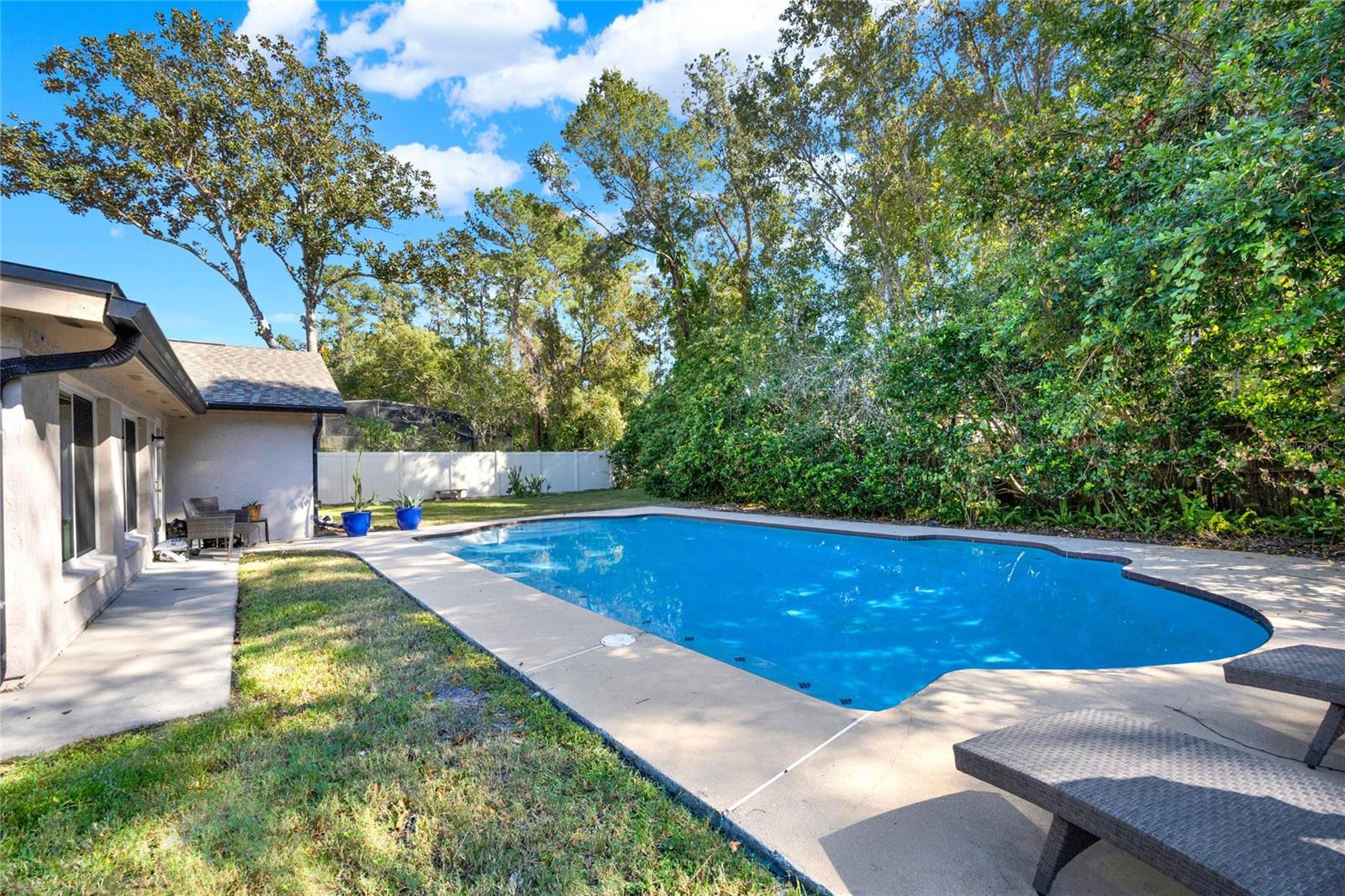 Don't miss seeing this lovely home in gorgeous Sweetwater Oaks! As you tour, take note of the large rooms throughout the house! This four-bedroom, two-bath, split floor plan features spacious rooms offering flexibility to use the space to suit your needs! As you enter, a large Dining Room is to your right, and an even larger Living Room is to your left. The Dining Room can accommodate a sizable table, and there is plenty of wall space for furniture. The Living Room would also make a great office/flex space. The cozy Family Room has SOARING VAULTED CEILINGS, WOOD BEAMS, and a STONE FIREPLACE. The Kitchen offers gleaming stainless steel appliances, abundant cabinet space, and room for a table. The primary suite has ample room for a king-size bed with room to spare. The second bath was beautifully remodeled and is located conveniently near the additional 3 bedrooms. A big, Sun Room gives you yet another wonderful living space and leads out to your backyard oasis! Venture outside to enjoy the HUGE OVERSIZED LAP POOL, which is great for exercise and water games. With its tree-lined streets and sidewalks, Sweetwater Oaks offers exclusive private amenities and top-rated schools. Enjoy the private beach on the shores of Lake Brantley, tennis, pickleball, and basketball courts, 2 playgrounds, 2 covered pavilions, a volleyball court, a fishing dock, a soccer field, a baseball field, a boat ramp, access to the Wekiva River by canoe, kayak or paddle board, and a community center that is available to rent for parties and special occasions. The BIG Ticket Items have been done for you! ROOF WAS REPLACED IN 2022, the A/C IN 2024, the POOL RESURFACED in 2022, the windows were replaced with PELLA WINDOWS throughout the home, a new rear fence was just installed, and a new garage door is on order to be installed in July!!!
