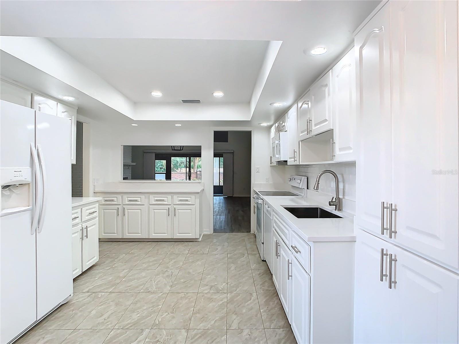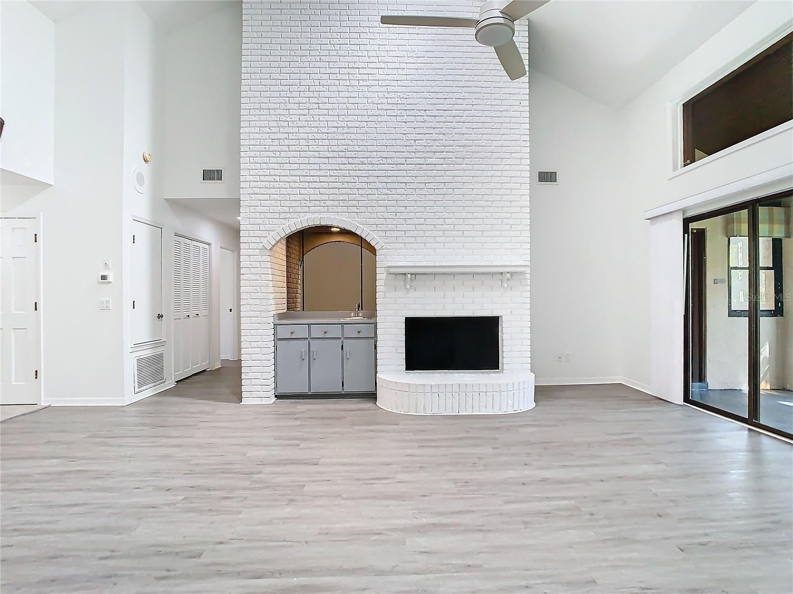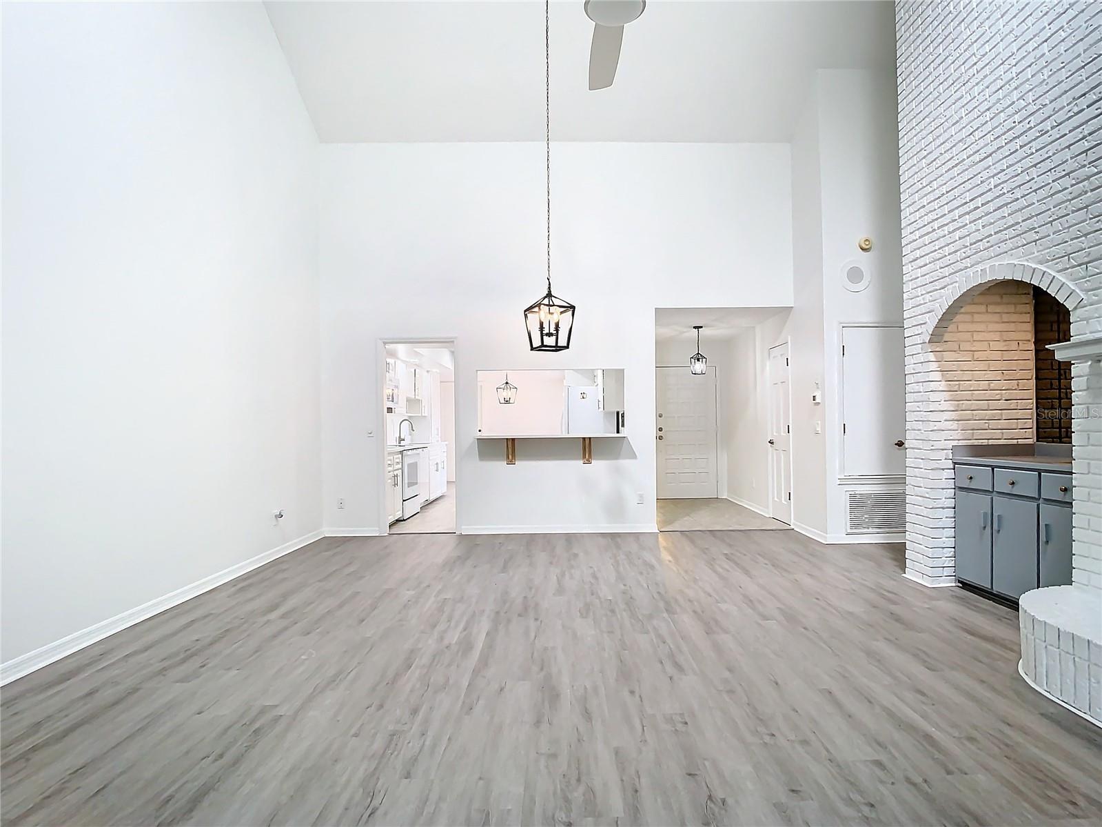 Welcome to your new dream home! This completely renovated, move-in-ready villa offers the perfect combination of modern upgrades, comfort, and elegance—all in an unbeatable Central Florida location. Step inside and be greeted by a bright, open floor plan that seamlessly blends style with functionality. Vaulted ceilings soar over the spacious living room, filling the space with natural light and creating an airy atmosphere. The room is centered around a stunning fireplace, setting the scene for cozy evenings, while a convenient wet bar makes entertaining guests effortless. The large, upgraded kitchen is a chef’s delight, featuring pristine white cabinetry, ample counter space, and high-end appliances. Whether you’re preparing a quick breakfast or hosting a dinner party, this kitchen has all you need to make every meal special. The villa’s two bathrooms have been thoughtfully redesigned to offer a spa-like retreat. Enjoy the luxury of modern fixtures, chic finishes, and an ambiance that invites you to relax and unwind. Extend your living space into the Florida Room, where large windows provide views of the lush, mature landscaping surrounding the property. This peaceful setting is ideal for morning coffee, quiet evenings, or simply taking in the beauty of nature from the comfort of your own home. Freshly painted throughout and equipped with all necessary appliances, this villa is truly ready for its next owner. Don’t miss the opportunity to own this stunning, low-maintenance property that combines style, convenience, and Central Florida charm. Schedule your private tour today and experience everything this exceptional home has to offer!