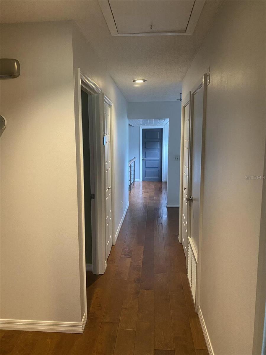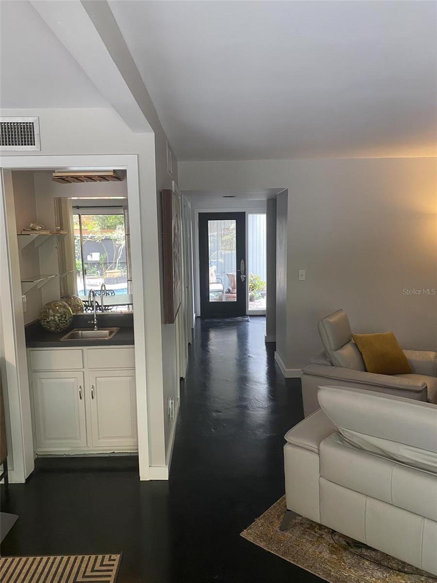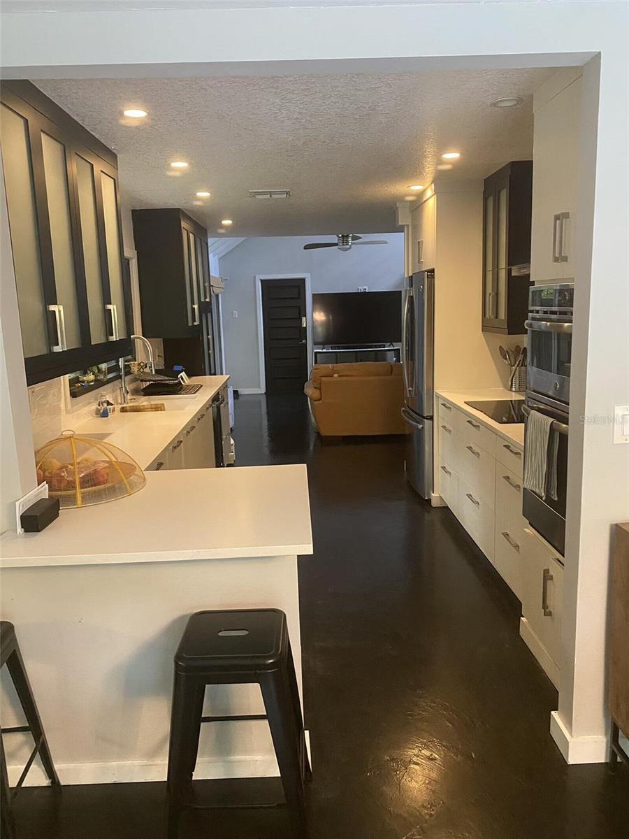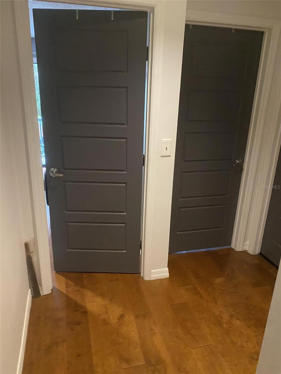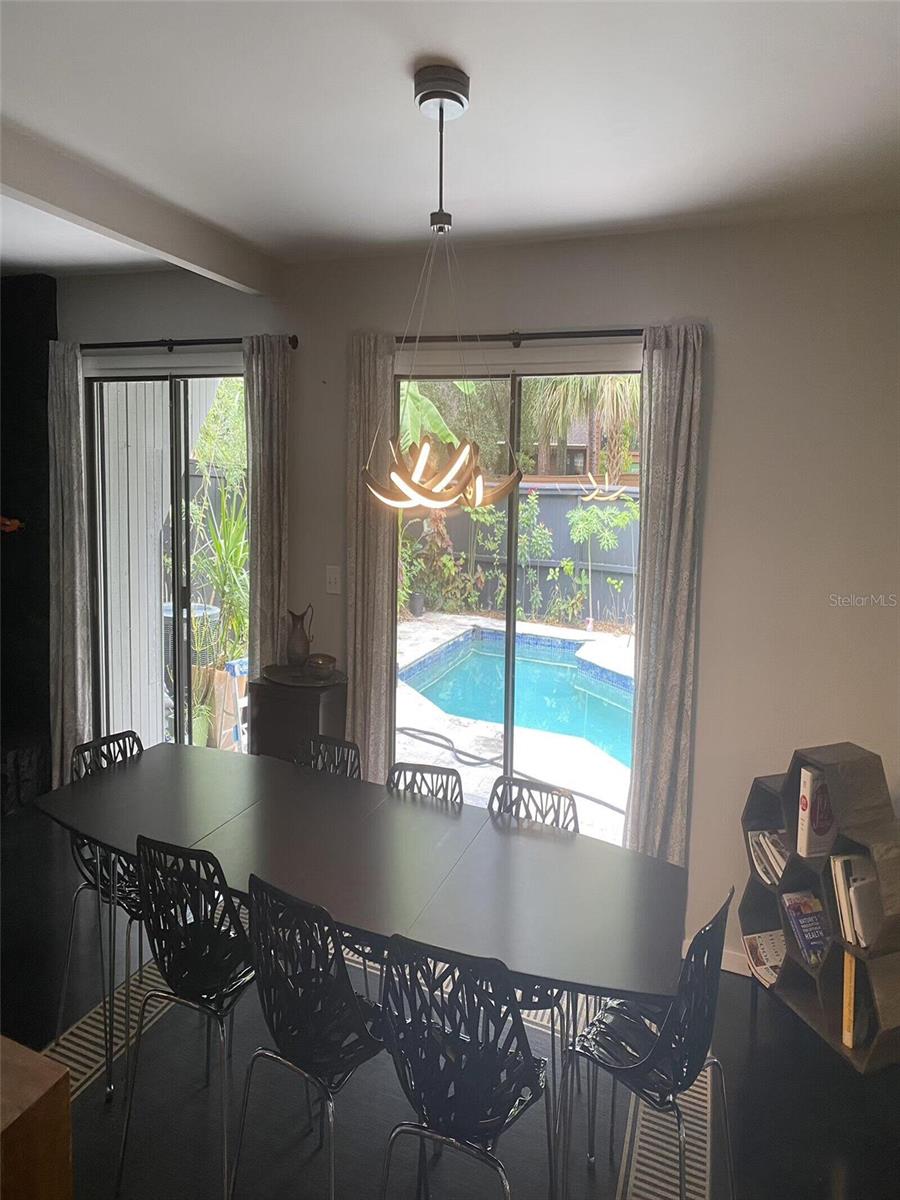 Nestled in the lush, wooded, highly sought-after enclave of The Springs in Longwood, this stunning 4-bedroom, 2.5-bath townhouse boasts character, comfort, and convenience, being sold by the owner. With a versatile bonus room featuring a cozy working wood stove, this space can transform into a 4th bedroom, family area, or your dream retreat. Gorgeous hardwood floors grace the stairs and upper level, while chic stained concrete floors lend a modern flair to the main level.The large master suite includes a spacious walk-in closet and an en-suite bath with dual vanities and a built-in storage cupboard. The master and the other sizable upstairs rooms feature new ceiling fans and share a balcony overlooking the sparkling backyard pool, creating a peaceful, private oasis. Each room, whether used as a bedroom, office or use of your choice, contains ample storage with oversized closets. The contemporary kitchen is a chef’s delight, featuring sleek cabinetry, a stacked microwave/convection and standard oven, stainless steel appliances, and plenty of counter space. Relax in the inviting family room with a dramatic ceiling fan and sliders that open to a tranquil side patio. Entertain in style in the dining room, which offers a mirrored wall and sliding doors leading to the backyard pool. The backyard is a gardener’s dream, adorned with an array of fruit-bearing trees and edible plants.Take in the serenity of your charming front cobblestone patio with a burbling fountain, enclosed for privacy and enjoy a peaceful morning coffee. Enjoy cozy evenings by the stone fireplace in the living room. A spacious, freshly-painted 2-car garage adds practicality and convenience. Located in a neighborhood with 24-hour guard-gated security, The Springs is renowned for its 8-stall barn, two natural springs, abundant wildlife, spa and private village pool in addition to the main community pool, basketball and racquet ball courts. Conveniently located near every imaginable amenity, this home is very close to major highways, the airport, amusement parks, local hospitals and beaches, making it great for weekend adventures or work. New roof in September, 2021. Home is being sold "AS IS" with the right to inspection and a fully paid one-year home warranty. Deep freezer and Murphy bed do not convey. This home blends contemporary living and natural beauty in a peaceful, secure setting. Don’t miss this rare opportunity to make this your dream home.