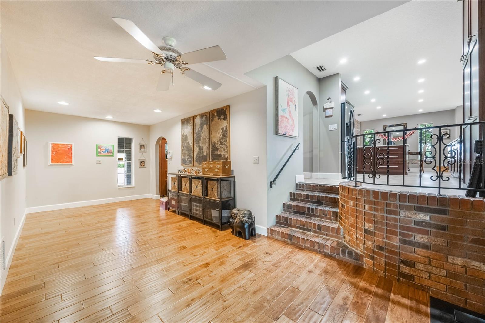 Discover the charm of this uniquely designed home in the sought-after Lake Brantley Isles community! Blending the best of two-story and split-level living, this home offers a versatile layout ideal for modern lifestyles. Upon entering, step up into a spacious formal dining area highlighted by a cozy brick wood-burning fireplace. The open-concept kitchen features a breakfast nook, center island, and flows seamlessly into the family room, where large windows frame picturesque views of the canal.To the right of the family room, step down into an L-shaped bonus room, complete with sliding glass doors leading to a screened patio with dual ceiling fans—perfect for indoor-outdoor entertaining. A full bathroom and an oversized fourth bedroom with a private entrance are conveniently located off the bonus room, offering additional flexibility.Upstairs, the second level boasts two bedrooms and a guest bathroom to the right, with the primary suite to the left. The primary retreat includes a luxurious, fully renovated ensuite with a stand-alone tub, a spacious two-person shower with dual controls and a bench, dual sinks, and abundant storage. Recessed LED lighting with a secondary night light feature enhances the upstairs hallway and bedrooms.The property sits on nearly an acre of land with two private docks and canal access to Lake Brantley, making it perfect for outdoor enthusiasts. The oversized detached garage includes workbenches, electricity, and an automatic door with a deadbolt feature for added convenience and security.Located near several major roadways, shopping, dining, and entertainment options, this home offers both privacy and accessibility. With its exceptional features and prime location, this home is a must-see!Located in the vibrant community of Longwood, Florida, this home offers access to a rich array of amenities and attractions within a 50-mile radius. Enjoy retail therapy at the nearby Altamonte Mall, featuring popular brands and entertainment options. For outdoor enthusiasts, Lake Brantley provides opportunities for water activities and scenic picnics. The locale boasts a diverse dining scene with destinations like Tibby's New Orleans Kitchen and The Melting Pot. Quick access to major highways, including Interstate 4, SR-434, and SR-436, ensures seamless commutes to major employers such as AdventHealth and the University of Central Florida. For family fun, visit the Central Florida Zoo or take a short drive to explore the attractions in Orlando, including Walt Disney World Resort and Universal Studios. This area offers a balanced lifestyle, combining convenience, leisure, and a sense of community.