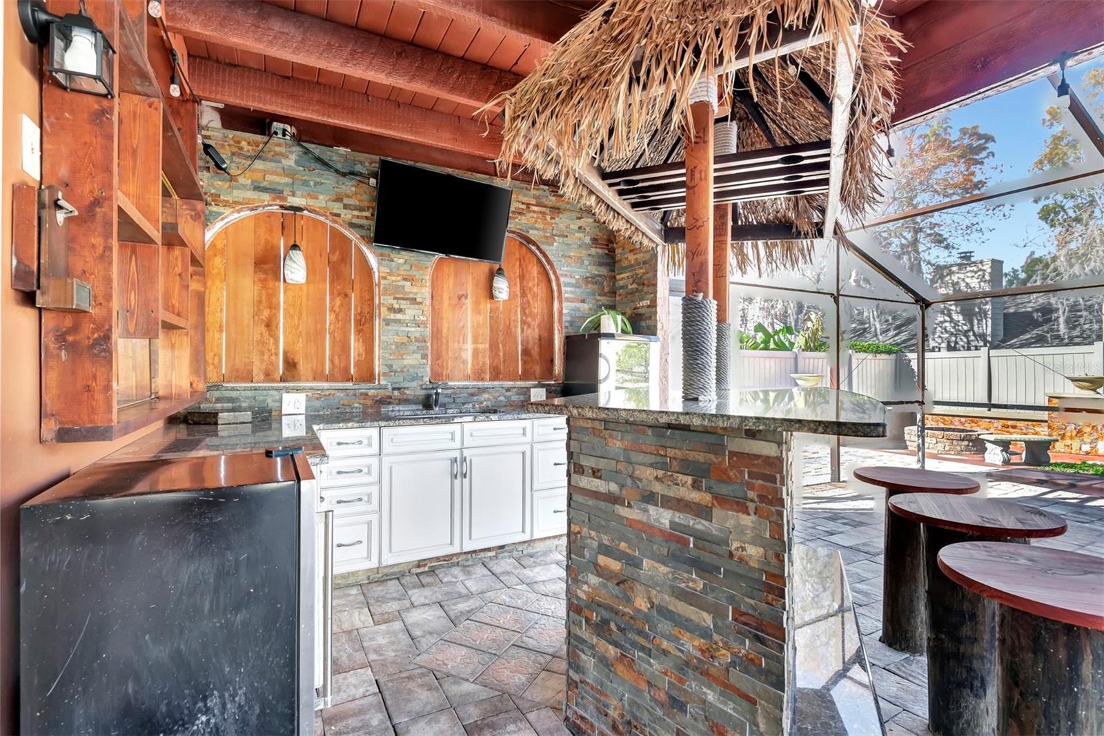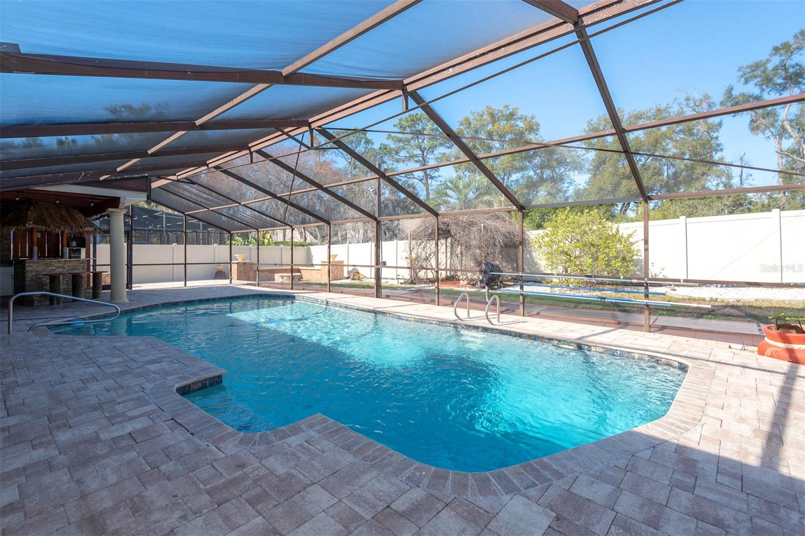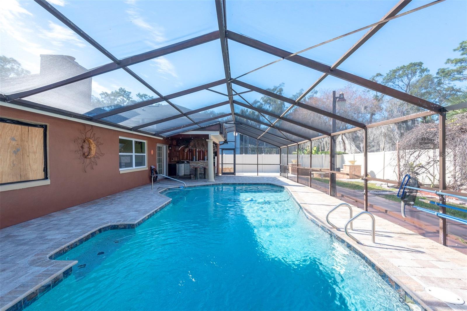 REDUCED PRICE !!! THIS IS A SOLID BLOCK HOME WITH HEATED POOL in beautiful and quiet Myrtle Lake Hills subdivision in Longwood. This home has 3 BEDROOMS, 2BATHS, 2-CAR GARAGE, NO HOA, HEATED POOL AND CUSTOM TIKI BAR LIKE, CUSTOM SITTING FIRE PIT AREA ON BACK YARD. House just got repainted inside and outside. Pool is heated, screened, got a new water pump, recently resurfaced and has its own cover. House has New Windows, AC and water heater. Enjoy fire burning fireplace in Livingroom, Master bedroom with large walk-in closet and bathroom with shower that also has door to POOL area. Both bathrooms were remodeled. Bedrooms are large, with good space for large family or plenty of furniture. SS kitchen appliances with Double oven/microwave combo unit. The custom Bar by pool area has granite countertop, plenty of cabinets, TV space, fridge space, has wine cooler and sink, and also saloon western swinging look-like windows. The nice Pool with bar, and fire pit area in fenced in back yard is just perfect to entertain guests and for entire family to enjoy. Nestled in the heart of Seminole county, providing perfect blend of tranquility and convenience. Schools are excellent and Location cannot be more ideal. Call Today for a showing!