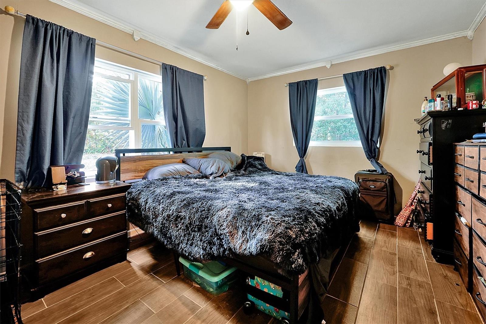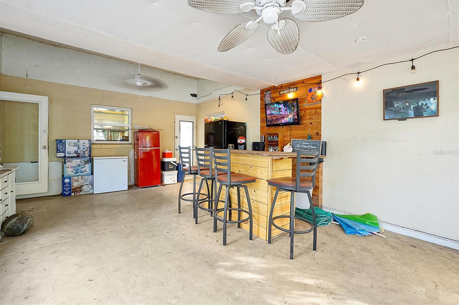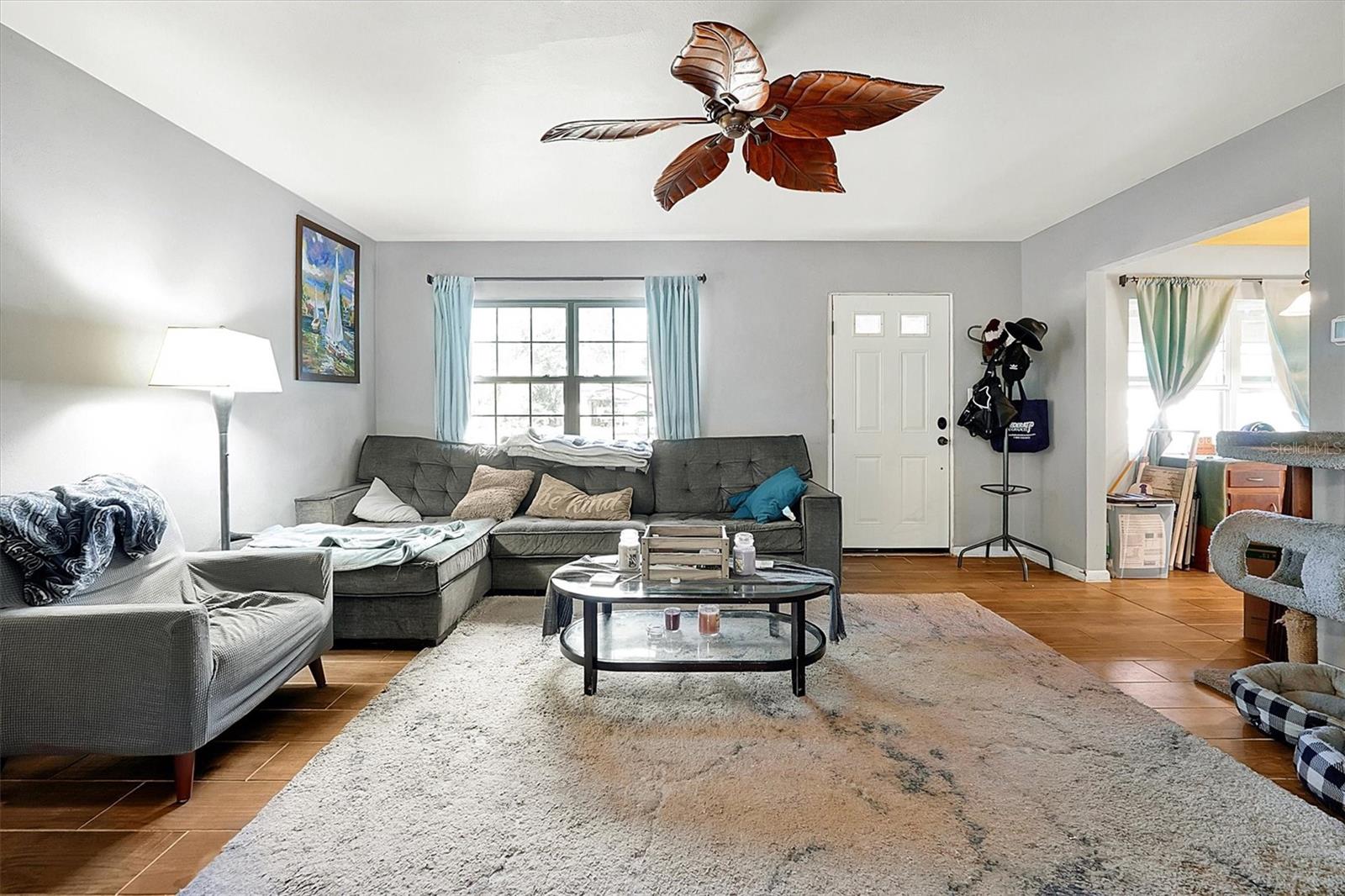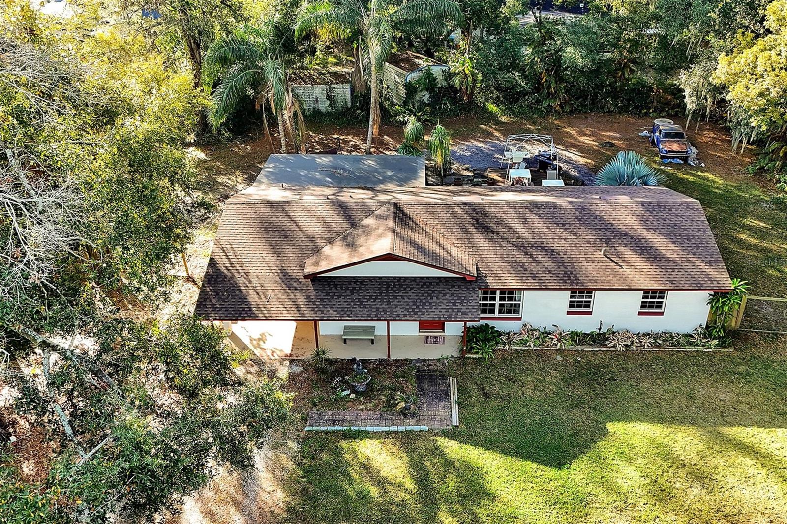 This charming 2-bedroom, 2-bath home is located in Longwood and is conveniently situated near shopping, hospitals, restaurants, and the interstate. Set on a spacious lot of nearly ½ acre, it boasts new windows and a roof installed in 2022, while the air conditioner was replaced in 2020. The electrical panel has been updated, and the home has been replumbed. New tile flooring flows throughout the space. The property features a fully fenced yard with a new wooden deck, and all appliances will remain with the home. Enjoy a large screened room complete with a tiki bar, as well as a separate laundry area that includes a full bath. This home offers the potential to easily convert into a 3-bedroom by enclosing the screened room or dining area. Easy show
