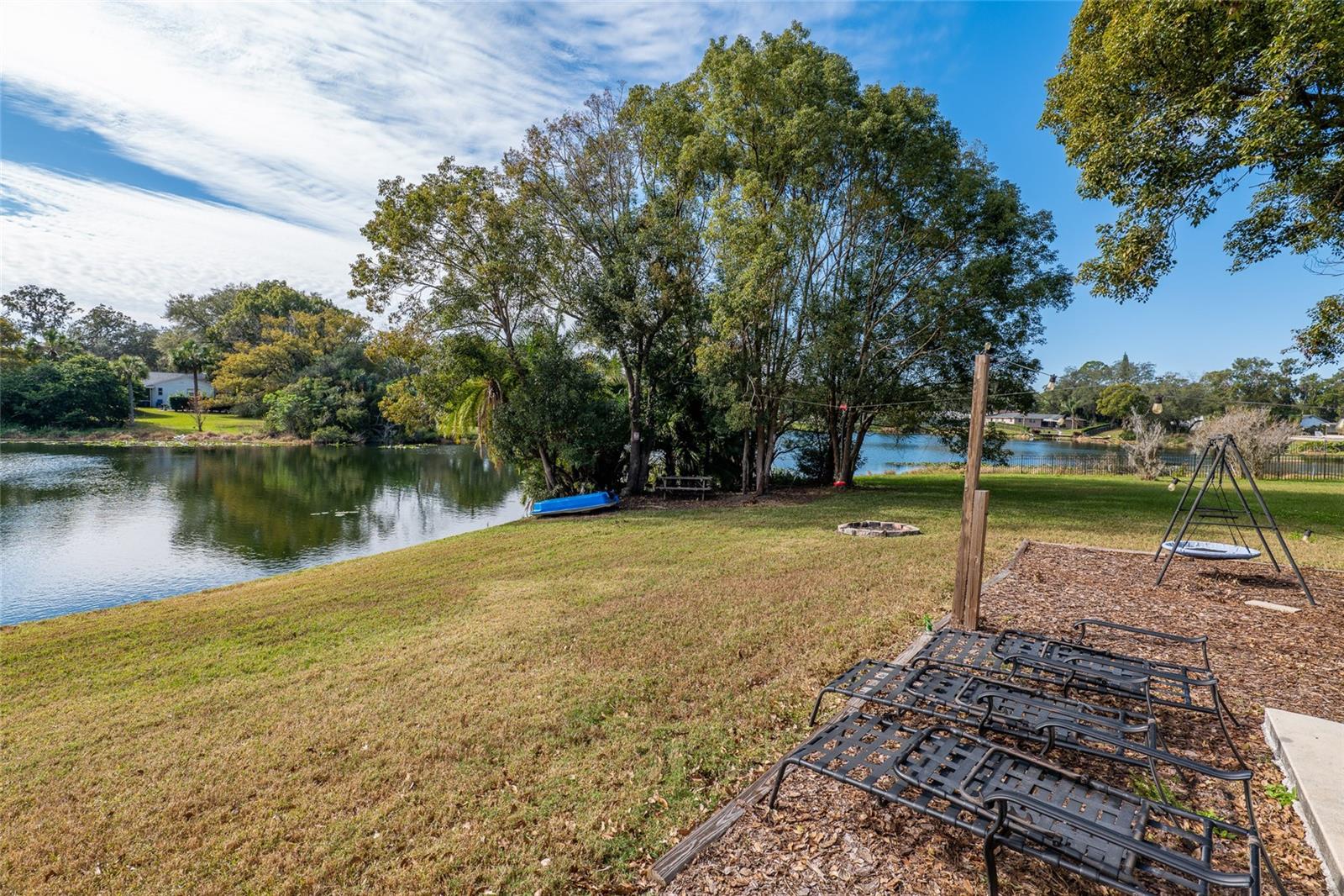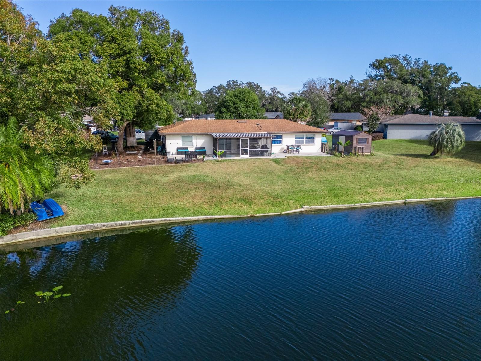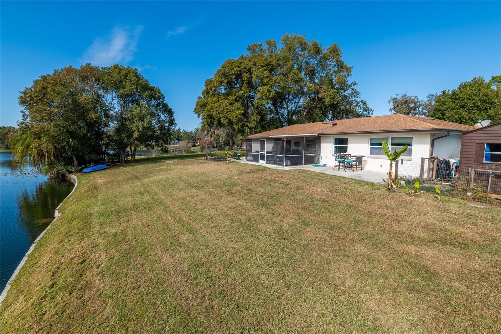 Discover the perfect fusion of lifestyle, comfort, and charm in this stunning three-bedroom, two-bathroom waterfront home with a versatile bonus room, nestled on the largest lot around the lake in Longwood’s sought-after community, The Woodlands. Situated on a peaceful cul-de-sac, this beautifully maintained property invites you to embrace the Florida dream with serene lake views, vibrant outdoor spaces, and an interior designed for modern living. Step inside and feel instantly at home with wood plank vinyl flooring throughout, abundant natural light, and smart features like motorized blackout shades (Alexa-compatible) in the cozy living room, complete with a projector and screen for unforgettable movie nights. The dining area flows seamlessly into the updated kitchen, featuring wood cabinets, stainless steel appliances, and a natural gas range. A flexible bonus space off the kitchen offers endless possibilities—to use it as an office, gym, or playroom. The outdoor space is a showstopper! Enjoy your mornings on the custom-built front deck (2024) or unwind on the screened porch with custom bench seating and fans to keep you cool. Entertain effortlessly on the new concrete patio (2022) or expanded driveway, which includes a 30-AMP RV outlet (2023). The oversized backyard, complete with a fire pit, market lighting, and picnic area by the water, provides endless opportunities for relaxation and fun. For animal lovers, a ready-to-use chicken coop adds a touch of unique charm. This lakeside gem is not just beautiful—it’s practical, too. Optional HOA access includes a park and playground, while top-rated schools and easy highway access make this an unbeatable location. A newer AC system (2018) with a smart thermostat, double-pane windows, fresh exterior paint (2021). The garage features heavy flake epoxy flooring, keypad entry, and attic insulation for added comfort and storage. Don’t miss your chance to call this Longwood paradise your own. Schedule a viewing today and start living the life you’ve been dreaming of!
