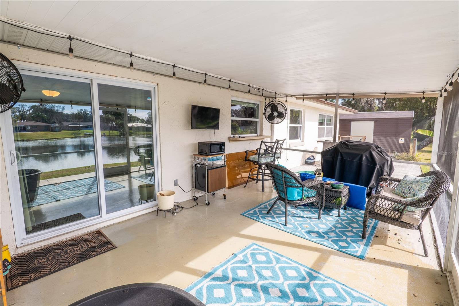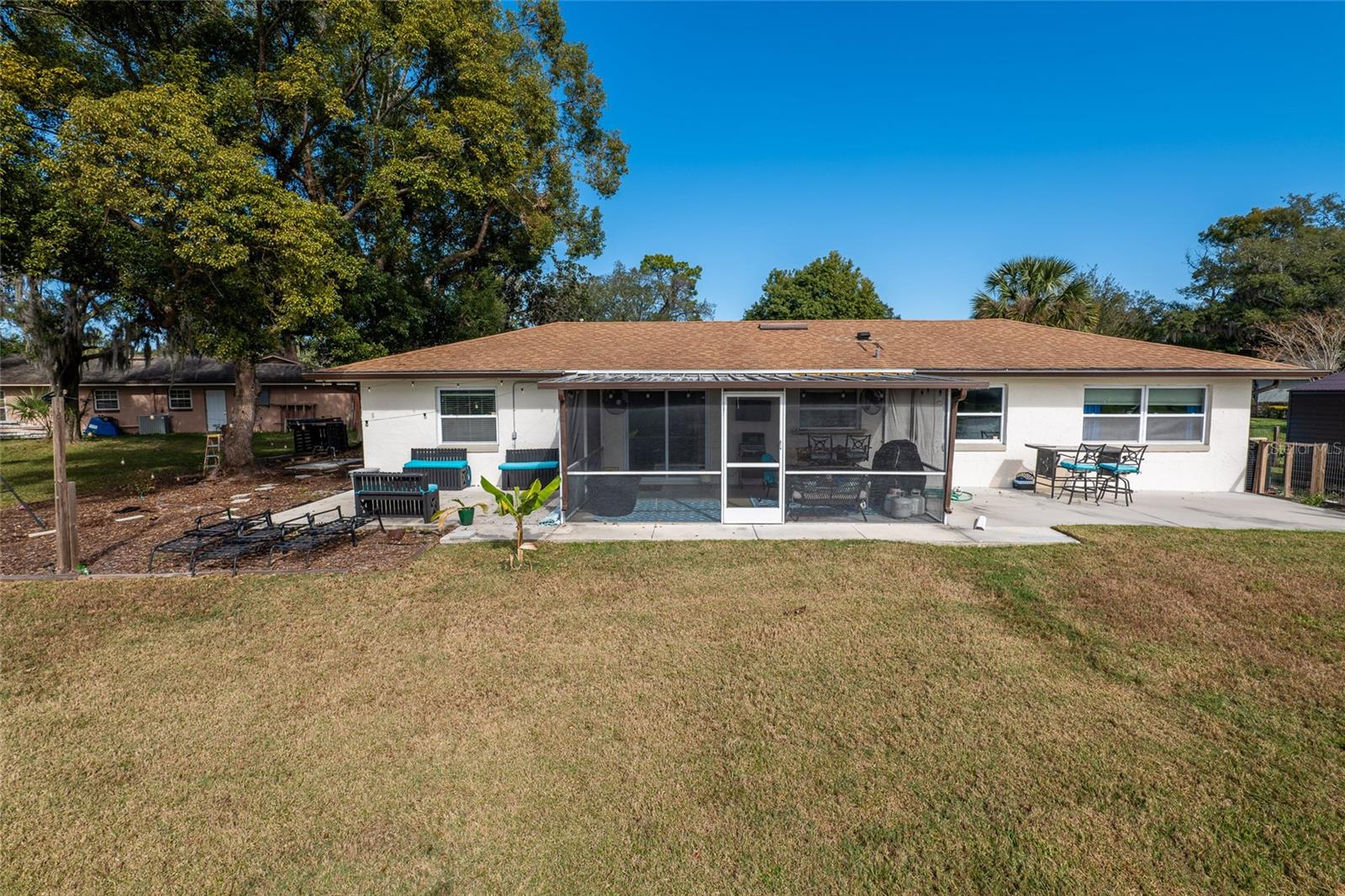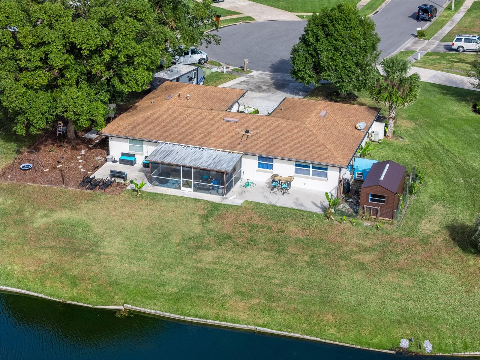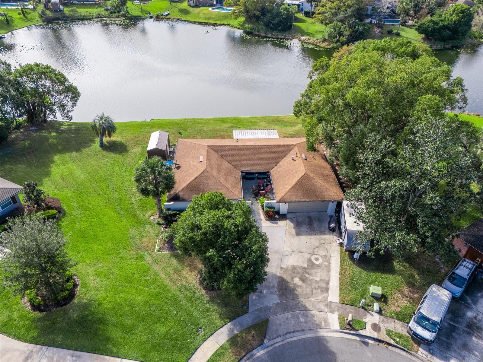 Discover the perfect fusion of lifestyle, comfort, and charm in this stunning three-bedroom, two-bathroom waterfront home with a versatile bonus room, nestled on the largest lot around the lake in Longwood’s sought-after community, The Woodlands. Situated on a peaceful cul-de-sac, this beautifully maintained property invites you to embrace the Florida dream with serene lake views, vibrant outdoor spaces, and an interior designed for modern living. Step inside and feel instantly at home with wood plank vinyl flooring throughout, abundant natural light, and smart features like motorized blackout shades (Alexa-compatible) in the cozy living room, complete with a projector and screen for unforgettable movie nights. The dining area flows seamlessly into the updated kitchen, featuring wood cabinets, stainless steel appliances, and a natural gas range. A flexible bonus space off the kitchen offers endless possibilities—to use it as an office, gym, or playroom. The outdoor space is a showstopper! Enjoy your mornings on the custom-built front deck (2024) or unwind on the screened porch with custom bench seating and fans to keep you cool. Entertain effortlessly on the new concrete patio (2022) or expanded driveway, which includes a 30-AMP RV outlet (2023). The oversized backyard, complete with a fire pit, market lighting, and picnic area by the water, provides endless opportunities for relaxation and fun. For animal lovers, a ready-to-use chicken coop adds a touch of unique charm. This lakeside gem is not just beautiful—it’s practical, too. Optional HOA access includes a park and playground, while top-rated schools and easy highway access make this an unbeatable location. A newer AC system (2018) with a smart thermostat, double-pane windows, fresh exterior paint (2021). The garage features heavy flake epoxy flooring, keypad entry, and attic insulation for added comfort and storage. Don’t miss your chance to call this Longwood paradise your own. Schedule a viewing today and start living the life you’ve been dreaming of!