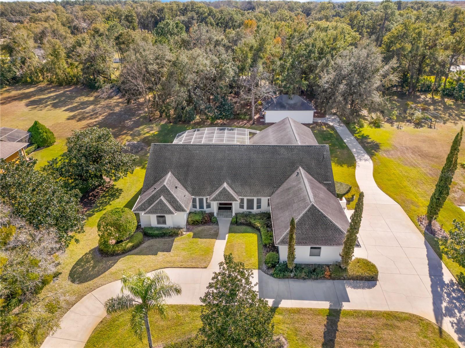 New Price! One-of-A-Kind Custom Estate Home & Separate Multi-Purpose Detached Studio all with NO HOA! Located in the Whispering Winds Community, this property is over an acre and is exempt from the HOA payments and restrictions. The Original Owner designed this property for comfortable daily living, with an impressive 7000 sq/ft under roof. This home cannot be duplicated at this price. Right from the start, the luxury of a circular drive leading you toward the 8’ Leaded Glass Entry is just the beginning of the potential this home has to offer. Thoughtfully designed with 4’ hallways, you easily flow from room to room enjoying the spaciousness of more than 4600 sq/ft under AC. The impressive 27’ Kitchen that features both Vintage and New Age style with Solid wood cabinets, Built in appliances, Gas cooktop, a Center island, and a 17x10 Breakfast area. Formal Living & Formal Dining Rooms are each 14’x14’ with 12’ ceilings. The seller added an extra layer of style to this home by Vaulting the Family room Ceiling to 18’ showcasing a Floor to Ceiling Gas Fireplace accent. The Home also features 4 Bedrooms on the Main floor including the Primary Suite includes a separate sitting area, 10’ double closets and a gas fireplace. The Primary bath has separate vanities, an oversized walk-in shower and a walk-in-tub. The second floor has a Loft/Library and a 5th Bedroom with ensuite bath. The Pool Area is very private, and faces south, with 2 covered areas to take advantage of the sun… Large Solar Heated Pool with Salt Water and built in floor cleaning. The 3 Car Garage is attached and a 34x22 Separate Detached Multipurpose Workshop complete with AC and a 1/2 bath can be easy storage for cars 4 & 5. Currently, the Studio is a Woodworker's dream with 10’ ceilings plus an additional 6’ Loft space… However, If your vision was to convert this entire space to a Casita or In-Law… It may be a perfect start… Opportunities like this are rare don’t miss the chance to personalize this home for the next 20 years!