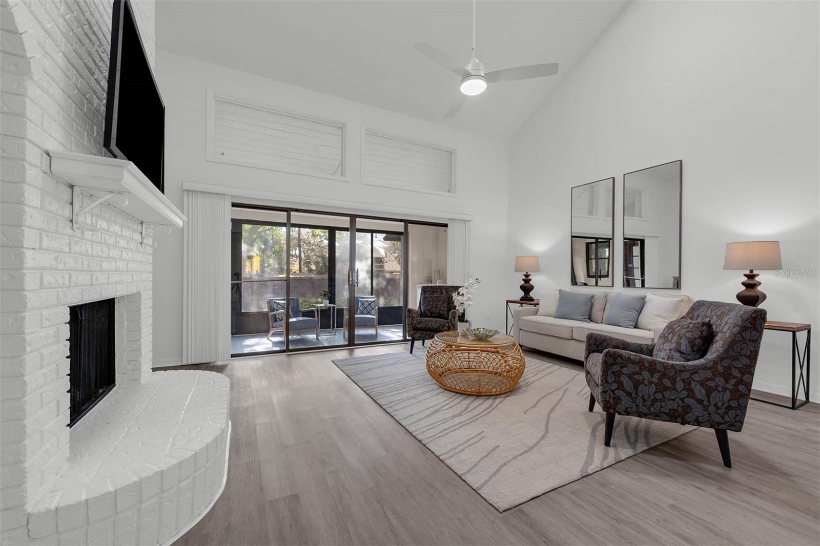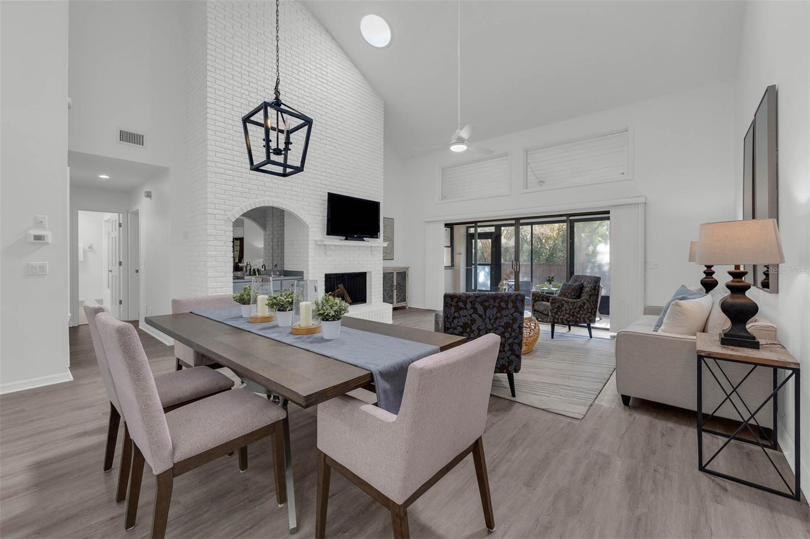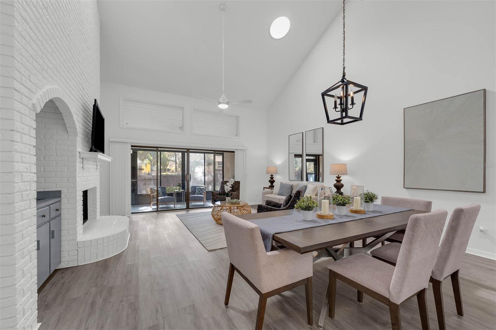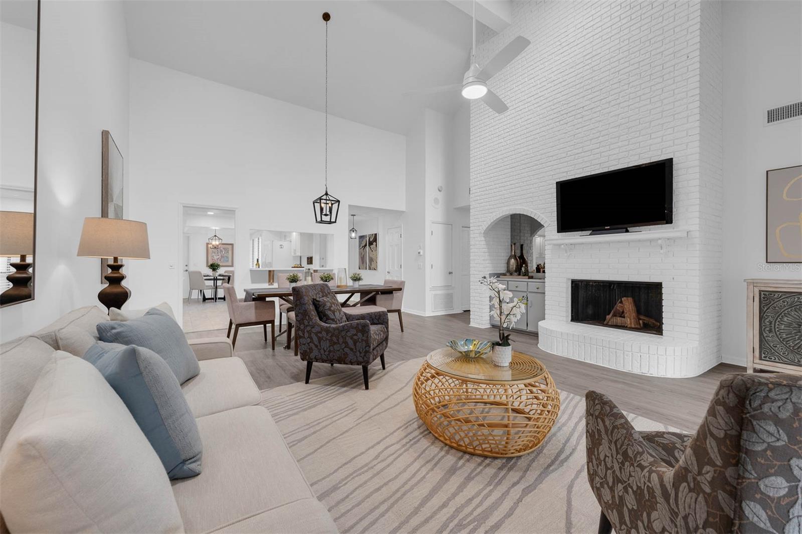 Final price at $198/SF, you may never see again in this location. Renovated, move-in-ready villa with new roof offers the perfect combination of modern upgrades, comfort, and elegance—all in an unbeatable Central Florida location. Step inside and be greeted by a bright, open floor plan that seamlessly blends style with functionality. Vaulted ceilings soar over the spacious living room, filling the space with natural light and creating an airy atmosphere. The room is centered around a stunning fireplace, setting the scene for cozy evenings, while a convenient wet bar makes entertaining guests effortless. The large, upgraded kitchen is a chef’s delight, featuring pristine white cabinetry, ample counter space, and high-end appliances. Whether you’re preparing a quick breakfast or hosting a dinner party, this kitchen has all you need to make every meal special. The villa’s two bathrooms have been thoughtfully redesigned to offer a spa-like retreat. Enjoy the luxury of modern fixtures, chic finishes, and an ambiance that invites you to relax and unwind. Extend your living space into the Florida Room, where large windows provide views of the lush, mature landscaping surrounding the property. This peaceful setting is ideal for morning coffee, quiet evenings, or simply taking in the beauty of nature from the comfort of your own home. Freshly painted throughout and equipped with all necessary appliances, this villa is truly ready for its next owner. Don’t miss the opportunity to own this stunning, low-maintenance property that combines style, convenience, and Central Florida charm. Schedule your private tour today and experience everything this exceptional home has to offer!