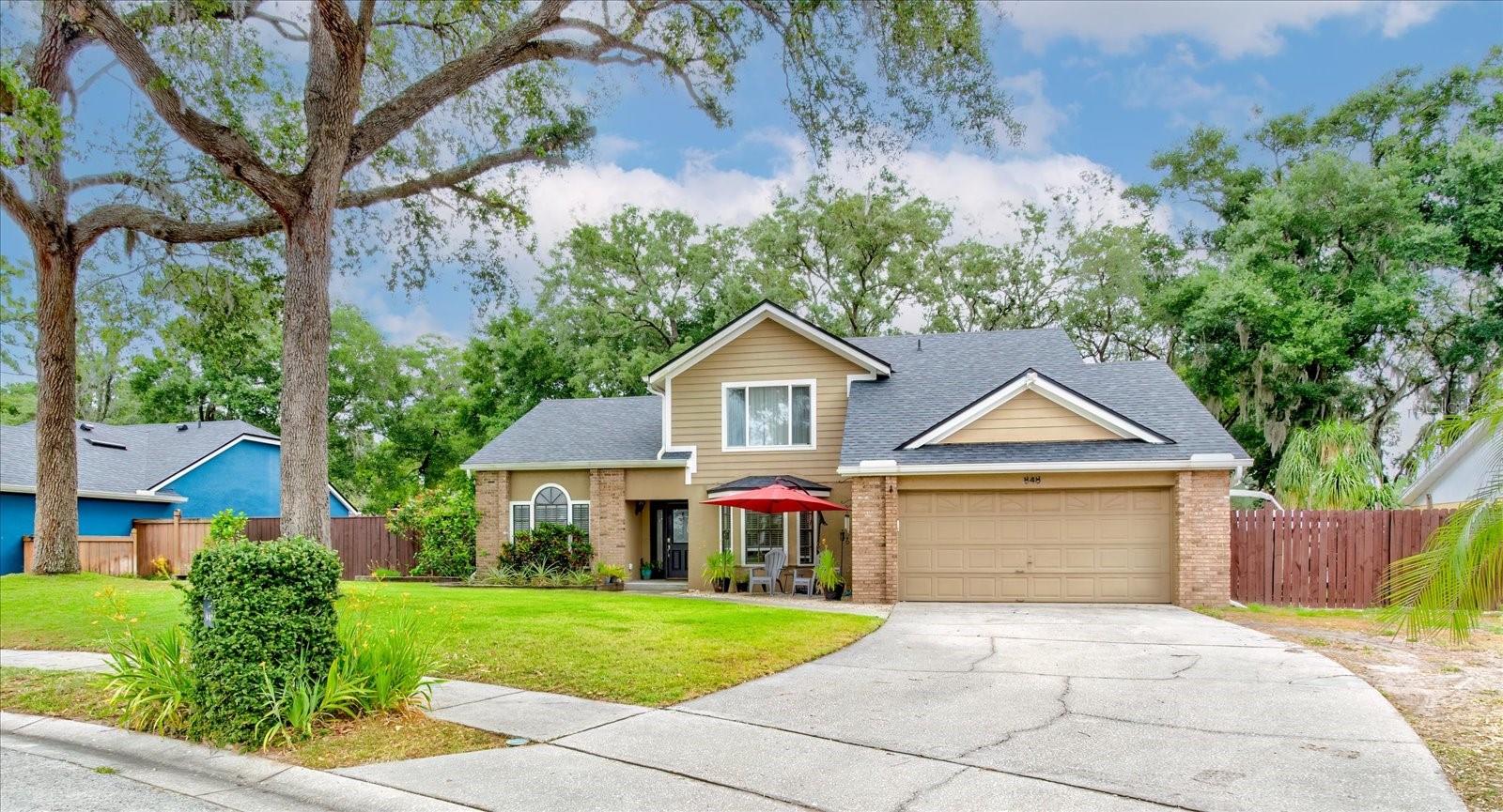 Nestled in Longwood's serene Hidden Oaks community, this beautifully maintained 3-bedroom + loft, 2.5-bath home is a true retreat. Situated on a quiet, tree-lined cul-de-sac with no through traffic, this nearly ¼-acre property offers both privacy and curb appeal. Featuring an updated kitchen, new plumbing, a water heater (August 2022), a new AC unit (2024), and stunning wood flooring upstairs. The roof was replaced in April 2022, ensuring peace of mind for years. The expansive yard is perfect for entertaining, with an RV gate and a recently purchased 12-ft swim spa for ultimate relaxation. Don’t miss the opportunity to call this Hidden Oaks gem your home!