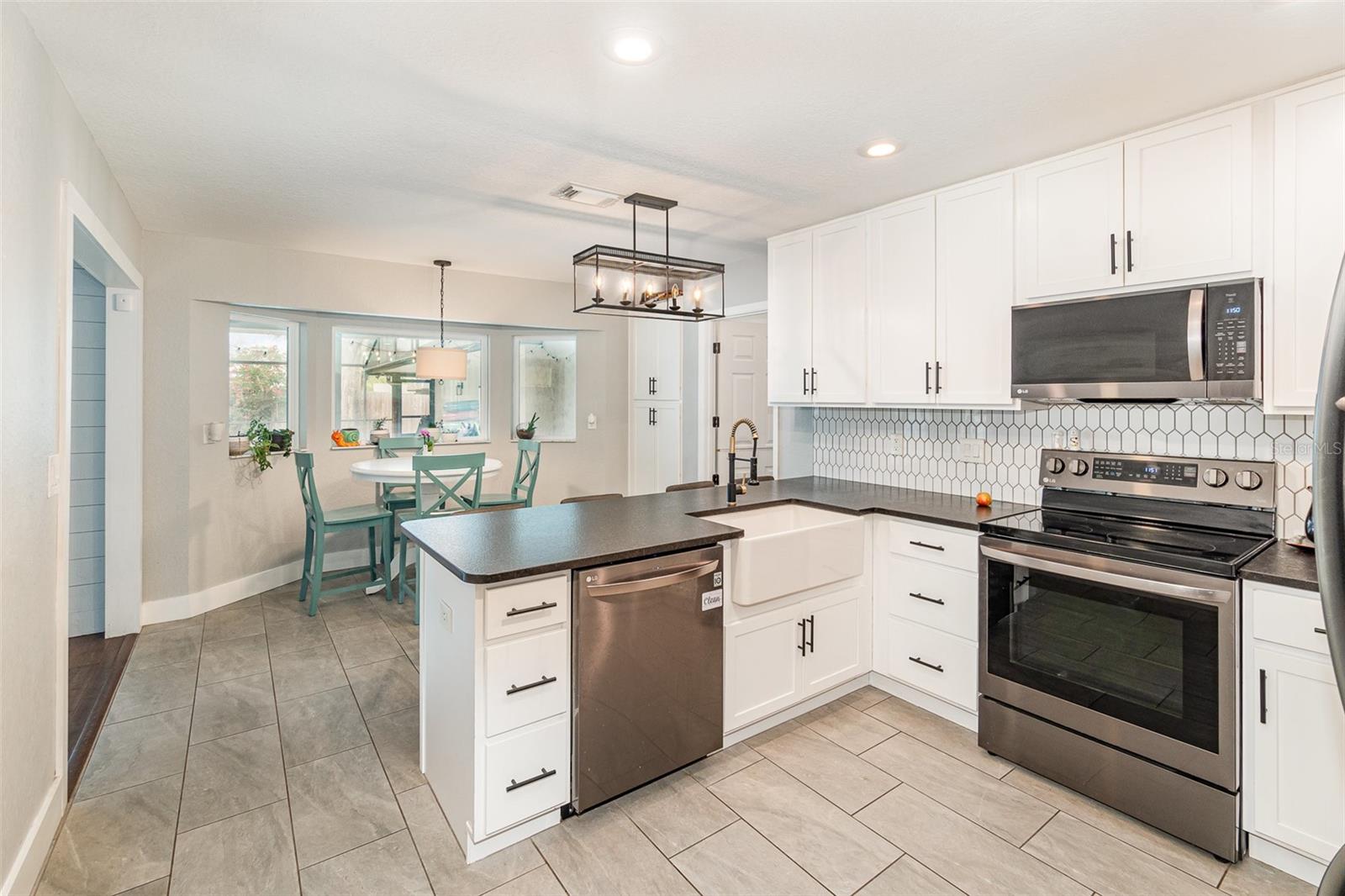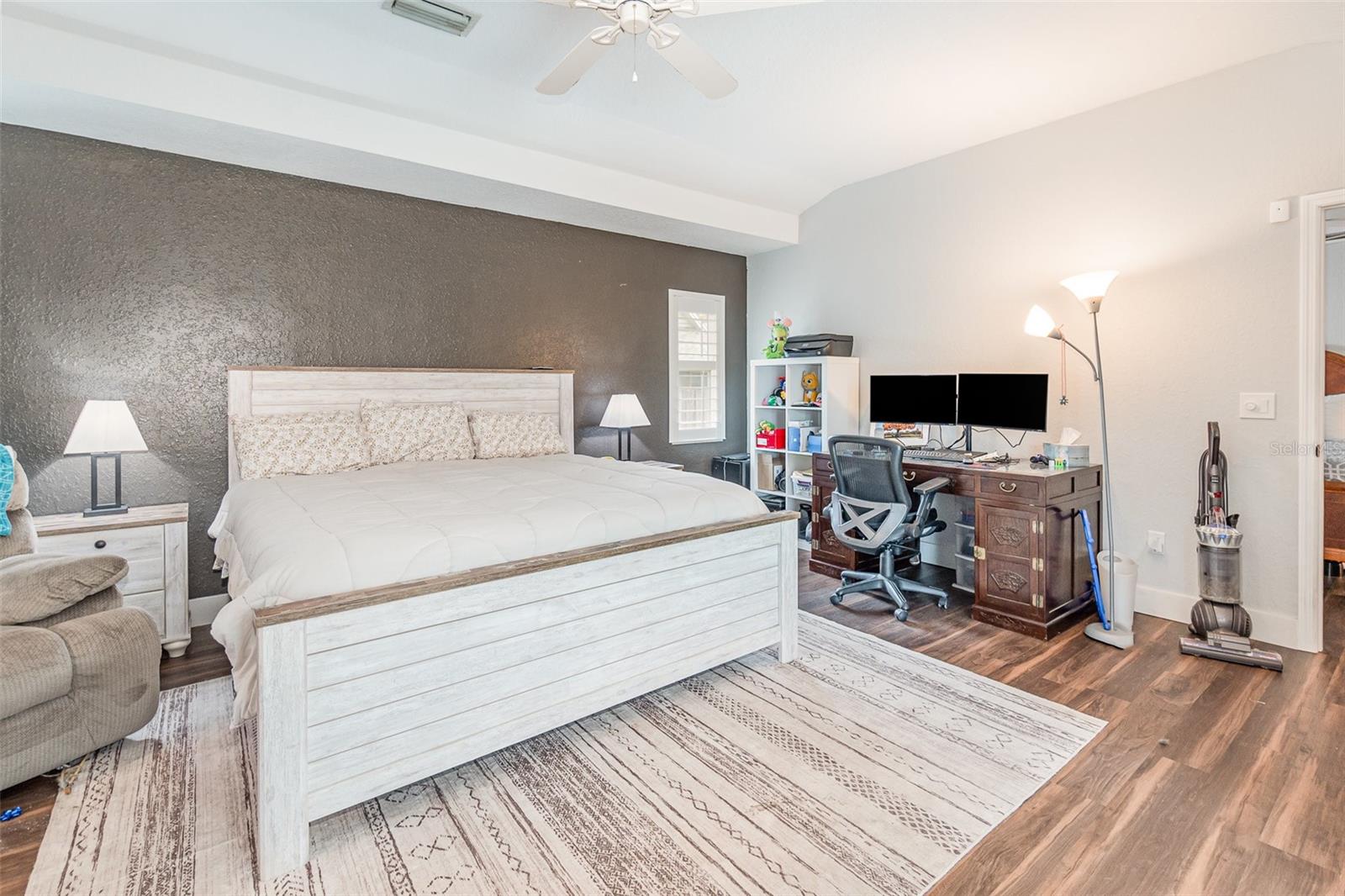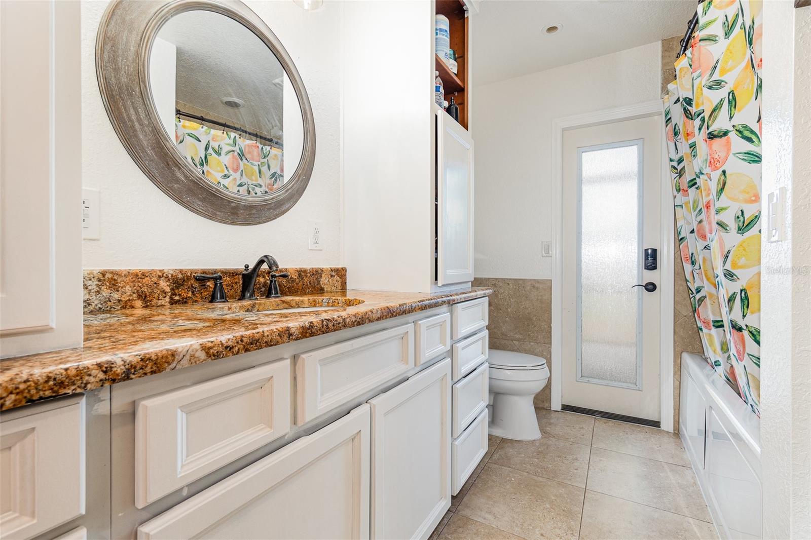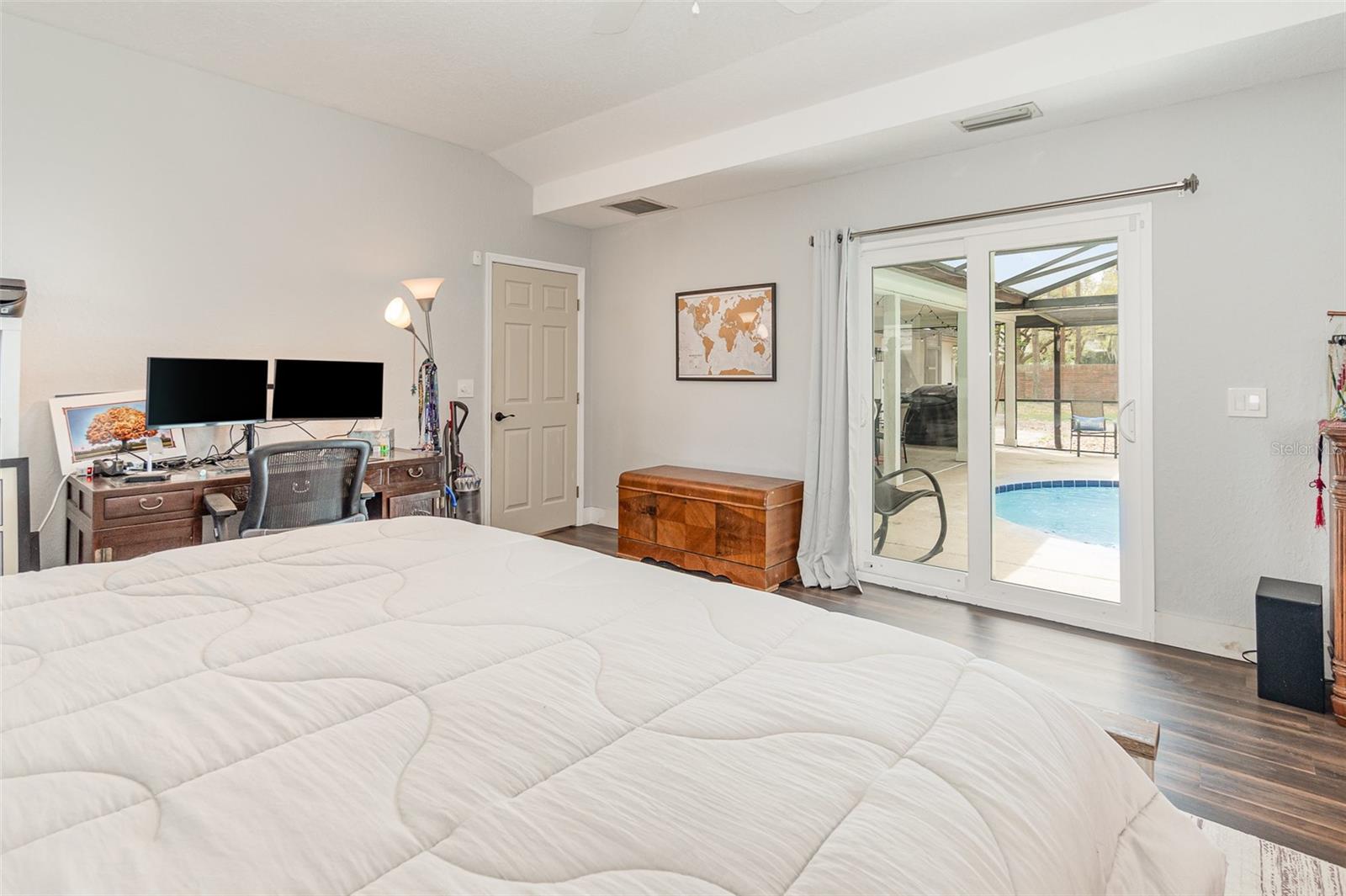 Located in the desirable Sabal Point community, this stunning 4 bedroom home with FLEX ROOM (Flex room can be a 5th bedroom or part of a 2-bedroom in-law suite) has a split floor plan offering privacy and flexibility. UPGRADED FLOORING flows throughout, complemented by a bonus half bath with a dog wash. The MODERN KITCHEN has ample counter space and breakfast nook. NEW ROOF (roof installed prior to closing) and UPDATED PLUMBING AND WIRING bring you peace of mind for many years. The oversized lot provides plenty of outdoor space. Relax in the screened-in lanai or enjoy the NEWLY RESURFACED / RE-TILED POOL and new screen. A bonus room above the garage offers endless possibilities. The primary suite hosts a vast bedroom with pool access, ensuite bath with LUXURIOUS TUB, walk-in shower, dual vanities, and dual walk-in closets. Solar panels keep energy bills low, and SKYLIGHTS provide natural light. Located near top schools, this home is the perfect blend of comfort, luxury, and efficiency.