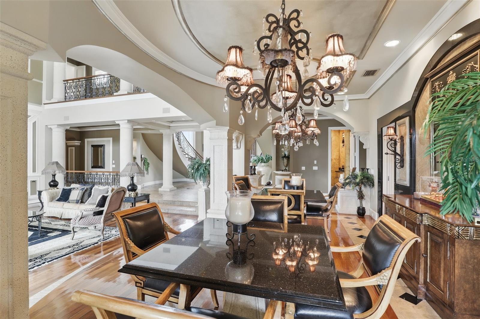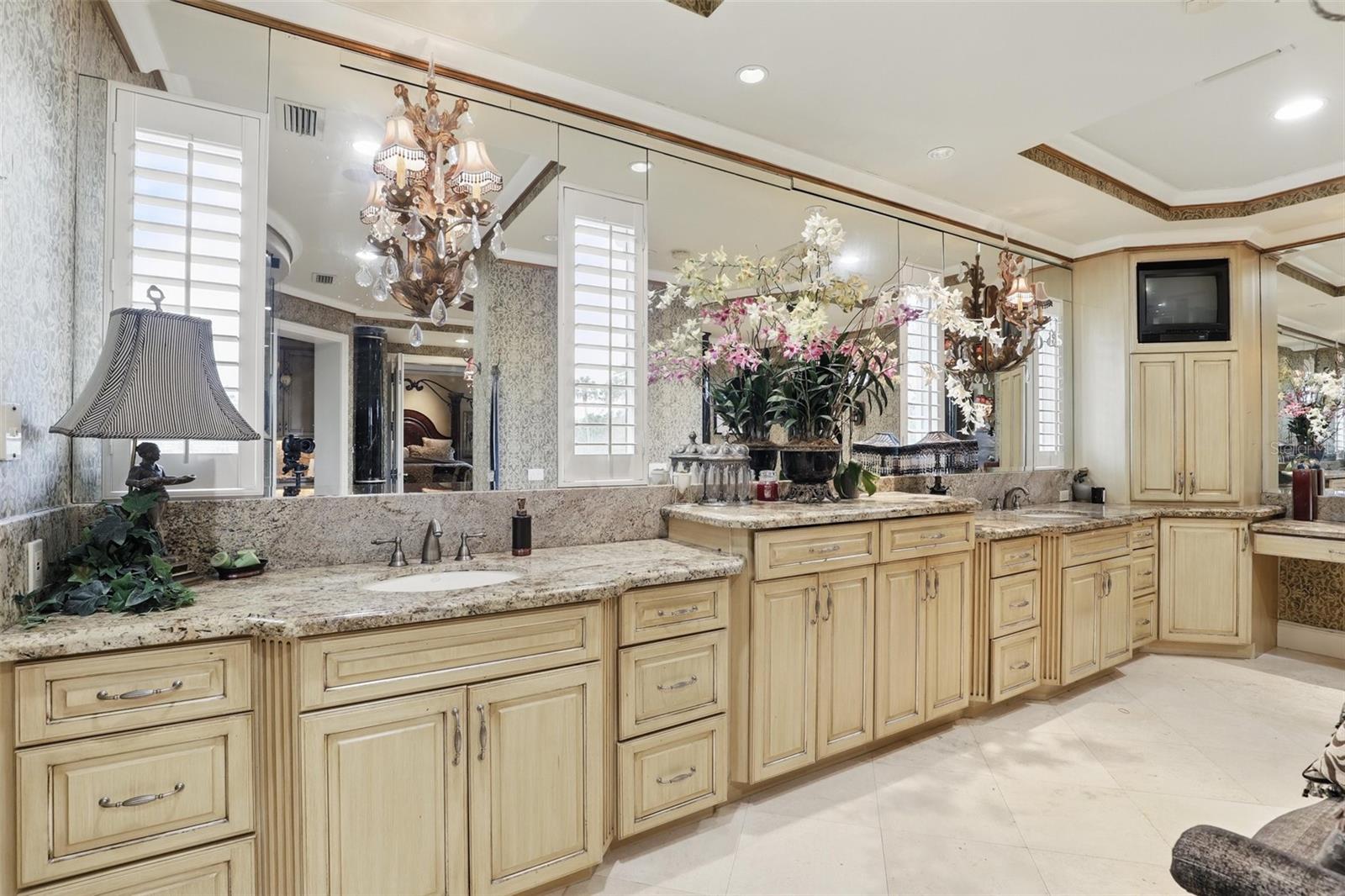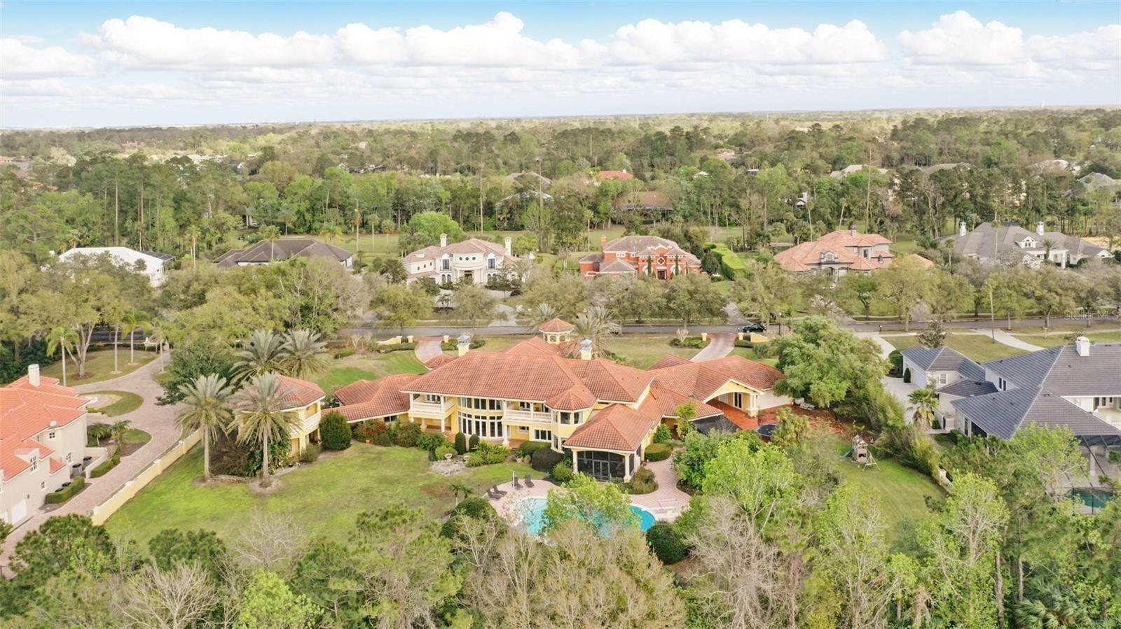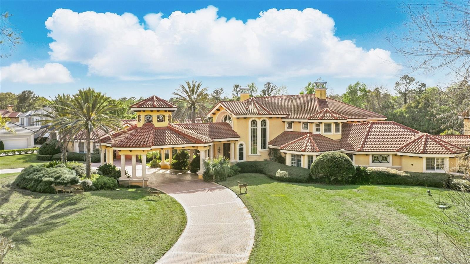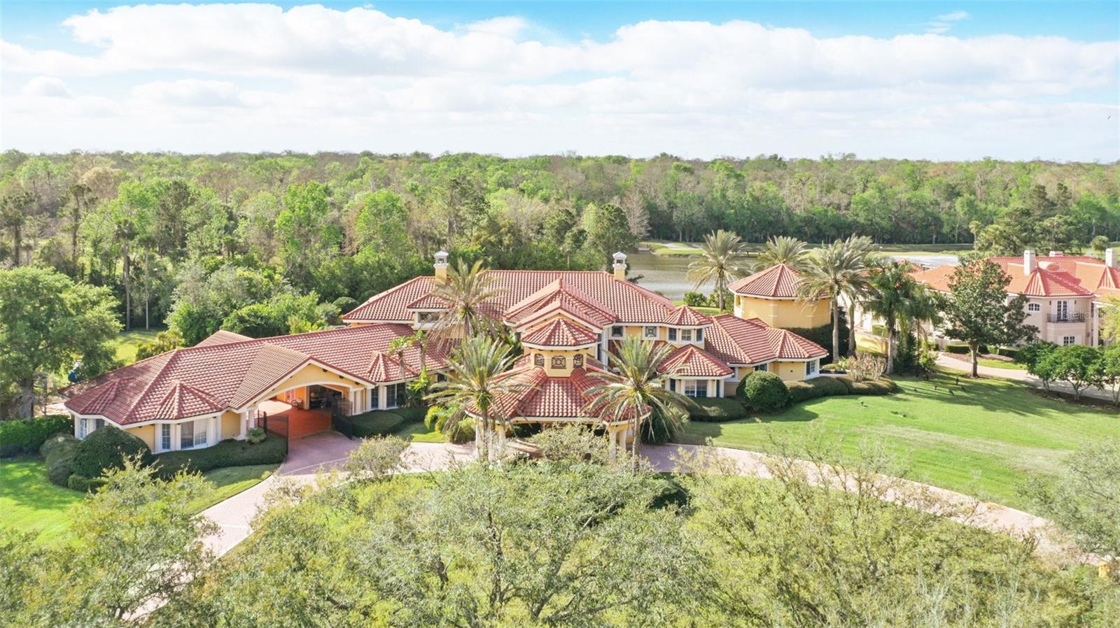 Exquisite Mediterranean Estate in the Exclusive Alaqua Community! Welcome to your dream home, nestled within the exclusive guard-gated community of Alaqua. This breathtaking Mediterranean estate sits on over two acres, offering stunning views of the Champion Golf Course. As you step into the grand foyer, you are immediately captivated by the elegance of dual spiral Mediterranean-style staircases leading to the luxurious second-floor master suite. To the other side, yet another beautifully designed in-suite bedroom. The first-floor features three spacious en-suite bedrooms, a movie theater, and a stunning custom Mediterranean-style kitchen, complete with a cozy living area and breakfast nook. The 2 living rooms and dining room showcase custom furnishings, creating a refined yet inviting ambiance. Step outside to your private outdoor oasis, where a covered patio with a fireplace and built-in grill sets the perfect stage for entertaining. The resort-style pool, complete with a diving board, offers endless relaxation and fun. This home boasts a private gym and an attached garage ensuring convenience. Additionally, it features a two-level guest house/ in-law suite, with a complete living area, kitchenette, and half bathroom on the main level. Upstairs you will find a spacious bedroom suite with a full bathroom. This exceptional estate is a rare opportunity to experience elegance, privacy, and world-class golf course views in one of Longwood’s most sought-after communities.