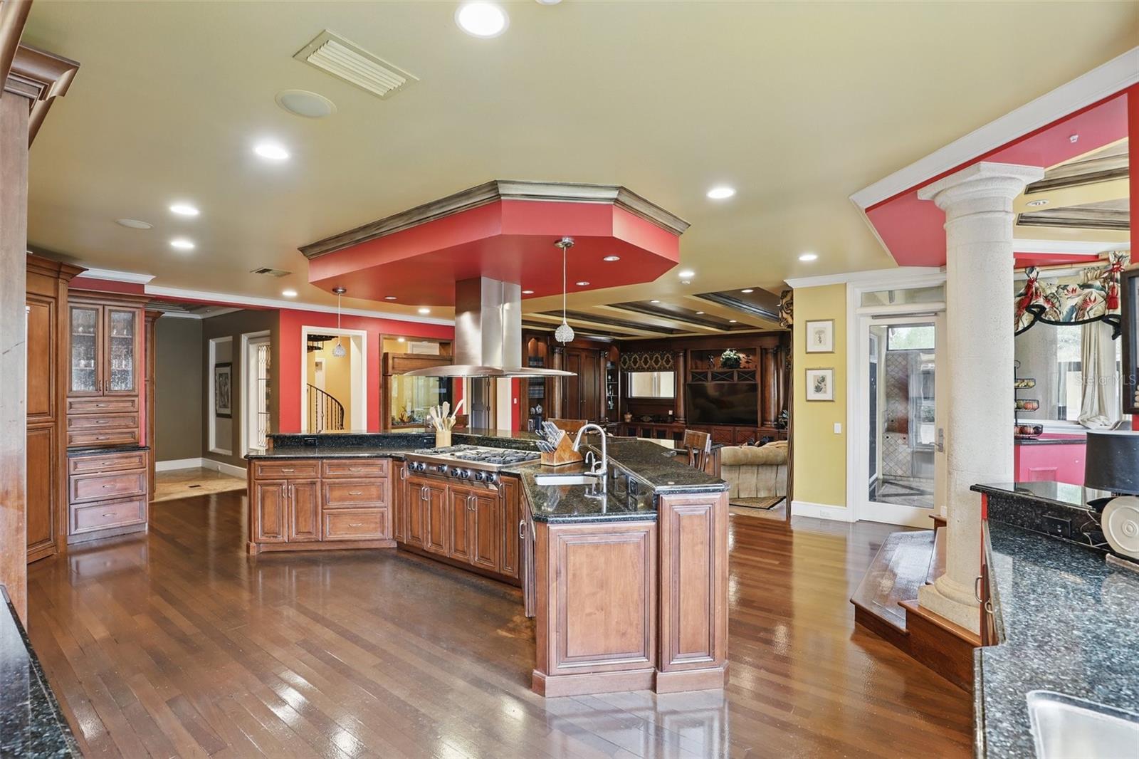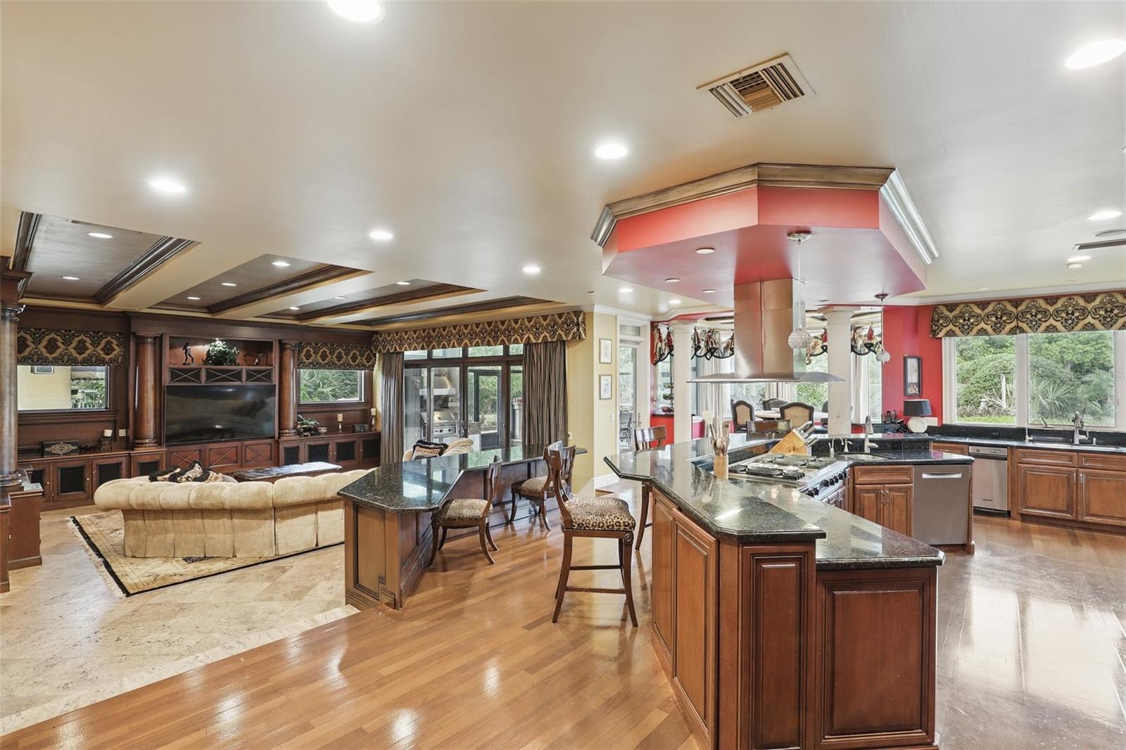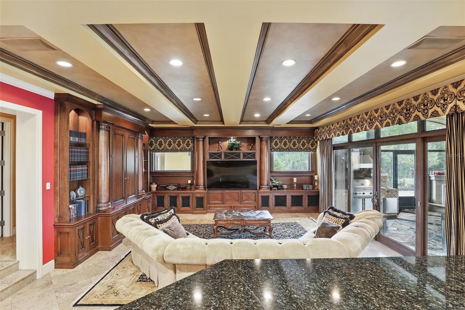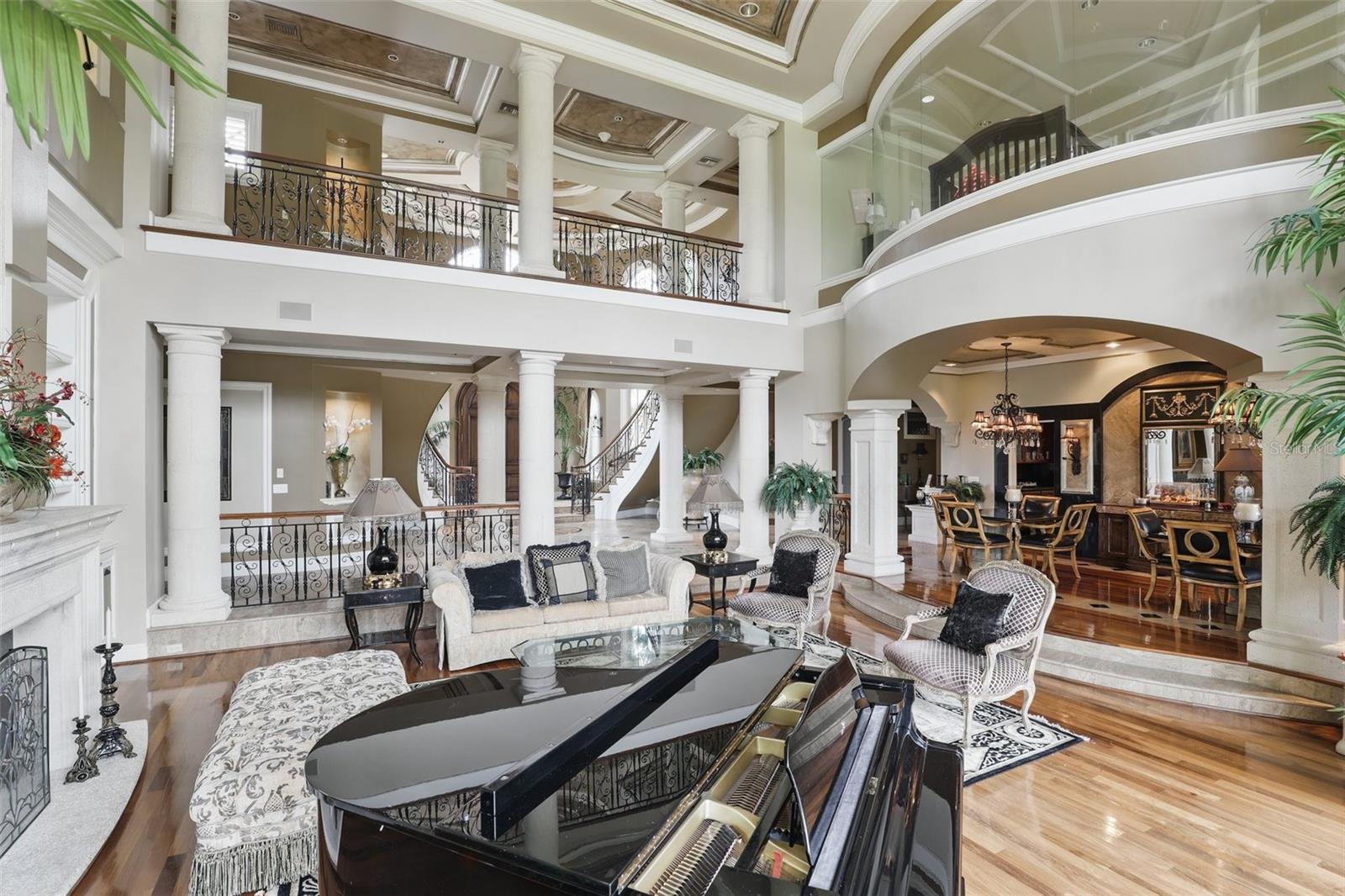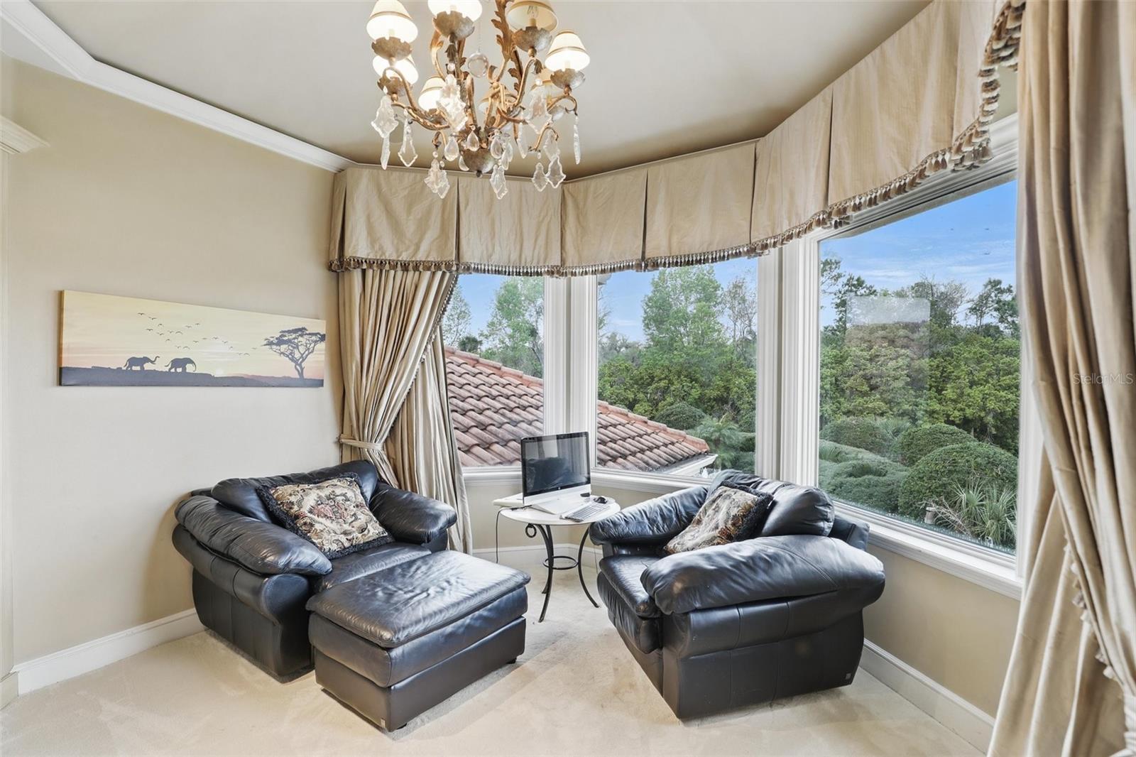 Exquisite Mediterranean Estate in the Exclusive Alaqua Community! Welcome to your dream home, nestled within the exclusive guard-gated community of Alaqua. This breathtaking Mediterranean estate sits on over two acres, offering stunning views of the Champion Golf Course. As you step into the grand foyer, you are immediately captivated by the elegance of dual spiral Mediterranean-style staircases leading to the luxurious second-floor master suite. To the other side, yet another beautifully designed in-suite bedroom. The first-floor features three spacious en-suite bedrooms, a movie theater, and a stunning custom Mediterranean-style kitchen, complete with a cozy living area and breakfast nook. The 2 living rooms and dining room showcase custom furnishings, creating a refined yet inviting ambiance. Step outside to your private outdoor oasis, where a covered patio with a fireplace and built-in grill sets the perfect stage for entertaining. The resort-style pool, complete with a diving board, offers endless relaxation and fun. This home boasts a private gym and an attached garage ensuring convenience. Additionally, it features a two-level guest house/ in-law suite, with a complete living area, kitchenette, and half bathroom on the main level. Upstairs you will find a spacious bedroom suite with a full bathroom. This exceptional estate is a rare opportunity to experience elegance, privacy, and world-class golf course views in one of Longwood’s most sought-after communities.