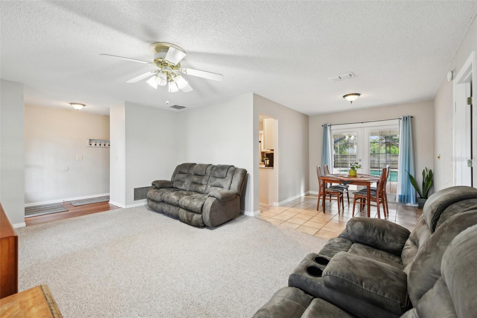 Welcome home, nature lovers! This beautiful 3-bedroom, 2 bathroom home offers the perfect blend of comfort and convenience. Enjoy outdoor living with a spacious patio featuring a brick paver pool deck. The tree-lined neighborhood provides a peaceful atmosphere, and you're just 5 minutes away from Wekiwa Springs State Park—ideal for walking or biking. A trail runs directly behind the home for easy access to nature. The split floor plan offers tons of privacy. Roof is newer, ensuring peace of mind for years to come. Plus, Wekiwa York Park is just two houses down, complete with a swing set, slides, and more. Don't miss out on this exceptional opportunity! No site unseen offers will be considered