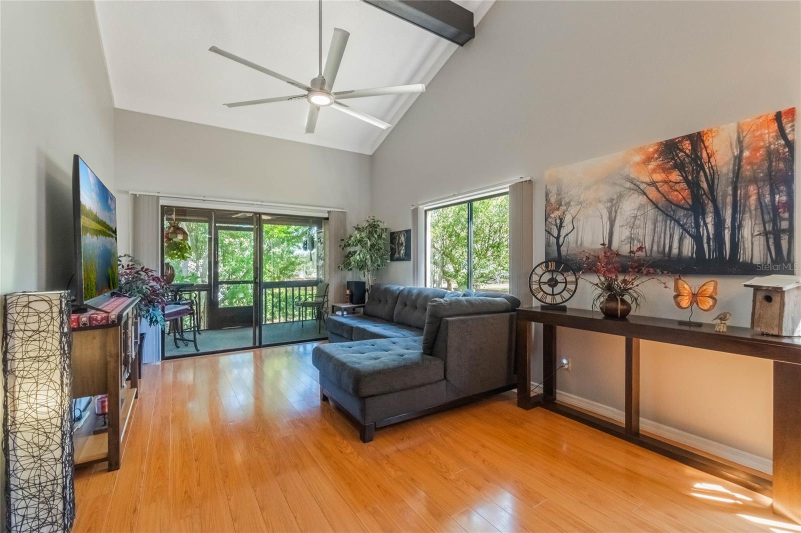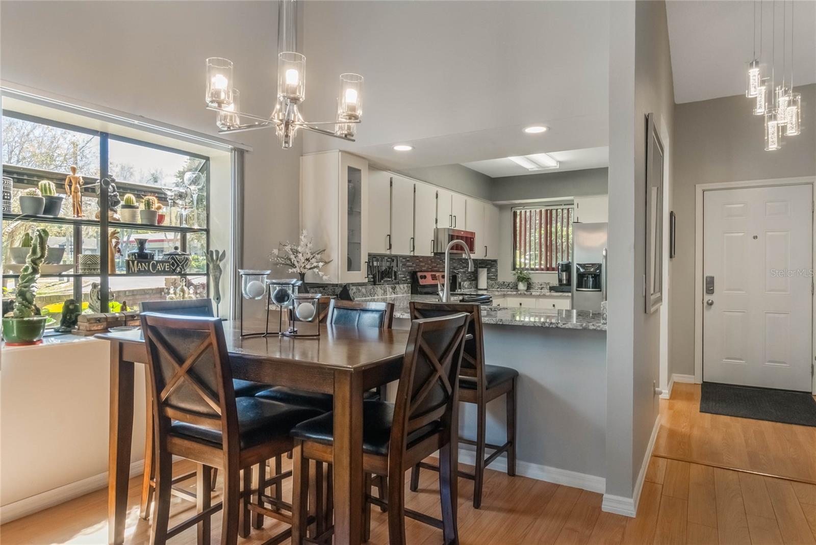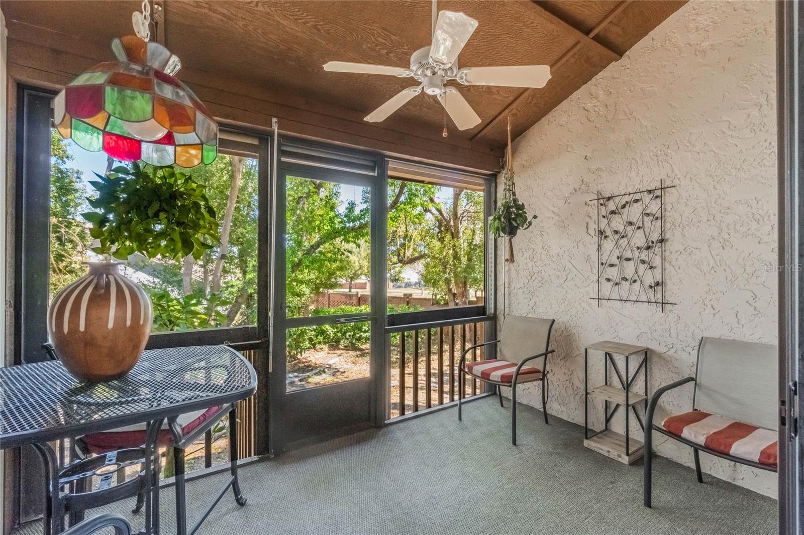 Welcome to 3901 Villas Green Circle! Now with BRAND NEW HVAC SYSTEM! This ONE-STORY, thoughtfully-updated END UNIT Wekiva Villas on the Green condo is located in the very heart of the Wekiva-Hunt Club community. Constructed from brick in 1984, enter through a courtyard-style, plant-lined patio, to the front porch entrance. The large kitchen features granite countertops, updated backsplash and stainless steel appliances. Warm and welcoming wood floors lead you toward the rest of the home, where the living room and dining room merge into a sunny and bright space, kept temperate by the cool breezes produced by the BIG A$$ FAN. A fun pop of color accentuates the sliding barn-style door within the calming color palette. The dining room isn’t just a place to eat, it’s a place to reflect in nature; a solarium window brings the outdoors in. The large, vibrantly-colored primary suite includes an updated ensuite bathroom, walk-in closet and sliding doors that lead to the Florida room, which is currently in use as an art studio. The large and sunny second bedroom is adjacent to the guest bathroom and interior laundry room. The sliding doors off of the living room lead to a screened porch and deck, a great space to enjoy calming views of the surrounding nature in the lovely yard with flower beds and mature landscaping that includes oaks, a magnolia tree, palms, hibiscus, plumeria, roses and even cacti! Native plants provide happiness with very little maintenance. This condo features a well-organized, usable garage, and off street parking. Recent updates include new front gutters (2024), updated kitchen and bathrooms, fresh interior paint, new recessed lighting, some updated flooring, updated designer light fixtures on dimmer switches, upgraded stainless steel appliances. Residents of Villas Green benefit from the amenities offered by the Wekiva community, and also include a community pool and all irrigation, lawn care, and grounds maintenance. The Wekiva community is a well-established and serene residential area known for its natural beauty. Don’t miss this unique spot nestled within it all!
