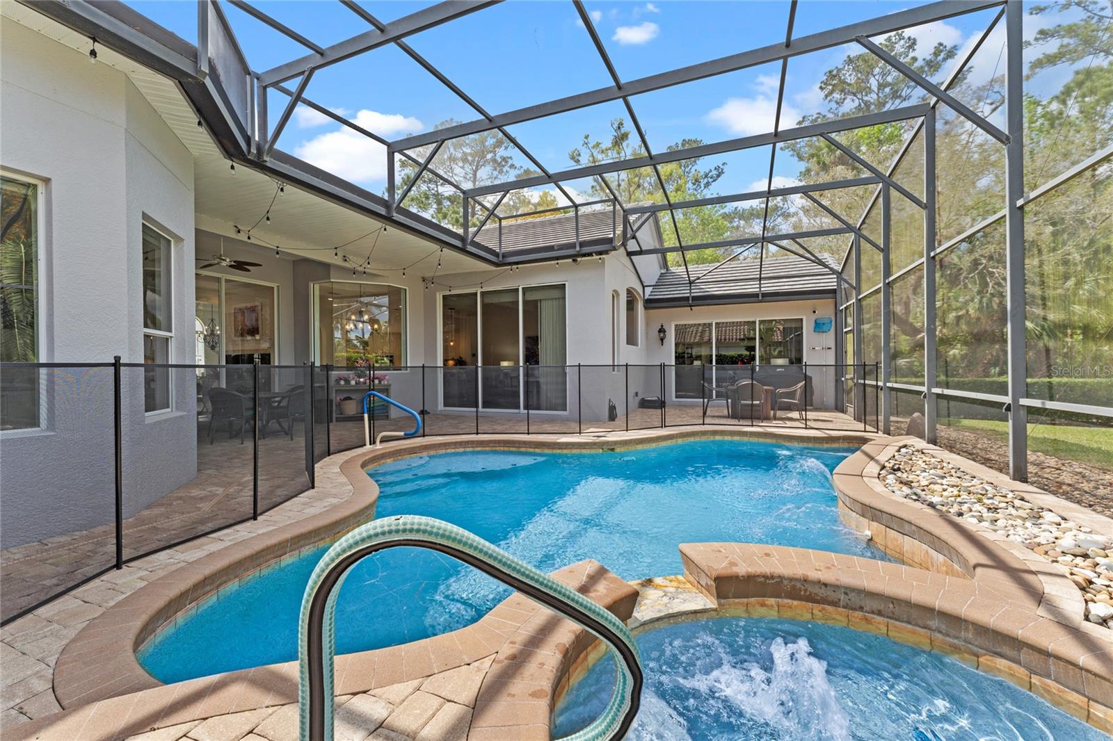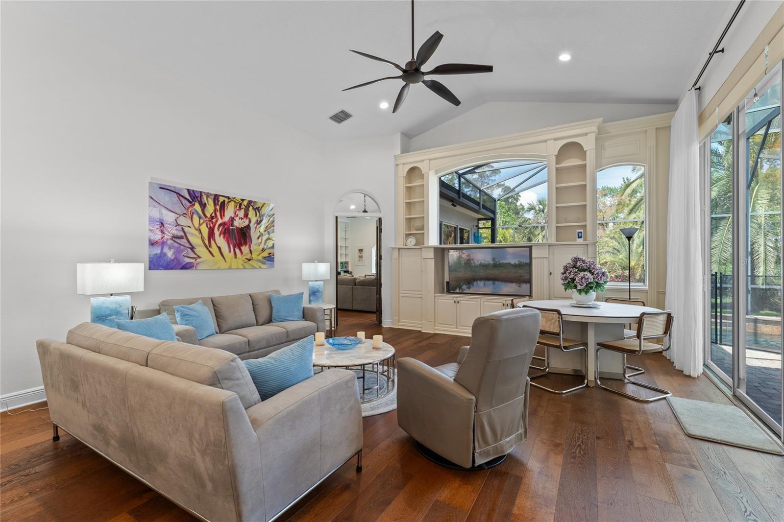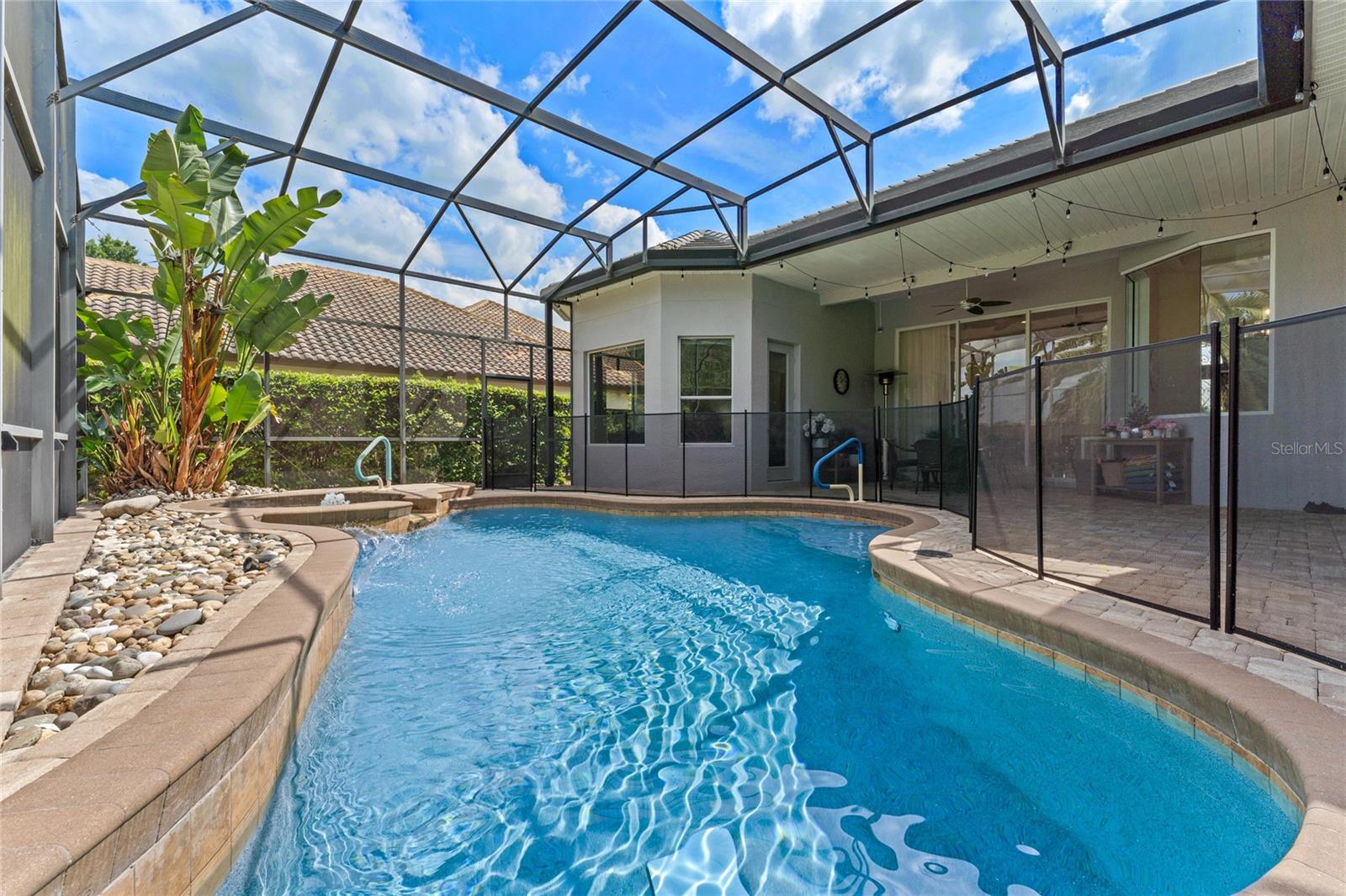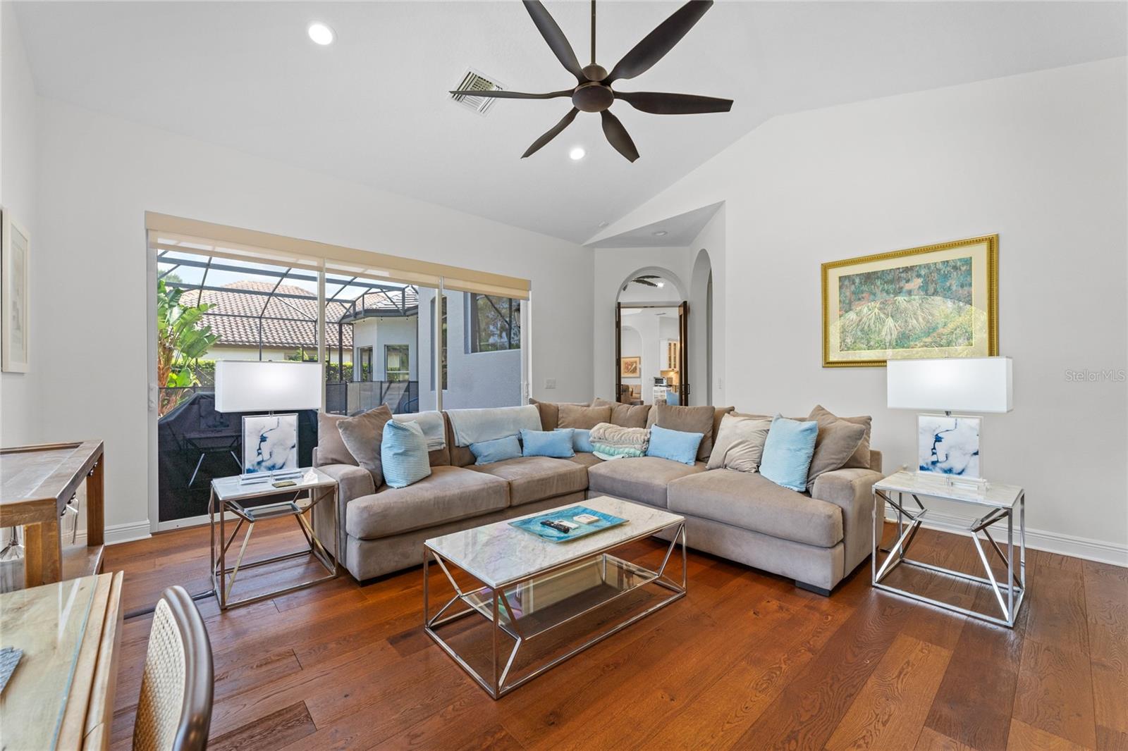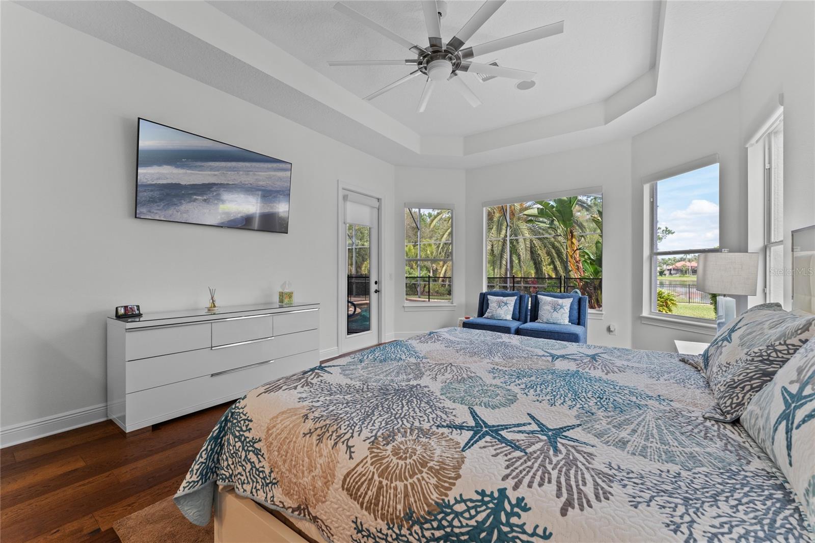 Tucked away on what is arguably the most private oversized homesite (.66 acres) in the prestigious 24-hour guard-gated community of Alaqua Lakes, this single-level executive estate is perfectly positioned at the end of a cul-de-sac offering serene water views and ultimate privacy. This thoughtfully updated 4-bedroom, 3.5-bath home with a dedicated office and spacious bonus room has been extensively upgraded for a truly move-in ready experience. Recent enhancements include: NEW Tile Roof (2023), NEW Trane A/C System (2022), NEW Generac Whole-House Generator (2023), NEW Tankless Water Heater (2022), NEW Quartz Kitchen Counters & Stainless Appliances (2022), NEW Heated Pool System & Aqualink Control (2023)...and so much more! The bright, open layout is perfect for both everyday living and entertaining. With tile and hardwood flooring throughout—no carpet anywhere, this home delivers a clean and modern aesthetic. A brick paver driveway welcomes you home, leading to new mahogany double entry doors that open into a sunlit interior. The living room features a custom electric fireplace, creating a cozy yet contemporary focal point. The chef's kitchen shines with new quartz countertops, high-end stainless appliances, and dual wine/beverage fridges for ample cool storage. Step outside to enjoy the Florida lifestyle at its finest with a screened, covered lanai overlooking the sparkling, heated pool, fenced backyard, and peaceful water views. The private primary suite boasts newly installed hardwood flooring, dual walk-in closets, and a luxurious bath with quartz counters. A large bonus room tucked at the rear of the home is ideal for game day gatherings or movie nights. Residents of Alaqua Lakes enjoy exclusive access to a 7-acre community park with an open-air pavilion, tennis courts, a multi-purpose field, and more—just minutes from top-tier shopping, dining, business hubs, and major roadways. This exceptional property combines privacy, luxury, and convenience—schedule your private showing today! This property may be under audio/visual surveillance.