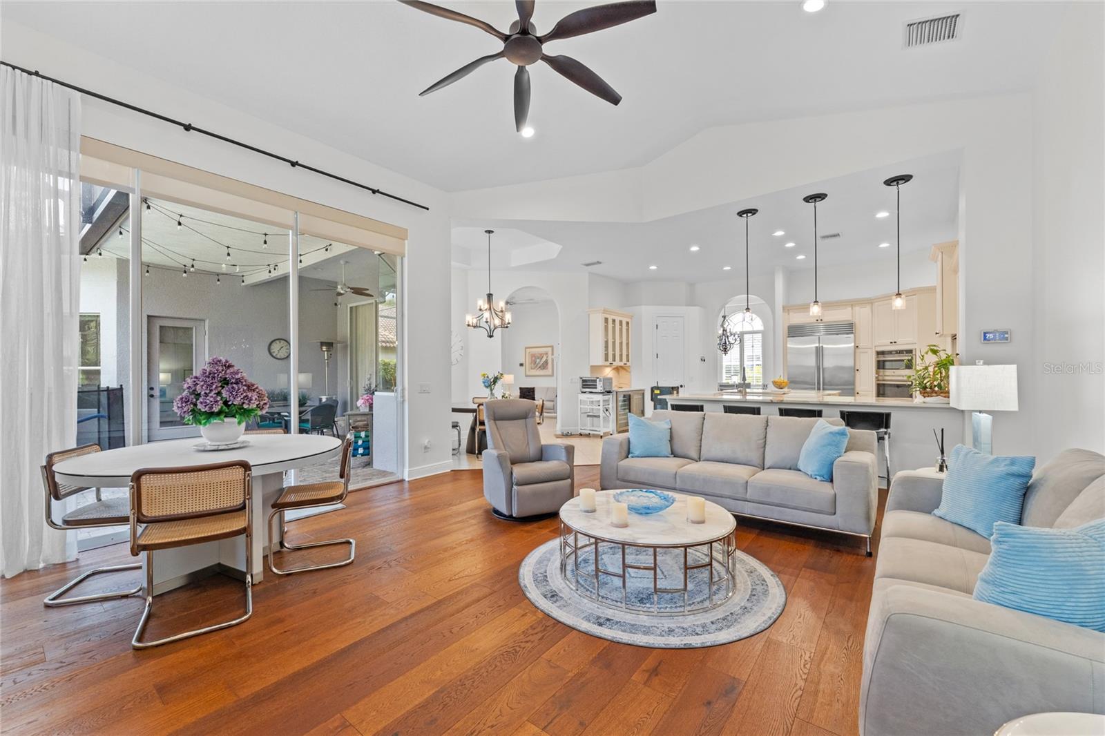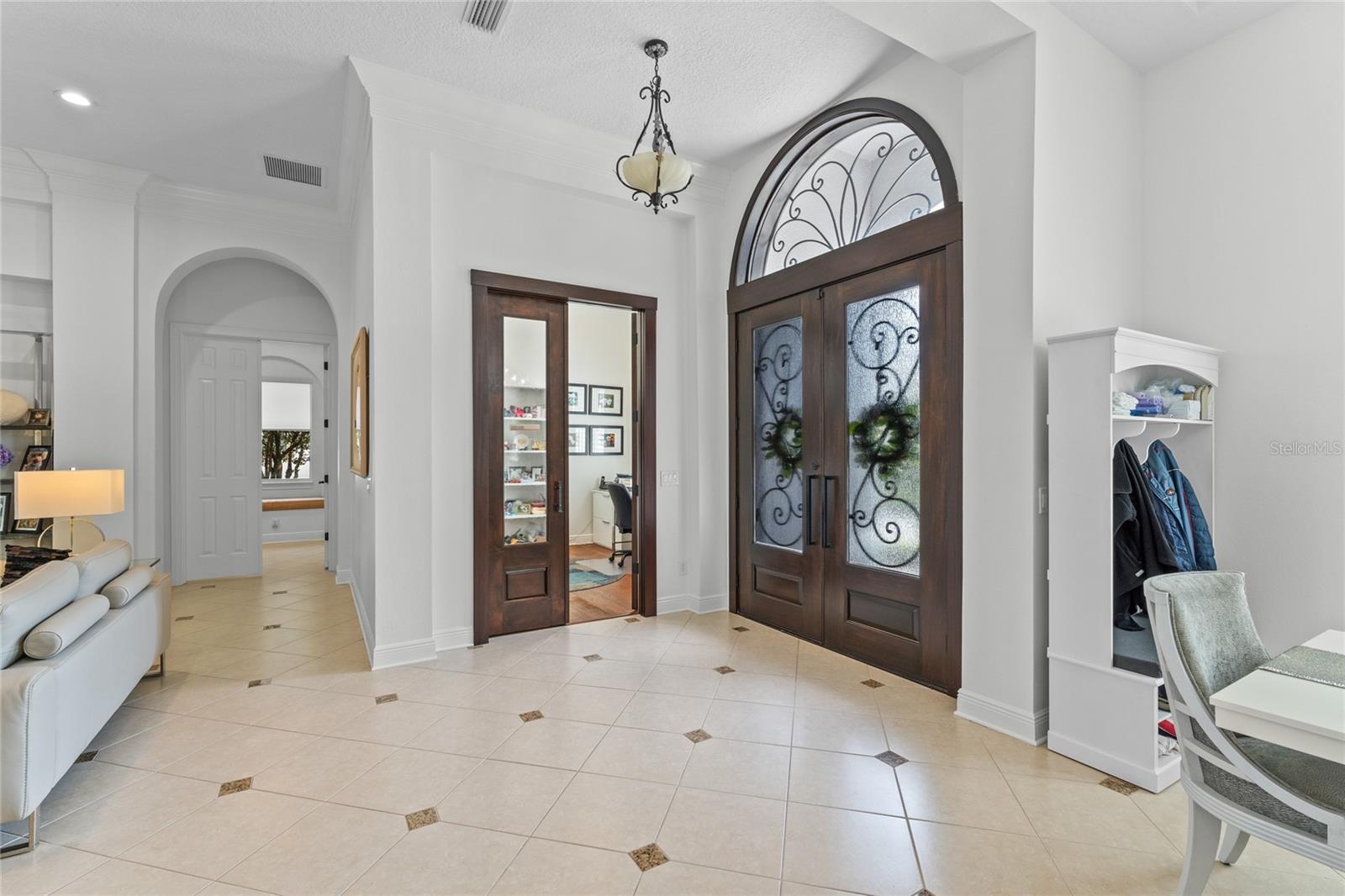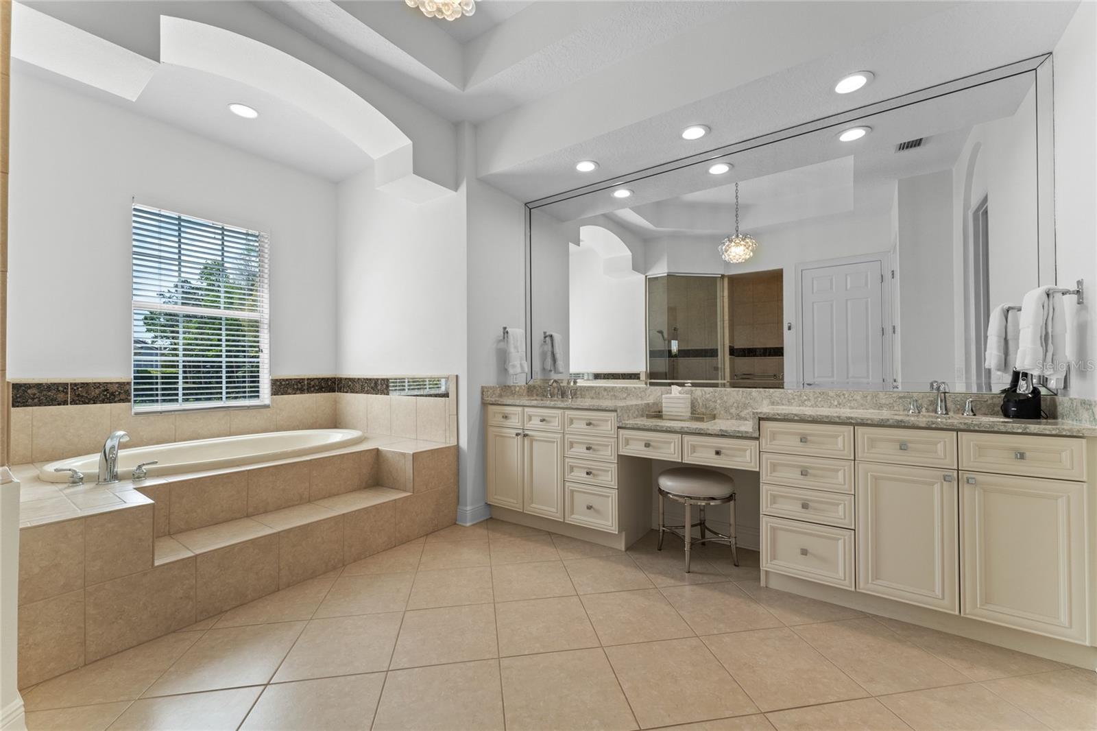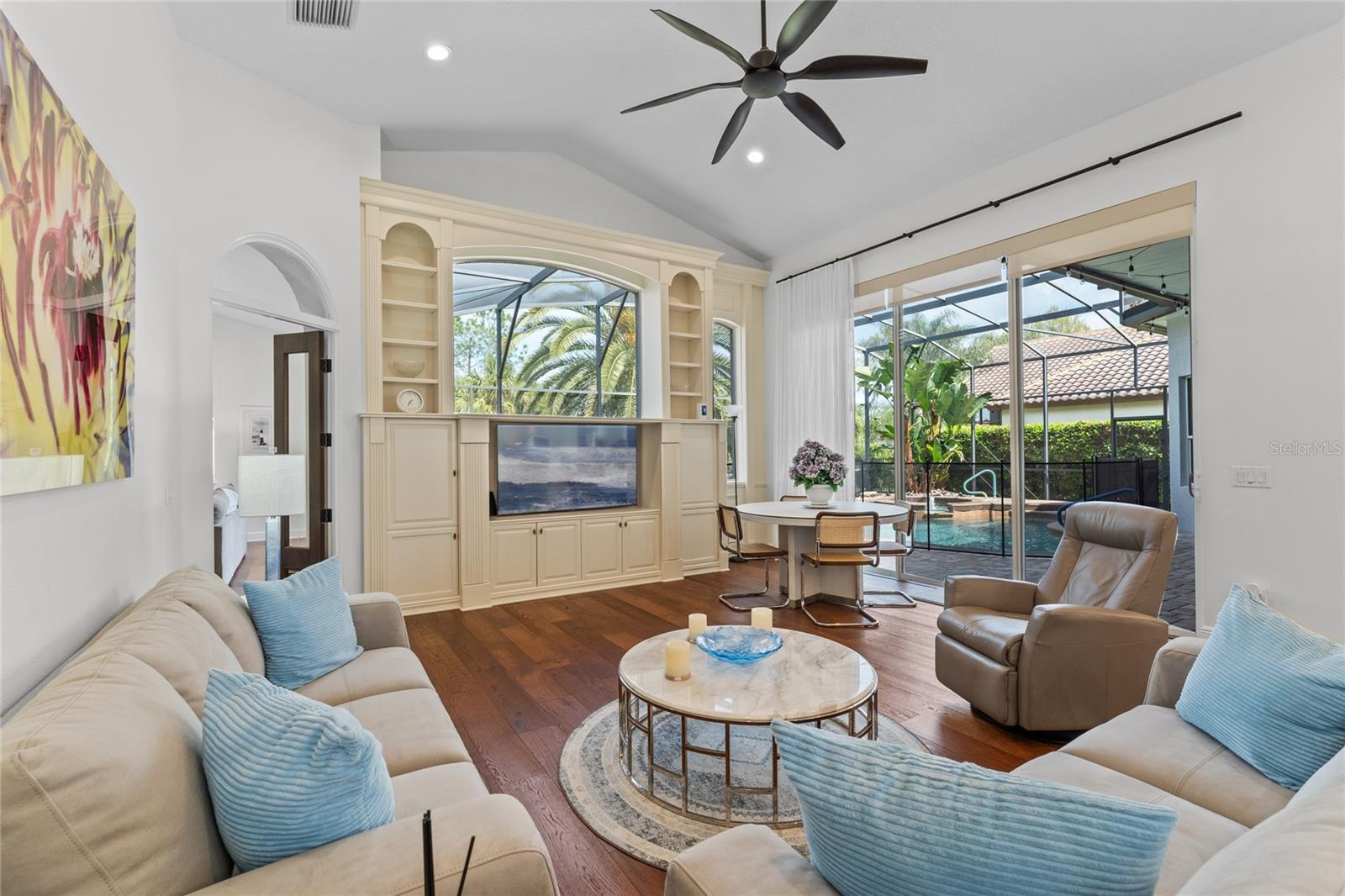 Tucked away on what is arguably the most private oversized homesite (.66 acres) in the prestigious 24-hour guard-gated community of Alaqua Lakes, this single-level executive estate is perfectly positioned at the end of a cul-de-sac offering serene water views and ultimate privacy. This thoughtfully updated 4-bedroom, 3.5-bath home with a dedicated office and spacious bonus room has been extensively upgraded for a truly move-in ready experience. Recent enhancements include: NEW Tile Roof (2023), NEW Trane A/C System (2022), NEW Generac Whole-House Generator (2023), NEW Tankless Water Heater (2022), NEW Quartz Kitchen Counters & Stainless Appliances (2022), NEW Heated Pool System & Aqualink Control (2023)...and so much more! The bright, open layout is perfect for both everyday living and entertaining. With tile and hardwood flooring throughout—no carpet anywhere, this home delivers a clean and modern aesthetic. A brick paver driveway welcomes you home, leading to new mahogany double entry doors that open into a sunlit interior. The living room features a custom electric fireplace, creating a cozy yet contemporary focal point. The chef's kitchen shines with new quartz countertops, high-end stainless appliances, and dual wine/beverage fridges for ample cool storage. Step outside to enjoy the Florida lifestyle at its finest with a screened, covered lanai overlooking the sparkling, heated pool, fenced backyard, and peaceful water views. The private primary suite boasts newly installed hardwood flooring, dual walk-in closets, and a luxurious bath with quartz counters. A large bonus room tucked at the rear of the home is ideal for game day gatherings or movie nights. Residents of Alaqua Lakes enjoy exclusive access to a 7-acre community park with an open-air pavilion, tennis courts, a multi-purpose field, and more—just minutes from top-tier shopping, dining, business hubs, and major roadways. This exceptional property combines privacy, luxury, and convenience—schedule your private showing today! This property may be under audio/visual surveillance.