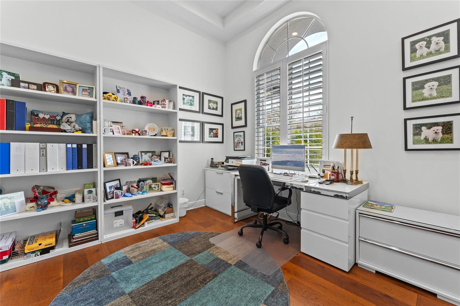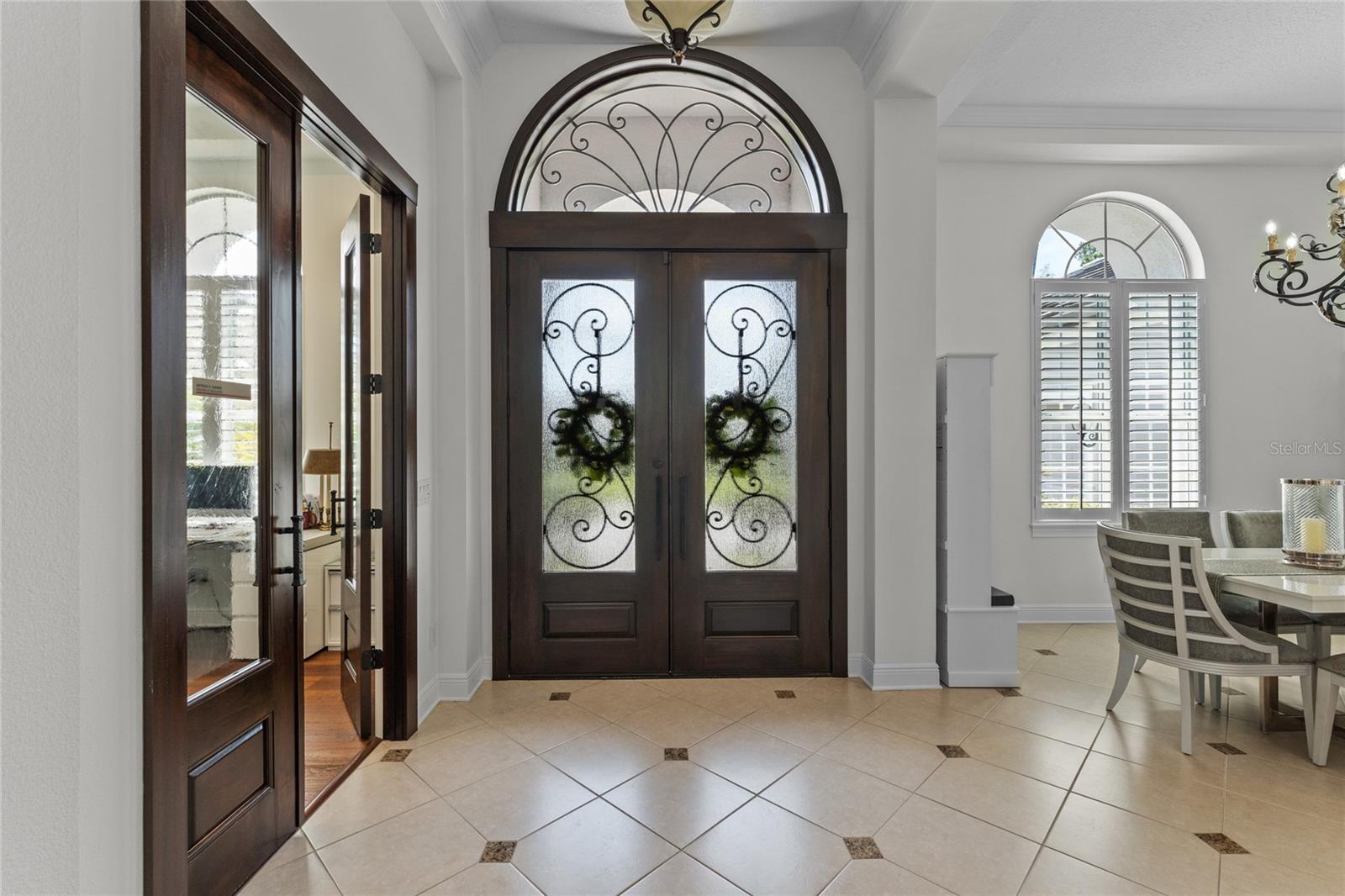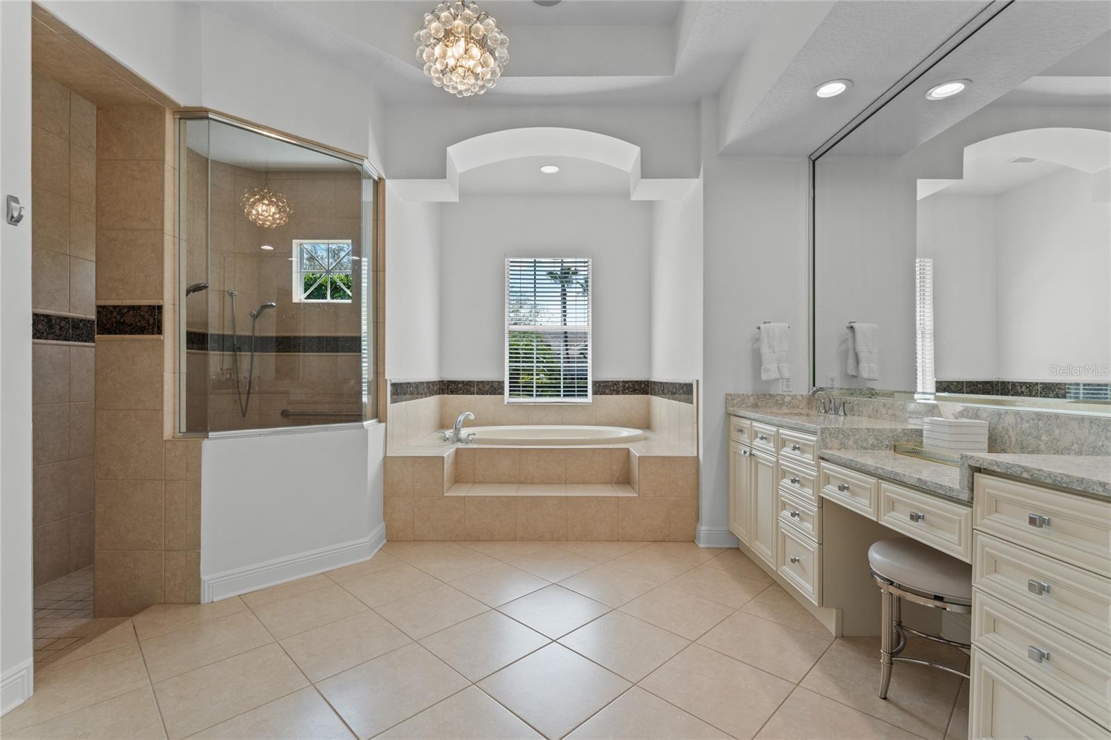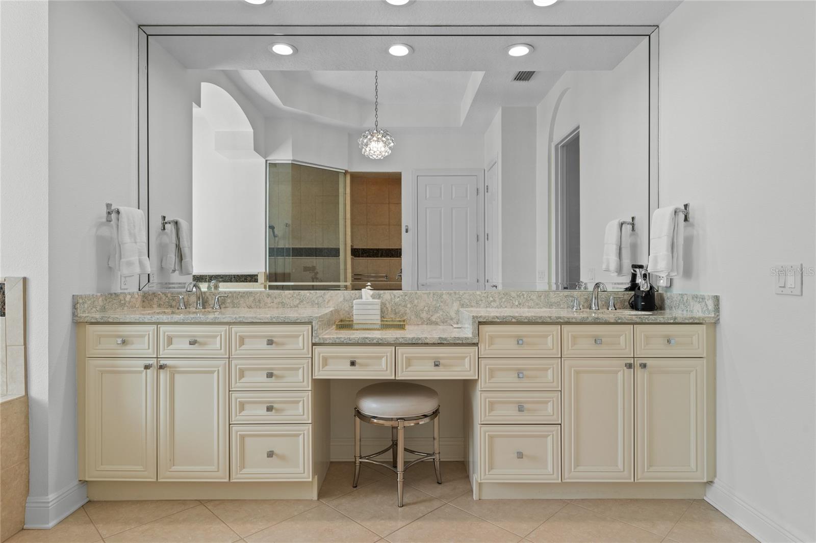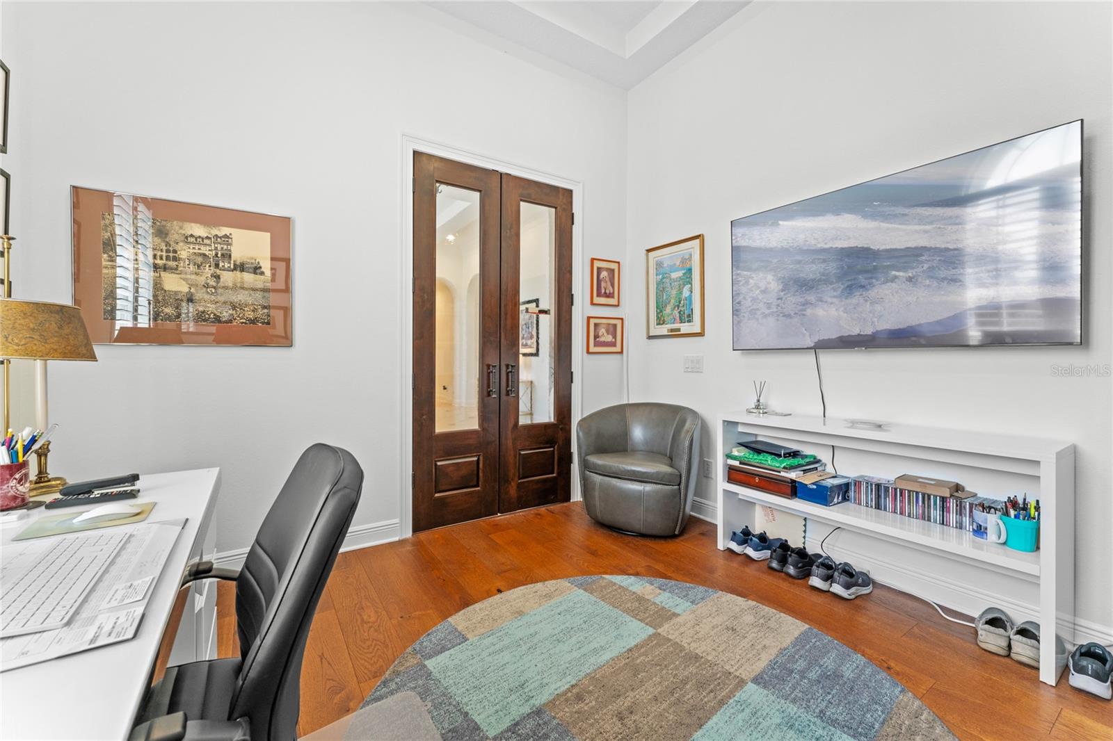 Tucked away on what is arguably the most private oversized homesite (.66 acres) in the prestigious 24-hour guard-gated community of Alaqua Lakes, this single-level executive estate is perfectly positioned at the end of a cul-de-sac offering serene water views and ultimate privacy. This thoughtfully updated 4-bedroom, 3.5-bath home with a dedicated office and spacious bonus room has been extensively upgraded for a truly move-in ready experience. Recent enhancements include: NEW Tile Roof (2023), NEW Trane A/C System (2022), NEW Generac Whole-House Generator (2023), NEW Tankless Water Heater (2022), NEW Quartz Kitchen Counters & Stainless Appliances (2022), NEW Heated Pool System & Aqualink Control (2023)...and so much more! The bright, open layout is perfect for both everyday living and entertaining. With tile and hardwood flooring throughout—no carpet anywhere, this home delivers a clean and modern aesthetic. A brick paver driveway welcomes you home, leading to new mahogany double entry doors that open into a sunlit interior. The living room features a custom electric fireplace, creating a cozy yet contemporary focal point. The chef's kitchen shines with new quartz countertops, high-end stainless appliances, and dual wine/beverage fridges for ample cool storage. Step outside to enjoy the Florida lifestyle at its finest with a screened, covered lanai overlooking the sparkling, heated pool, fenced backyard, and peaceful water views. The private primary suite boasts newly installed hardwood flooring, dual walk-in closets, and a luxurious bath with quartz counters. A large bonus room tucked at the rear of the home is ideal for game day gatherings or movie nights. Residents of Alaqua Lakes enjoy exclusive access to a 7-acre community park with an open-air pavilion, tennis courts, a multi-purpose field, and more—just minutes from top-tier shopping, dining, business hubs, and major roadways. This exceptional property combines privacy, luxury, and convenience—schedule your private showing today! This property may be under audio/visual surveillance.