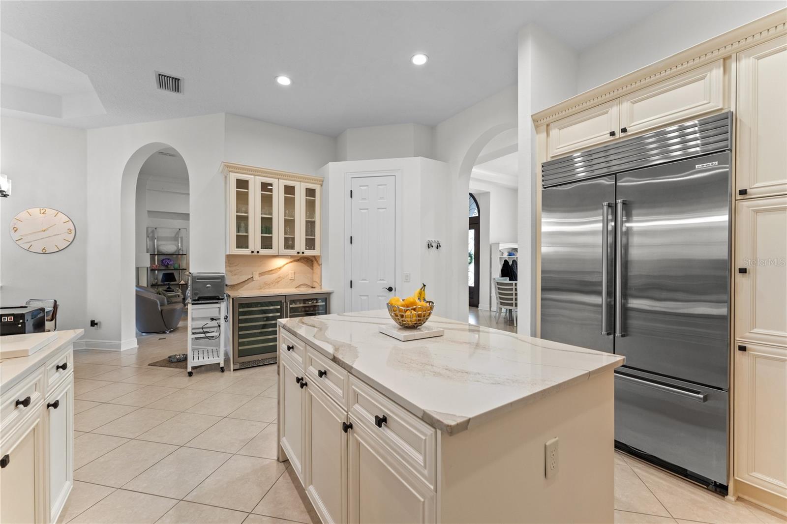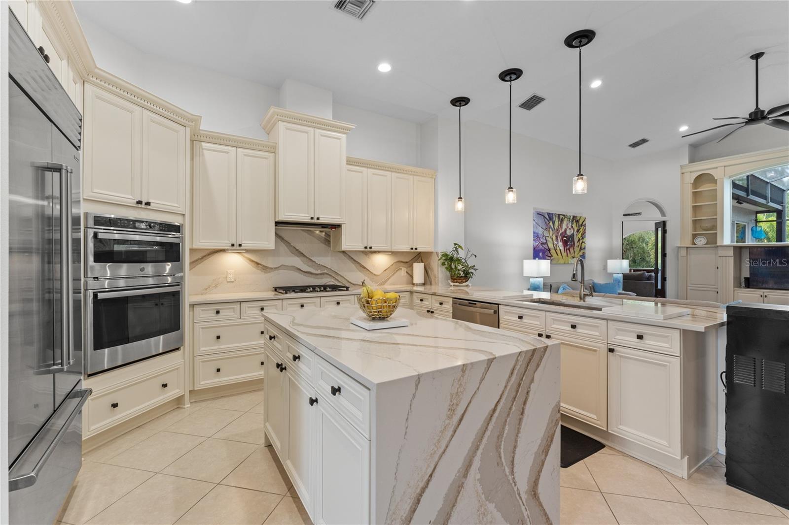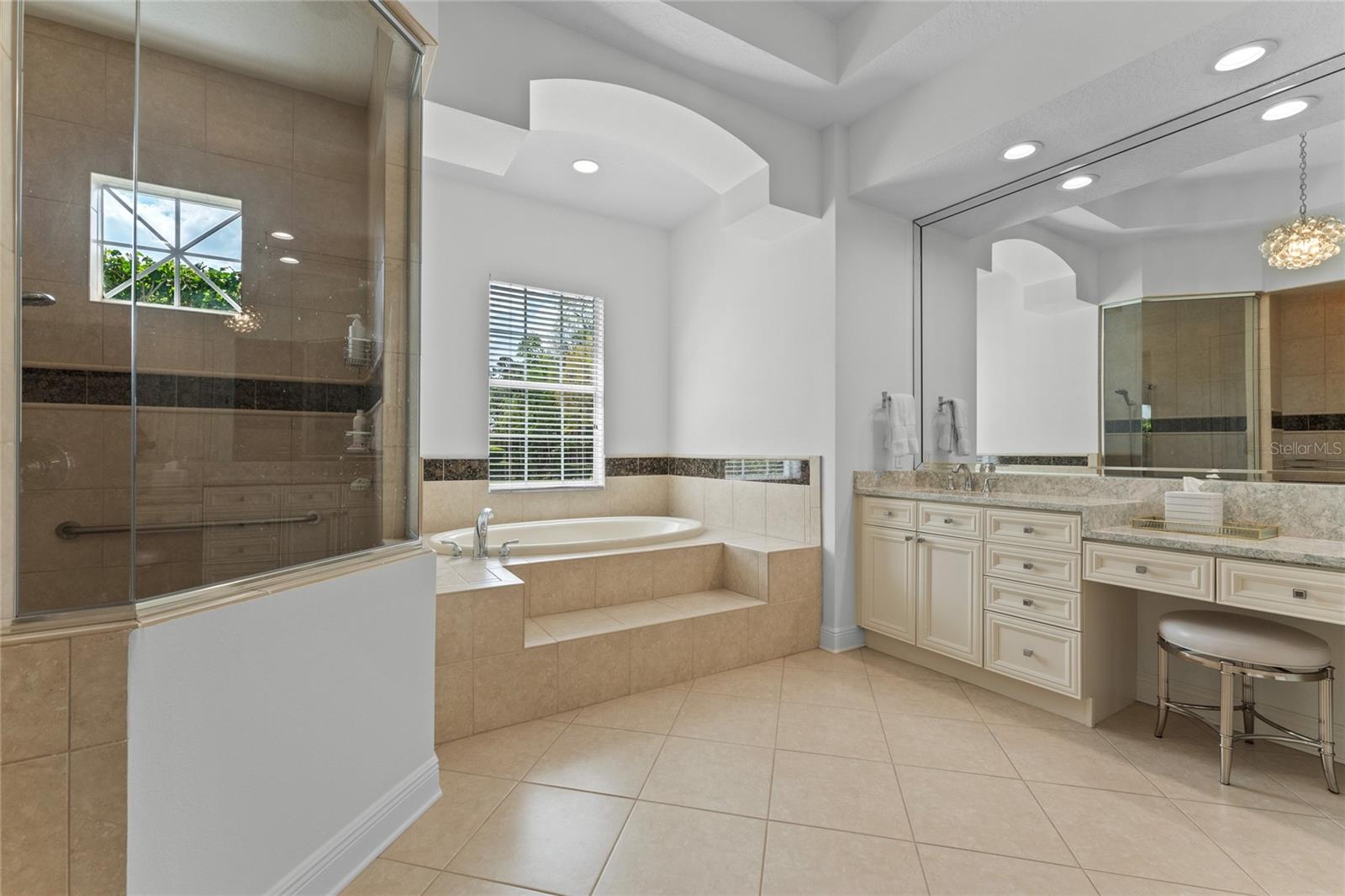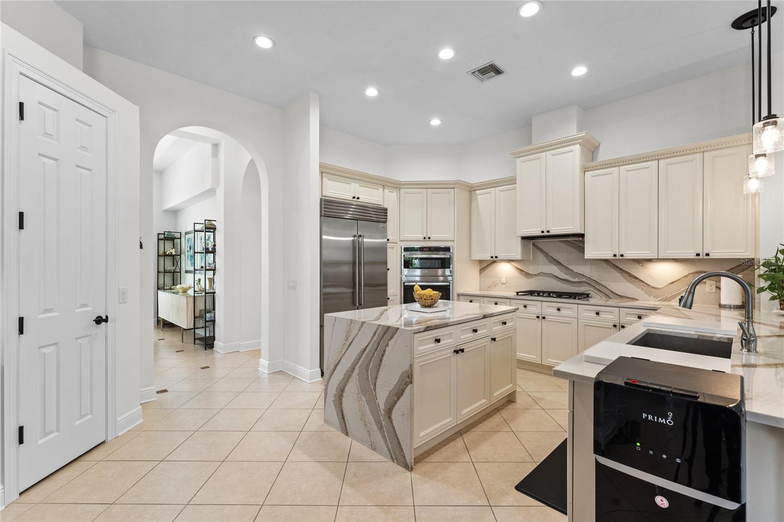Tucked away on what is arguably the most private oversized homesite (.66 acres) in the prestigious 24-hour guard-gated community of Alaqua Lakes, this single-level executive estate is perfectly positioned at the end of a cul-de-sac offering serene water views and ultimate privacy. This thoughtfully updated 4-bedroom, 3.5-bath home with a dedicated office and spacious bonus room has been extensively upgraded for a truly move-in ready experience. Recent enhancements include: NEW Tile Roof (2023), NEW Trane A/C System (2022), NEW Generac Whole-House Generator (2023), NEW Tankless Water Heater (2022), NEW Quartz Kitchen Counters & Stainless Appliances (2022), NEW Heated Pool System & Aqualink Control (2023)...and so much more! The bright, open layout is perfect for both everyday living and entertaining. With tile and hardwood flooring throughout—no carpet anywhere, this home delivers a clean and modern aesthetic. A brick paver driveway welcomes you home, leading to new mahogany double entry doors that open into a sunlit interior. The living room features a custom electric fireplace, creating a cozy yet contemporary focal point. The chef's kitchen shines with new quartz countertops, high-end stainless appliances, and dual wine/beverage fridges for ample cool storage. Step outside to enjoy the Florida lifestyle at its finest with a screened, covered lanai overlooking the sparkling, heated pool, fenced backyard, and peaceful water views. The private primary suite boasts newly installed hardwood flooring, dual walk-in closets, and a luxurious bath with quartz counters. A large bonus room tucked at the rear of the home is ideal for game day gatherings or movie nights. Residents of Alaqua Lakes enjoy exclusive access to a 7-acre community park with an open-air pavilion, tennis courts, a multi-purpose field, and more—just minutes from top-tier shopping, dining, business hubs, and major roadways. This exceptional property combines privacy, luxury, and convenience—schedule your private showing today! This property may be under audio/visual surveillance.