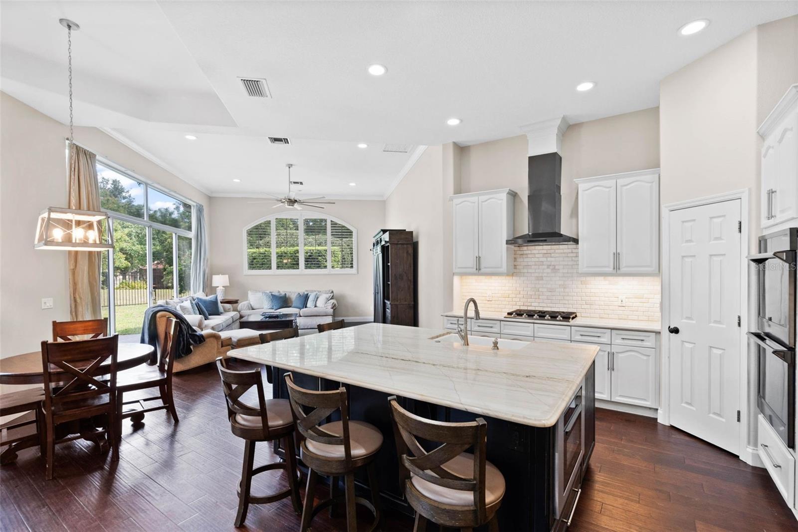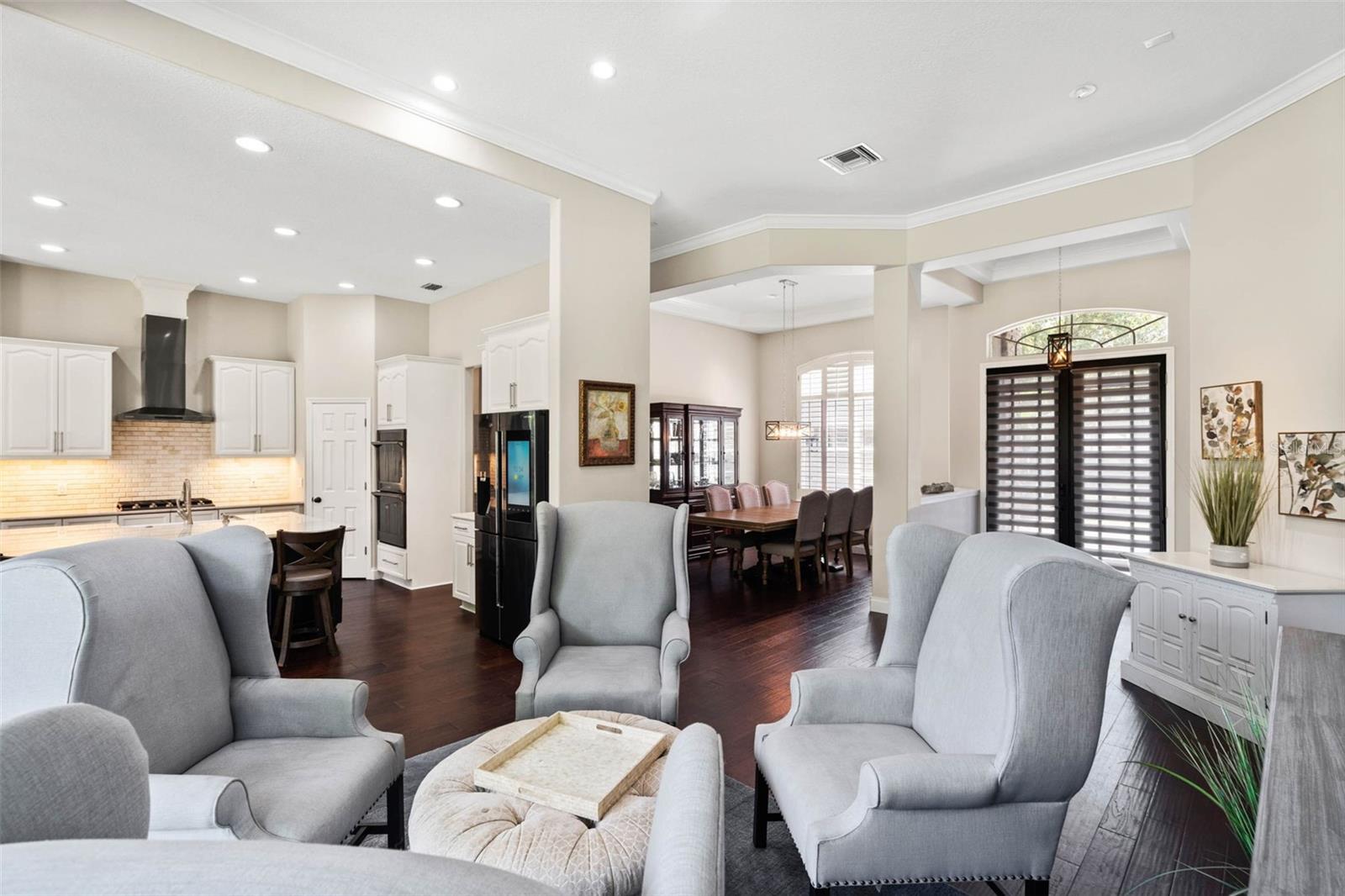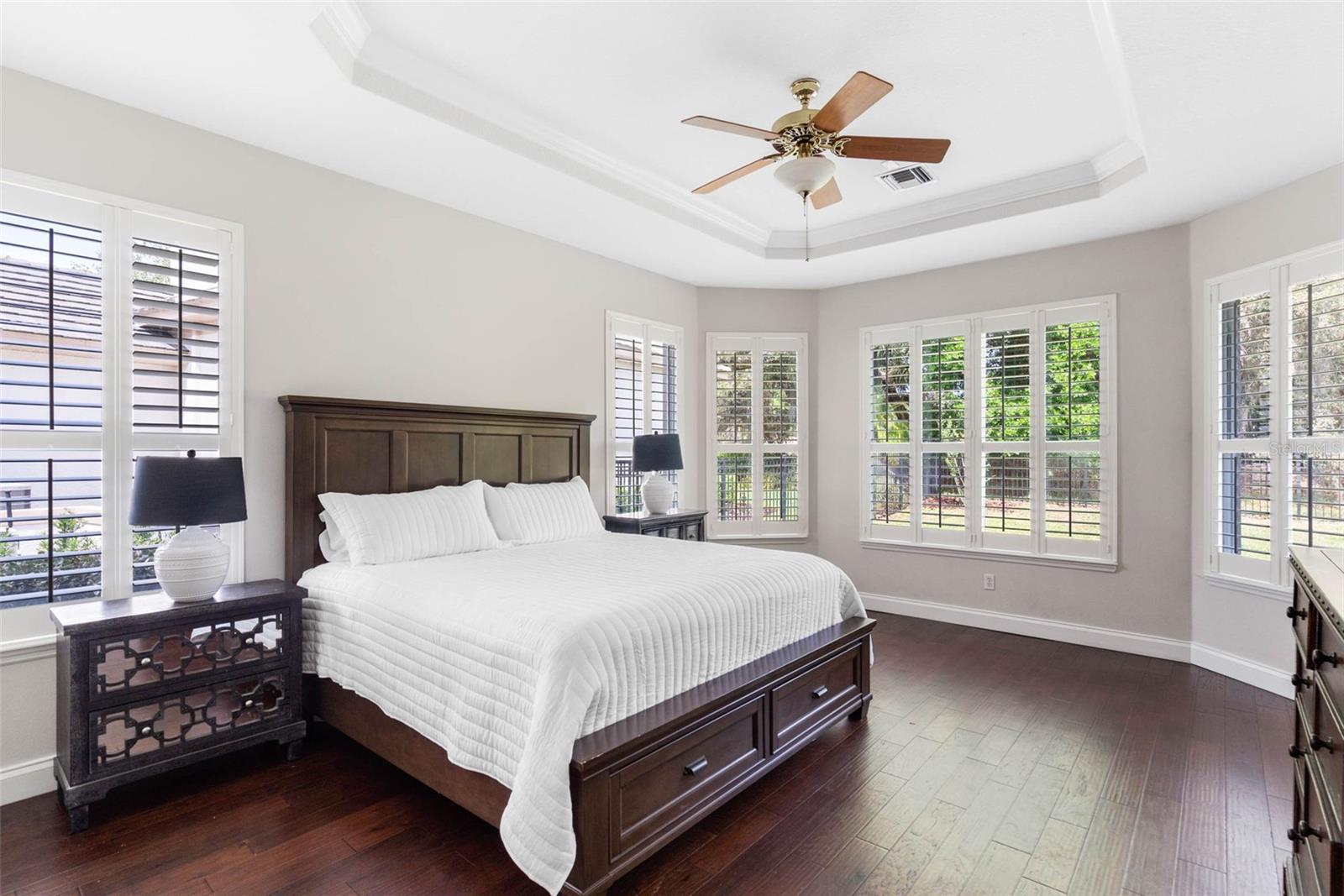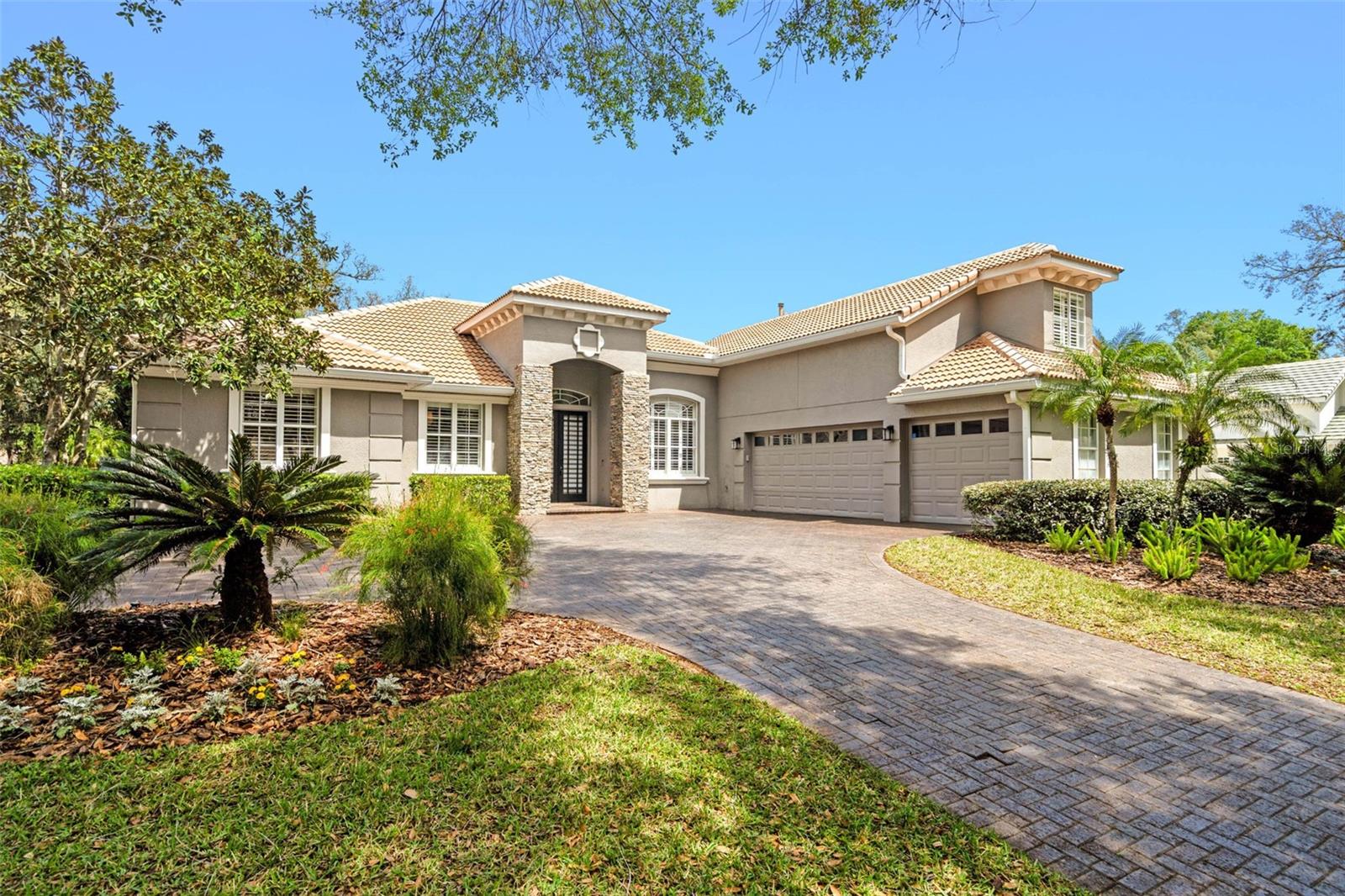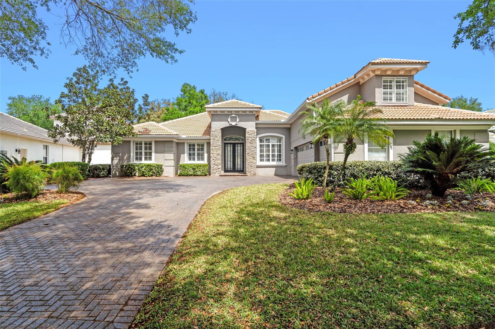 Beautiful home in Alaqua Lakes! Located in an exclusive 24/7 guard-gated community, this two-story residence offers comfort, style, and function. The bright, open living room sets the tone for relaxed living and memorable gatherings. At the heart of the home is a remodeled gourmet kitchen with sleek wood cabinetry, quartzite countertops, a large center island, natural gas cooktop, and stainless steel appliances—perfect for everyday meals or entertaining. The thoughtful split-bedroom layout ensures privacy for all. The spacious primary suite is a true retreat, featuring a spa-like ensuite with dual vanities, a soaking jetted tub, a separate shower and two spacious walk in closets. Two additional bedrooms are located on the main floor, while the only upstairs bedroom enjoys added privacy with its own ensuite bathroom—ideal for guests, a teen suite, or a private home office. Plus, there’s a separate dedicated office located on the first floor. Step outside to your private, fully fenced backyard with a covered lanai—perfect for entertaining, relaxing, or enjoying quiet mornings. Enjoy resort-style living with access to top-tier community amenities, including a seven-acre park, 5 clay tennis courts, a Junior Olympic pool, volleyball court, basketball court, playground, and activity field. You can enjoy the serenity of a guard gated neighborhood while being just minutes away from shopping, dining, entertainment, and top-rated schools. And with quick access to I-4, 417 and the 429 you’re within an easy reach of Central Florida’s best attractions like Disney, Universal Studios and area Beaches. This home may be under audio and video surveillance