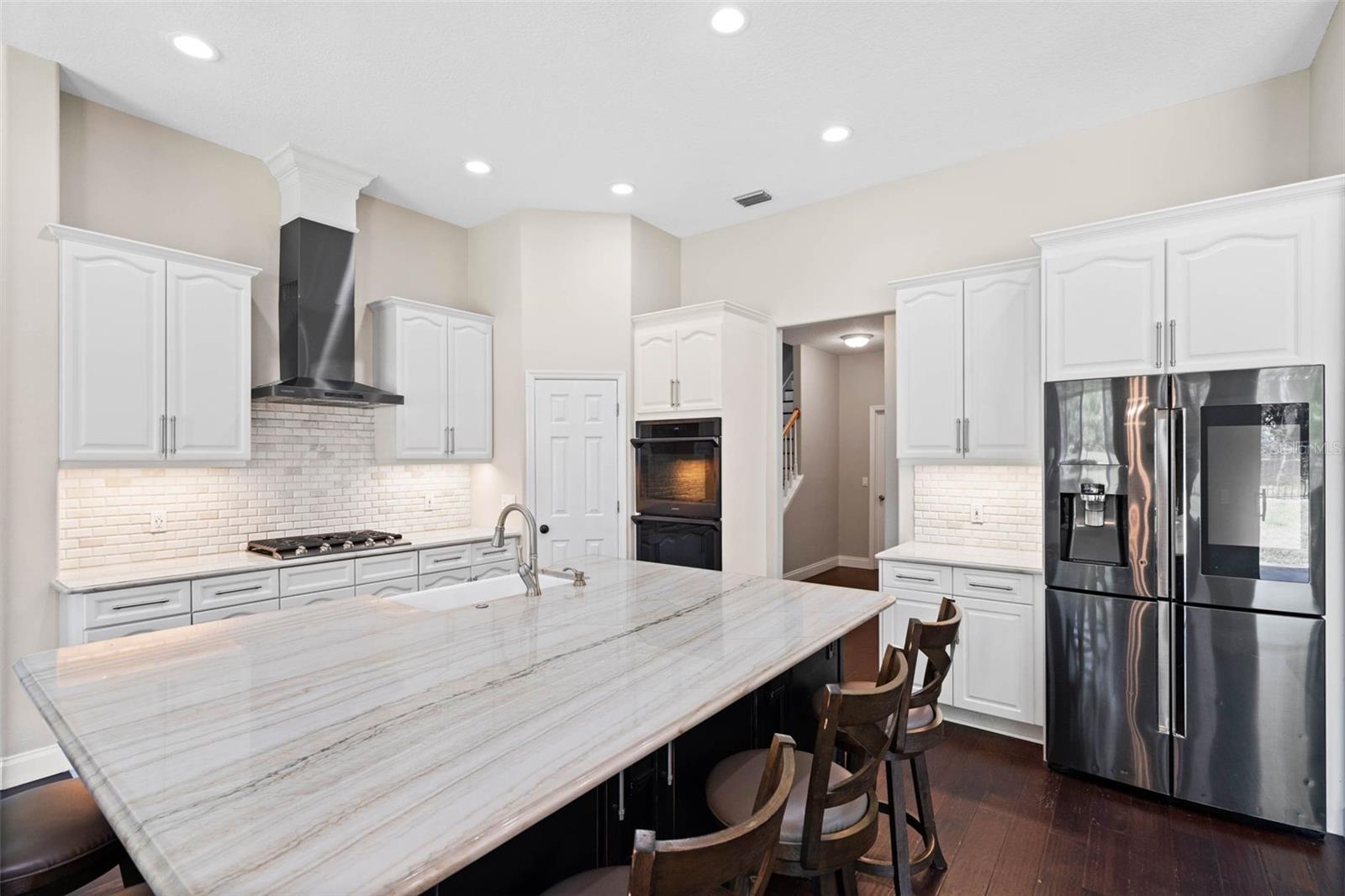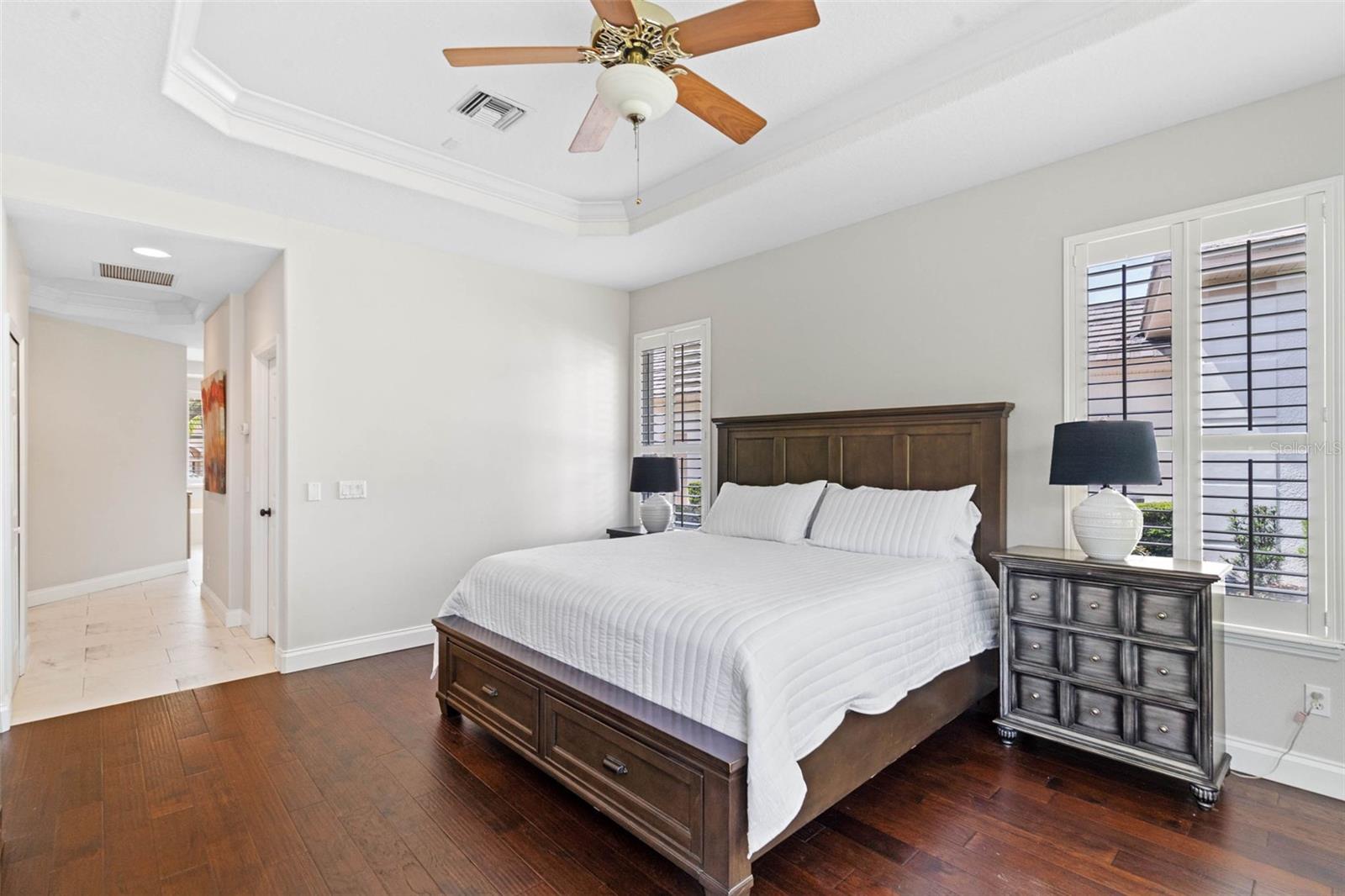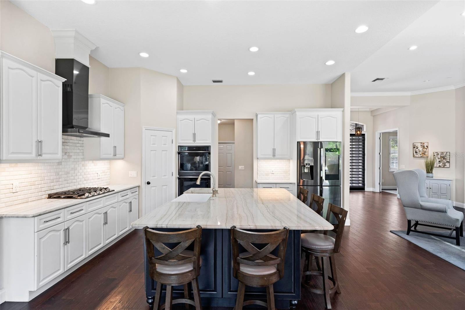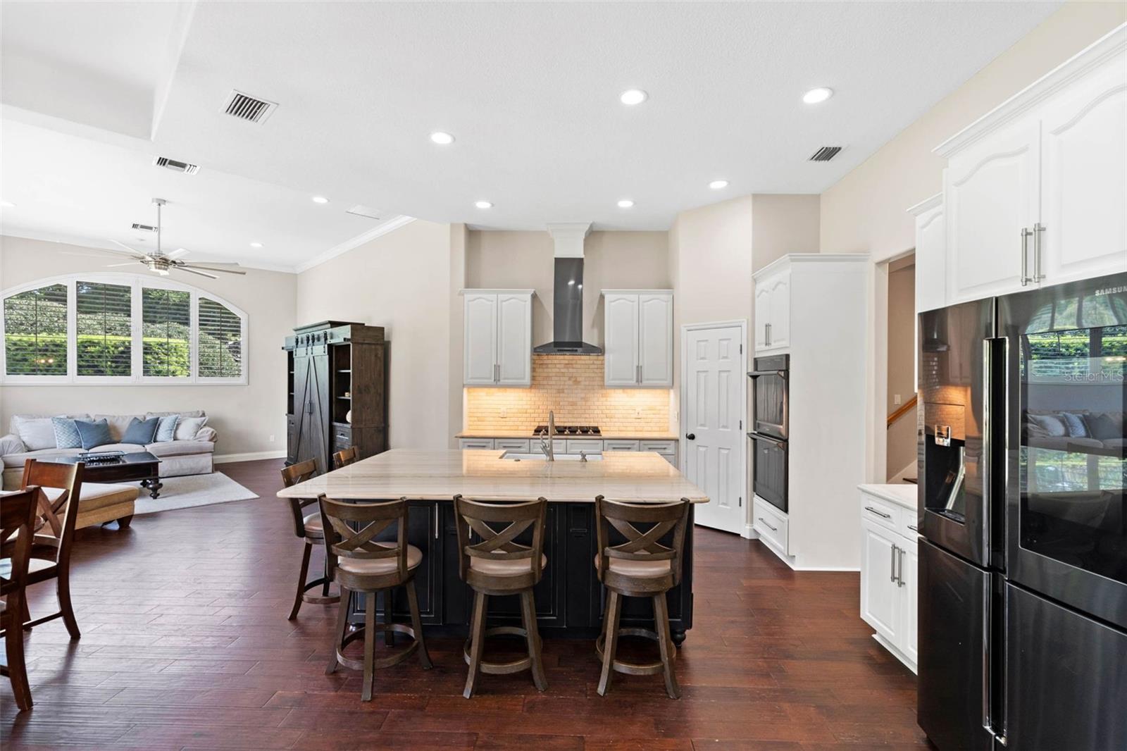 Beautiful home in Alaqua Lakes! Located in an exclusive 24/7 guard-gated community, this two-story residence offers comfort, style, and function. The bright, open living room sets the tone for relaxed living and memorable gatherings. At the heart of the home is a remodeled gourmet kitchen with sleek wood cabinetry, quartzite countertops, a large center island, natural gas cooktop, and stainless steel appliances—perfect for everyday meals or entertaining. The thoughtful split-bedroom layout ensures privacy for all. The spacious primary suite is a true retreat, featuring a spa-like ensuite with dual vanities, a soaking jetted tub, a separate shower and two spacious walk in closets. Two additional bedrooms are located on the main floor, while the only upstairs bedroom enjoys added privacy with its own ensuite bathroom—ideal for guests, a teen suite, or a private home office. Plus, there’s a separate dedicated office located on the first floor. Step outside to your private, fully fenced backyard with a covered lanai—perfect for entertaining, relaxing, or enjoying quiet mornings. Enjoy resort-style living with access to top-tier community amenities, including a seven-acre park, 5 clay tennis courts, a Junior Olympic pool, volleyball court, basketball court, playground, and activity field. You can enjoy the serenity of a guard gated neighborhood while being just minutes away from shopping, dining, entertainment, and top-rated schools. And with quick access to I-4, 417 and the 429 you’re within an easy reach of Central Florida’s best attractions like Disney, Universal Studios and area Beaches. This home may be under audio and video surveillance