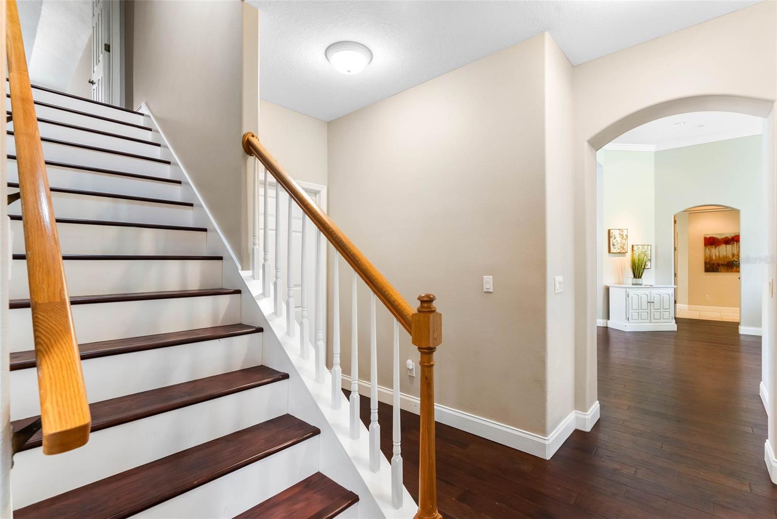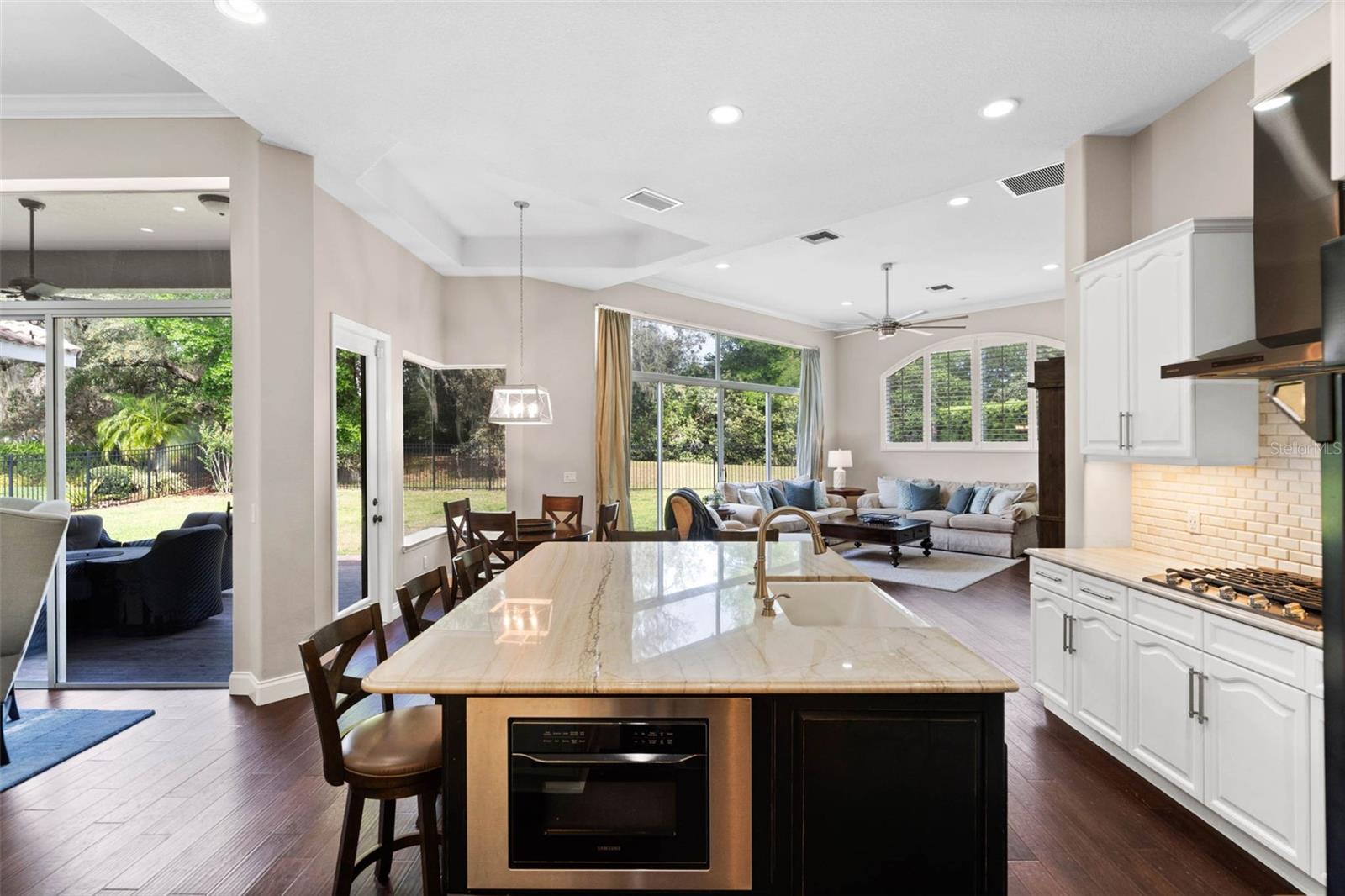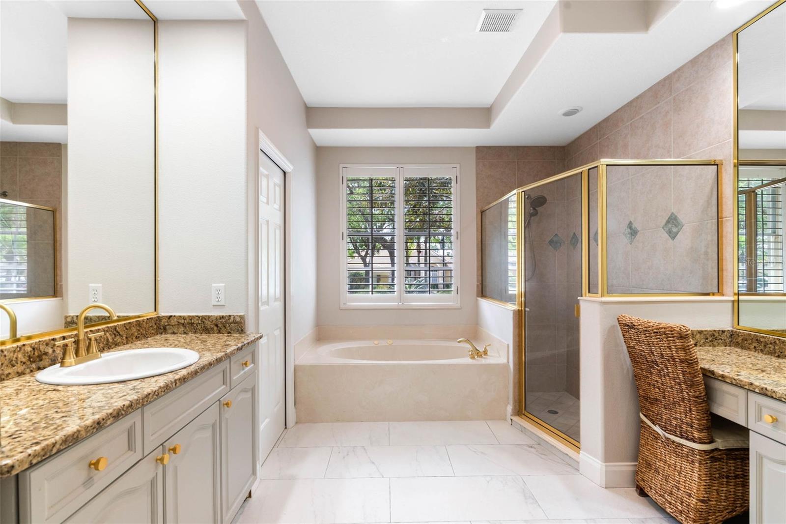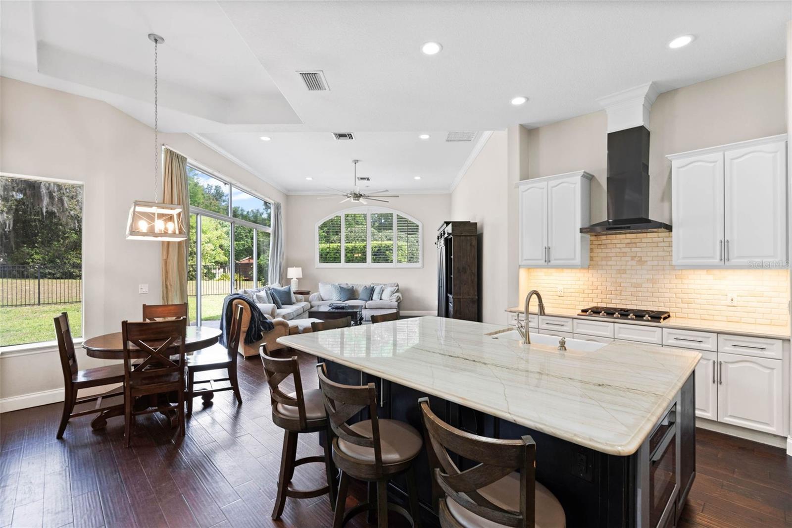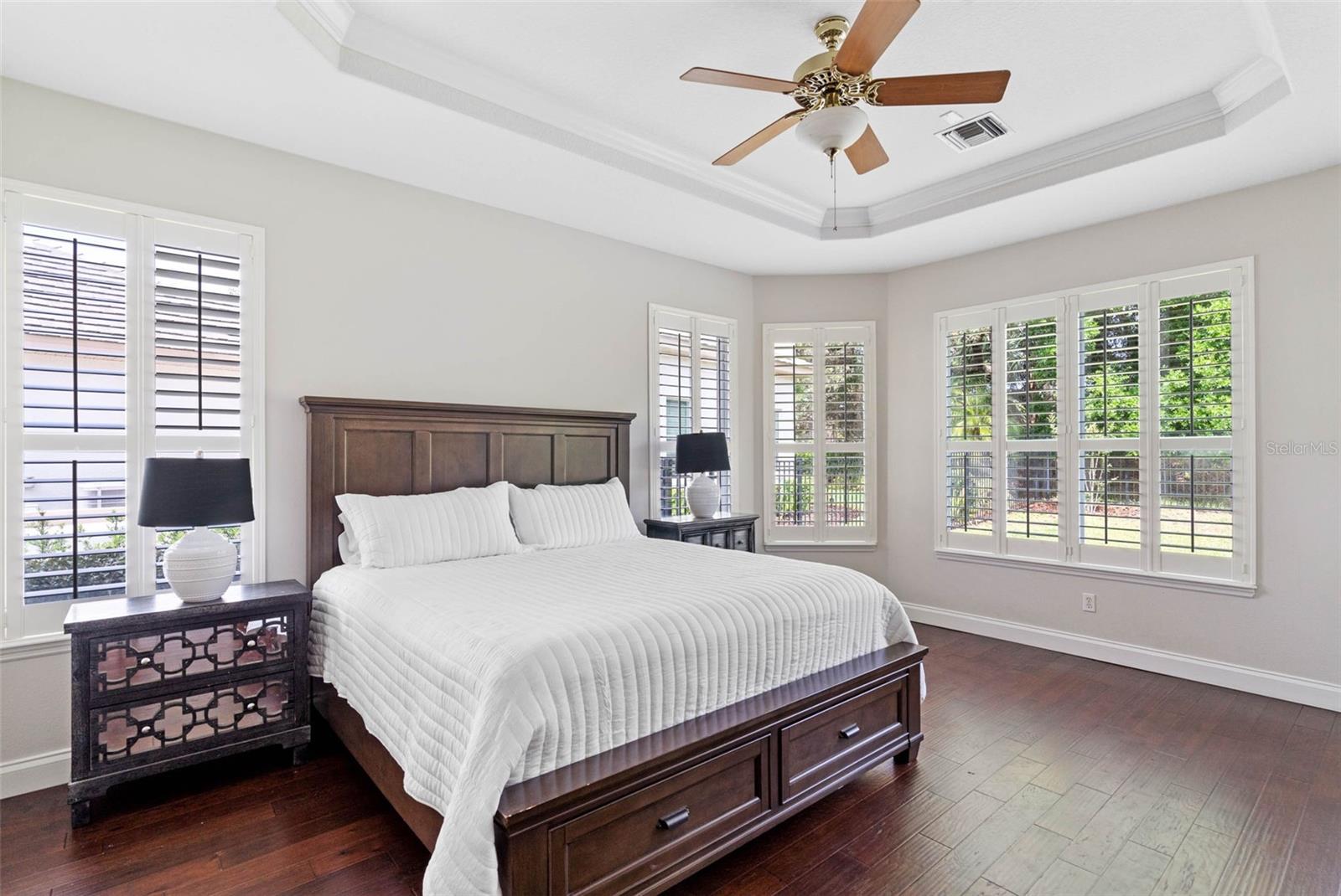 Beautiful home in Alaqua Lakes! Located in an exclusive 24/7 guard-gated community, this two-story residence offers comfort, style, and function. The bright, open living room sets the tone for relaxed living and memorable gatherings. At the heart of the home is a remodeled gourmet kitchen with sleek wood cabinetry, quartzite countertops, a large center island, natural gas cooktop, and stainless steel appliances—perfect for everyday meals or entertaining. The thoughtful split-bedroom layout ensures privacy for all. The spacious primary suite is a true retreat, featuring a spa-like ensuite with dual vanities, a soaking jetted tub, a separate shower and two spacious walk in closets. Two additional bedrooms are located on the main floor, while the only upstairs bedroom enjoys added privacy with its own ensuite bathroom—ideal for guests, a teen suite, or a private home office. Plus, there’s a separate dedicated office located on the first floor. Step outside to your private, fully fenced backyard with a covered lanai—perfect for entertaining, relaxing, or enjoying quiet mornings. Enjoy resort-style living with access to top-tier community amenities, including a seven-acre park, 5 clay tennis courts, a Junior Olympic pool, volleyball court, basketball court, playground, and activity field. You can enjoy the serenity of a guard gated neighborhood while being just minutes away from shopping, dining, entertainment, and top-rated schools. And with quick access to I-4, 417 and the 429 you’re within an easy reach of Central Florida’s best attractions like Disney, Universal Studios and area Beaches. This home may be under audio and video surveillance