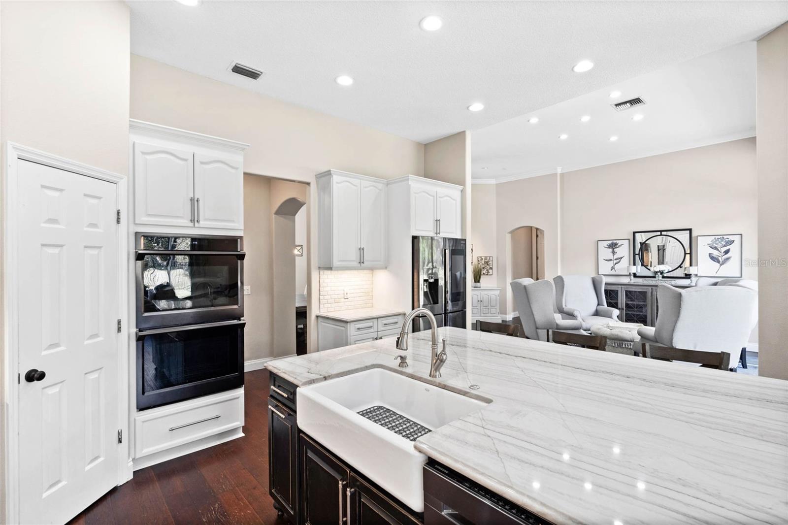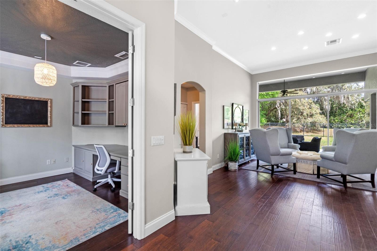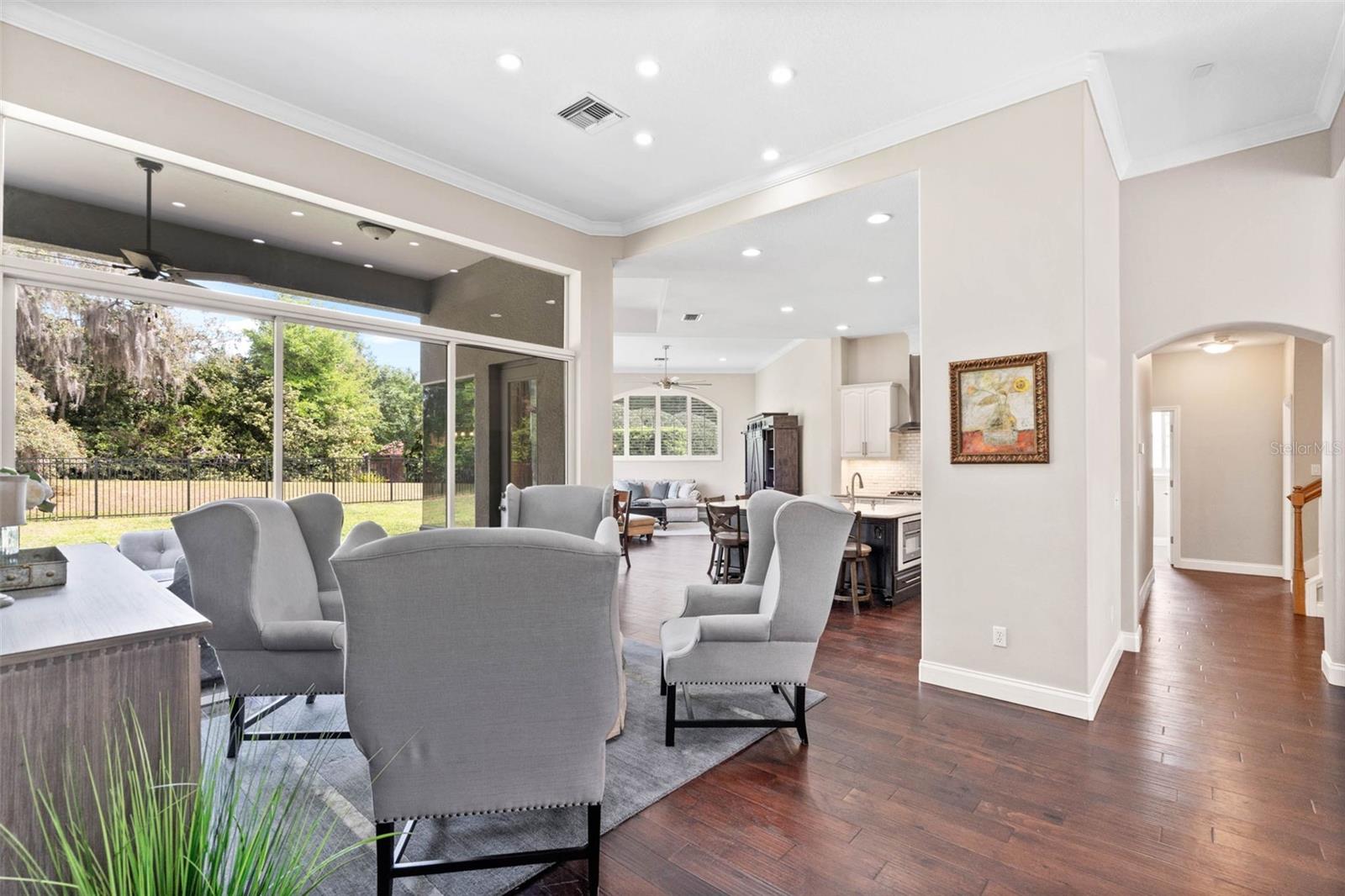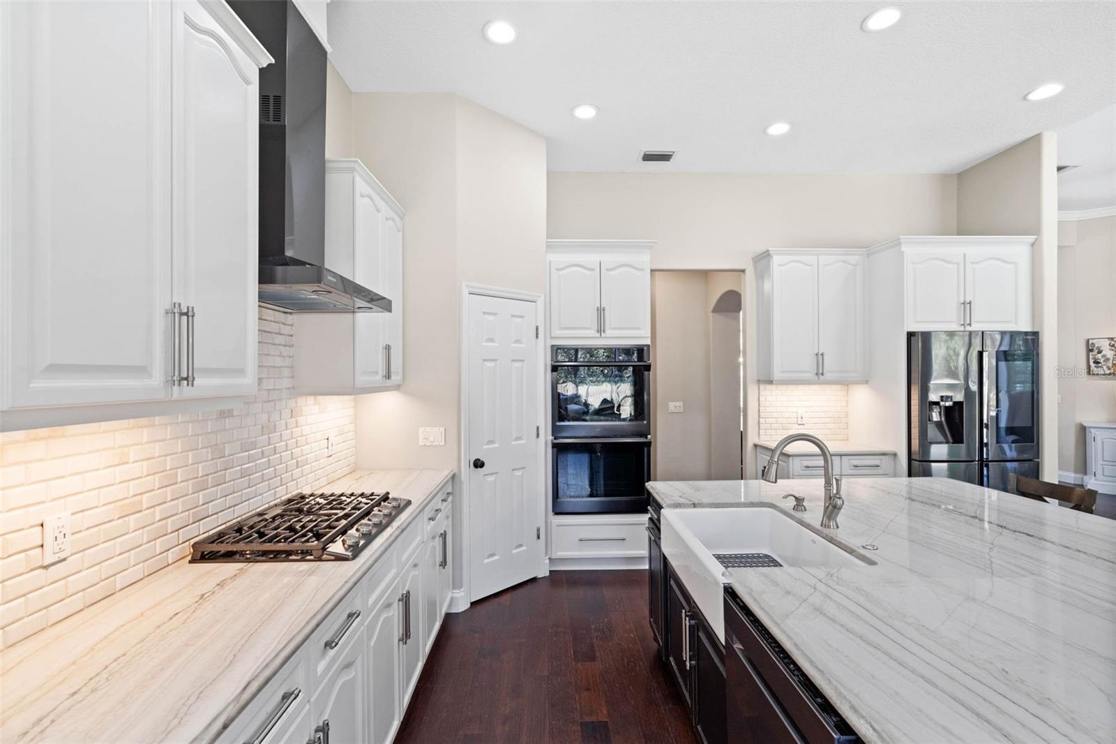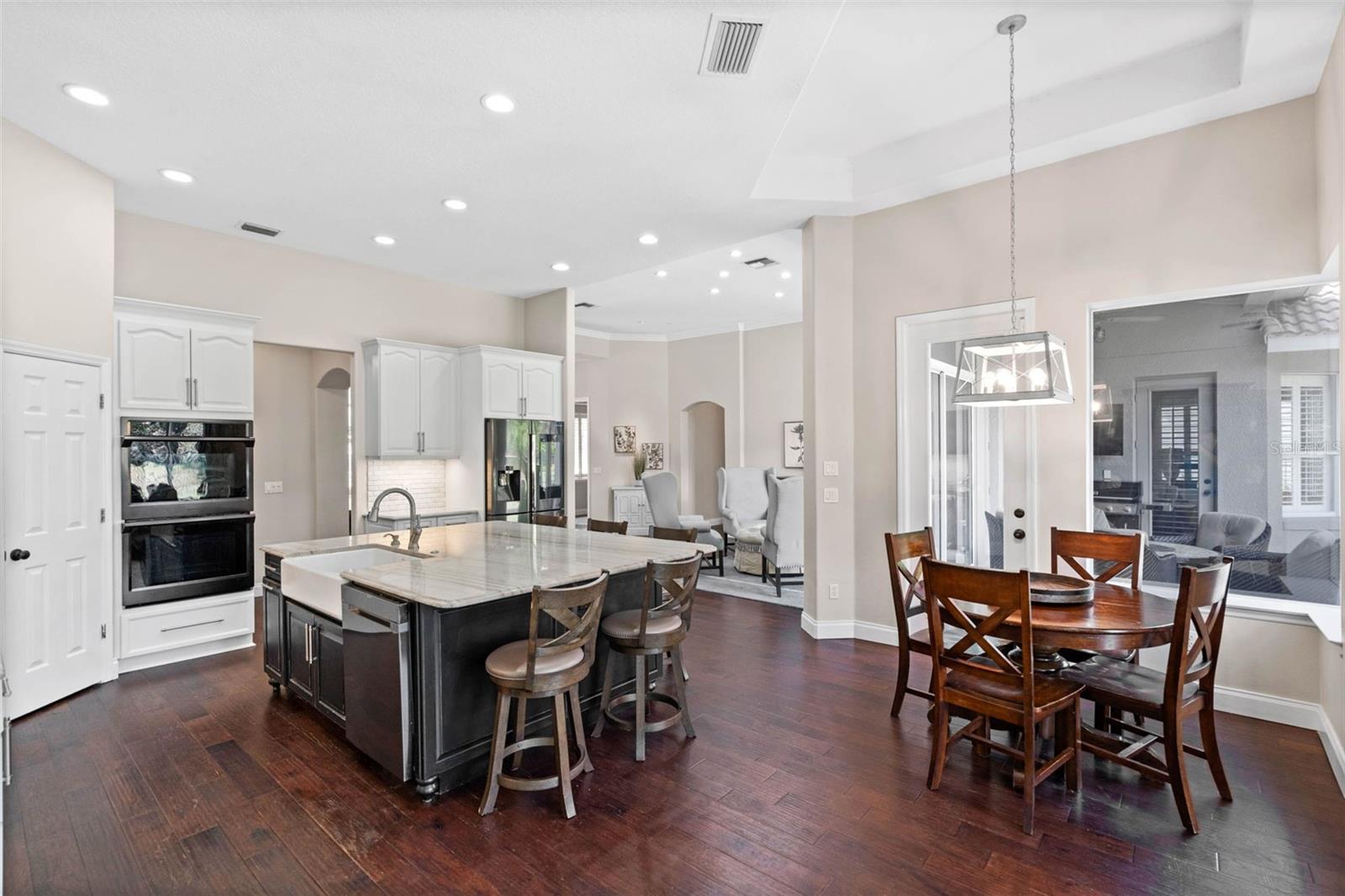 Beautiful home in Alaqua Lakes! Located in an exclusive 24/7 guard-gated community, this two-story residence offers comfort, style, and function. The bright, open living room sets the tone for relaxed living and memorable gatherings. At the heart of the home is a remodeled gourmet kitchen with sleek wood cabinetry, quartzite countertops, a large center island, natural gas cooktop, and stainless steel appliances—perfect for everyday meals or entertaining. The thoughtful split-bedroom layout ensures privacy for all. The spacious primary suite is a true retreat, featuring a spa-like ensuite with dual vanities, a soaking jetted tub, a separate shower and two spacious walk in closets. Two additional bedrooms are located on the main floor, while the only upstairs bedroom enjoys added privacy with its own ensuite bathroom—ideal for guests, a teen suite, or a private home office. Plus, there’s a separate dedicated office located on the first floor. Step outside to your private, fully fenced backyard with a covered lanai—perfect for entertaining, relaxing, or enjoying quiet mornings. Enjoy resort-style living with access to top-tier community amenities, including a seven-acre park, 5 clay tennis courts, a Junior Olympic pool, volleyball court, basketball court, playground, and activity field. You can enjoy the serenity of a guard gated neighborhood while being just minutes away from shopping, dining, entertainment, and top-rated schools. And with quick access to I-4, 417 and the 429 you’re within an easy reach of Central Florida’s best attractions like Disney, Universal Studios and area Beaches. This home may be under audio and video surveillance