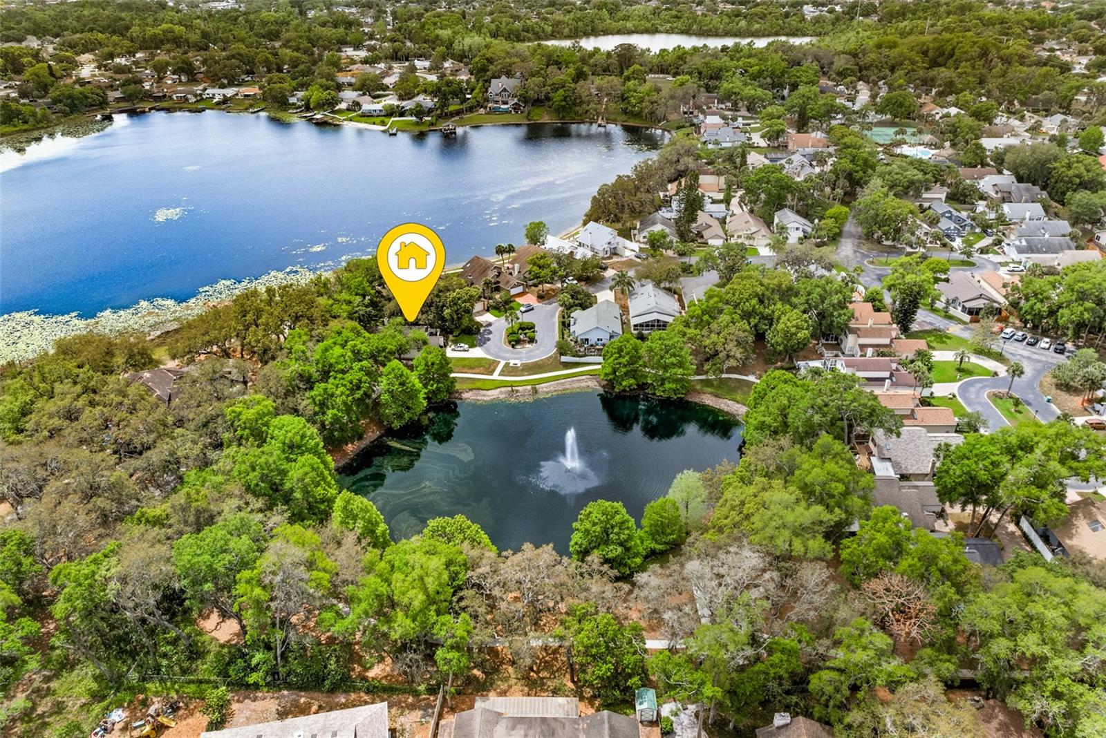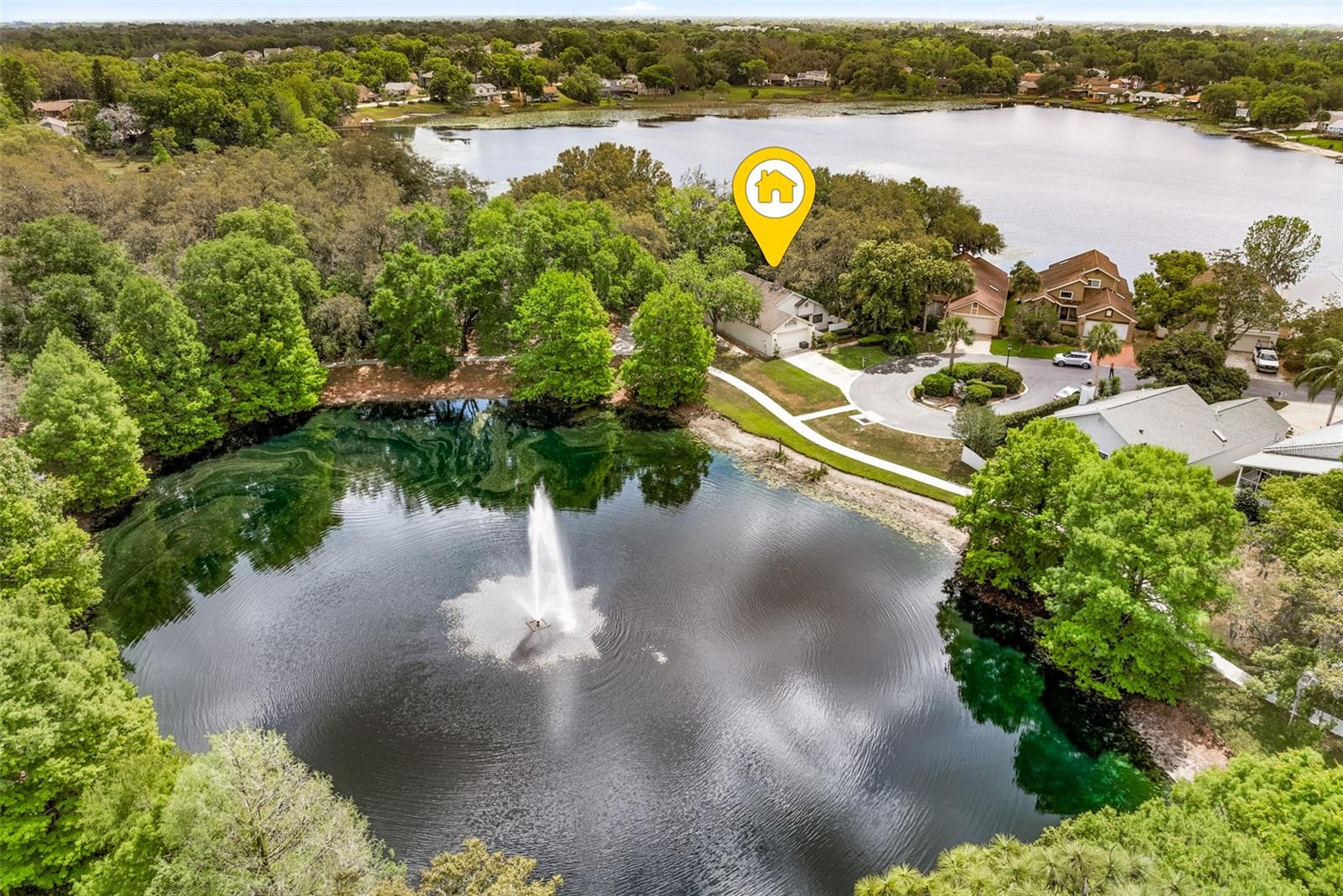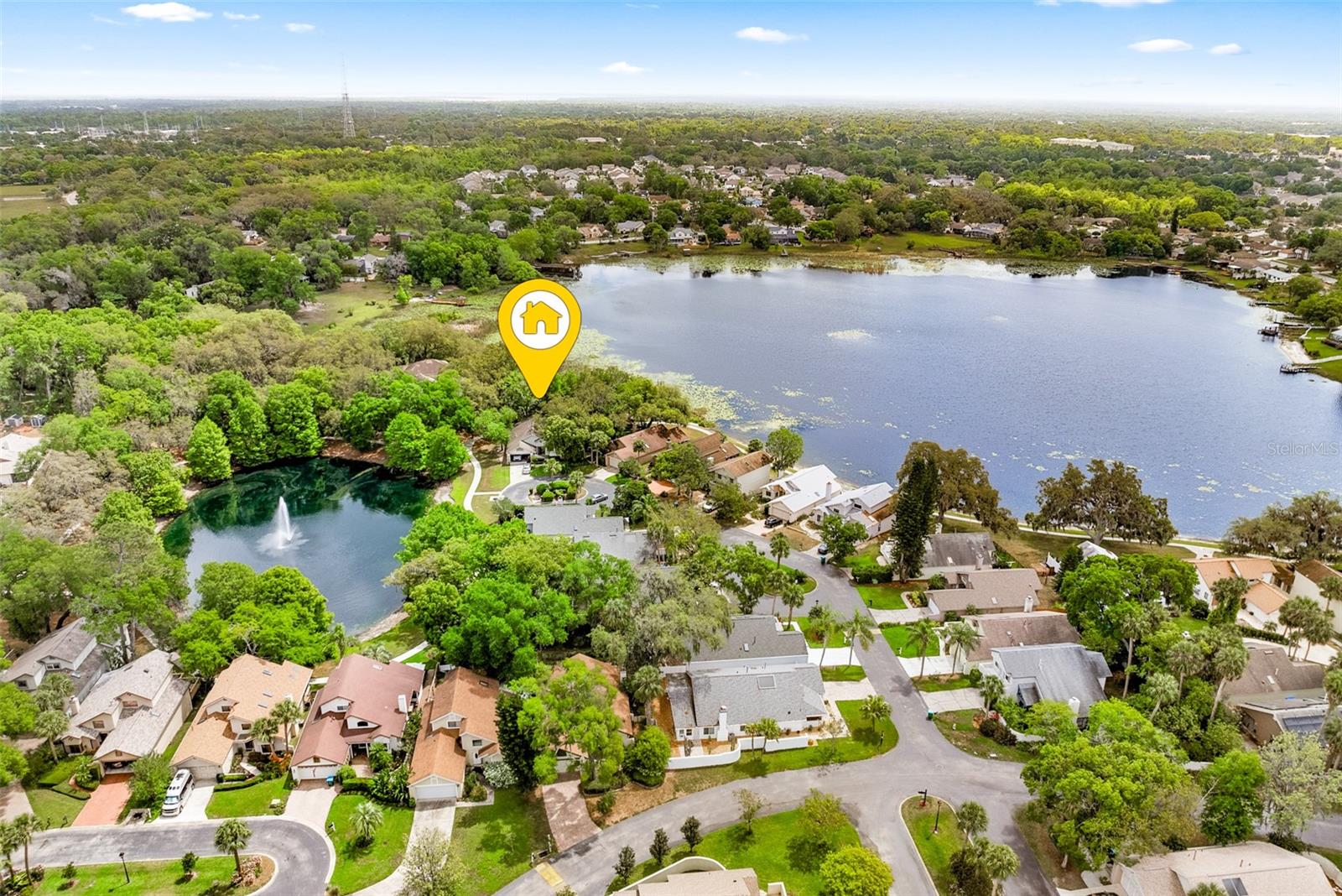 One or more photo(s) has been virtually staged. Quaint Lake View Home nestled on a quiet cul-de-sac within the sought-after Landings Community. The home offers picturesque lake views from the rear yard and a beautiful Pond from the front. Great floor plan provides an exceptional blend of comfort and style. The home features a vaulted-ceiling master suite complete with a luxurious en-suite bathroom, double closets, and access to the oversized patio. On the opposite side, one additional bedroom and a full bath provide privacy and convenience. At the heart of the home, an expansive living area with soaring ceilings, a cozy wood-burning fireplace, and panoramic lake and yard views. 10x40 patio with a screened pergola - perfect for relaxing or entertaining. The remodeled eat-in kitchen featuring abundant cabinetry, newer appliances, and granite countertops. A third bedroom or office with access to the patio— located just off the main living area—offers flexibility! Additional highlights include a beautiful atrium that allows for lots of natural light at the center of the home. A two-car garage, a full-size garden court area perfect for those BBQ enthusiasts! The home is surrounded by mature trees and lush landscaping, creating a serene yet low-maintenance retreat. The community is gated with lovely walking paths, tennis and pickleball courts, and a community pool. It is located in Historic Longwood, convenient to Rider Park(lovely concerts and Farmers Market on Saturday), Sunrail, bus line, numerous medical offices, restaurants, banks and shopping. This home truly must be seen to be appreciated—spectacular lake views and a prime cul-de-sac location make it an exceptional find.
