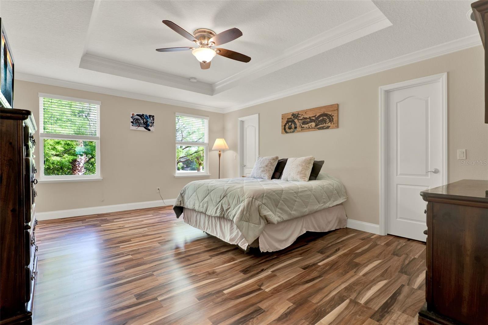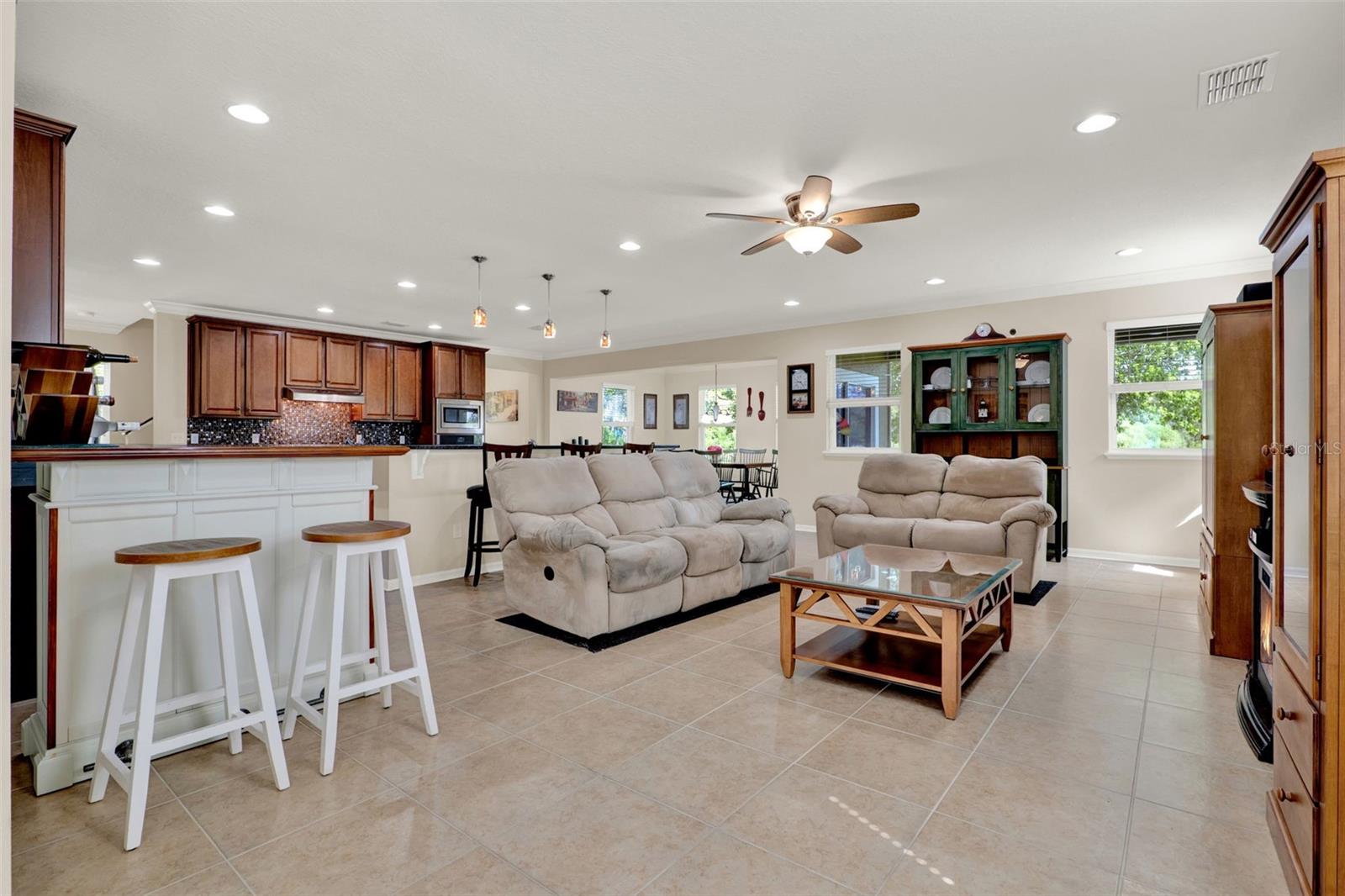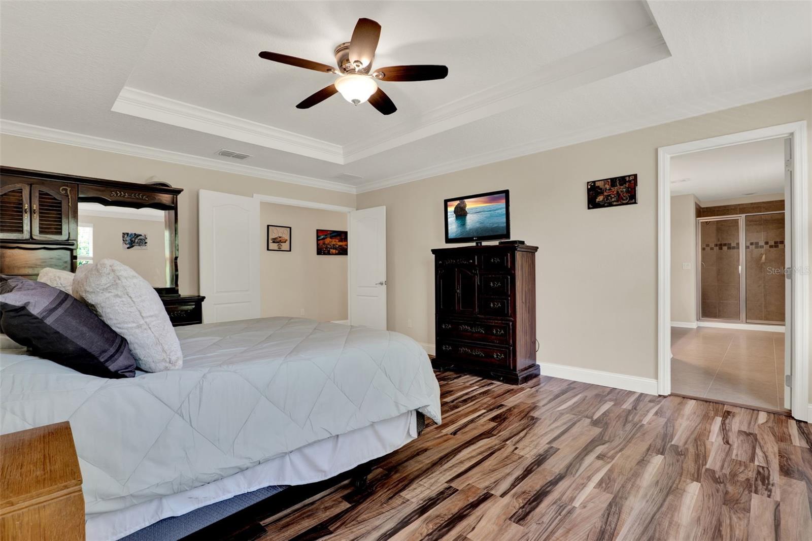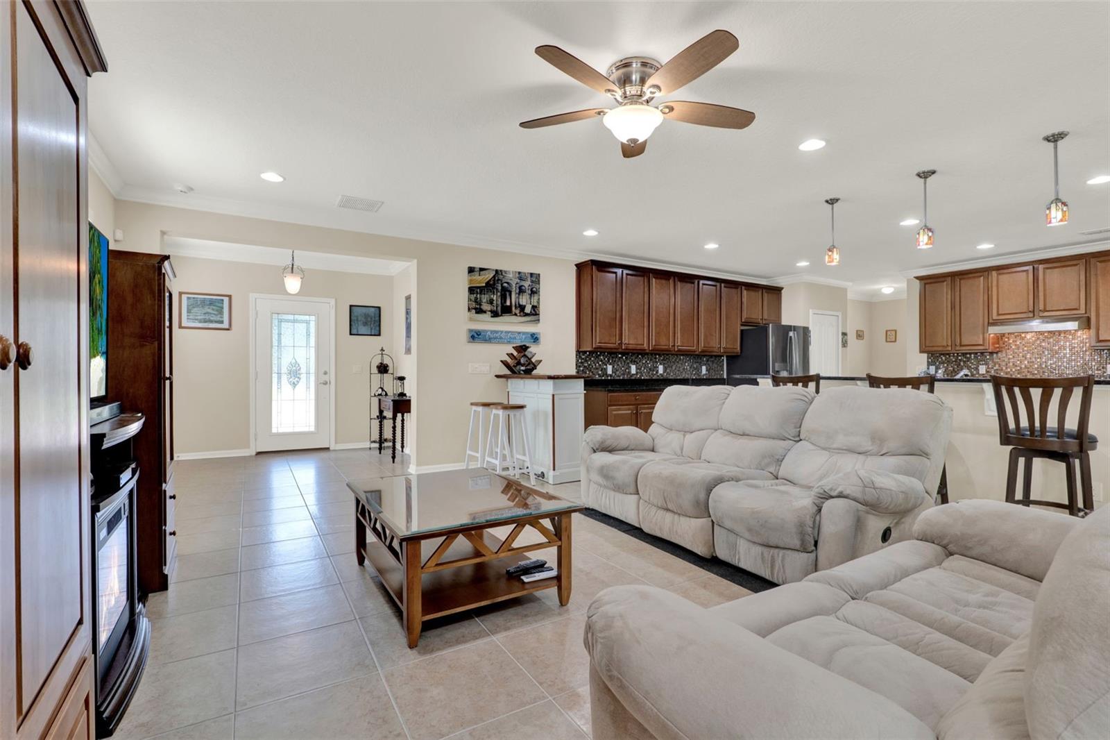 Welcome to your dream home at 732 Wildemere Village Cove, nestled in a serene private neighborhood on a peaceful cul-de-sac. This stunning property sits on a generous .32-acre lot, showcasing beautifully manicured landscaping complete with palm trees and mature plants that create a welcoming atmosphere as you approach the long brick driveway leading to a spacious three-car garage. Step inside this impeccably maintained four-bedroom, 2.5-bathroom residence, where an open and inviting floor plan awaits. The heart of the home features an expansive kitchen that seamlessly flows into the family room. Enjoy ample cabinetry, generous countertops, and a convenient island with a built-in oven, perfect for culinary enthusiasts. The stylish mosaic backsplash adds a touch of elegance to this functional space. Venture to the second floor, where you'll discover the luxurious master suite, complete with an en suite bathroom that boasts a walk-in shower and plenty of space to unwind. The additional bedrooms upstairs are also roomy and well-appointed, making this home ideal for families or guests. The Stairs have added custom wood top on the stairway. A convenient half bath is located on the main level for guests. Step outside to the screened patio that leads to your private dock, offering direct access to the tranquil lake at the back of the property. Here, you can enjoy the peaceful sounds of nature and indulge in fishing right from your backyard. This remarkable home is equipped with a comprehensive security system for your peace of mind and features an indoor laundry room for added convenience. Additionally the home includes an irrigation system and gutters have been installed throughout the property to ensure proper drainage. This home is a true gem—meticulously cared for, exceptionally clean, and situated in a fantastic area. Don’t miss the opportunity to make this diamond home yours!