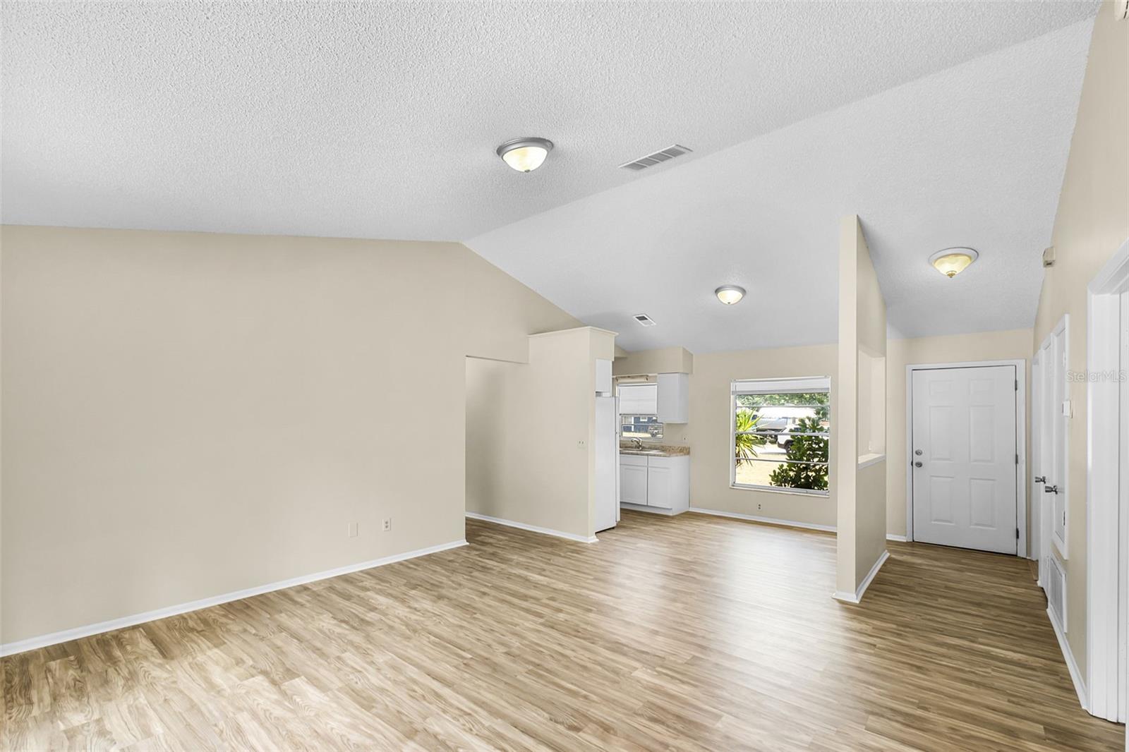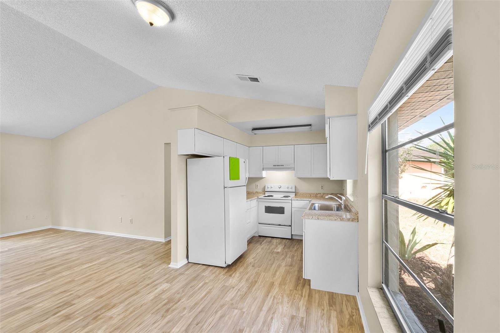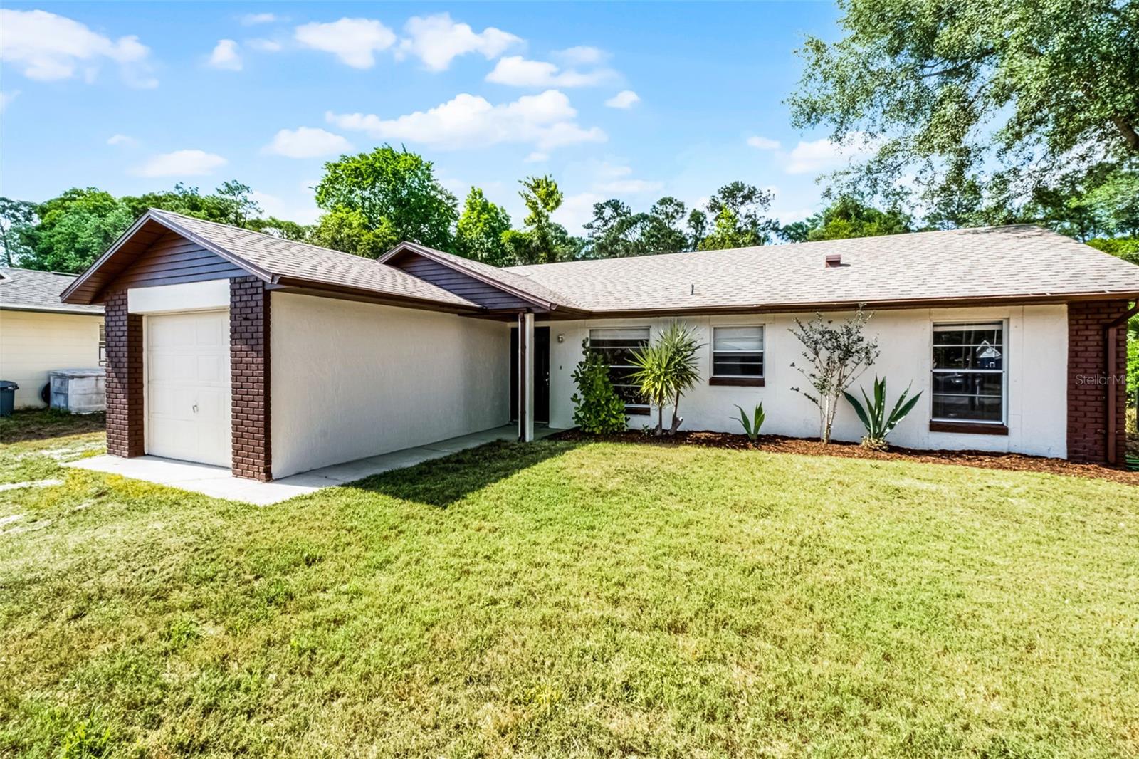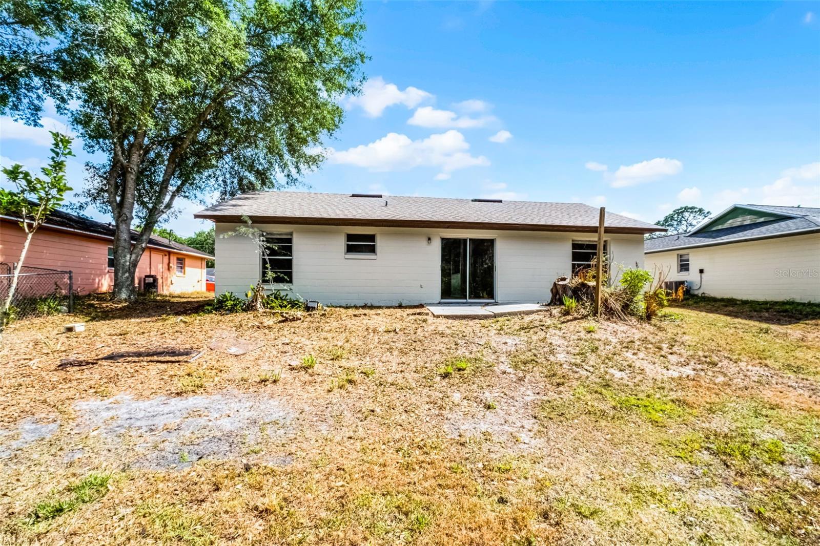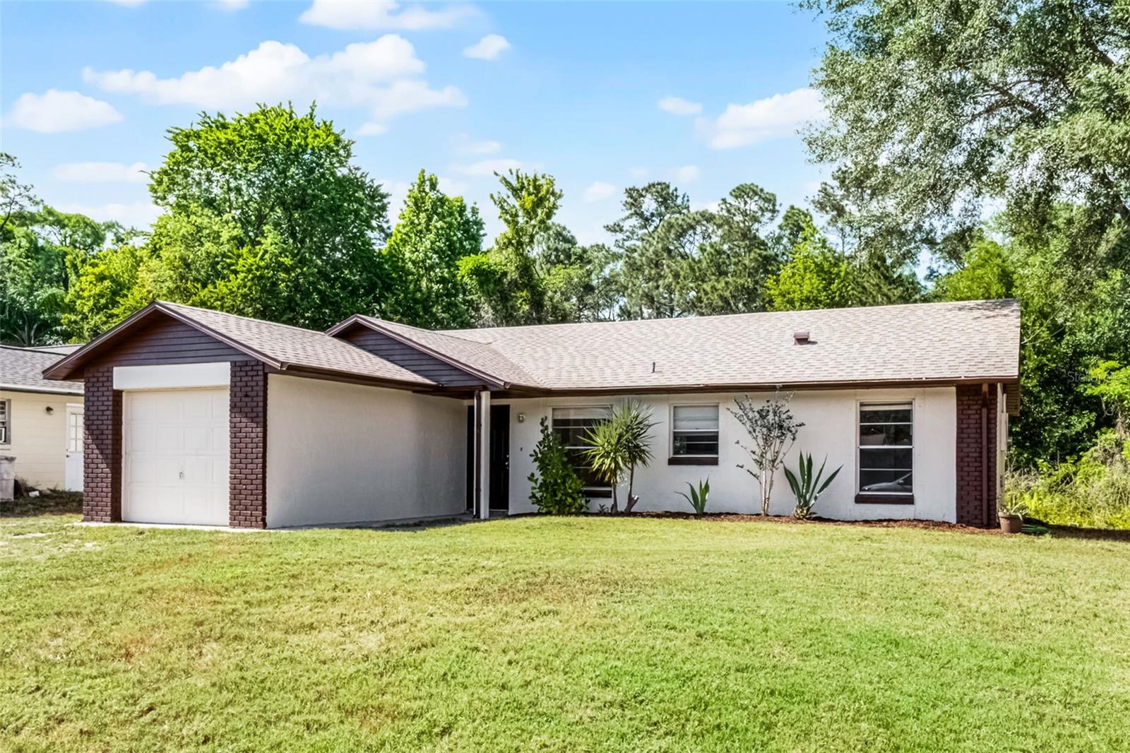 Welcome home to this nice 3 bedroom 2 bath recently painted on the interior and exterior with a spacious and open floor plan with vaulted ceilings. A cute foyer greets you as you enter and then opens up into the living room and dining area. Sliding glass doors in living room leads to an open back patio and spacious back yard-Nice place to play an outdoor game or hang out on cool evenings. The eat-in kitchen with new cabinets have plenty of storage for all those kitchen essentials and new countertops will give you plenty of room for cooking! Seller offering $2,000 credit for appliances at closing. Desirable split floorplan too. The master bedroom has double closets and a private bath. The single car garage has a laundry area and additional storage. Roof 2024, A/C 2014 & Water heater 2024. Parks, YMCA, Library and shopping nearby makes this location very convenient and in the Lake Mary School District! MOTIVATED SELLERS!!