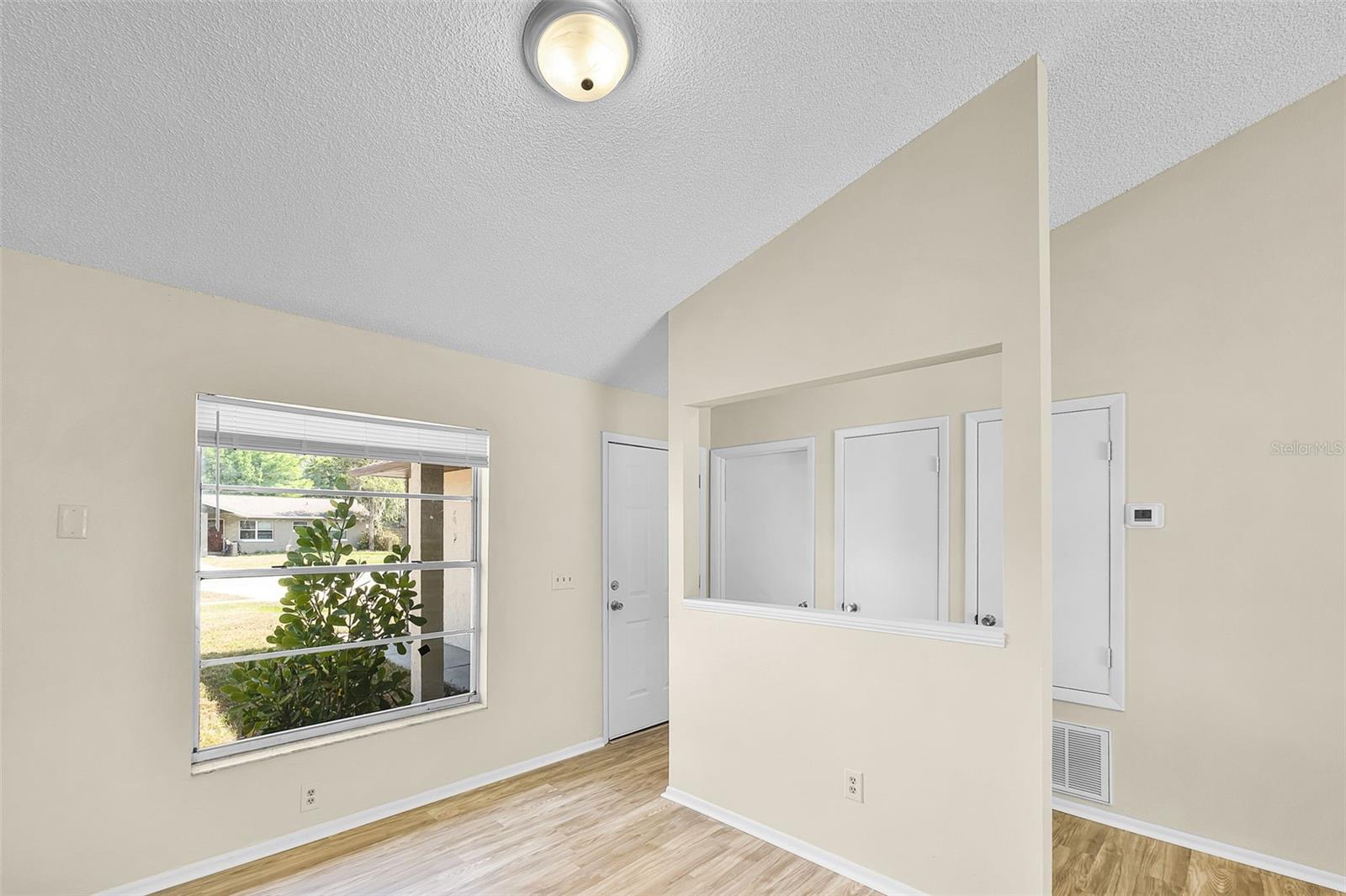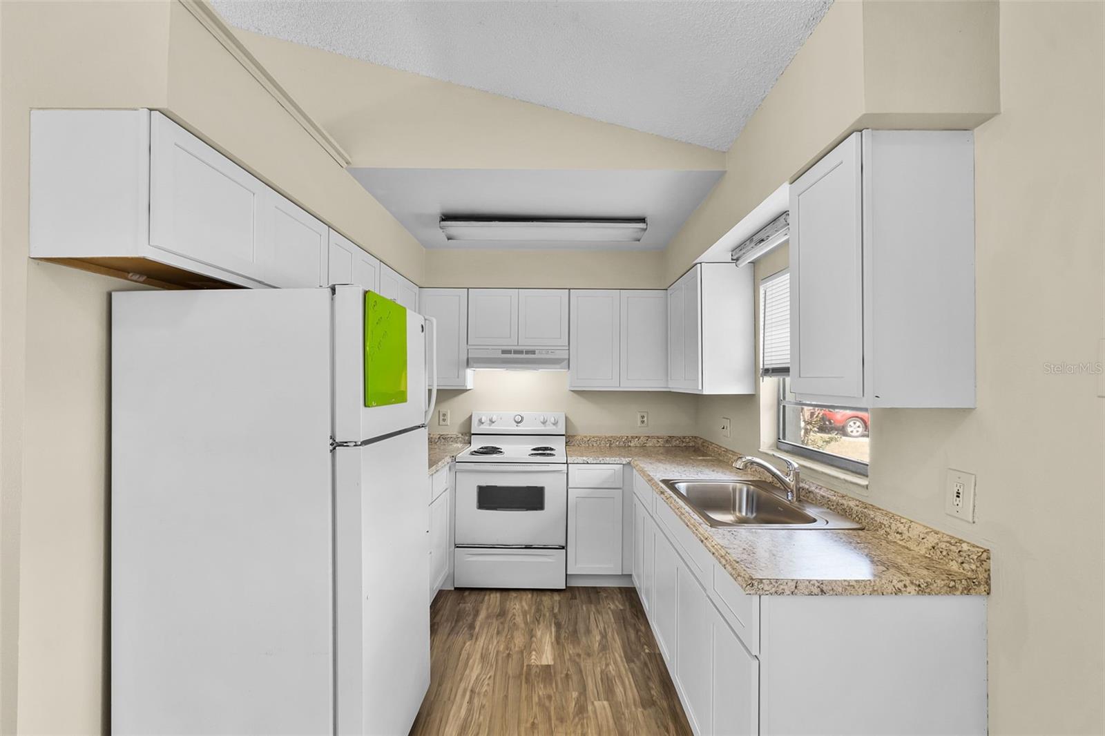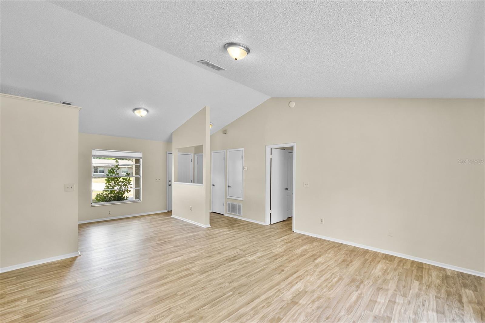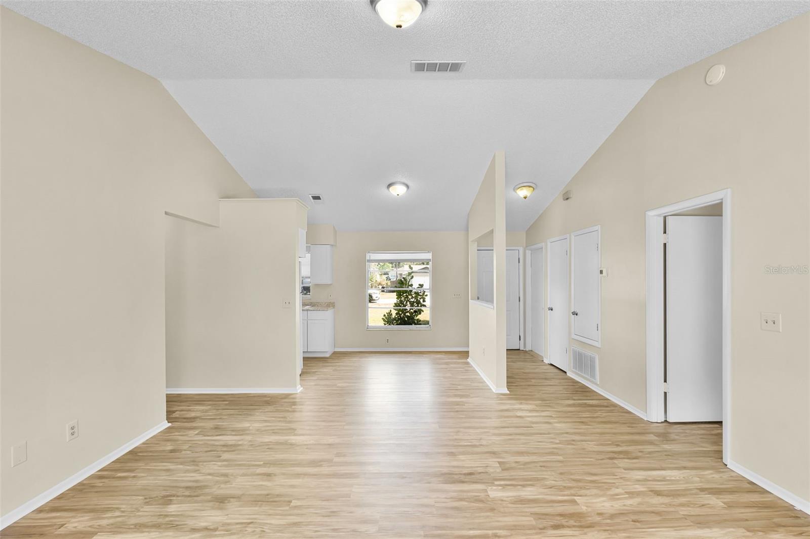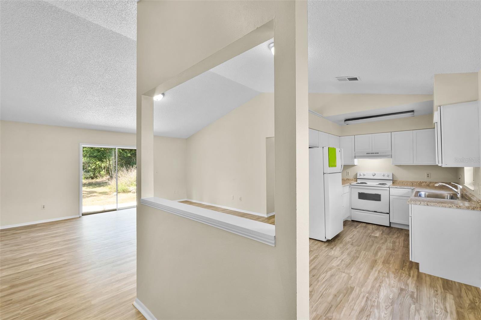 Welcome home to this nice 3 bedroom 2 bath recently painted on the interior and exterior with a spacious and open floor plan with vaulted ceilings. A cute foyer greets you as you enter and then opens up into the living room and dining area. Sliding glass doors in living room leads to an open back patio and spacious back yard-Nice place to play an outdoor game or hang out on cool evenings. The eat-in kitchen with new cabinets have plenty of storage for all those kitchen essentials and new countertops will give you plenty of room for cooking! Seller offering $2,000 credit for appliances at closing. Desirable split floorplan too. The master bedroom has double closets and a private bath. The single car garage has a laundry area and additional storage. Roof 2024, A/C 2014 & Water heater 2024. Parks, YMCA, Library and shopping nearby makes this location very convenient and in the Lake Mary School District! MOTIVATED SELLERS!!