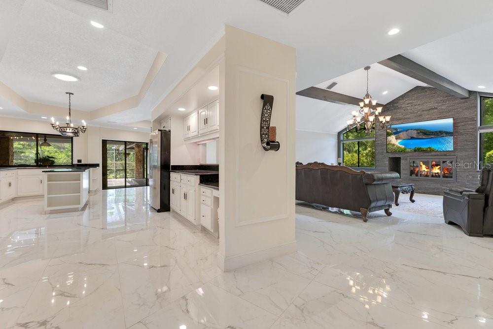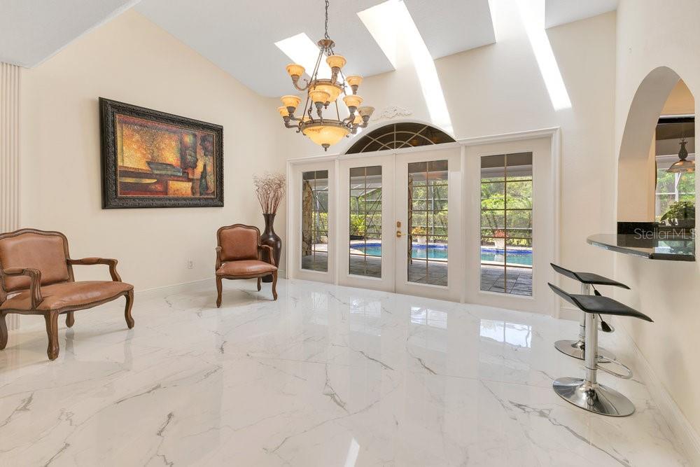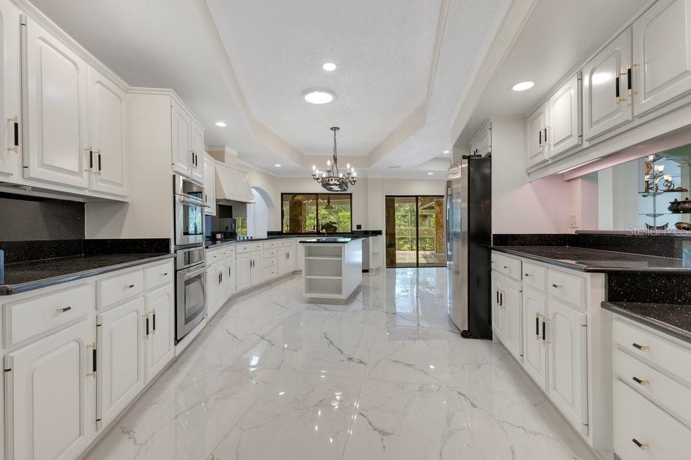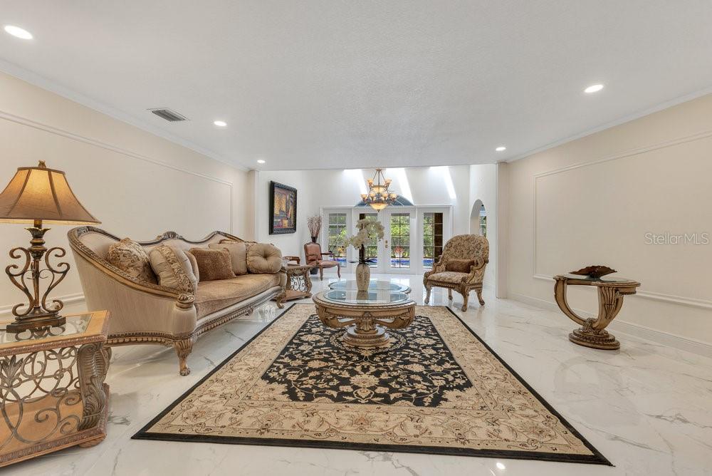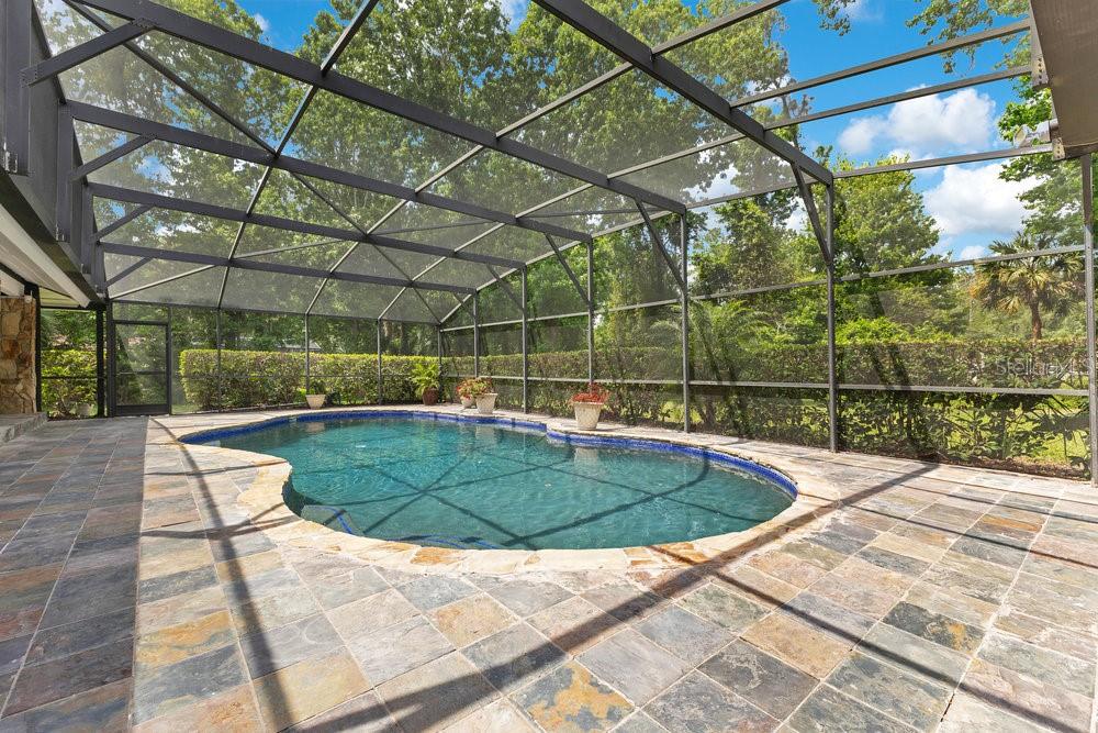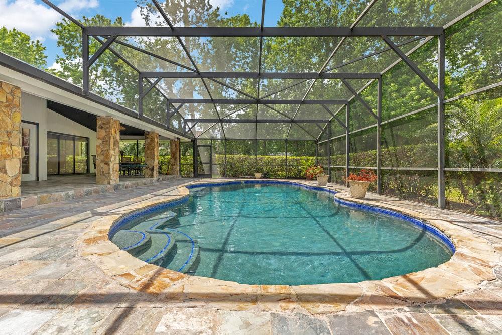 One or more photo(s) has been virtually staged. Captivating and ideally nestled within the established Wingfield Reserve community of Longwood, this impeccable residence rests on a private ONE-ACRE LOT. Offering 5 bedrooms and 4 bathrooms — including a separate IN-LAW SUITE with its own private entrance — the home blends thoughtful updates with timeless sophistication. Elegant 24x28 CALACATTA GOLD MARBLE FLOORING sweeps gracefully through the majority of the living areas, while rich luxury vinyl plank in the bedrooms infuses an inviting sense of warmth. At the heart of the home, the kitchen serves as both a culinary haven and a design statement. Its fresh palette pairs striking black galaxy granite countertops with crisp white cabinetry, refined hardware, and Avsiile faucets (featured throughout the home). A KitchenAid Pro Series stainless appliance suite completes the picture. Flowing seamlessly from this hub, the floor plan accommodates formal, family, and versatile flex spaces — with the family room crowned by a dramatic VAULTED WOOD-BEAM CEILING and anchored by a fireplace set within a stunning feature wall. The expansive primary suite impresses with a CUSTOM CLOSET leading into a beautifully updated, spa-inspired en-suite bath. Each guest bathroom reflects the same level of refinement, carrying the elegant finishes consistently throughout the home. Multiple access points open to the lanai, where a Summer kitchen/bar, travertine tile deck, and a screened pool create a serene, resort-like retreat. Surrounded by lush landscaping and sweeping green space, it’s a private sanctuary designed for both relaxation and entertaining. Recent upgrades include a new irrigation system, newer A/C, newer water heater, and two septic tanks replaced just three years ago. Details such as tray ceilings, crown molding, skylights, and grand light fixtures add layers of character, further complementing the marble floors. Perfectly located just off Markham Woods Road with easy access to I-4, you’re minutes from premier shopping and dining. Outdoor enthusiasts will appreciate the proximity to Wekiva River Conservation Area and Wekiwa Springs State Park. Meanwhile, the Wingfield Reserve community itself offers a rare balance of privacy, natural beauty, and convenience.