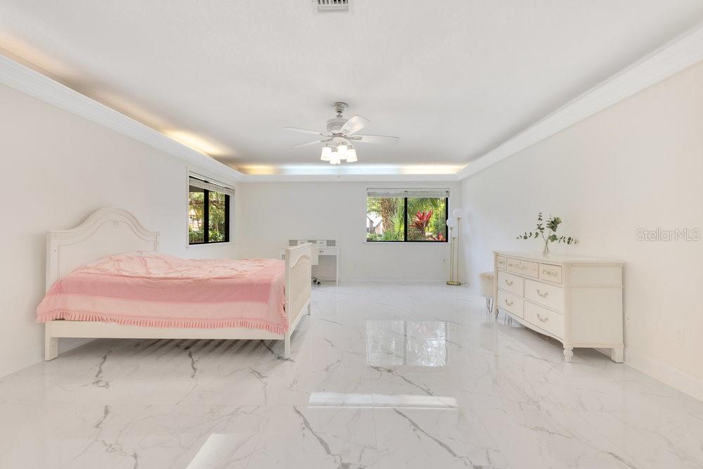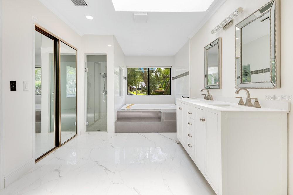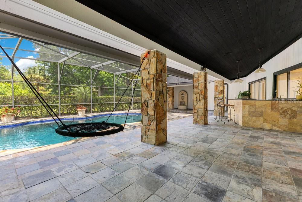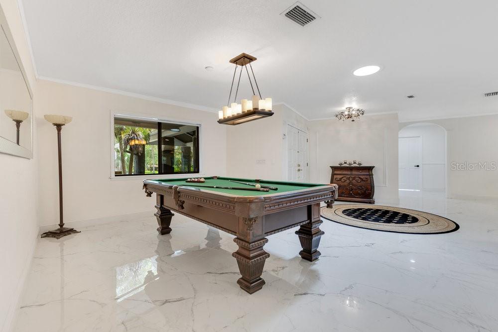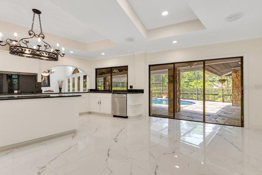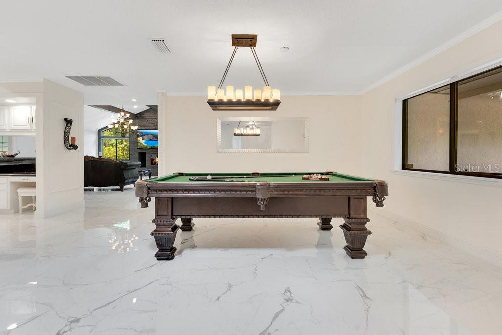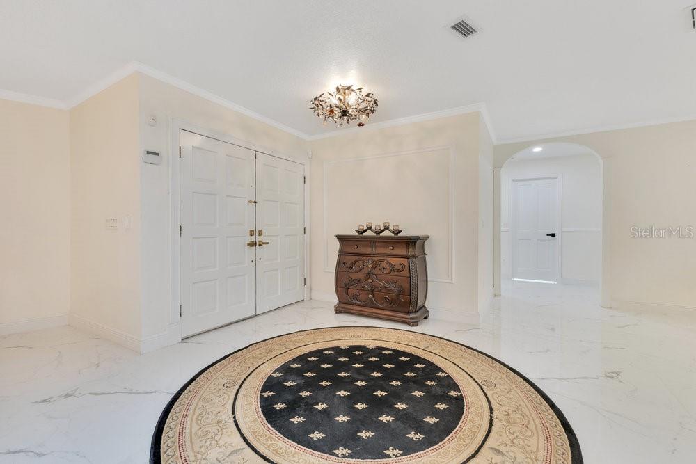One or more photo(s) has been virtually staged. Captivating and ideally nestled within the established Wingfield Reserve community of Longwood, this impeccable residence rests on a private ONE-ACRE LOT. Offering 5 bedrooms and 4 bathrooms — including a separate IN-LAW SUITE with its own private entrance — the home blends thoughtful updates with timeless sophistication. Elegant 24x28 CALACATTA GOLD MARBLE FLOORING sweeps gracefully through the majority of the living areas, while rich luxury vinyl plank in the bedrooms infuses an inviting sense of warmth. At the heart of the home, the kitchen serves as both a culinary haven and a design statement. Its fresh palette pairs striking black galaxy granite countertops with crisp white cabinetry, refined hardware, and Avsiile faucets (featured throughout the home). A KitchenAid Pro Series stainless appliance suite completes the picture. Flowing seamlessly from this hub, the floor plan accommodates formal, family, and versatile flex spaces — with the family room crowned by a dramatic VAULTED WOOD-BEAM CEILING and anchored by a fireplace set within a stunning feature wall. The expansive primary suite impresses with a CUSTOM CLOSET leading into a beautifully updated, spa-inspired en-suite bath. Each guest bathroom reflects the same level of refinement, carrying the elegant finishes consistently throughout the home. Multiple access points open to the lanai, where a Summer kitchen/bar, travertine tile deck, and a screened pool create a serene, resort-like retreat. Surrounded by lush landscaping and sweeping green space, it’s a private sanctuary designed for both relaxation and entertaining. Recent upgrades include a new irrigation system, newer A/C, newer water heater, and two septic tanks replaced just three years ago. Details such as tray ceilings, crown molding, skylights, and grand light fixtures add layers of character, further complementing the marble floors. Perfectly located just off Markham Woods Road with easy access to I-4, you’re minutes from premier shopping and dining. Outdoor enthusiasts will appreciate the proximity to Wekiva River Conservation Area and Wekiwa Springs State Park. Meanwhile, the Wingfield Reserve community itself offers a rare balance of privacy, natural beauty, and convenience.