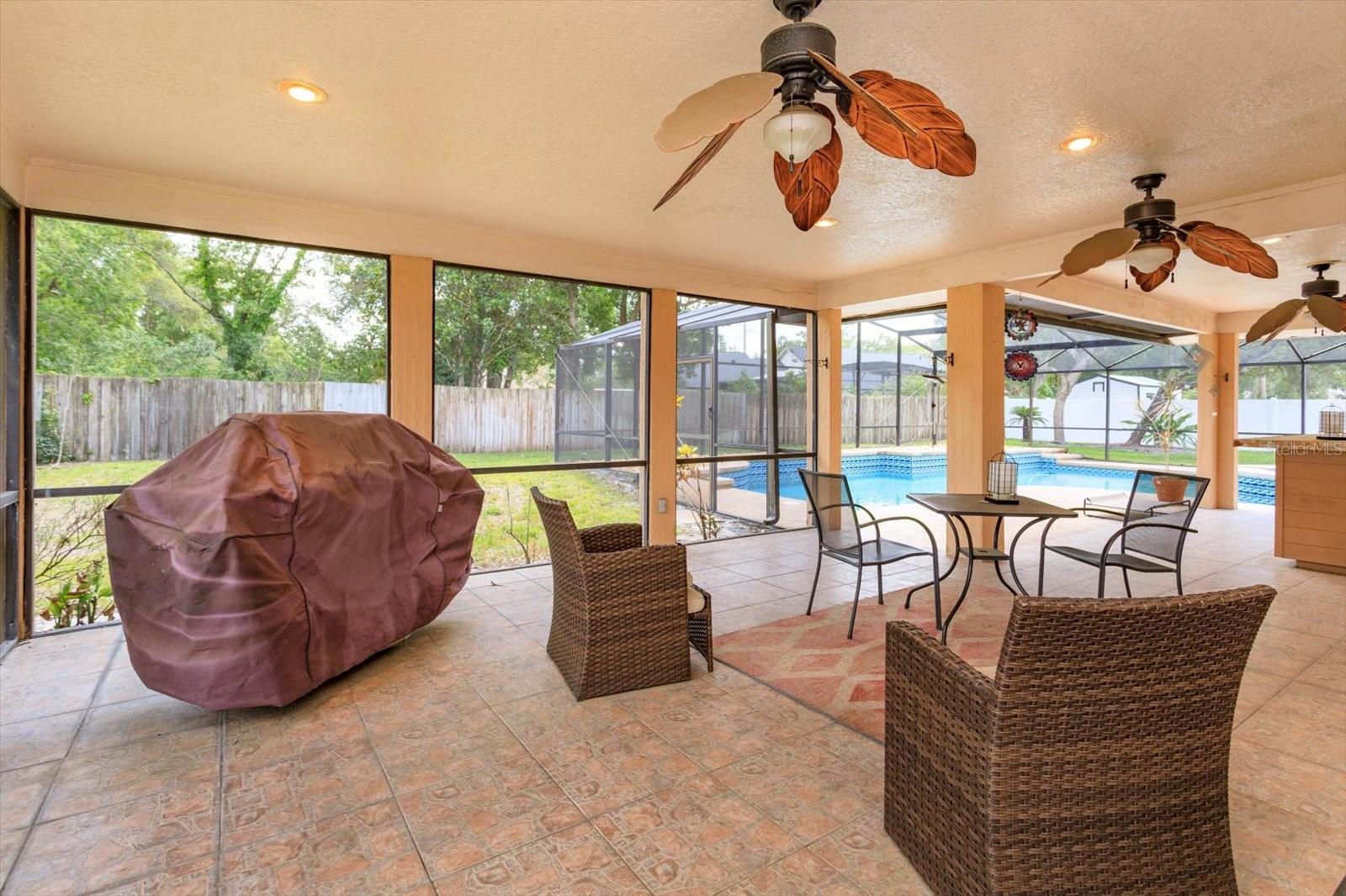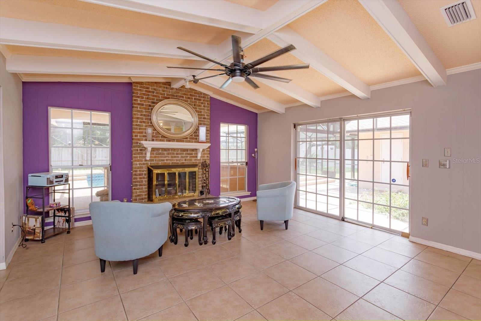Seller offering $15,000 in buyer credits at closing to use however you choose. Completely upgraded and move-in ready, 413 Sandy Hill Dr. combines modern efficiency with timeless comfort in one of the area’s most desirable, tree-lined communities with top-rated schools. Major improvements include a new 2022 roof and AC system, a hybrid water heater, a full home repipe and replumb, and a fully self-sufficient solar system that will be paid off at closing, delivering long-term energy savings from day one. All appliances included, and a home warranty make this a true turnkey opportunity. Inside, the bright, open layout features a living room with serene views of the screened lanai and pool. The kitchen is equipped with solid wood cabinetry, granite counters, stainless steel appliances, dual pantries, and a built-in wine rack, opening seamlessly to a vaulted family room with wood-beam ceilings and a wood-burning fireplace. French doors lead to a versatile flex space with sealed concrete floors, ideal for a gym, studio, or home office. The oversized, tropically landscaped lot offers true resort-style living with a fully screened pool and spa, expansive covered patio with wet bar, dedicated pool bath, and outdoor shower. The spacious primary suite includes a private office or sitting area, large closets, and a spa-like bath with dual granite vanities, a Jacuzzi tub, and a walk-in shower with dual heads and bench seating. With all major systems updated, generous incentives, and a layout made for entertaining and everyday comfort, 413 Sandy Hill Dr. stands out as a rare, ready-now opportunity.